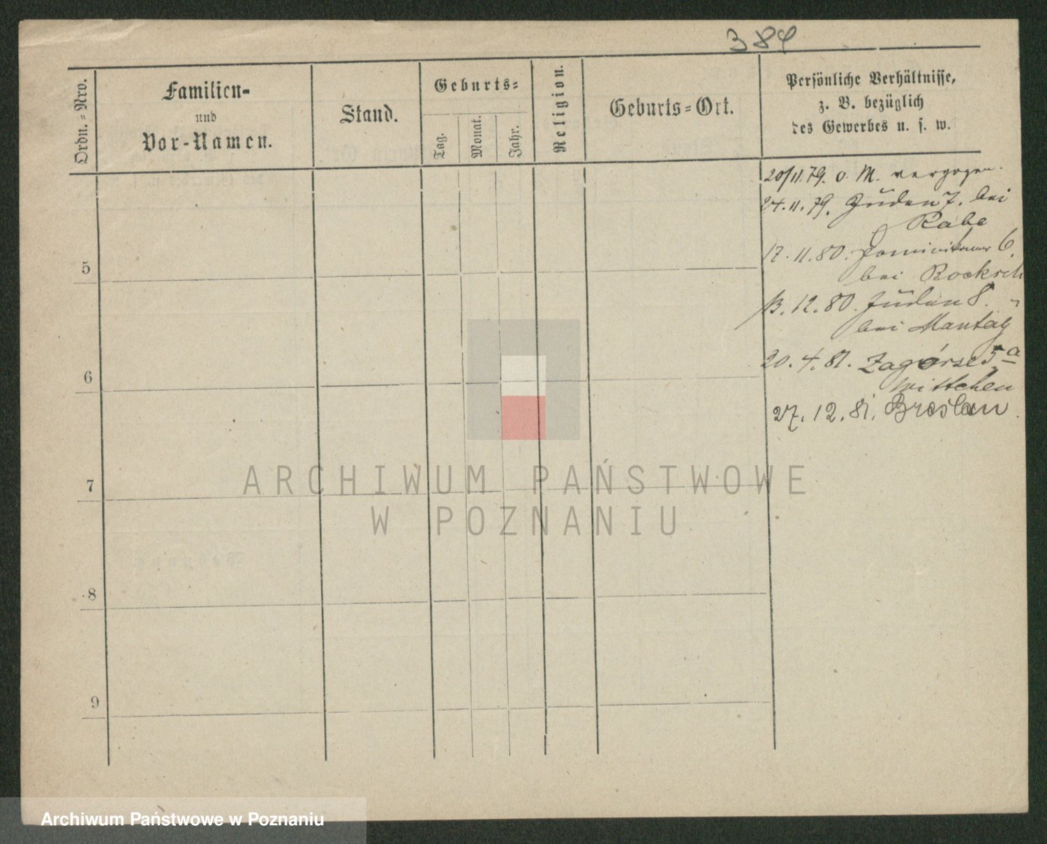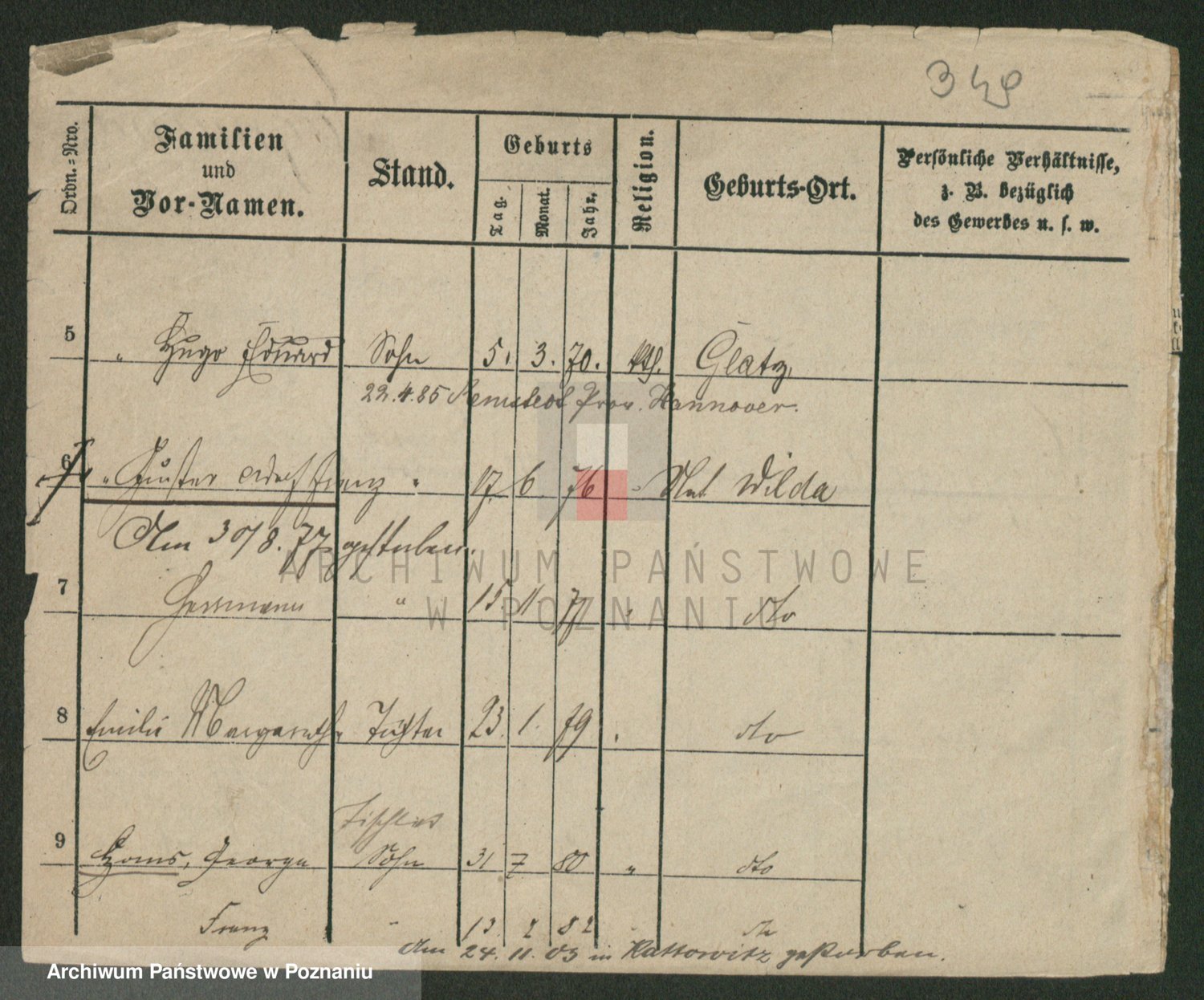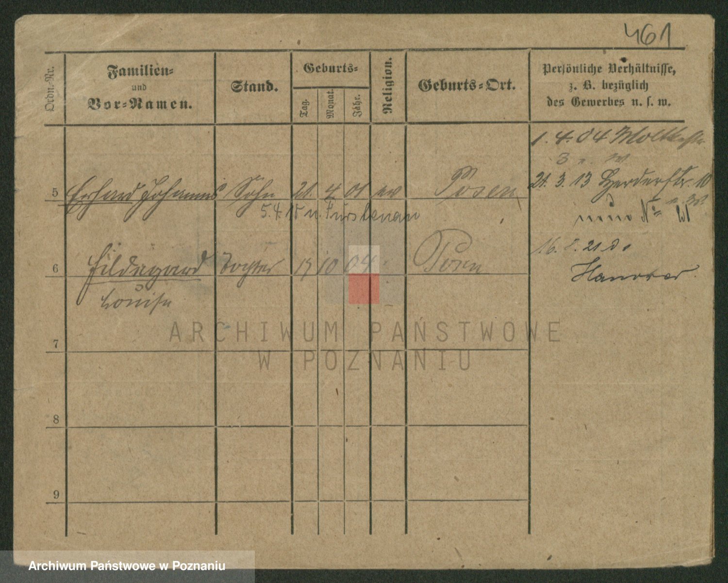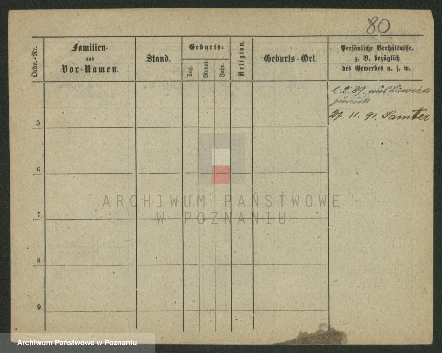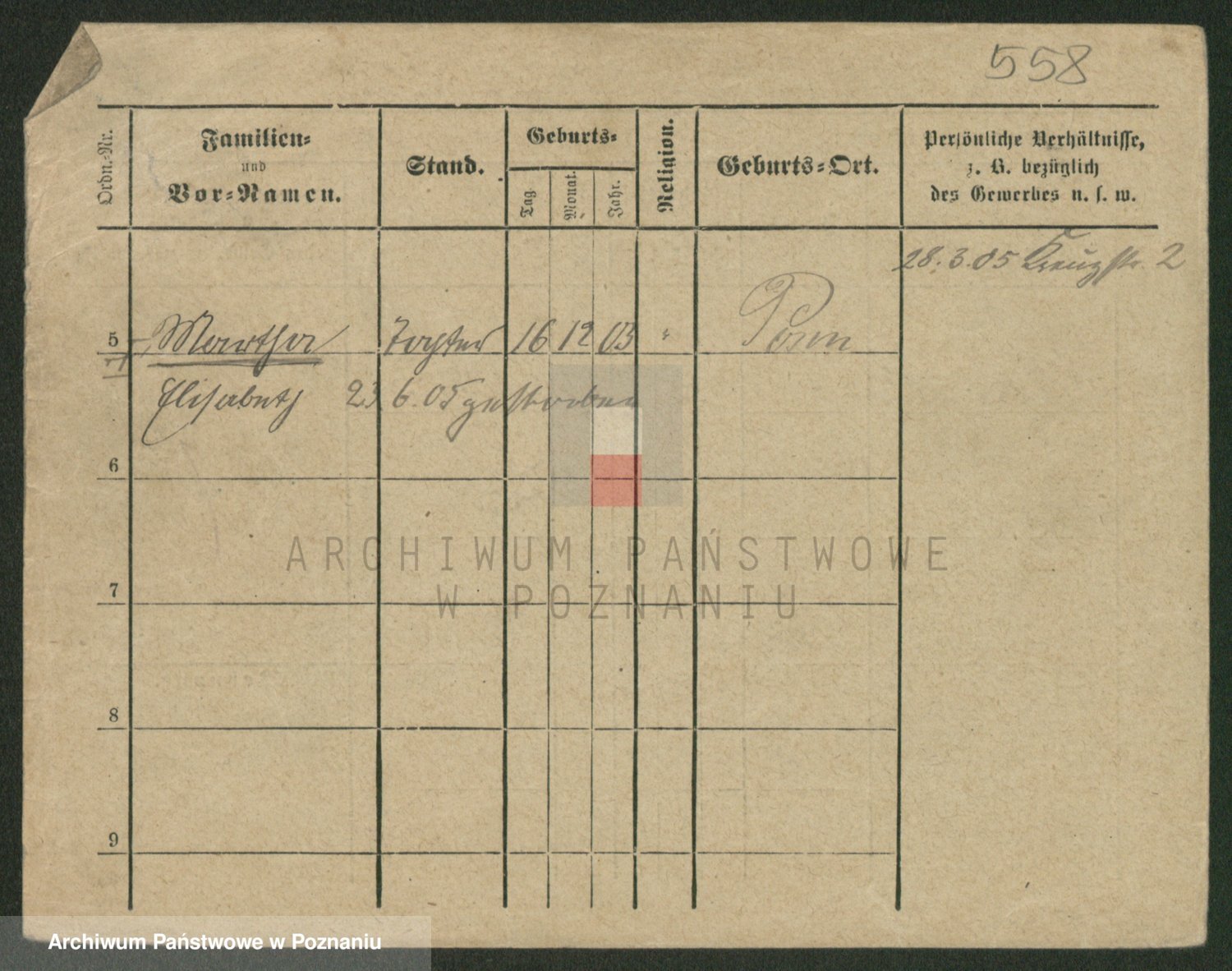 Podgląd karty osobowej dostępny jest po kliknięciu na nazwisko lub ikonkę karty. Można dokonywać powiększenia (ikony na górze) lub przechodzić między kolejnymi skanami (strzałki po bokach).