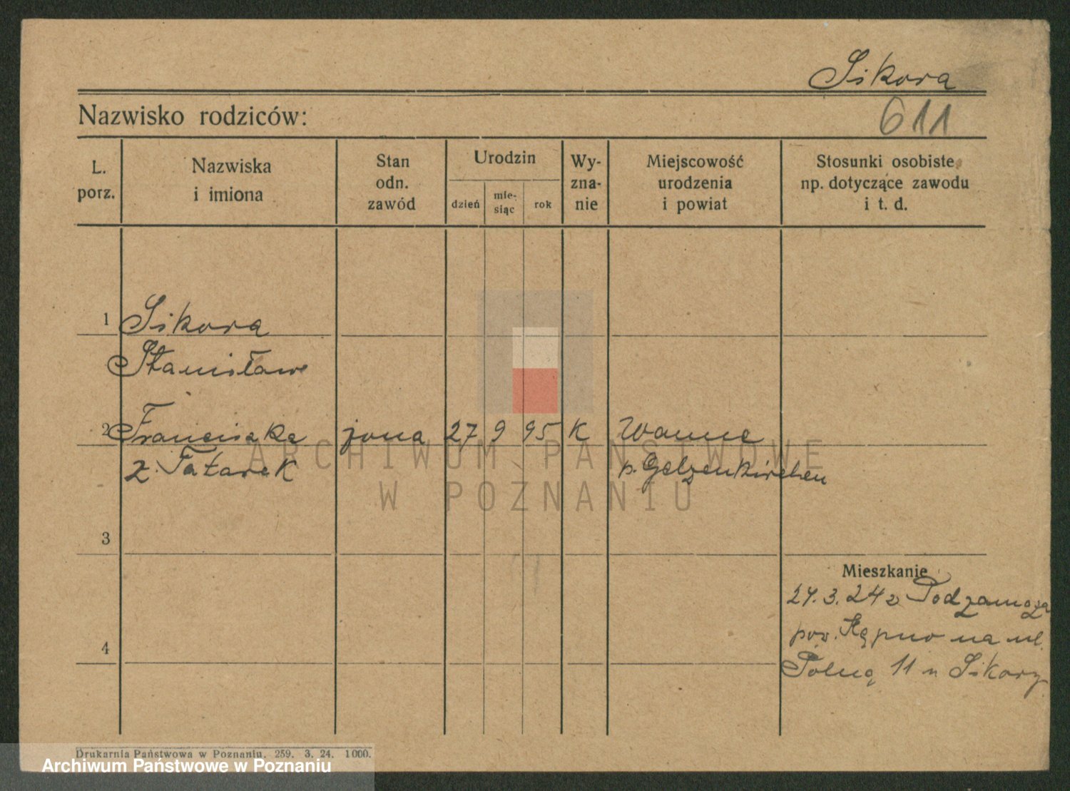 Sikora, Kazimiera