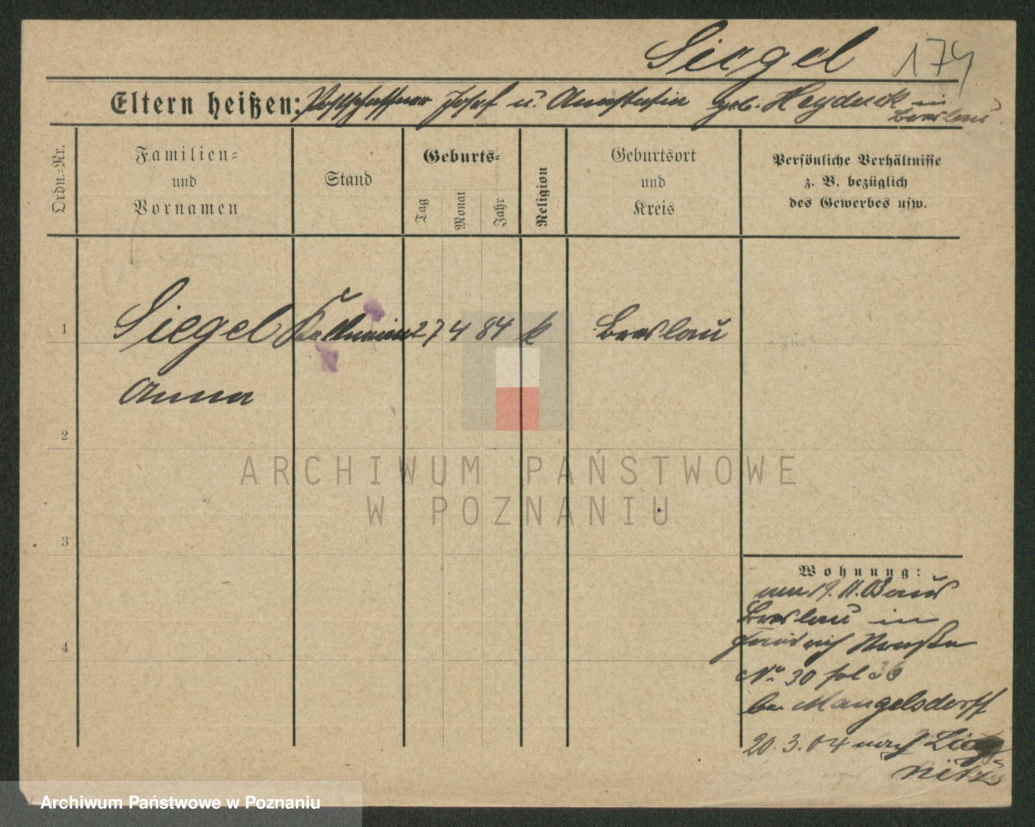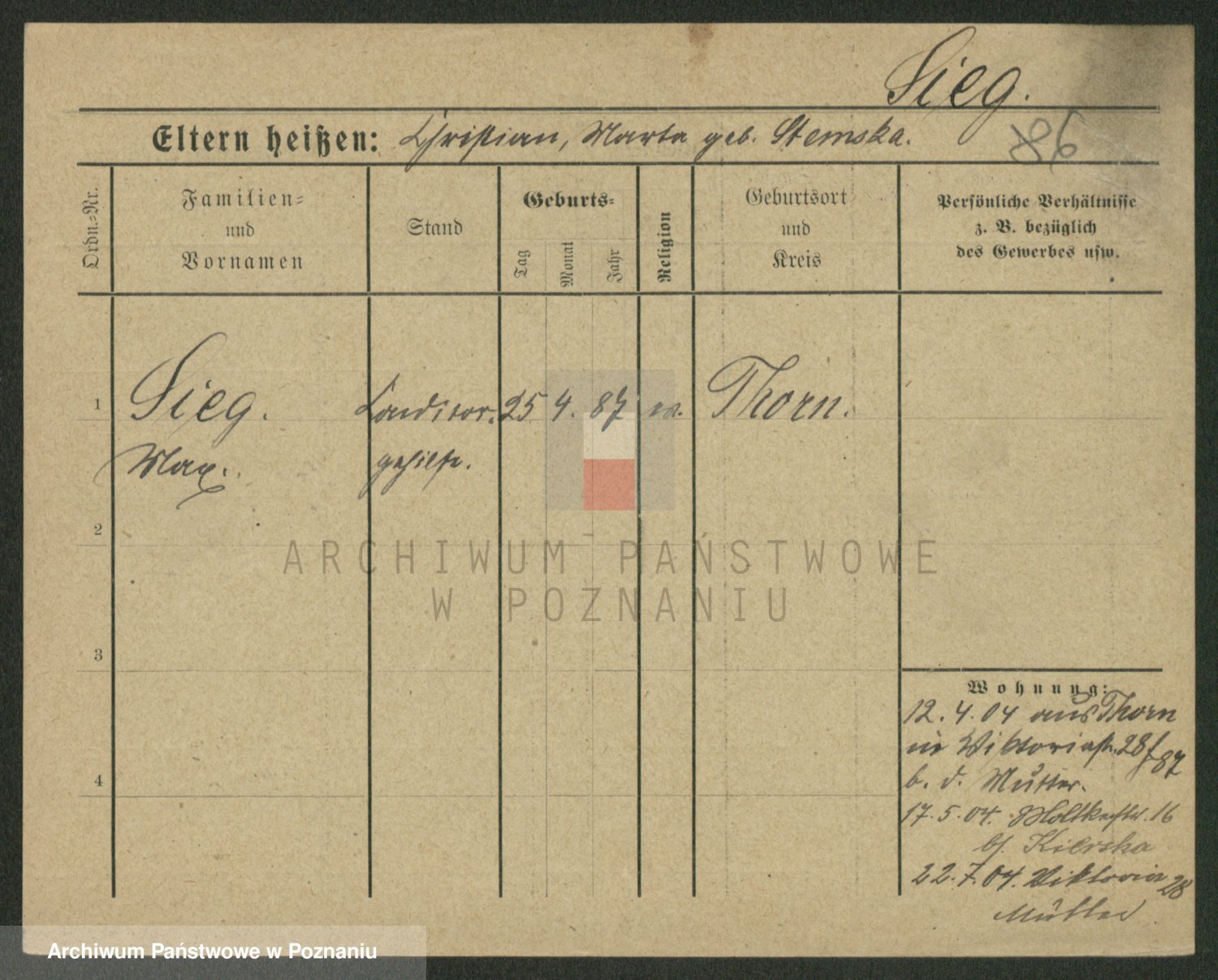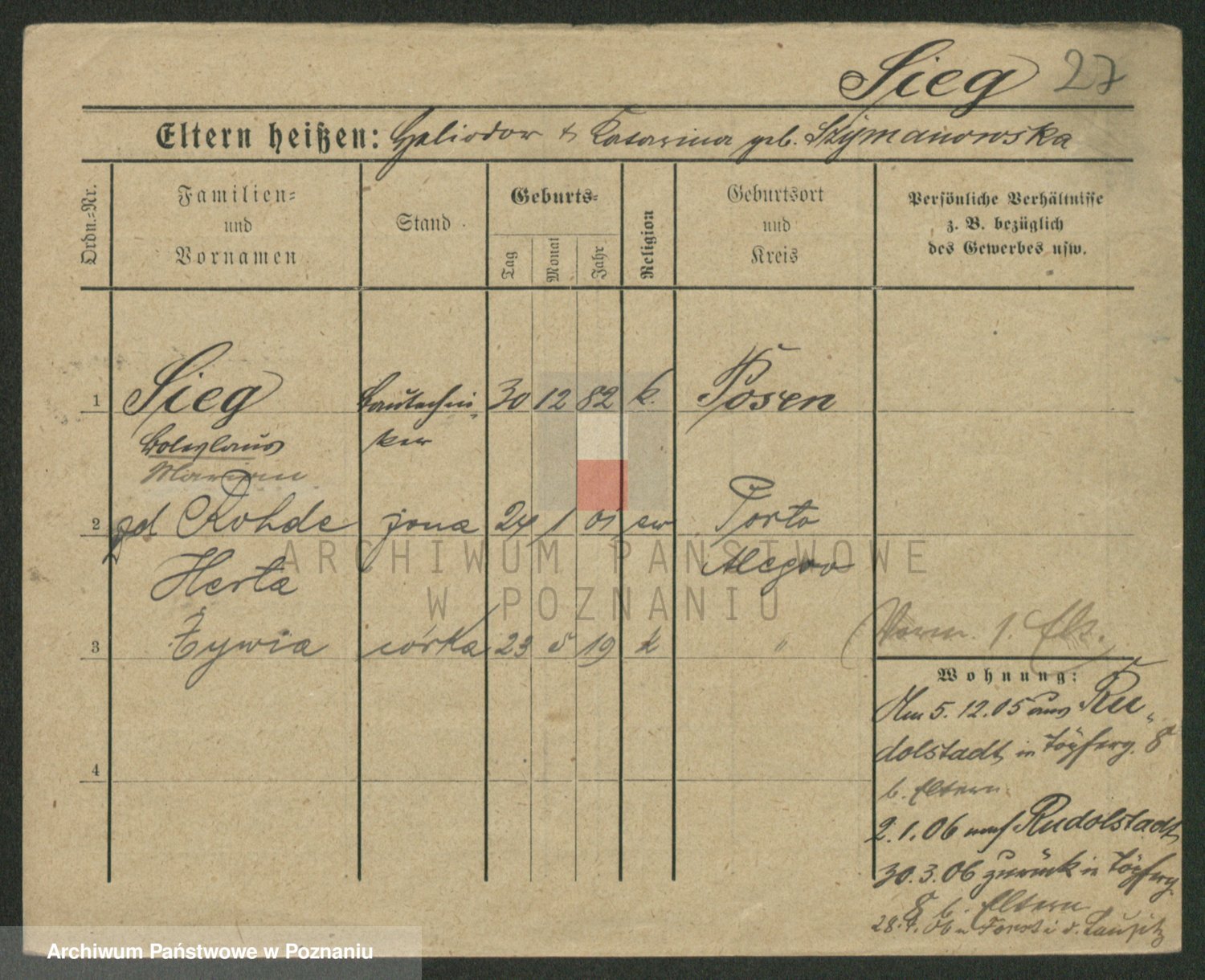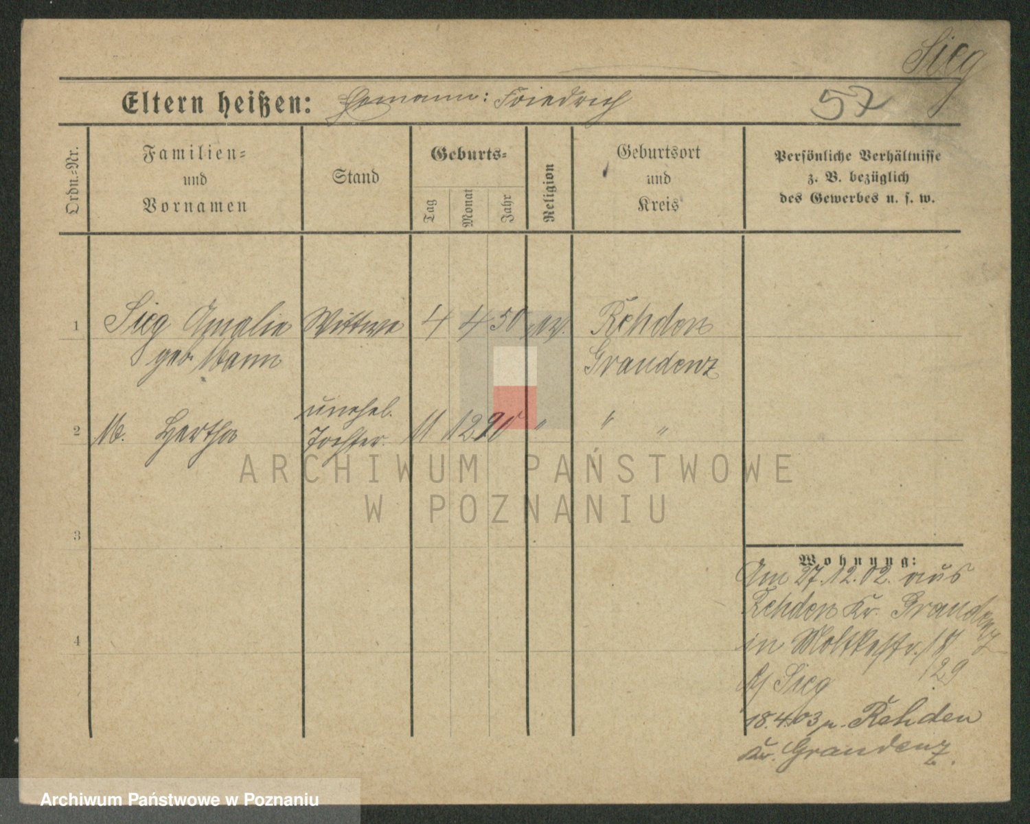 Sieg z d. Rejmanowska, Katharina