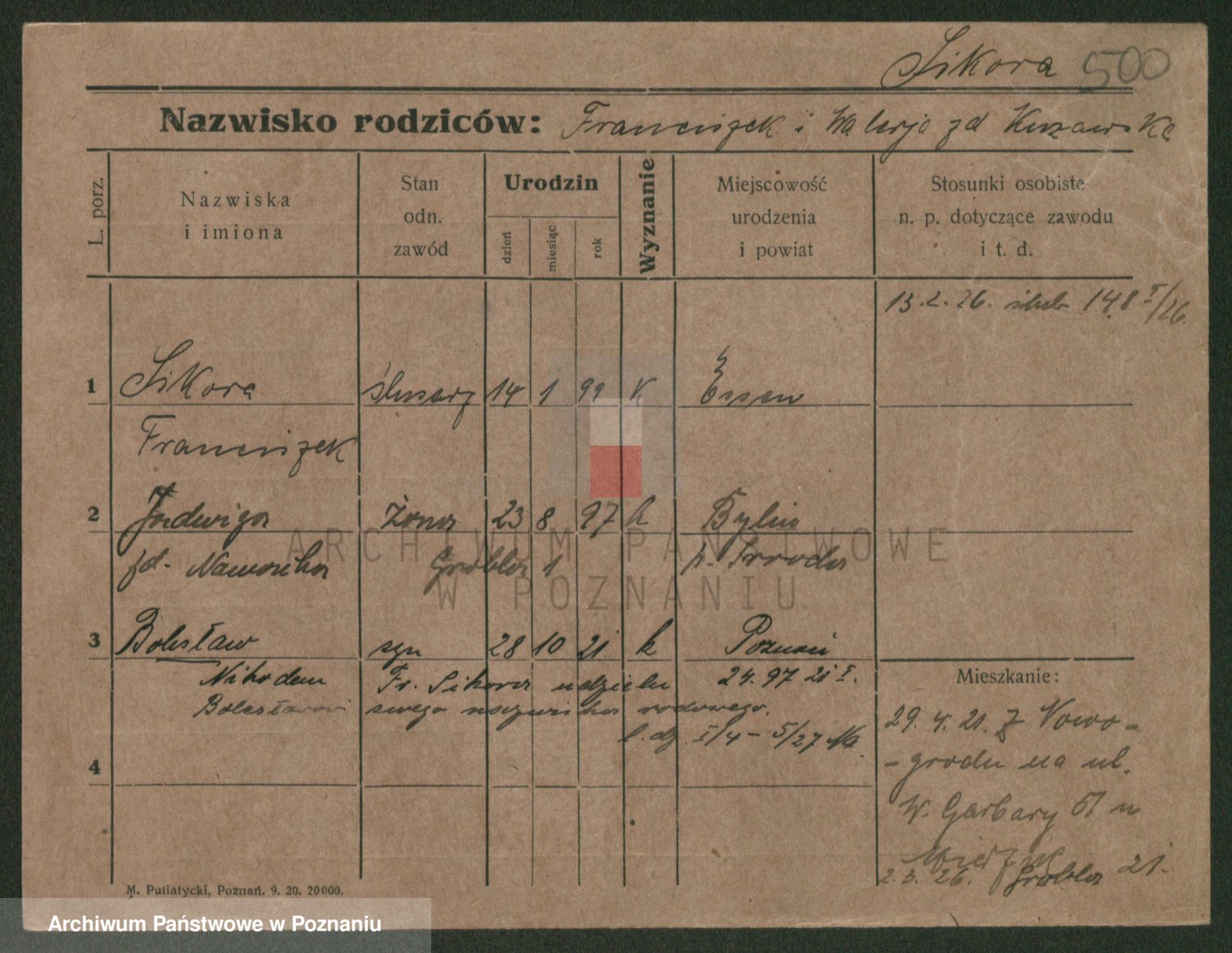 Sikora, Alfreda Bolesława