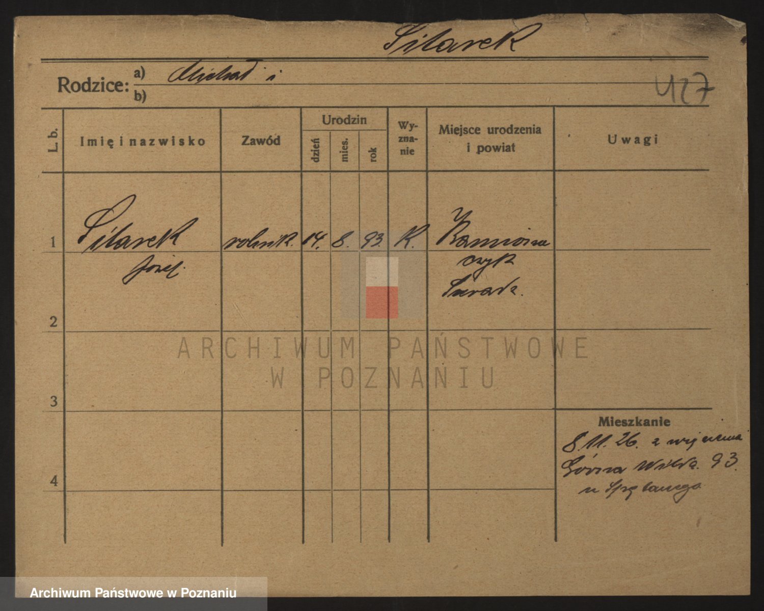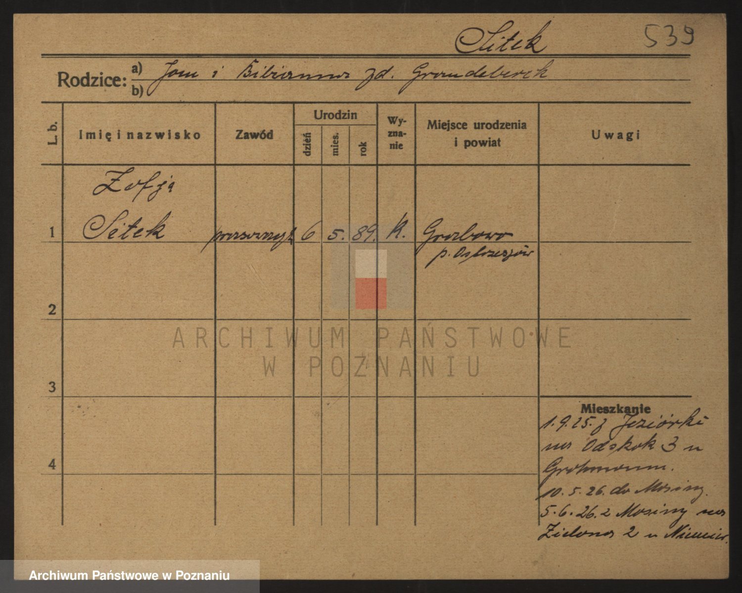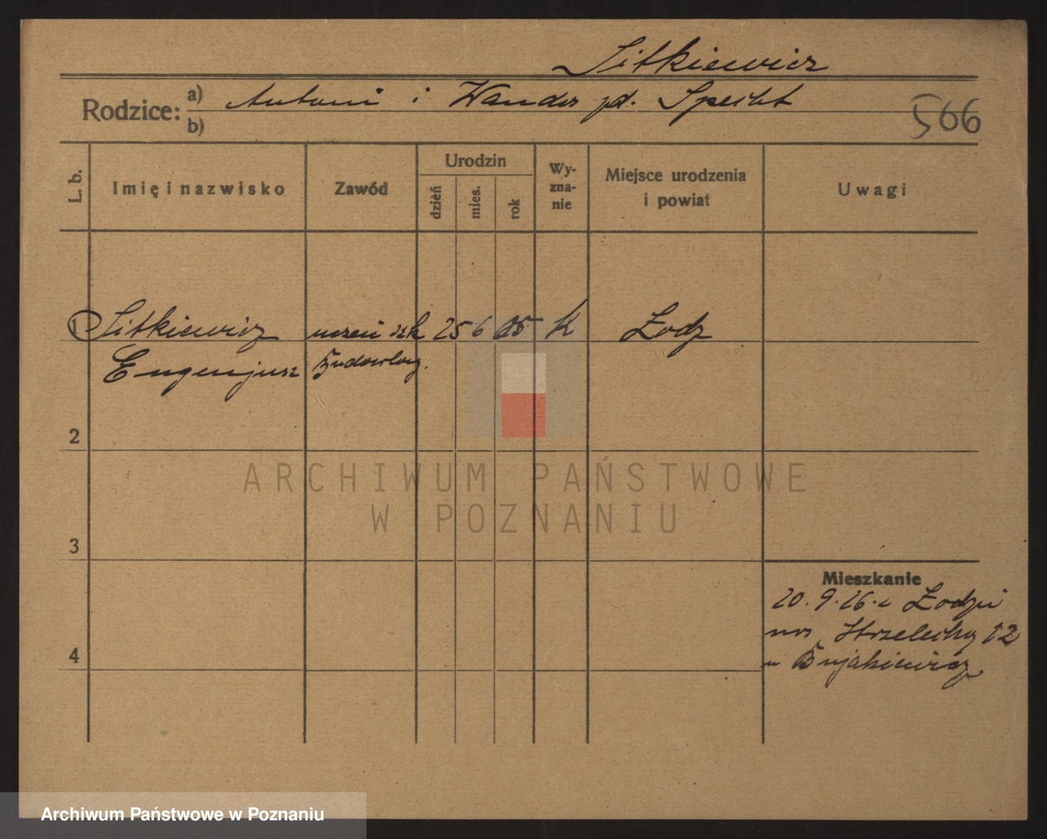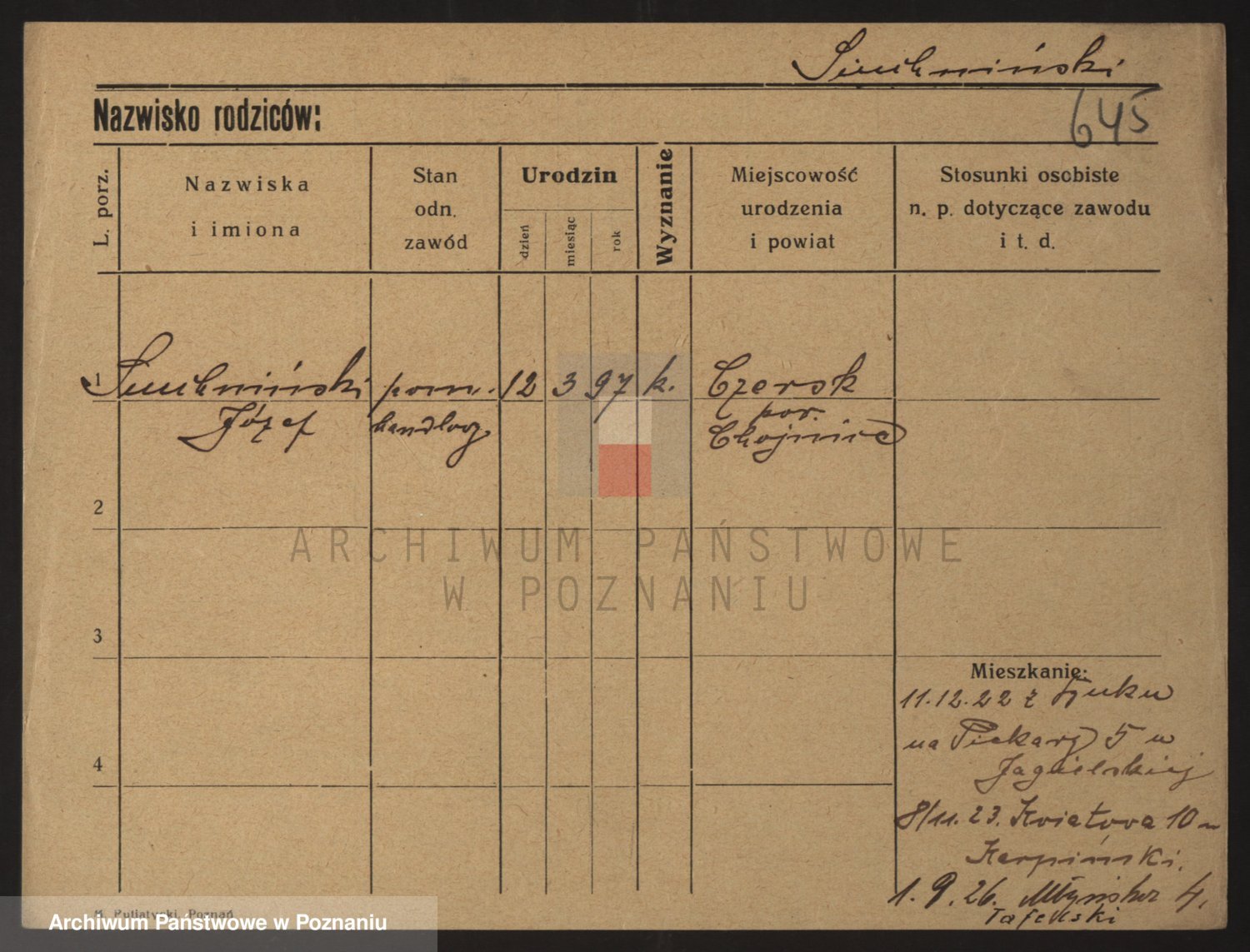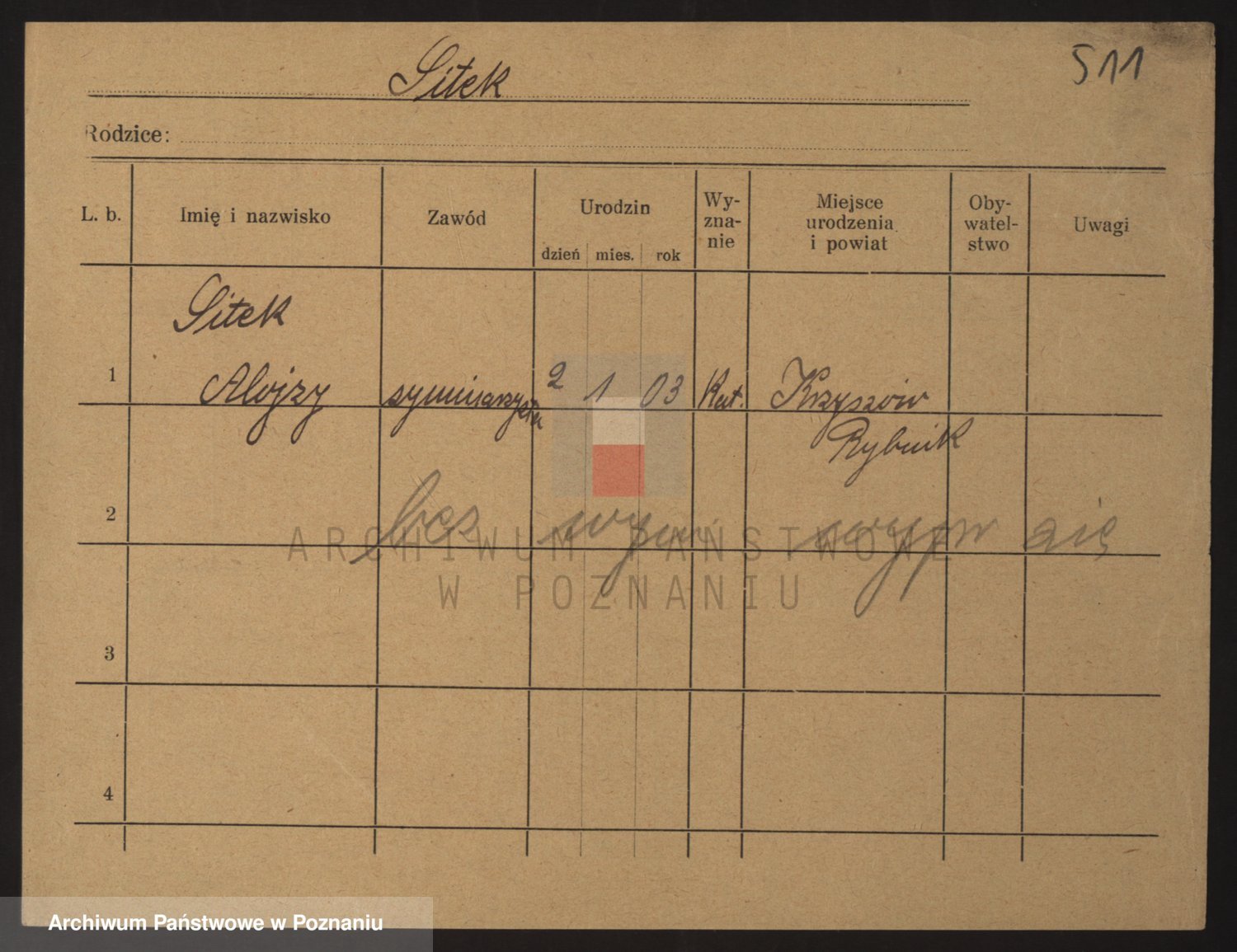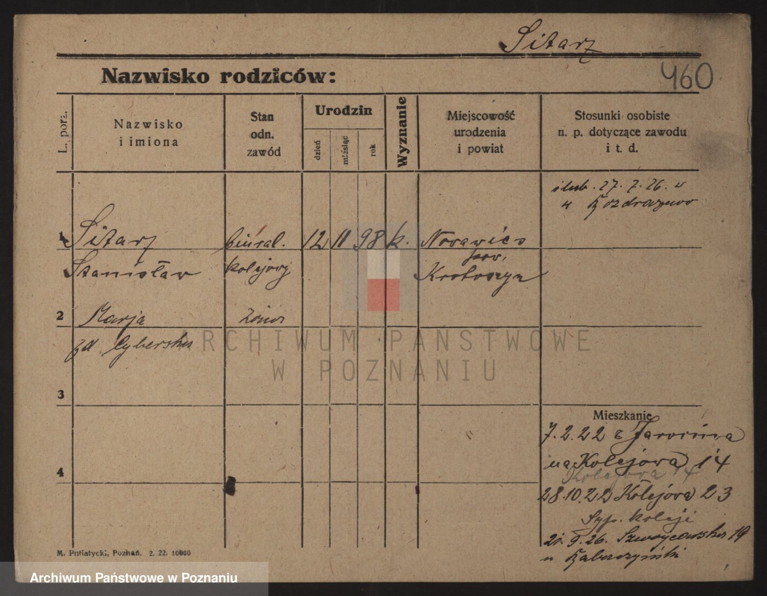 Podgląd karty osobowej dostępny jest po kliknięciu na nazwisko lub ikonkę karty. Można dokonywać powiększenia (ikony na górze) lub przechodzić między kolejnymi skanami (strzałki po bokach).