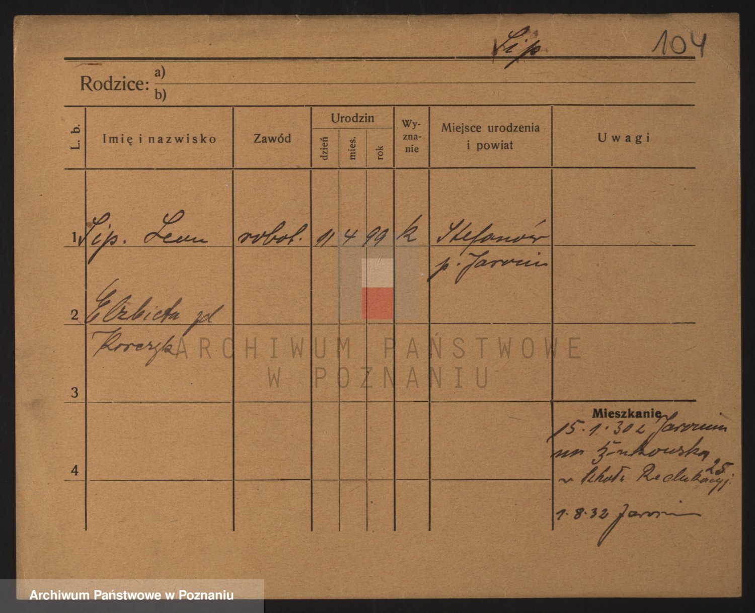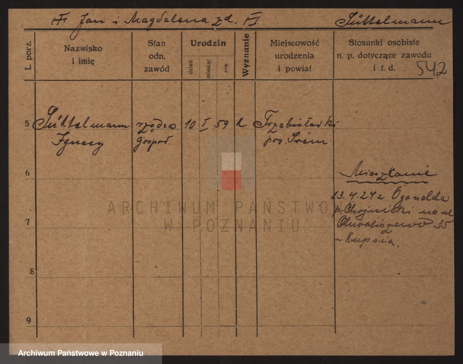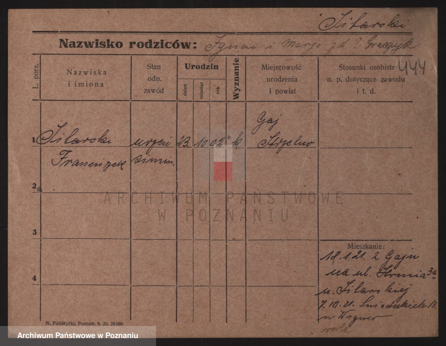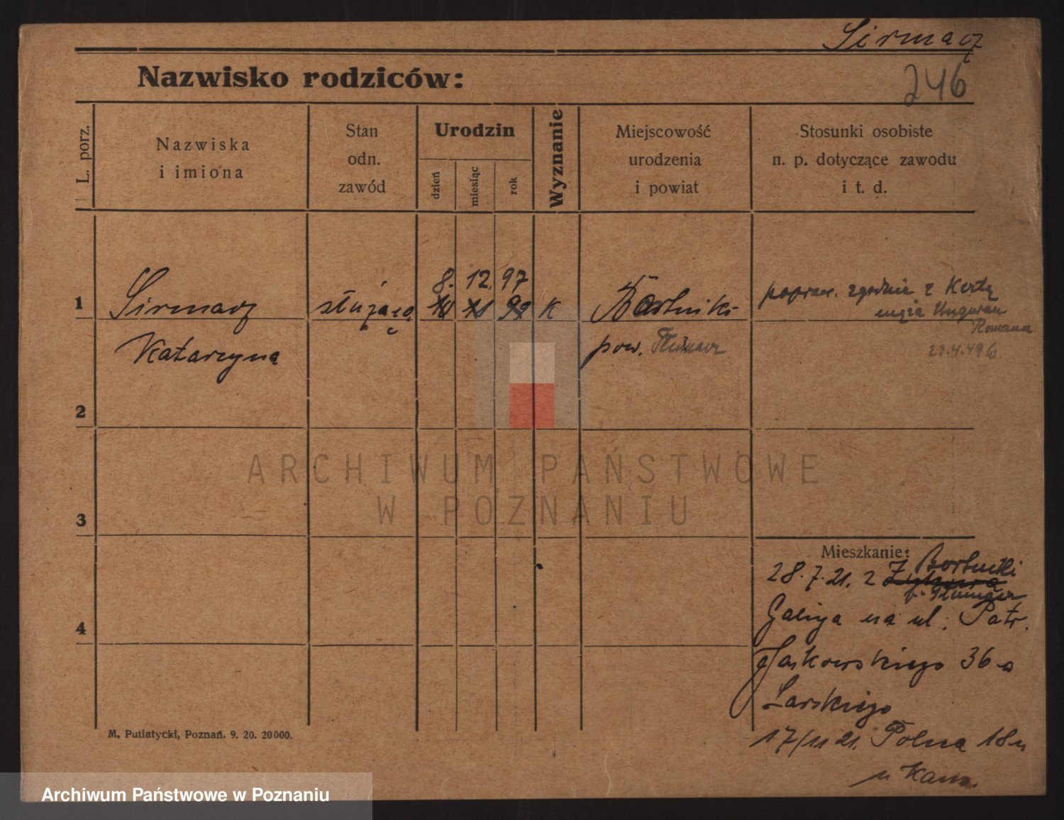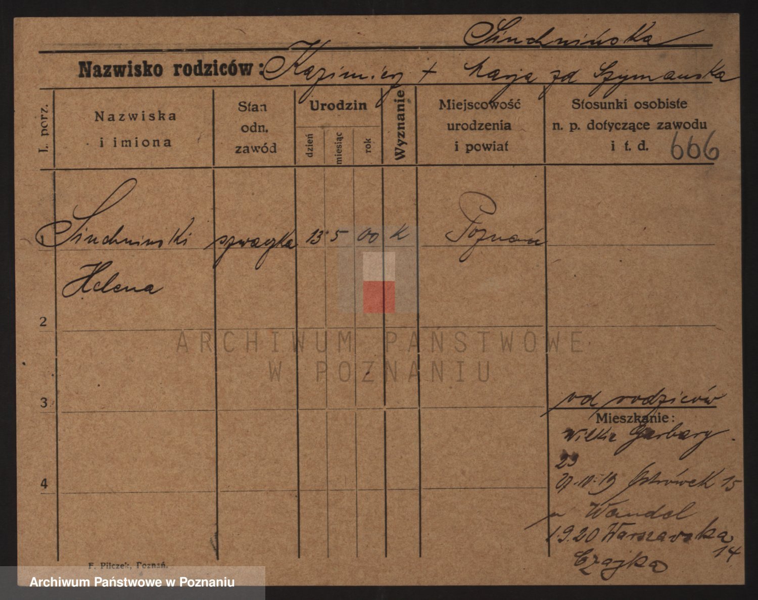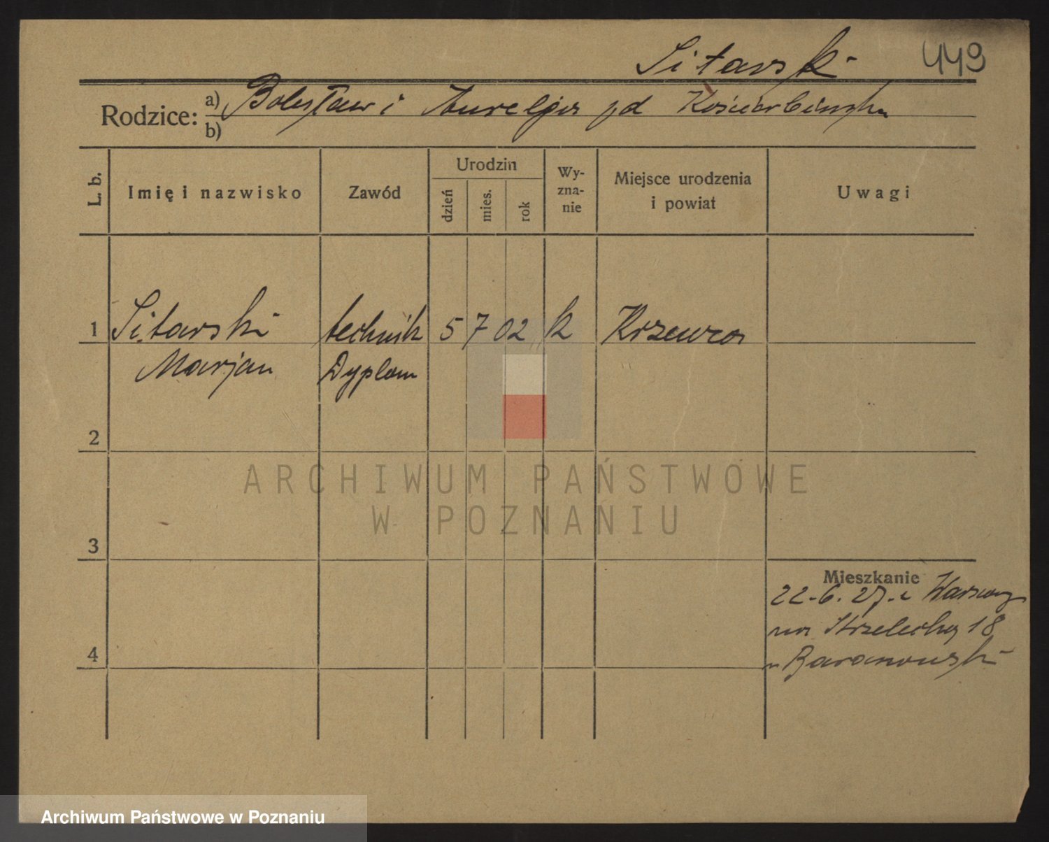 Podgląd karty osobowej dostępny jest po kliknięciu na nazwisko lub ikonkę karty. Można dokonywać powiększenia (ikony na górze) lub przechodzić między kolejnymi skanami (strzałki po bokach).