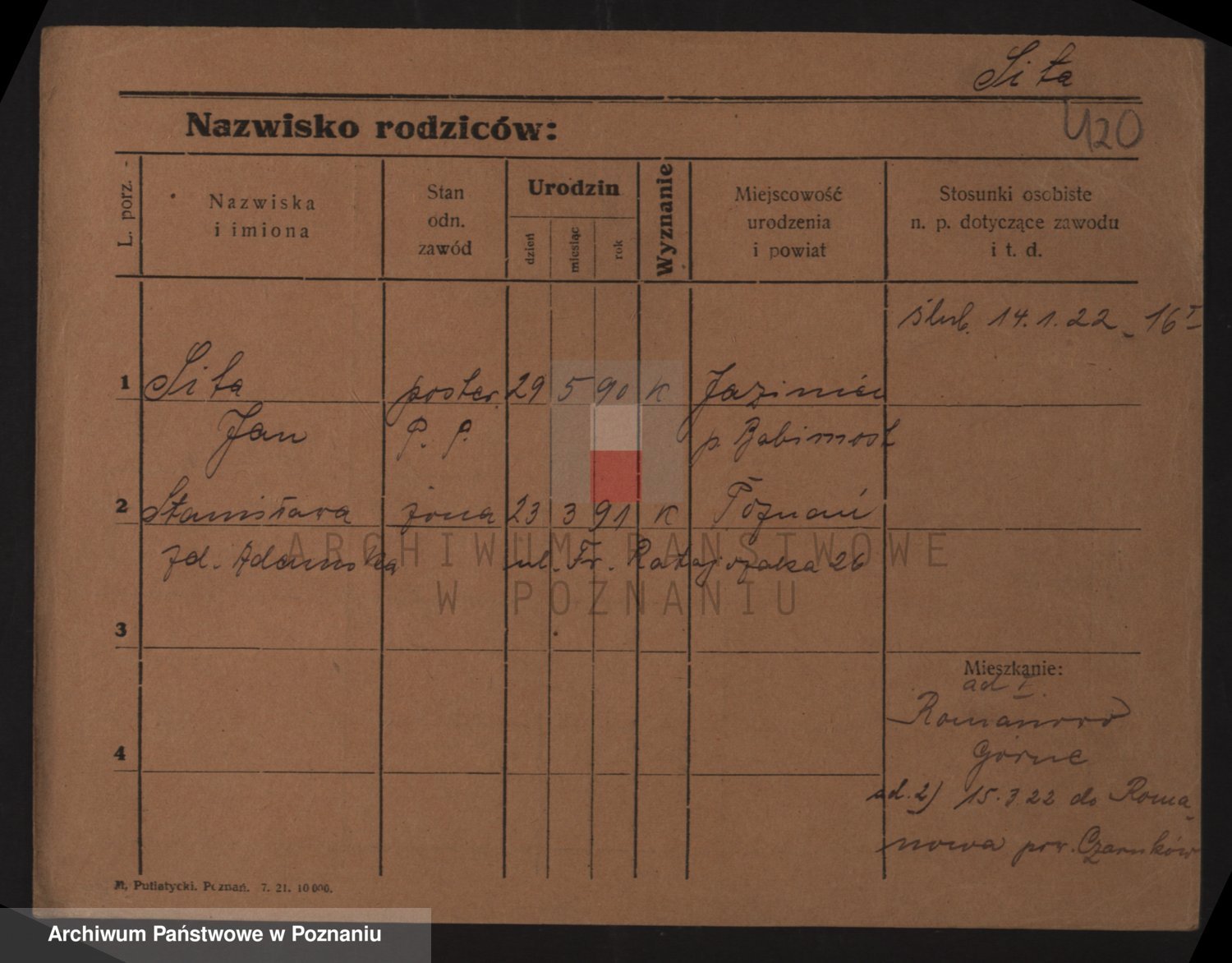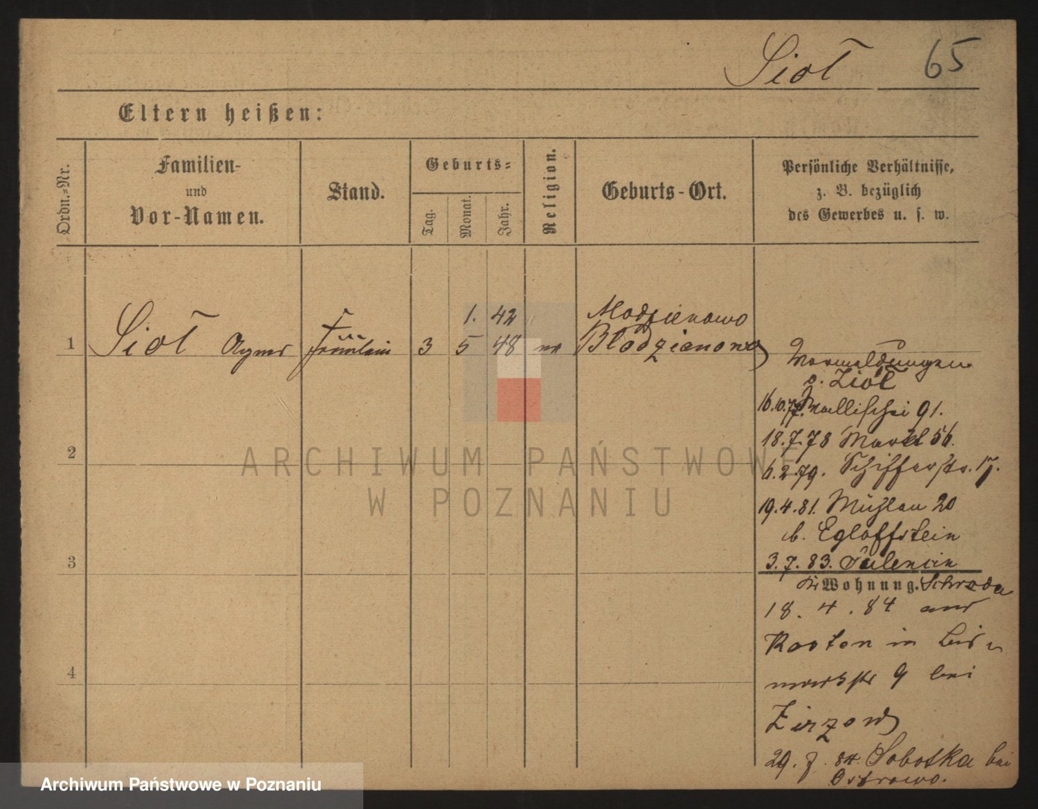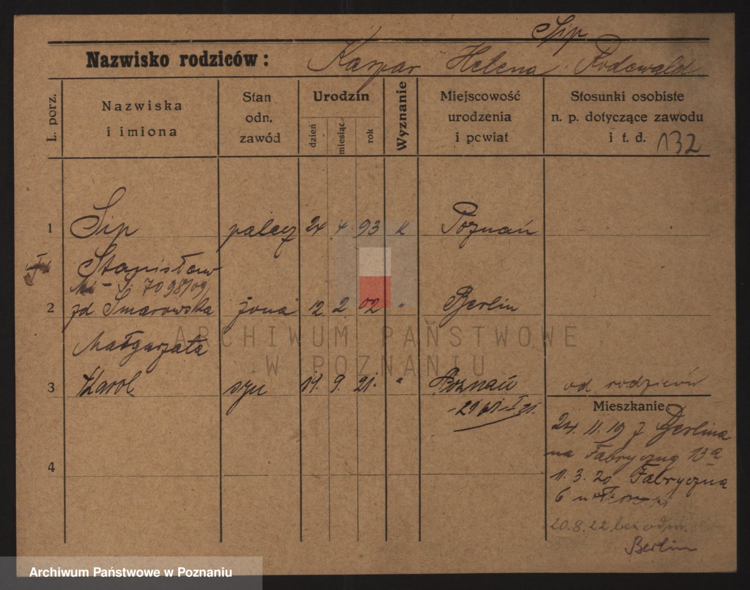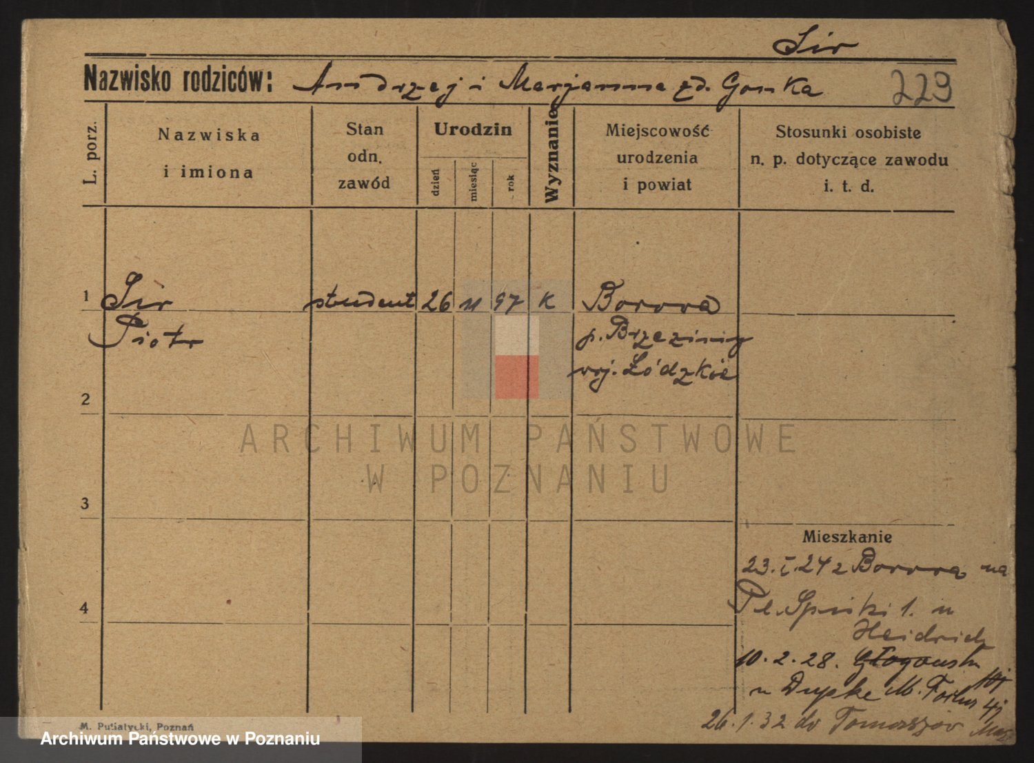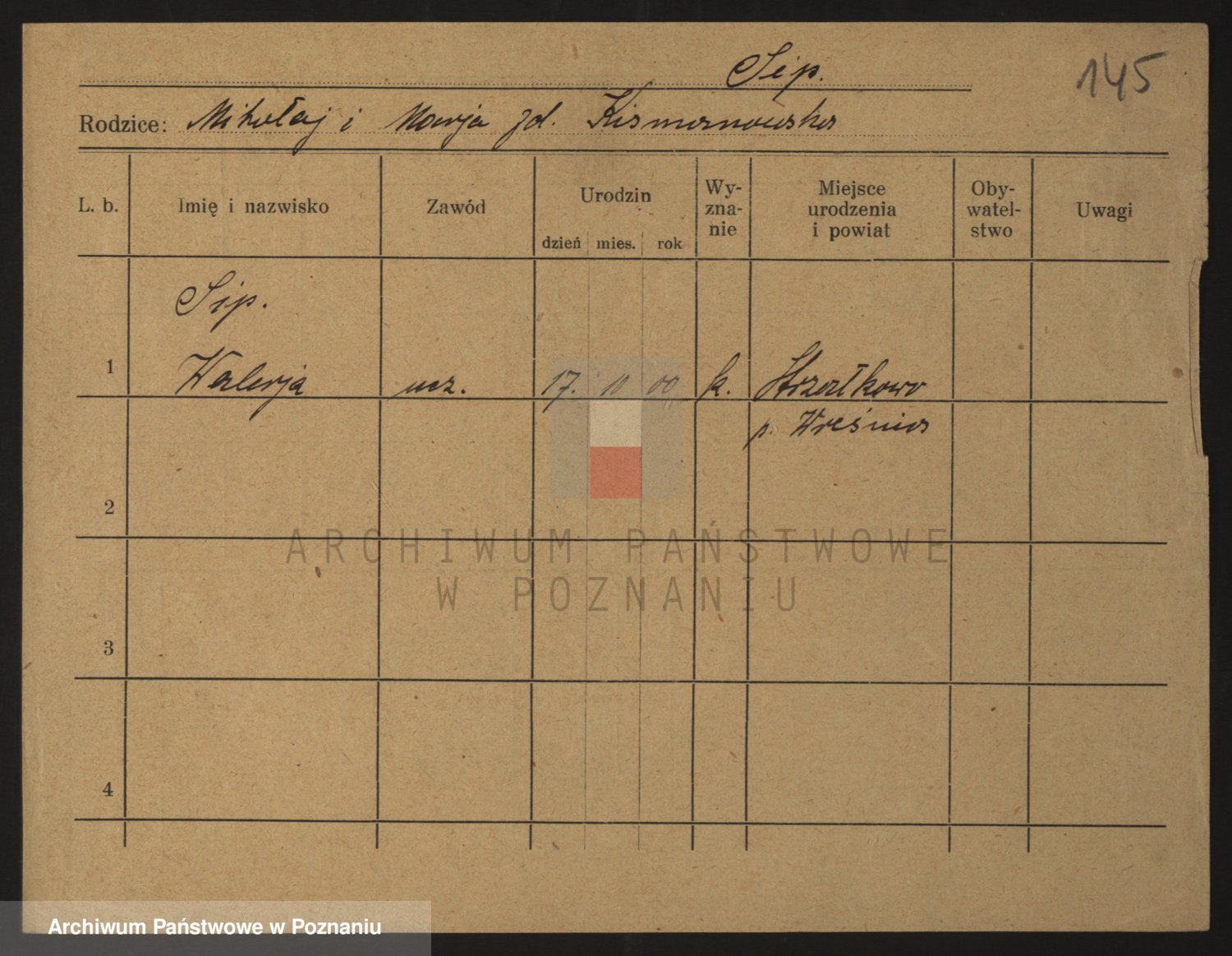Podgląd karty osobowej dostępny jest po kliknięciu na nazwisko lub ikonkę karty. Można dokonywać powiększenia (ikony na górze) lub przechodzić między kolejnymi skanami (strzałki po bokach).