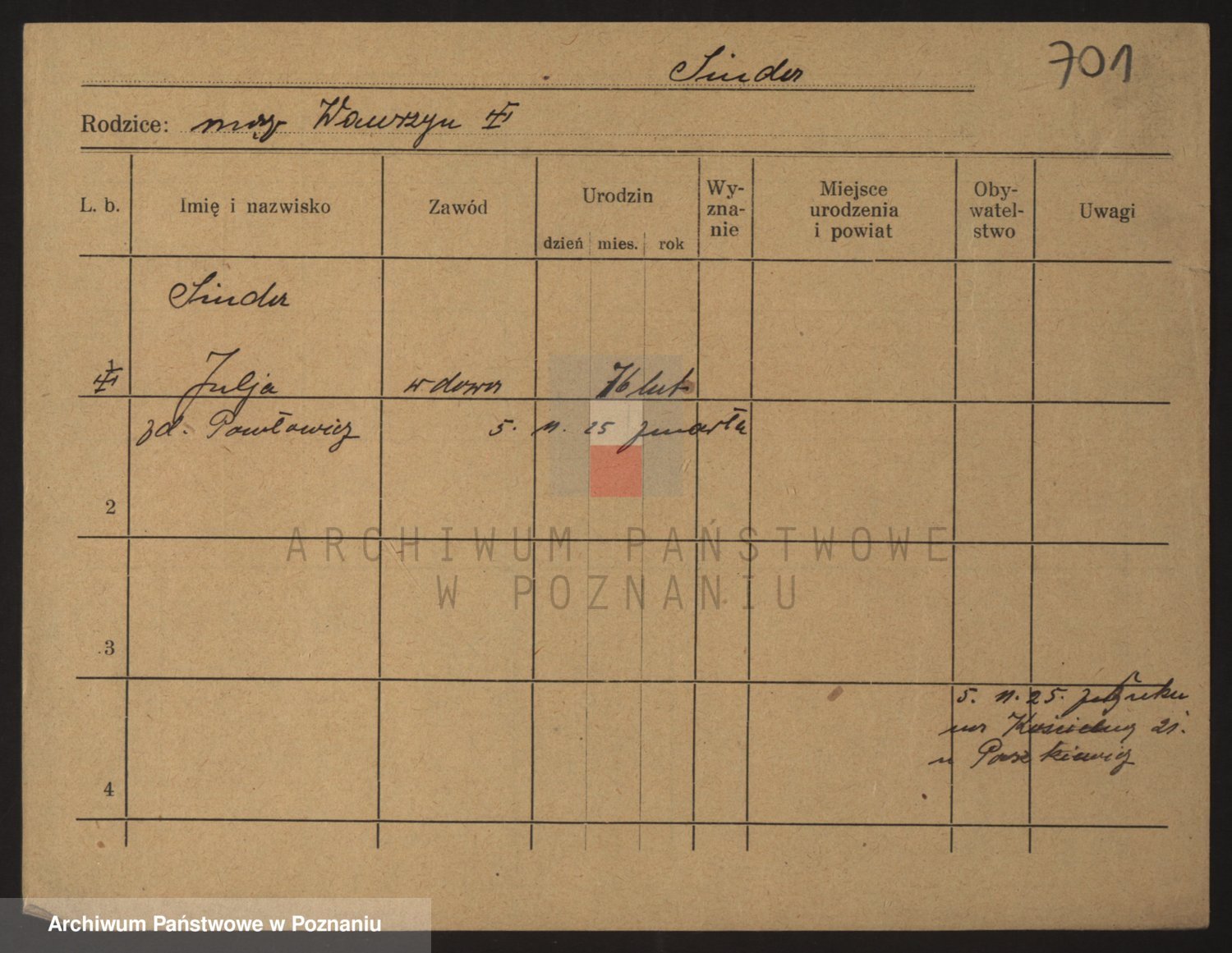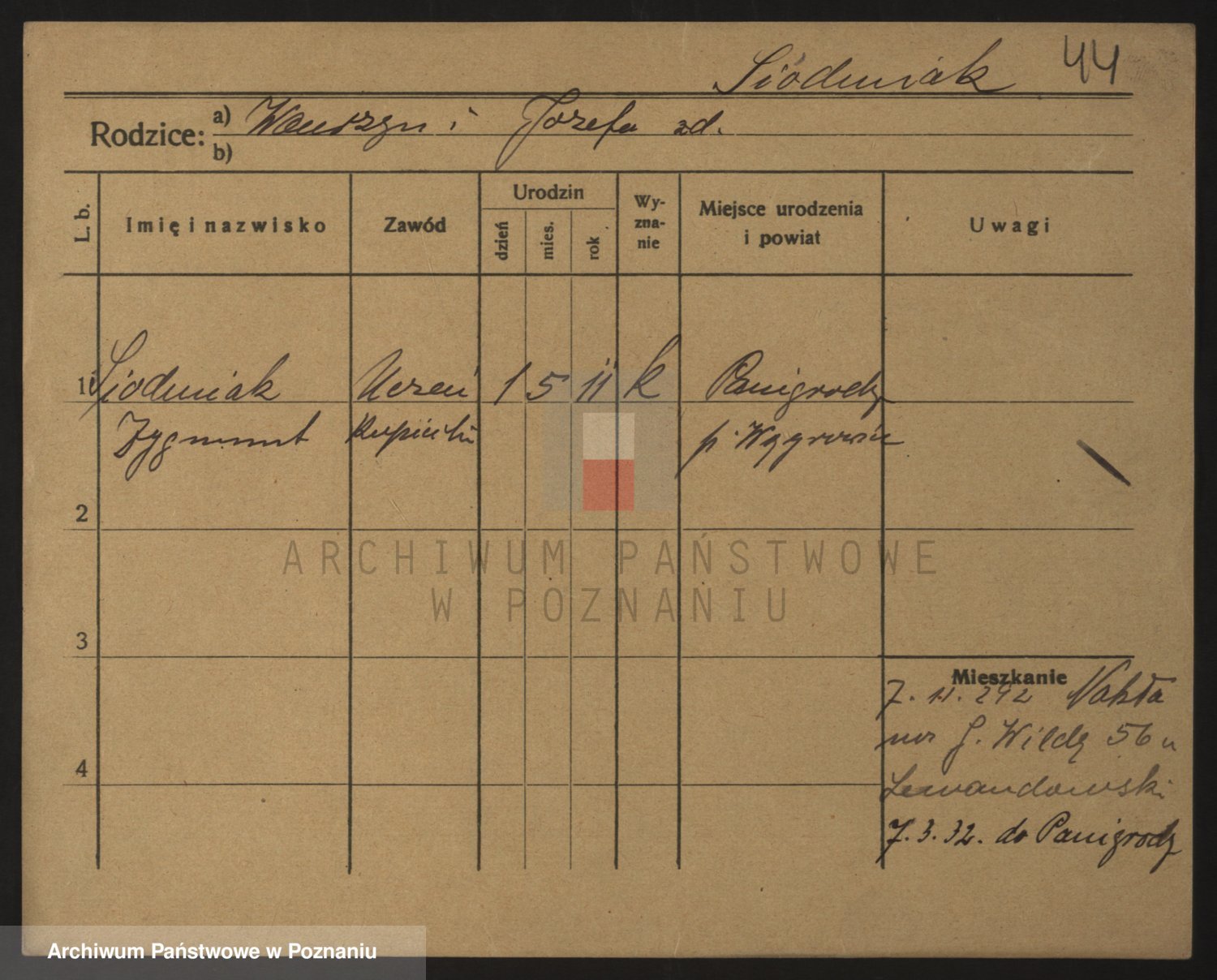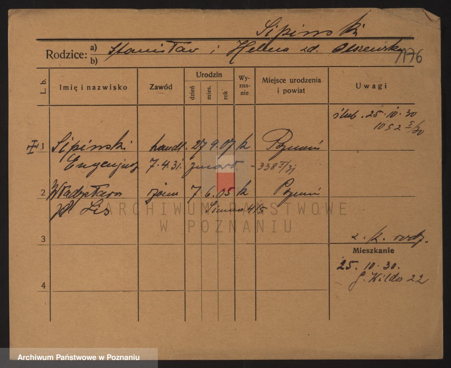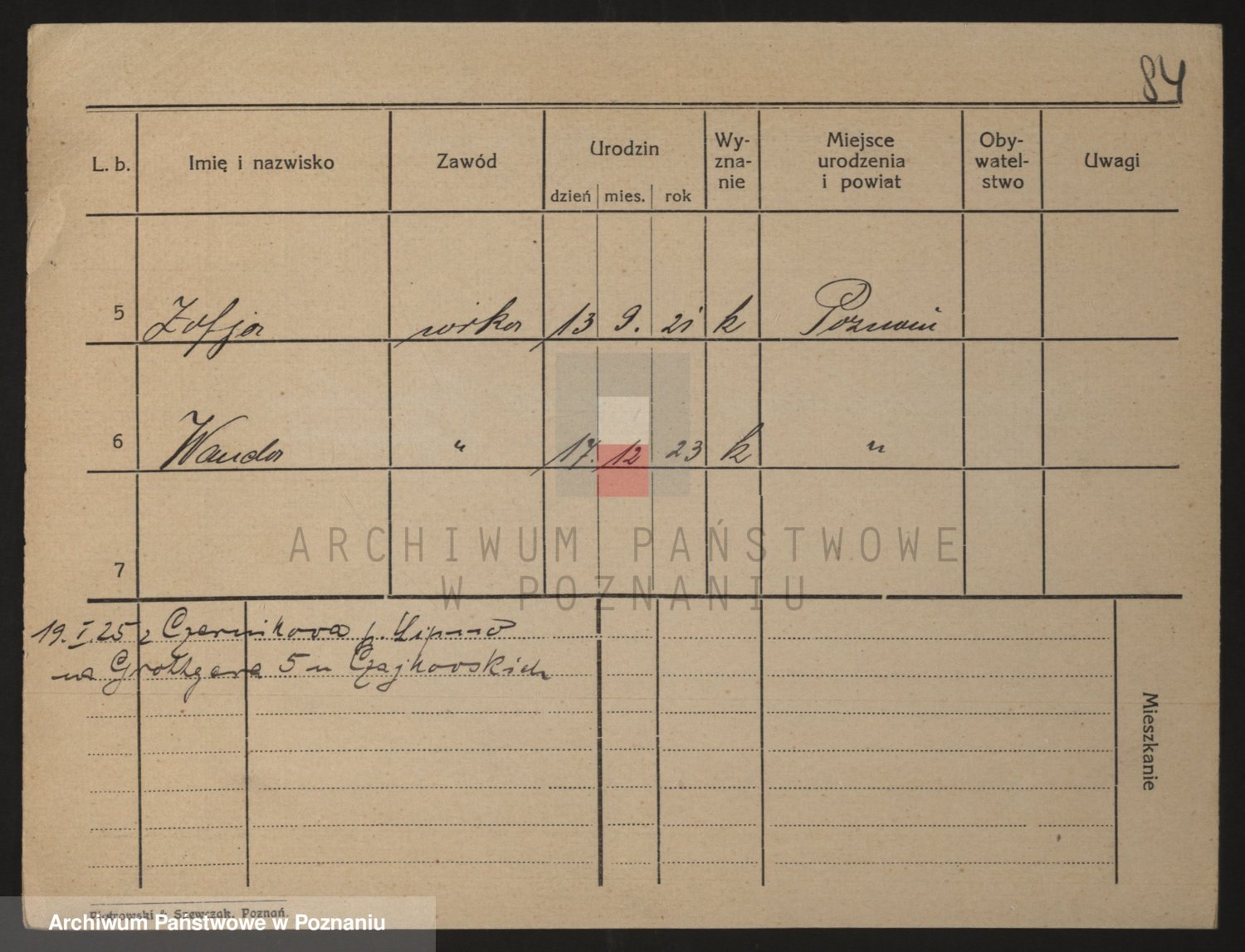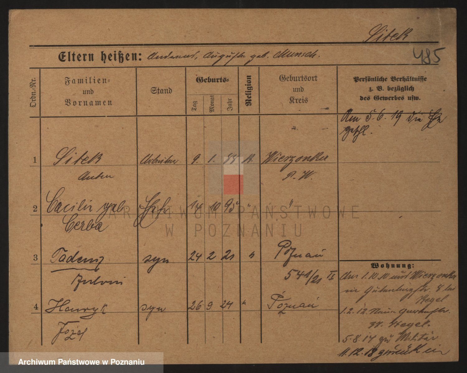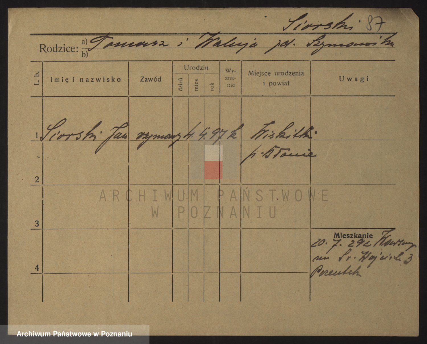 Podgląd karty osobowej dostępny jest po kliknięciu na nazwisko lub ikonkę karty. Można dokonywać powiększenia (ikony na górze) lub przechodzić między kolejnymi skanami (strzałki po bokach).