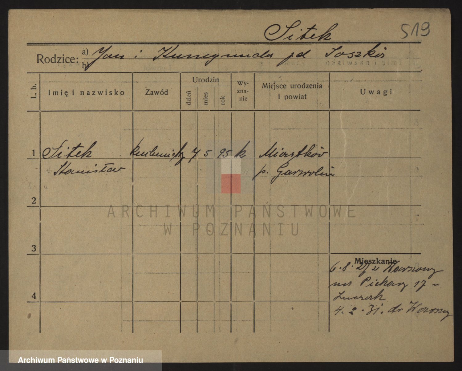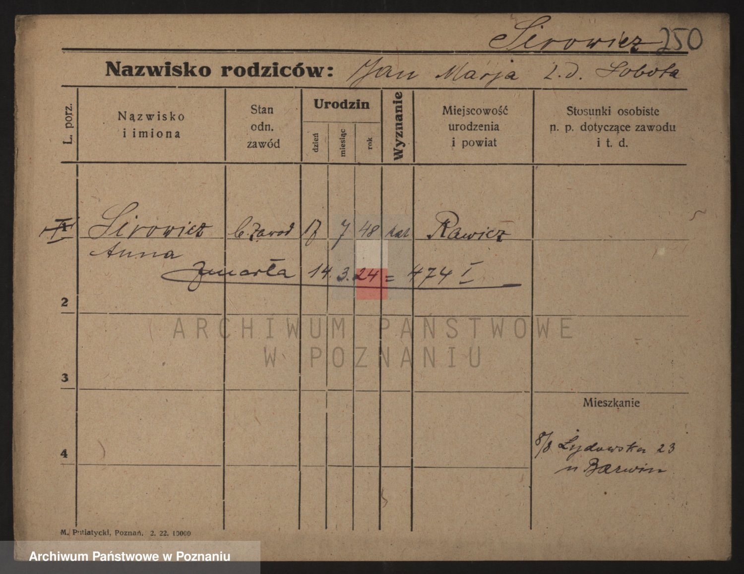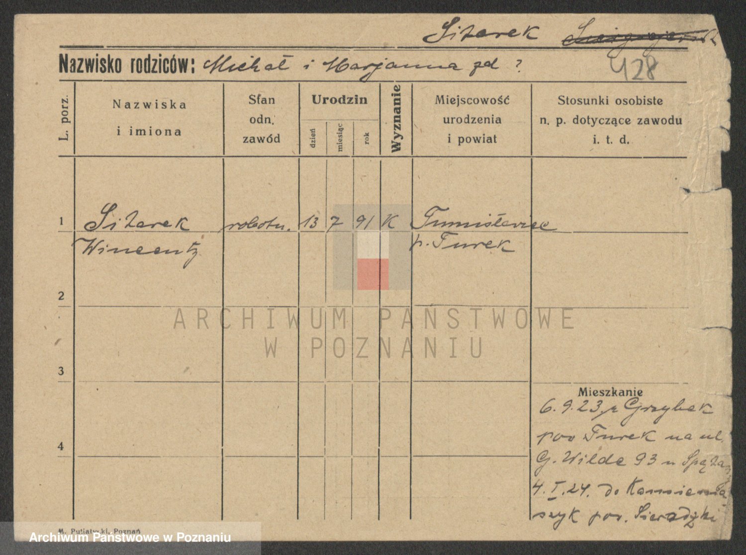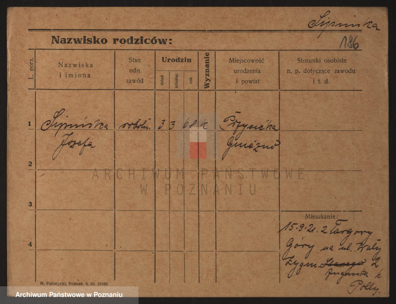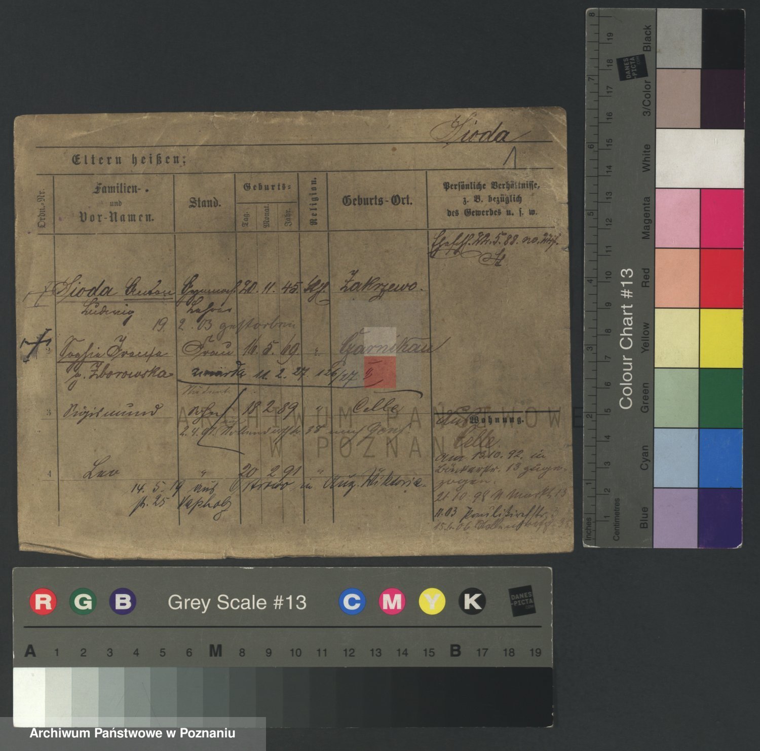 Podgląd karty osobowej dostępny jest po kliknięciu na nazwisko lub ikonkę karty. Można dokonywać powiększenia (ikony na górze) lub przechodzić między kolejnymi skanami (strzałki po bokach).