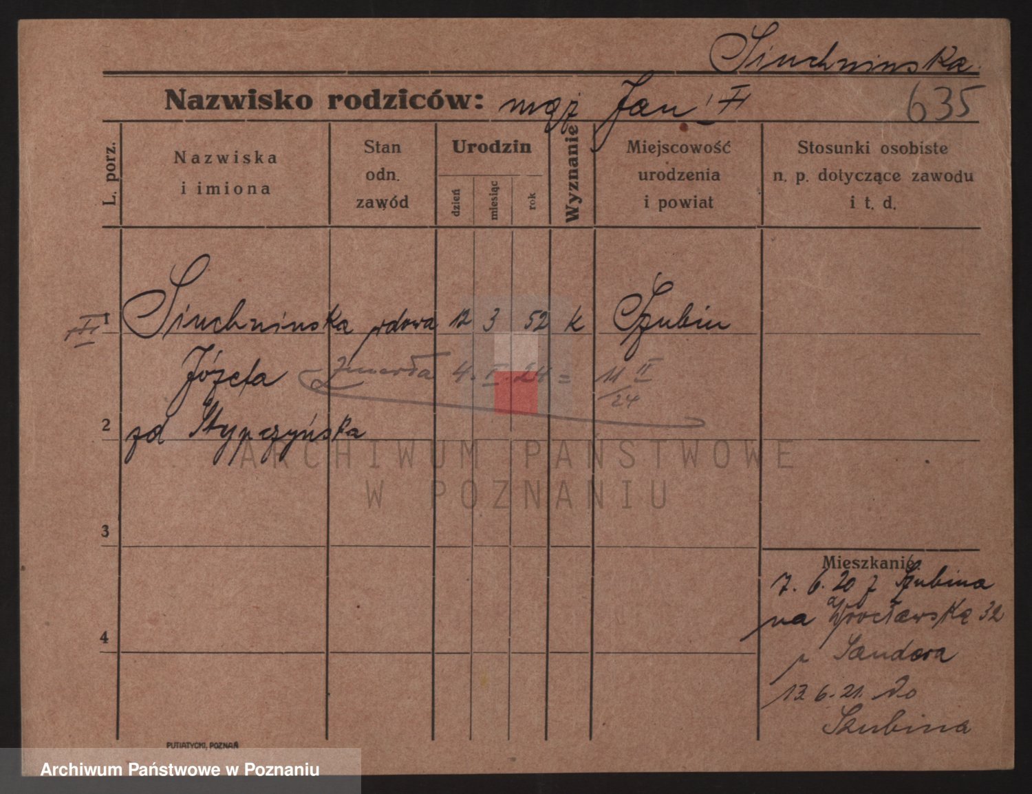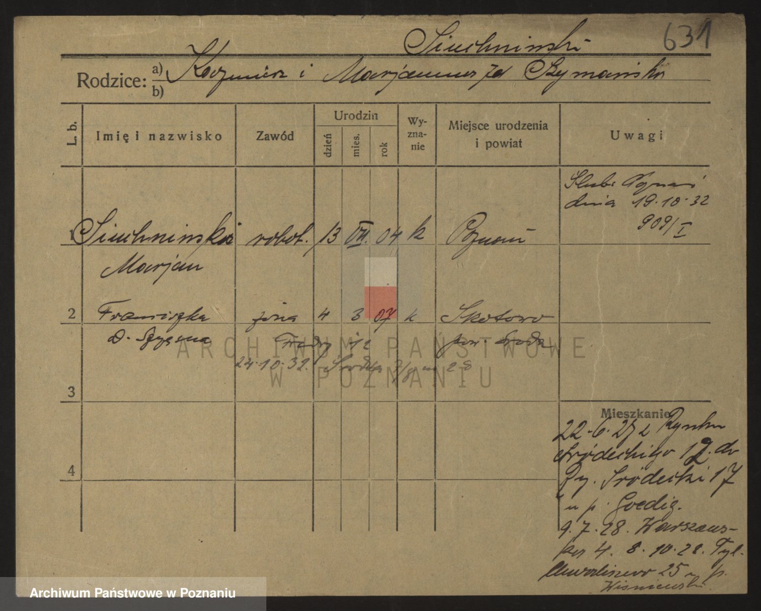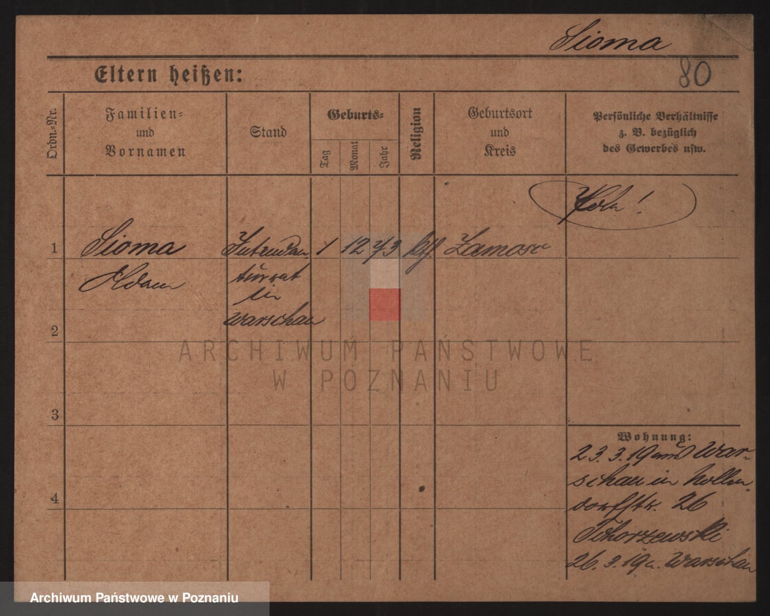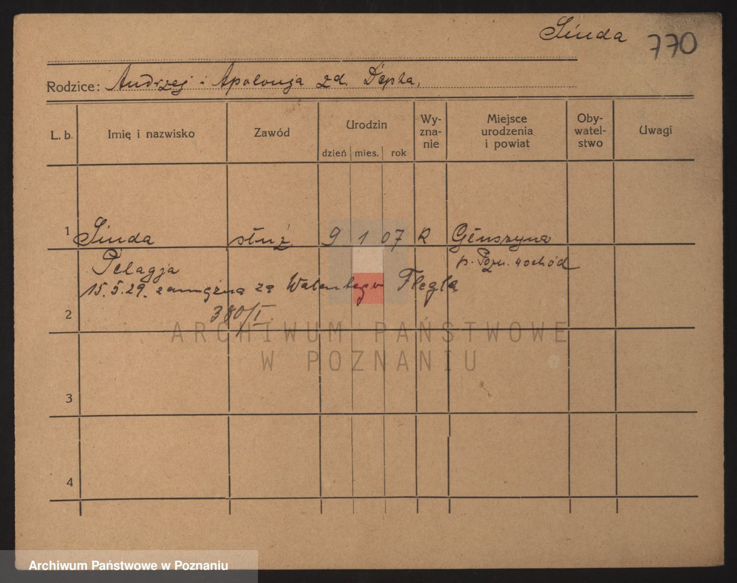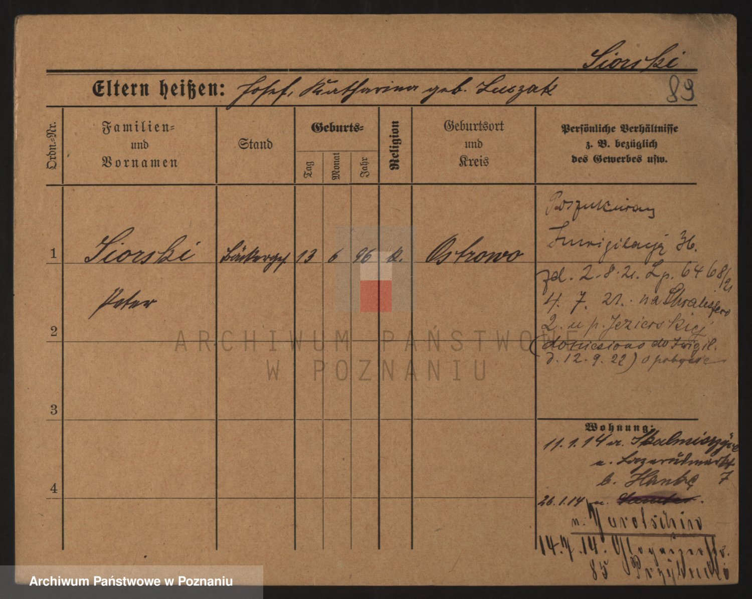 Podgląd karty osobowej dostępny jest po kliknięciu na nazwisko lub ikonkę karty. Można dokonywać powiększenia (ikony na górze) lub przechodzić między kolejnymi skanami (strzałki po bokach).