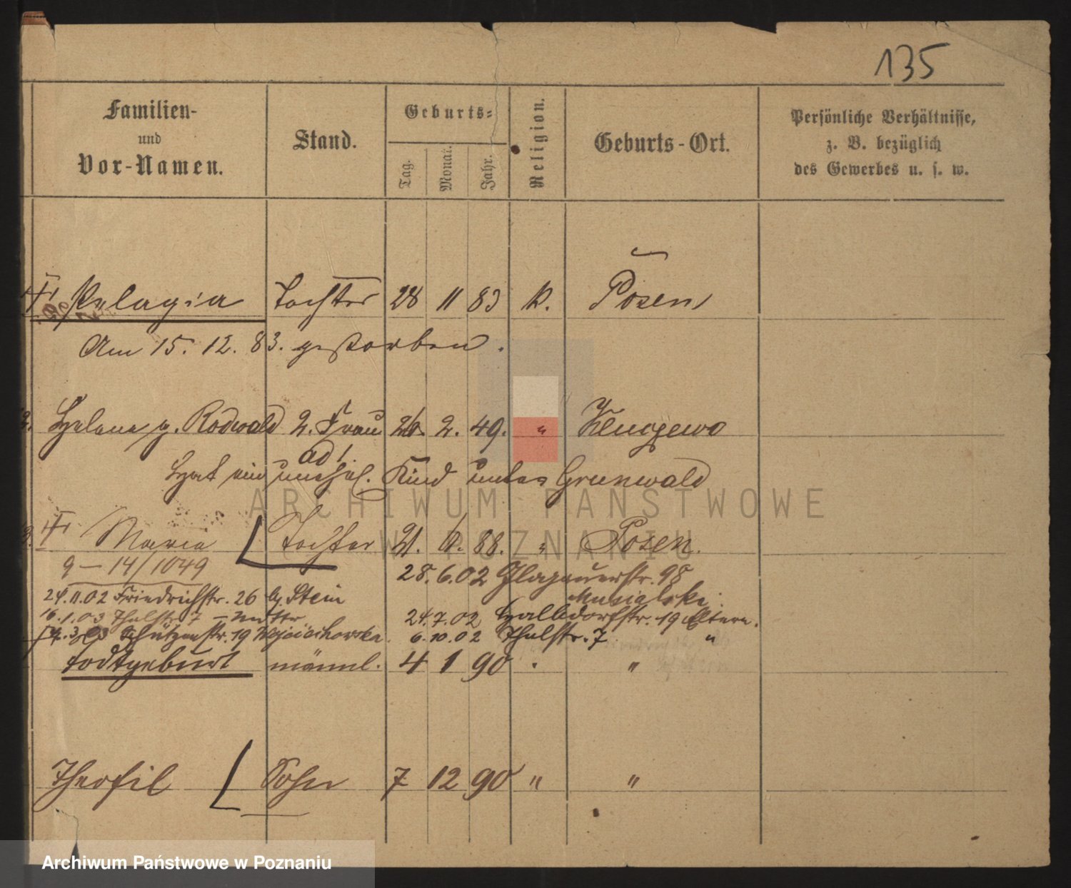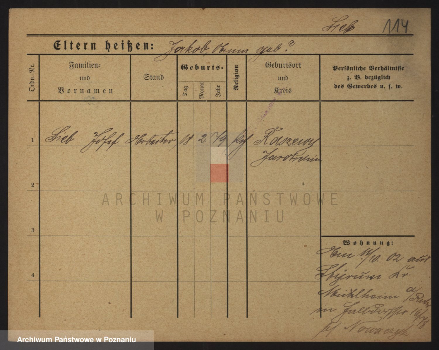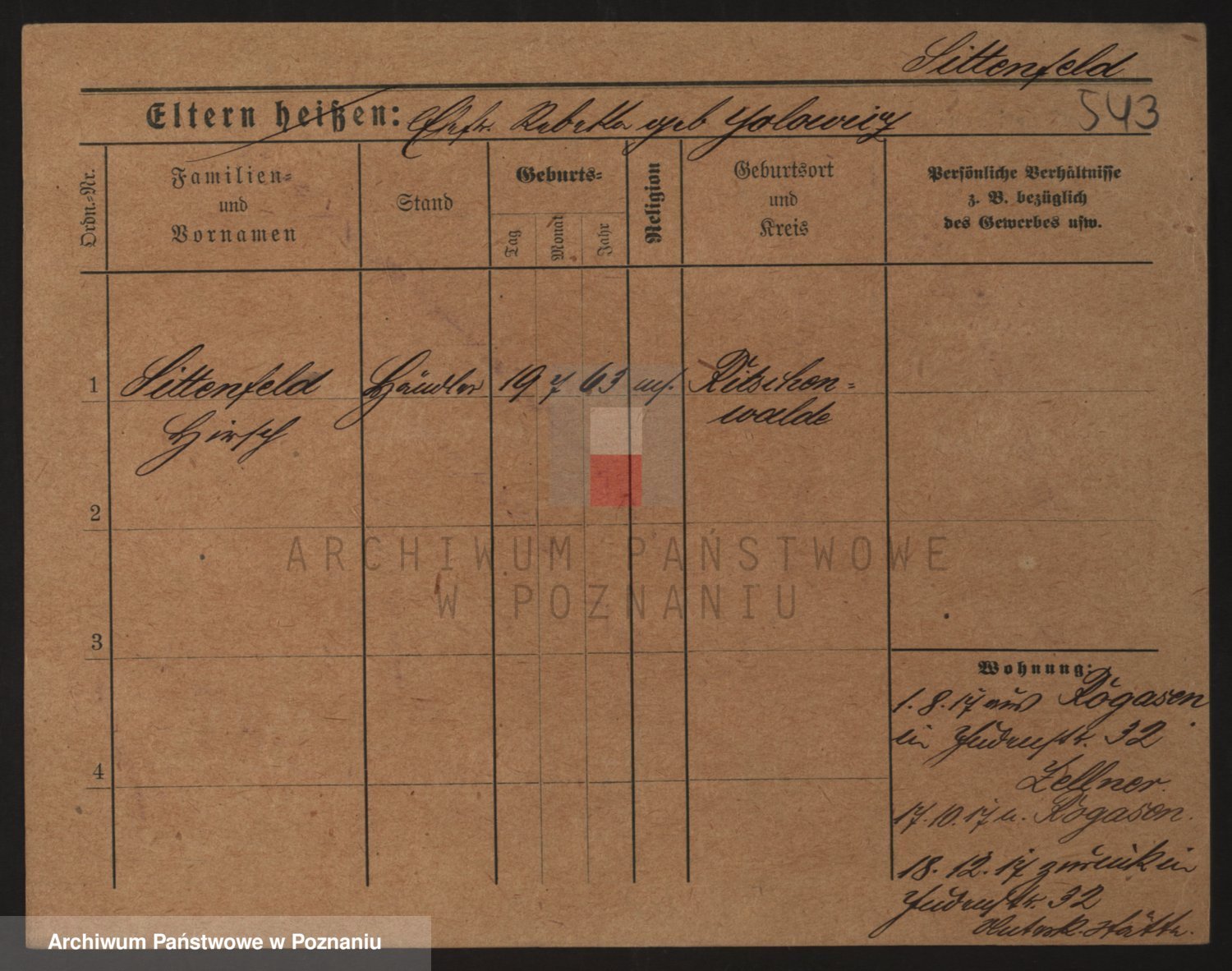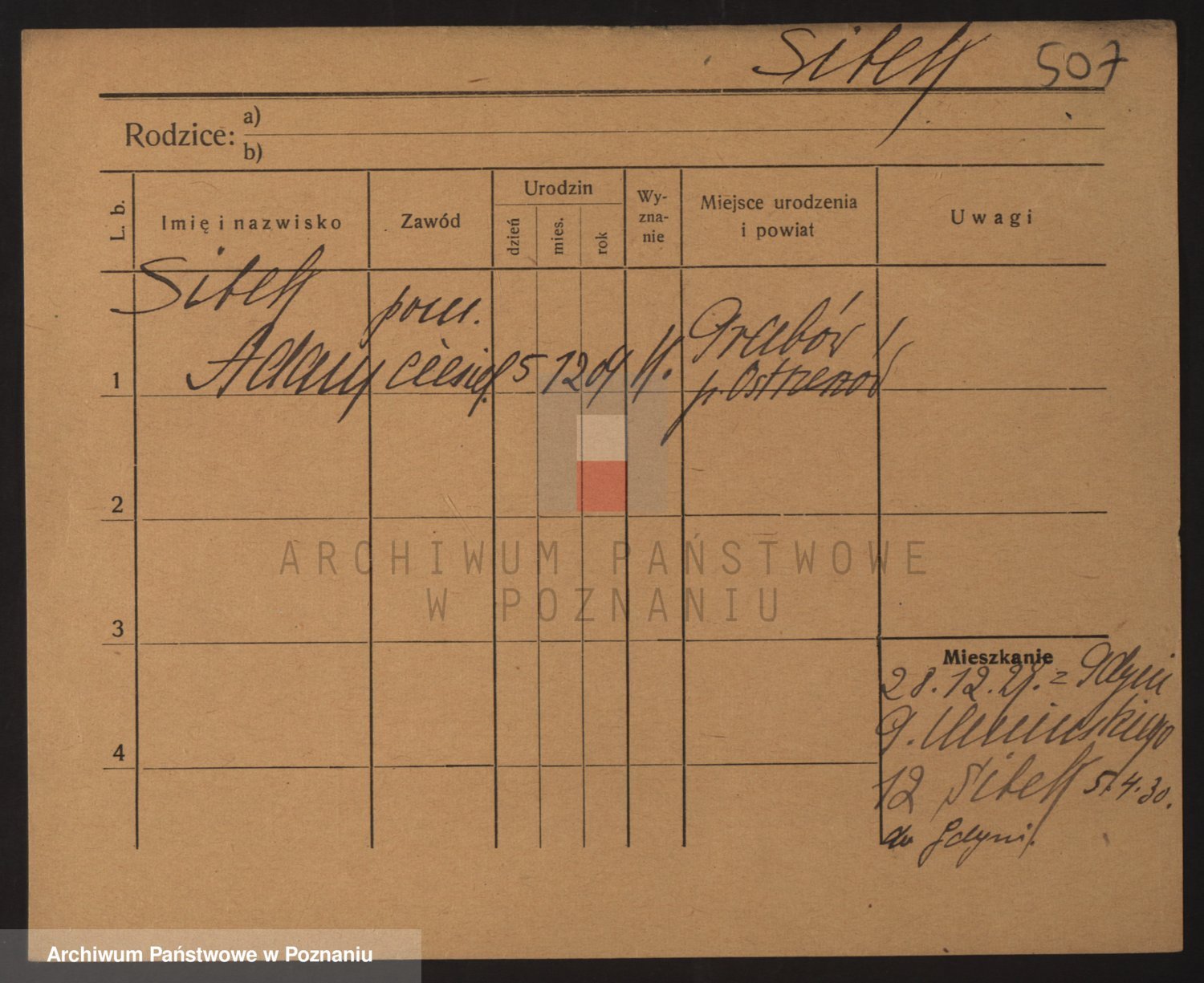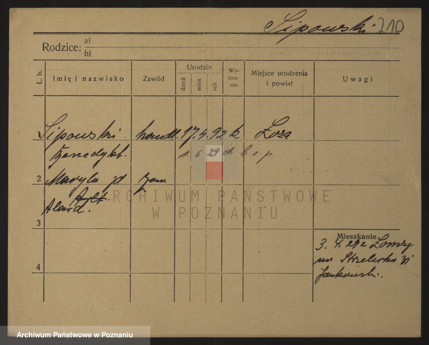 Podgląd karty osobowej dostępny jest po kliknięciu na nazwisko lub ikonkę karty. Można dokonywać powiększenia (ikony na górze) lub przechodzić między kolejnymi skanami (strzałki po bokach).