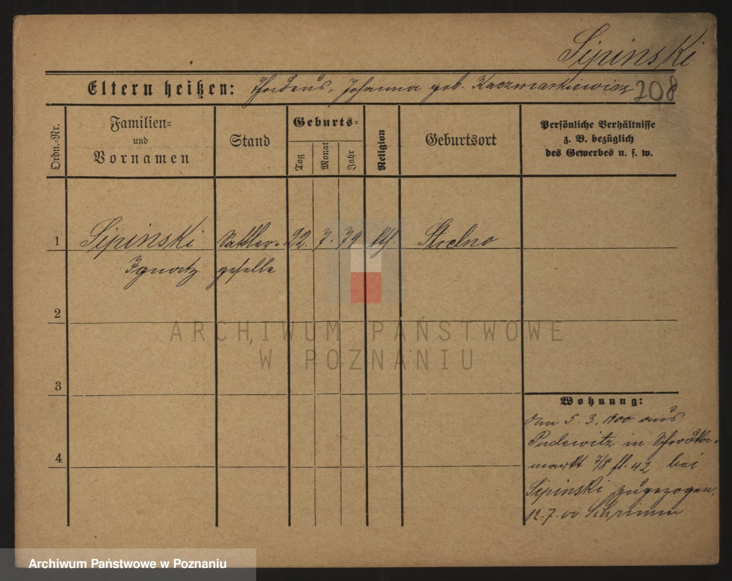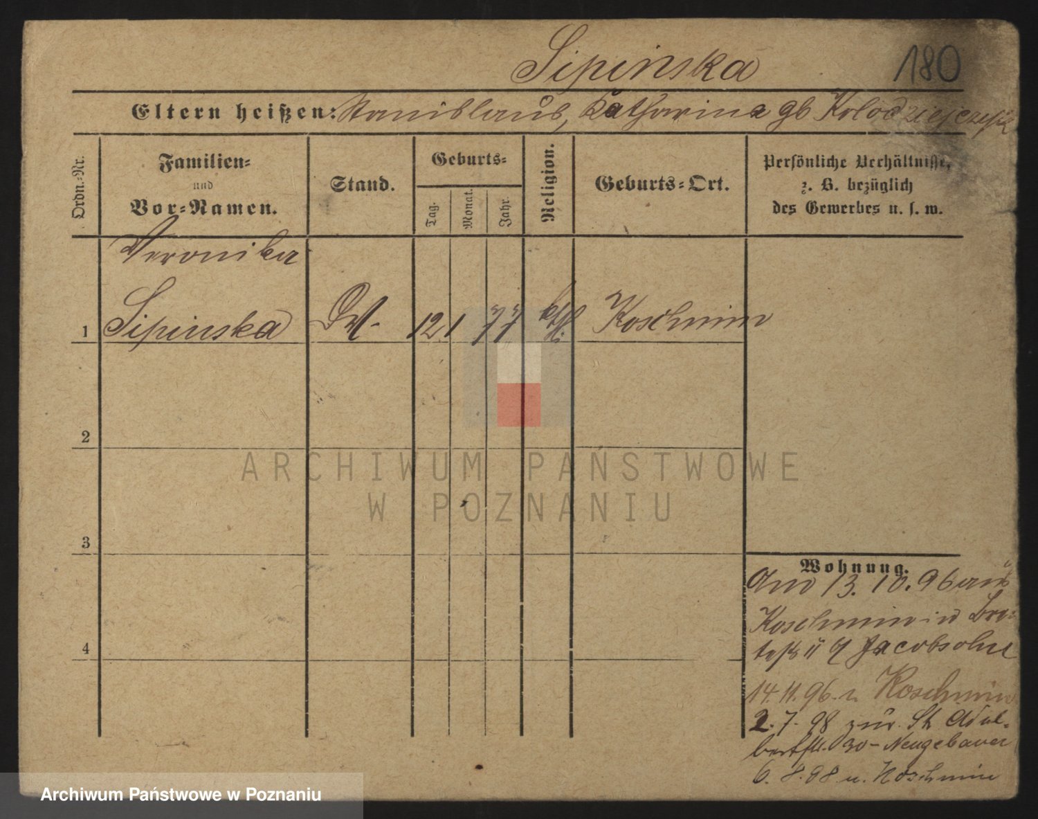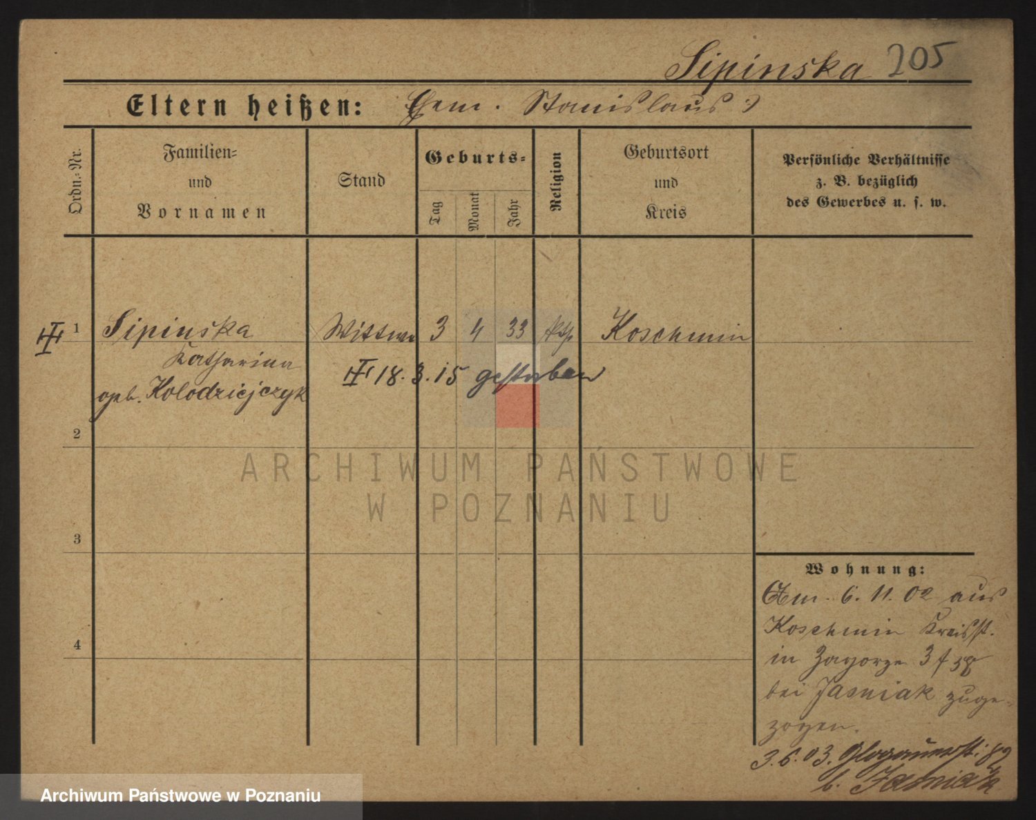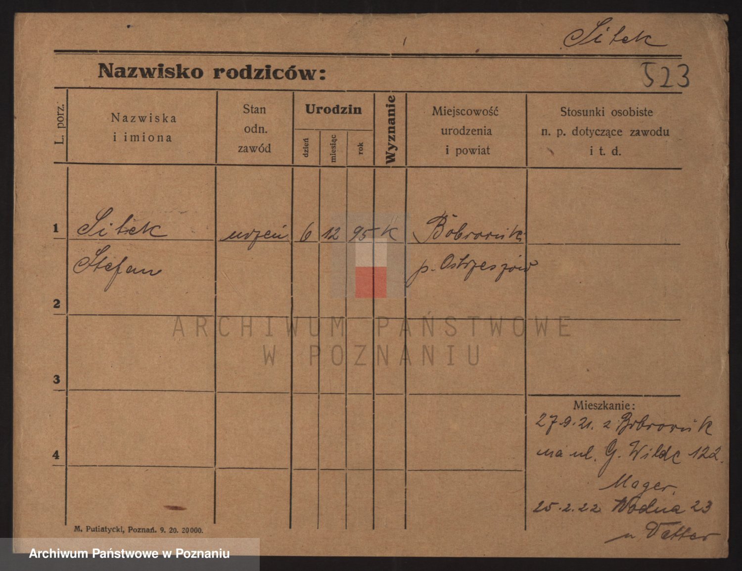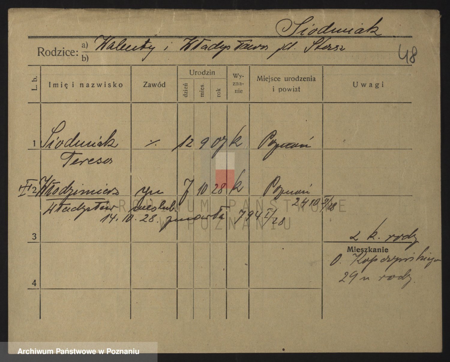 Podgląd karty osobowej dostępny jest po kliknięciu na nazwisko lub ikonkę karty. Można dokonywać powiększenia (ikony na górze) lub przechodzić między kolejnymi skanami (strzałki po bokach).