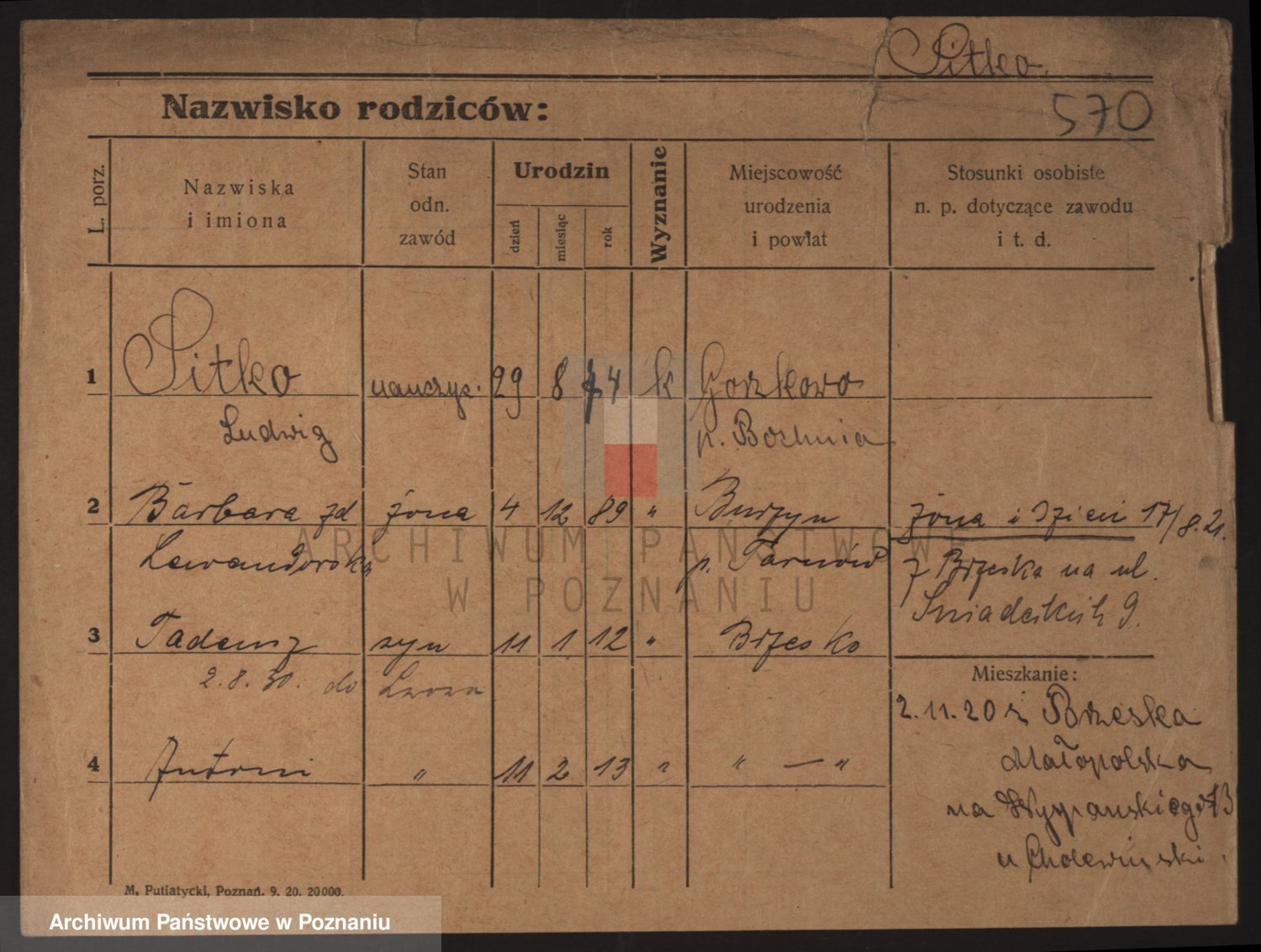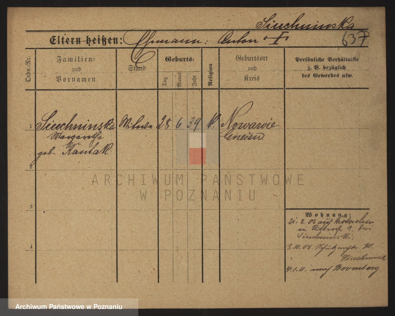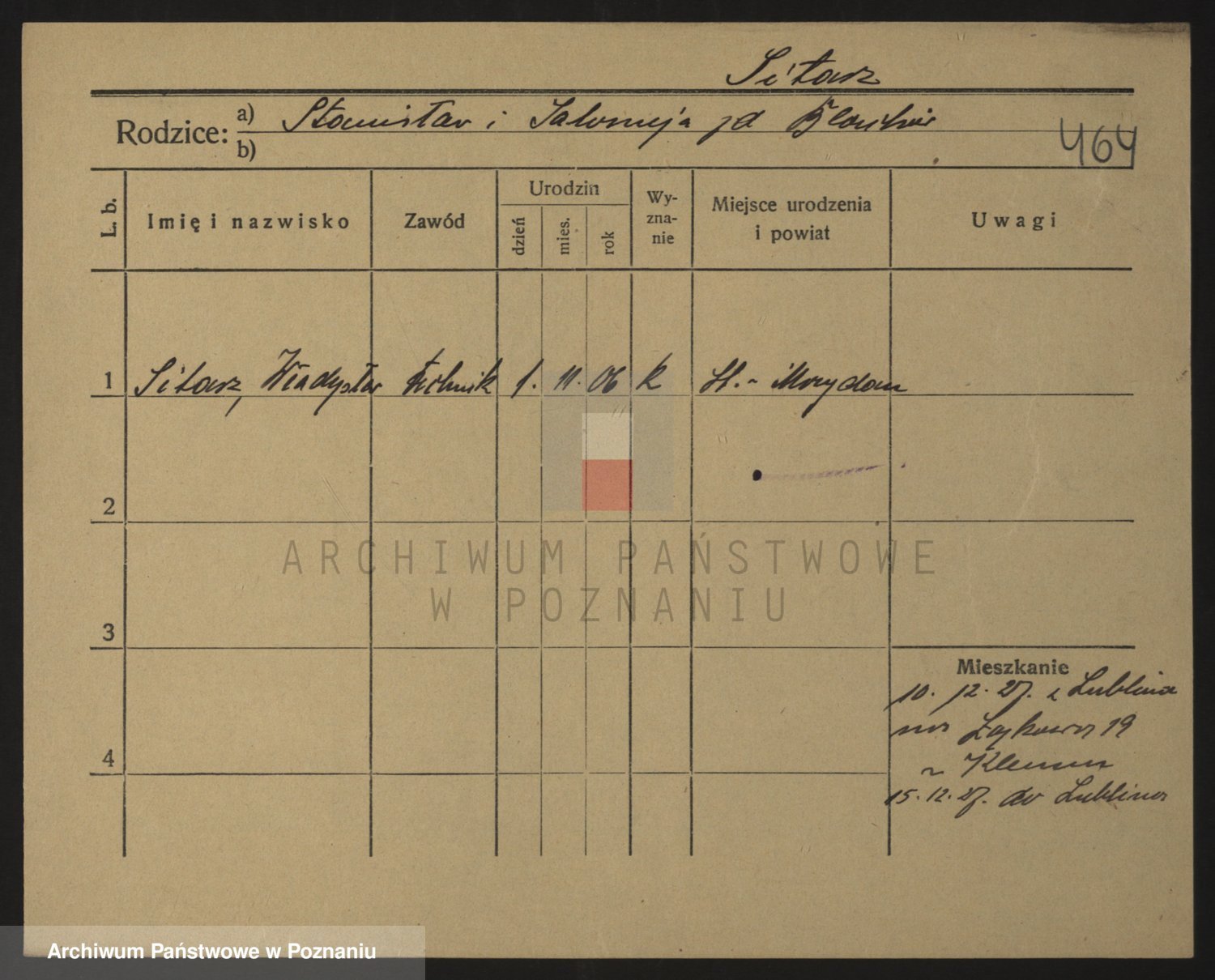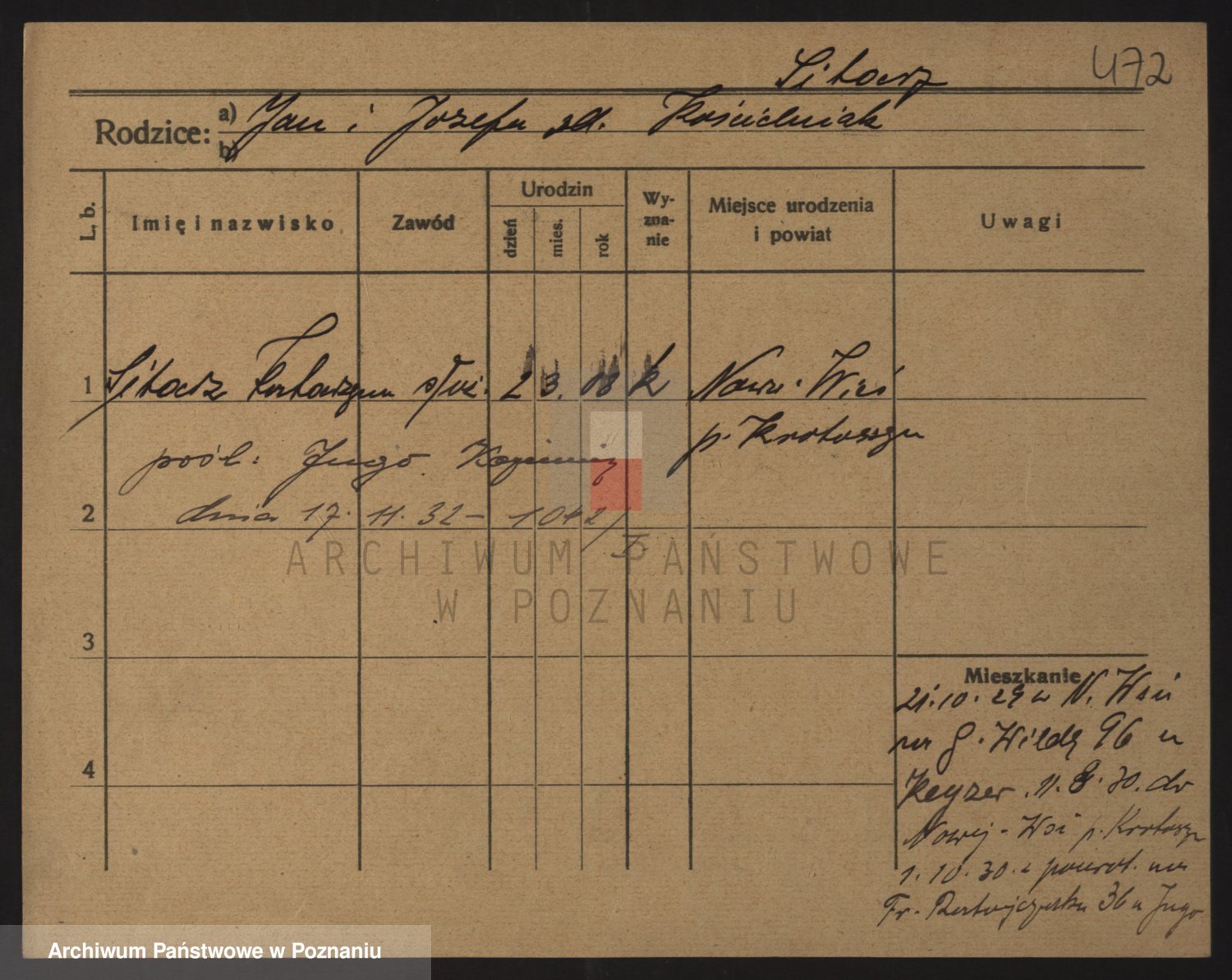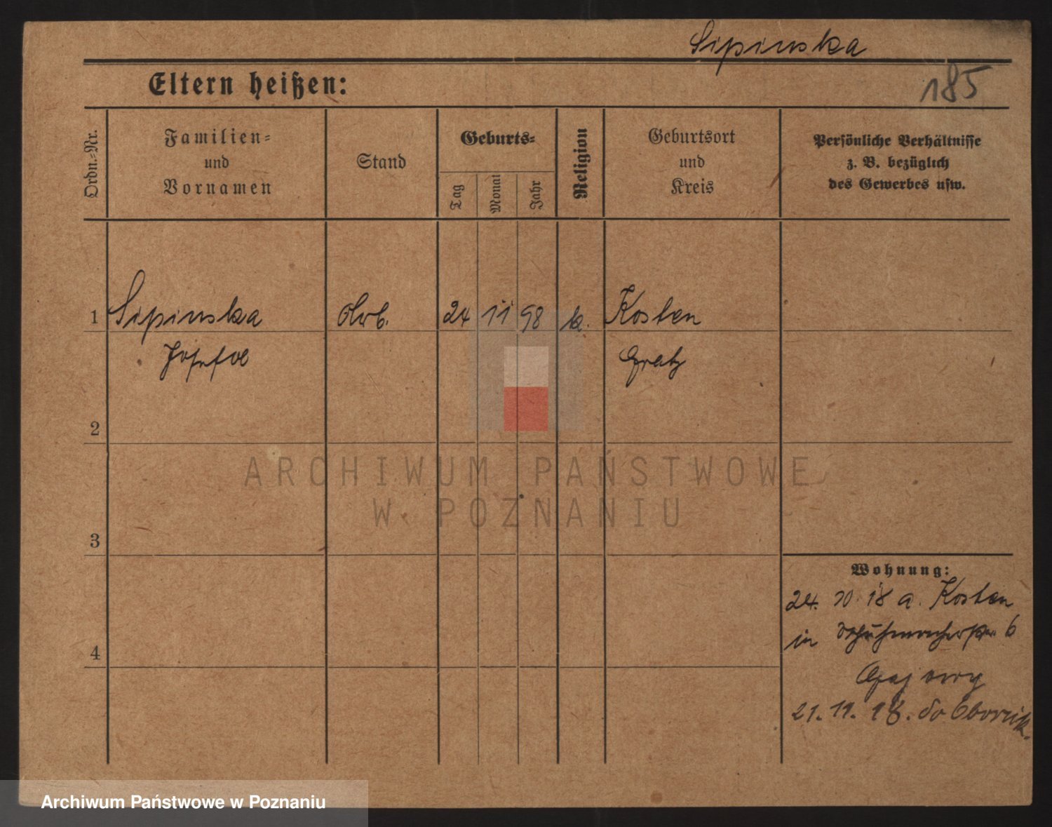 Podgląd karty osobowej dostępny jest po kliknięciu na nazwisko lub ikonkę karty. Można dokonywać powiększenia (ikony na górze) lub przechodzić między kolejnymi skanami (strzałki po bokach).