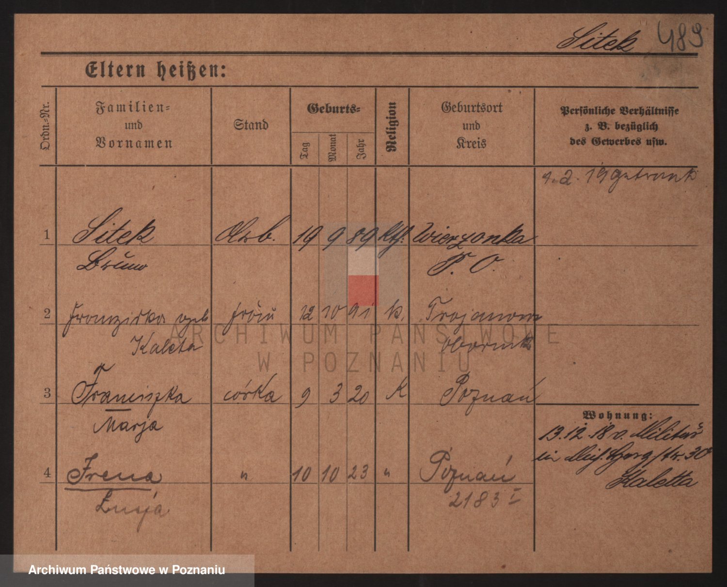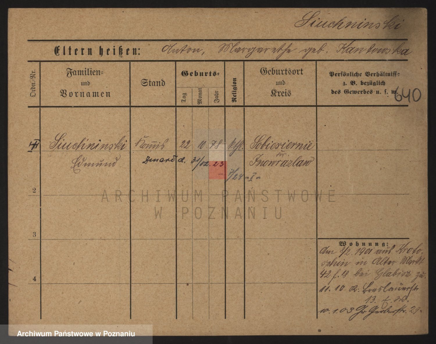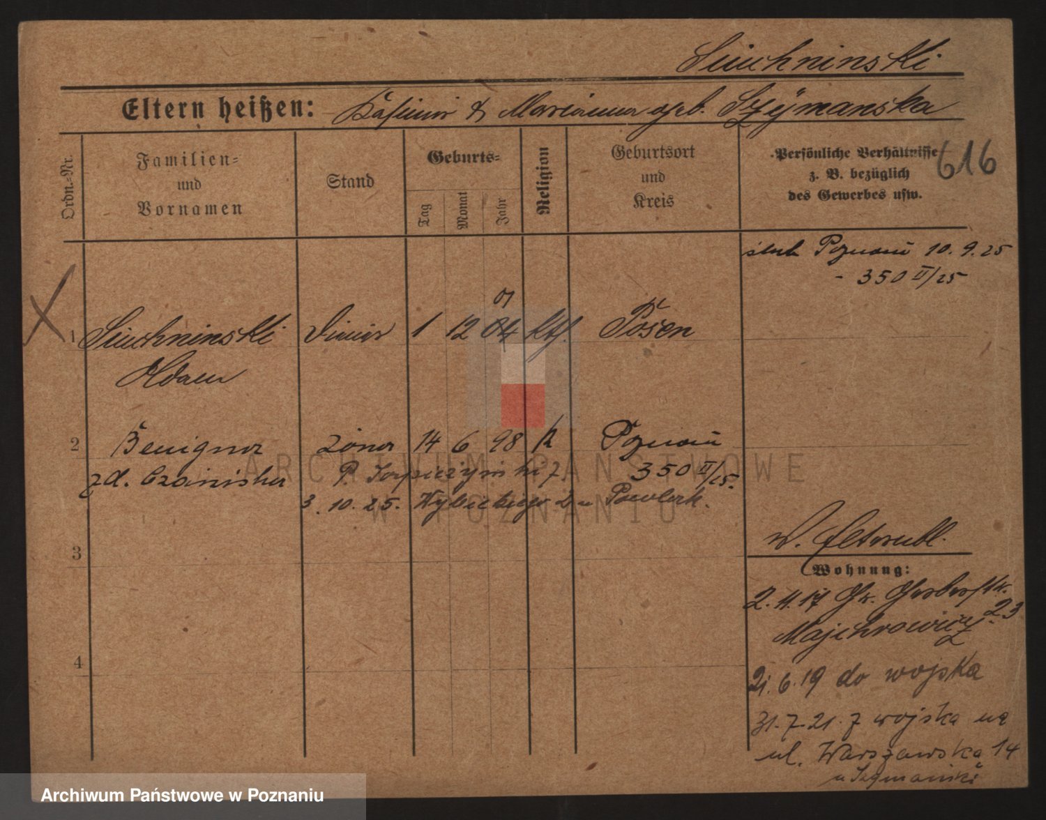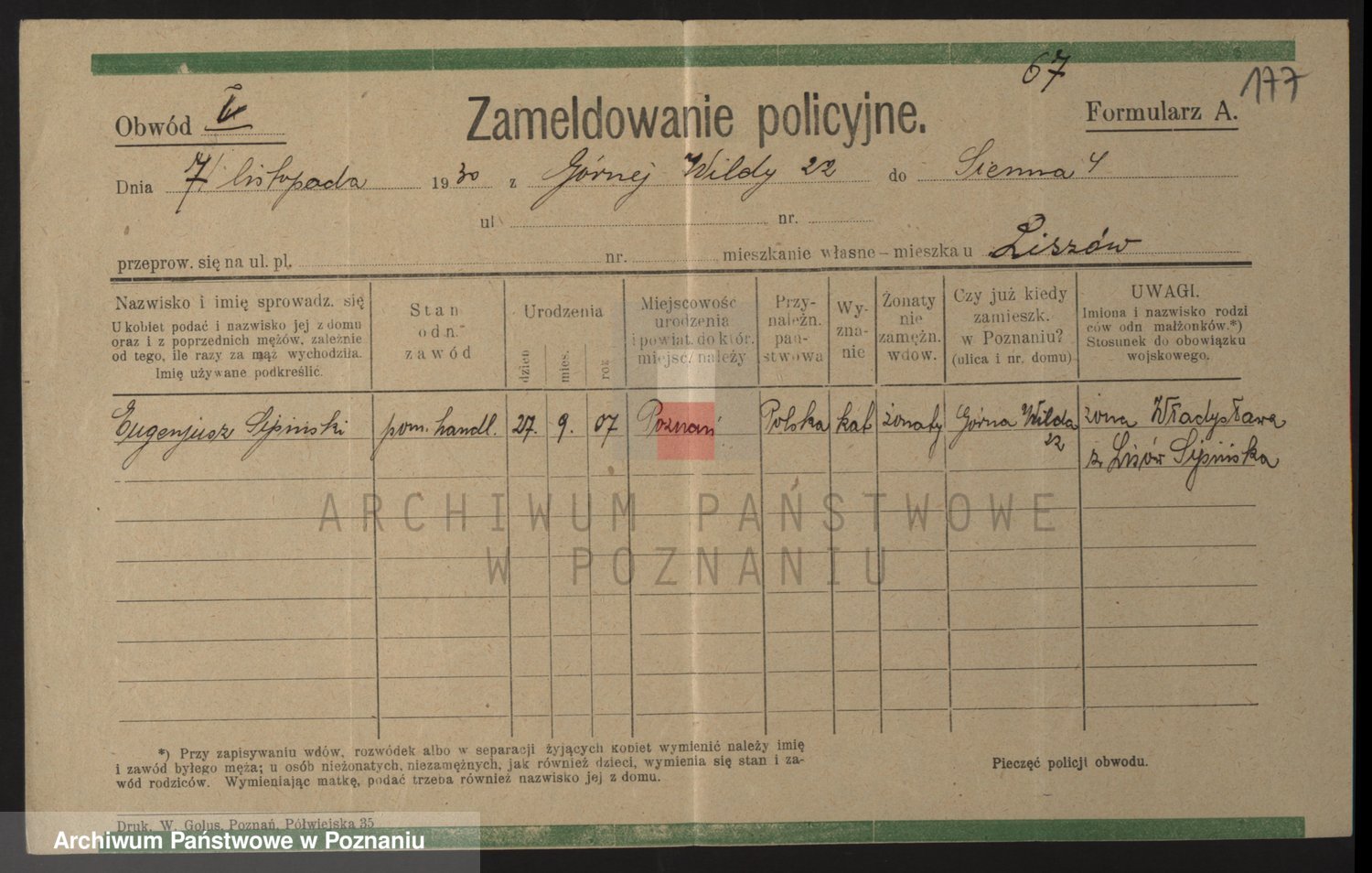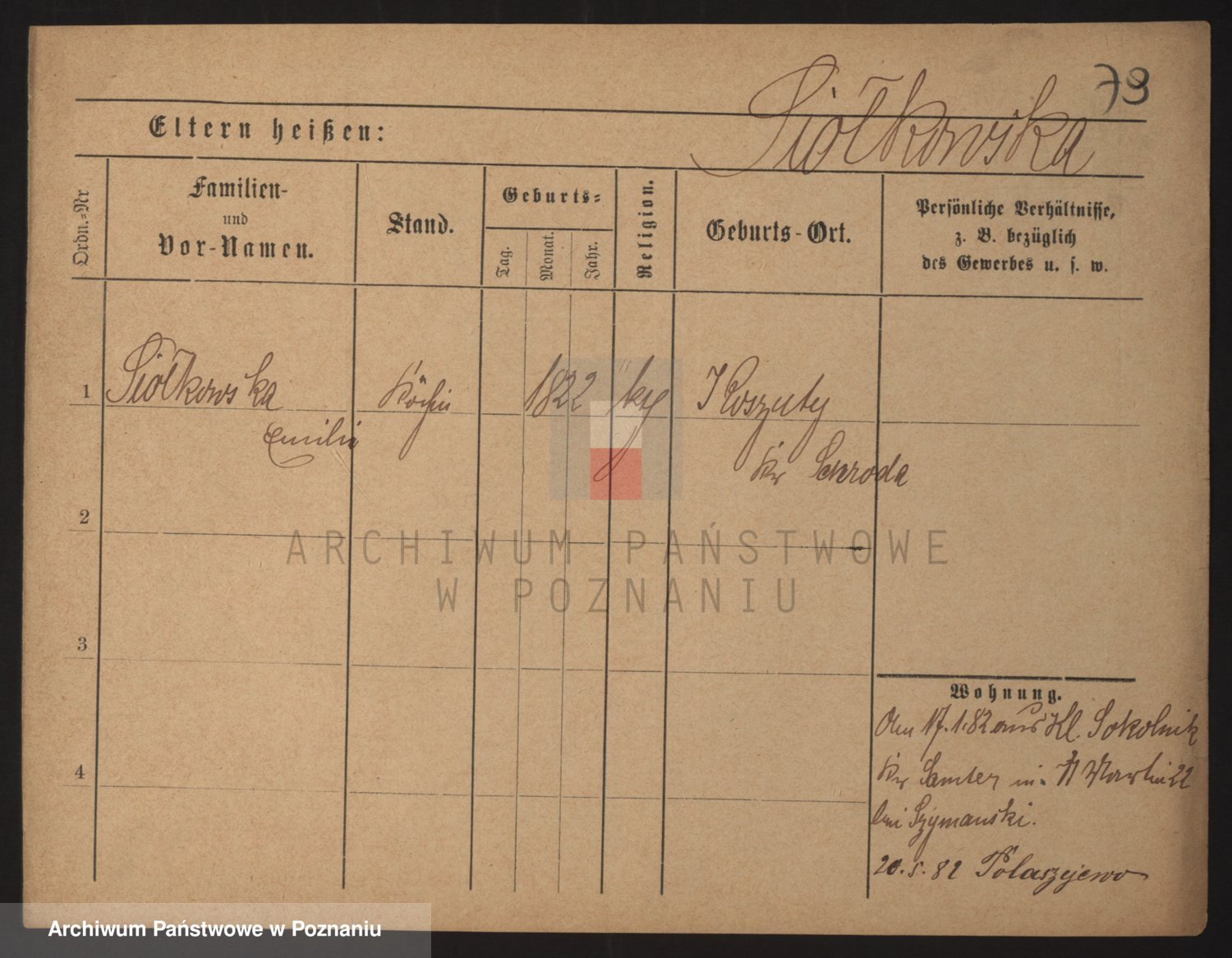 Podgląd karty osobowej dostępny jest po kliknięciu na nazwisko lub ikonkę karty. Można dokonywać powiększenia (ikony na górze) lub przechodzić między kolejnymi skanami (strzałki po bokach).