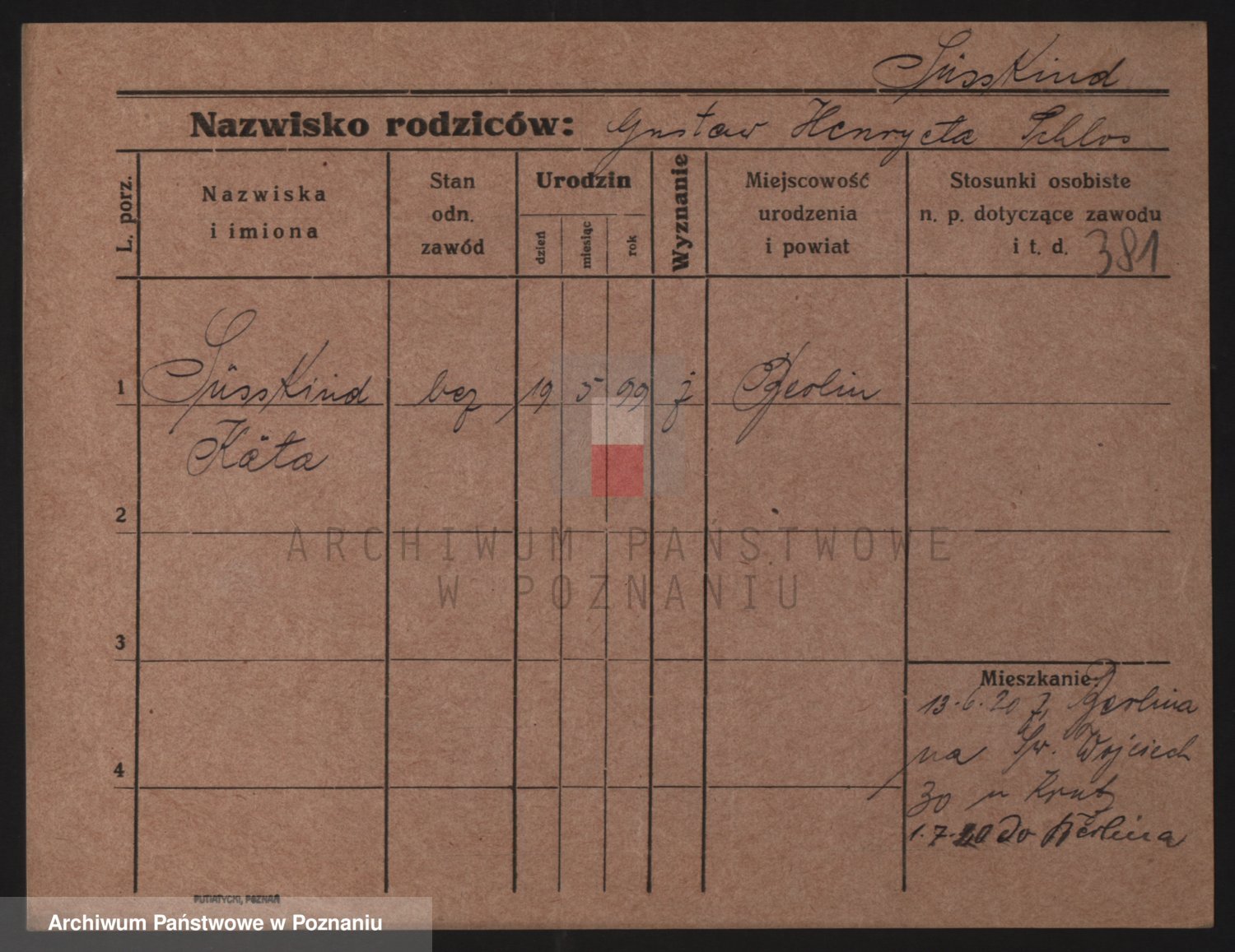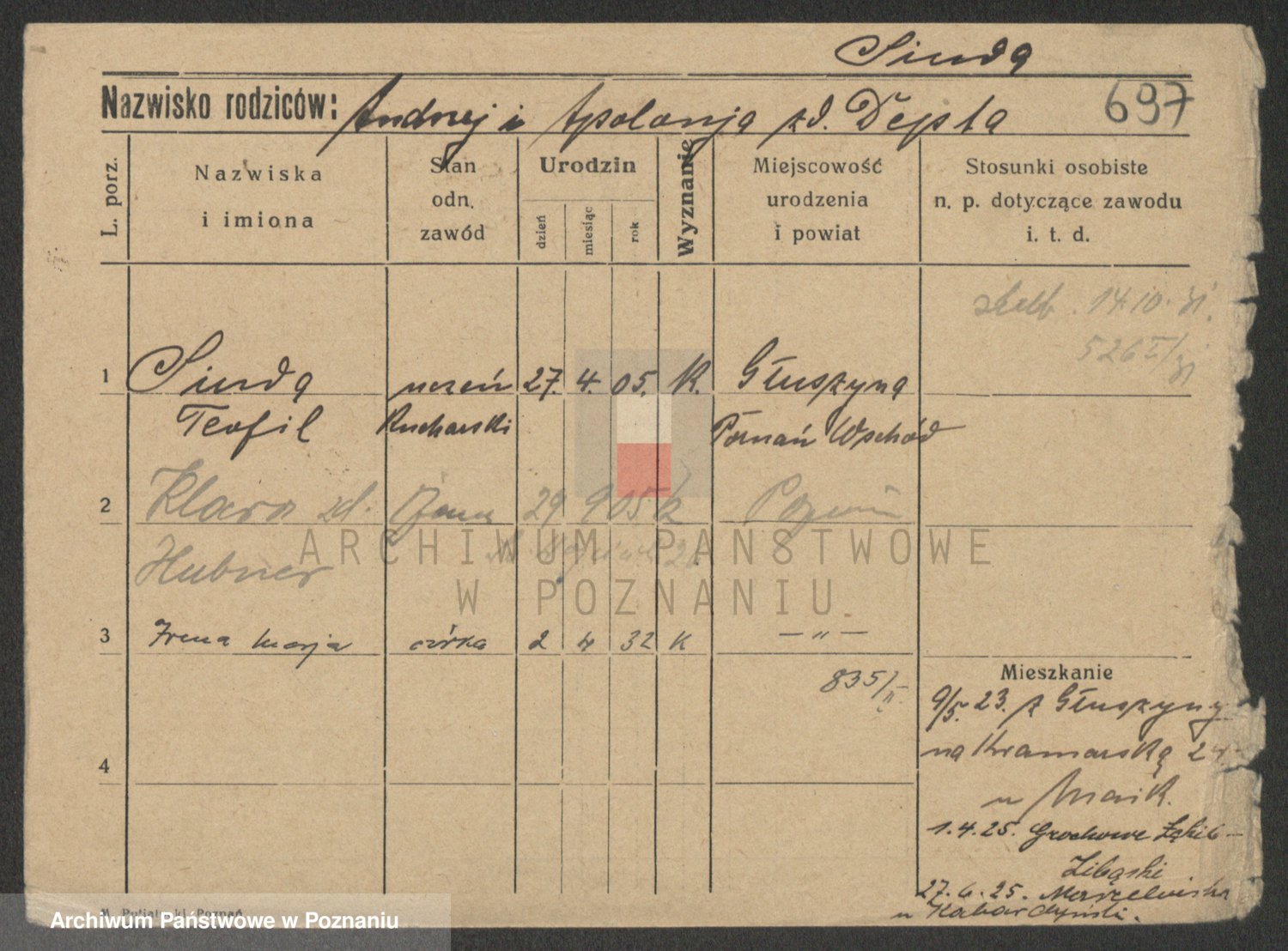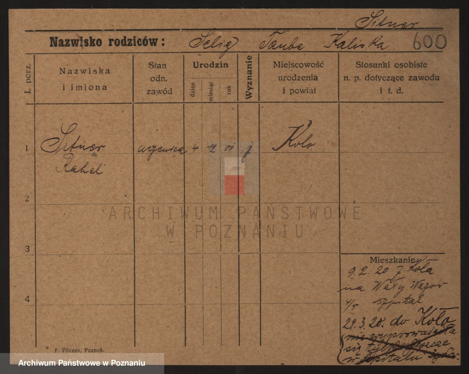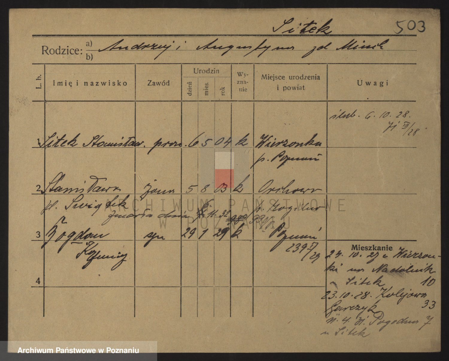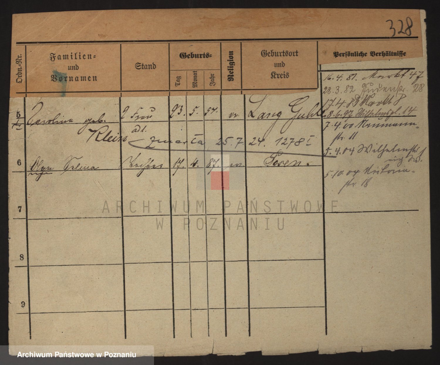 Podgląd karty osobowej dostępny jest po kliknięciu na nazwisko lub ikonkę karty. Można dokonywać powiększenia (ikony na górze) lub przechodzić między kolejnymi skanami (strzałki po bokach).