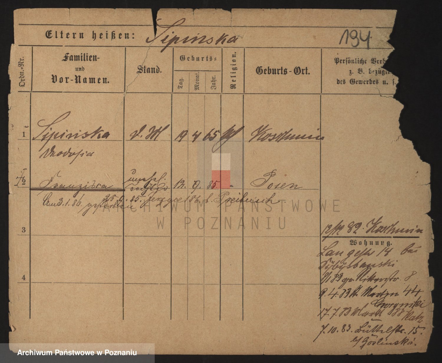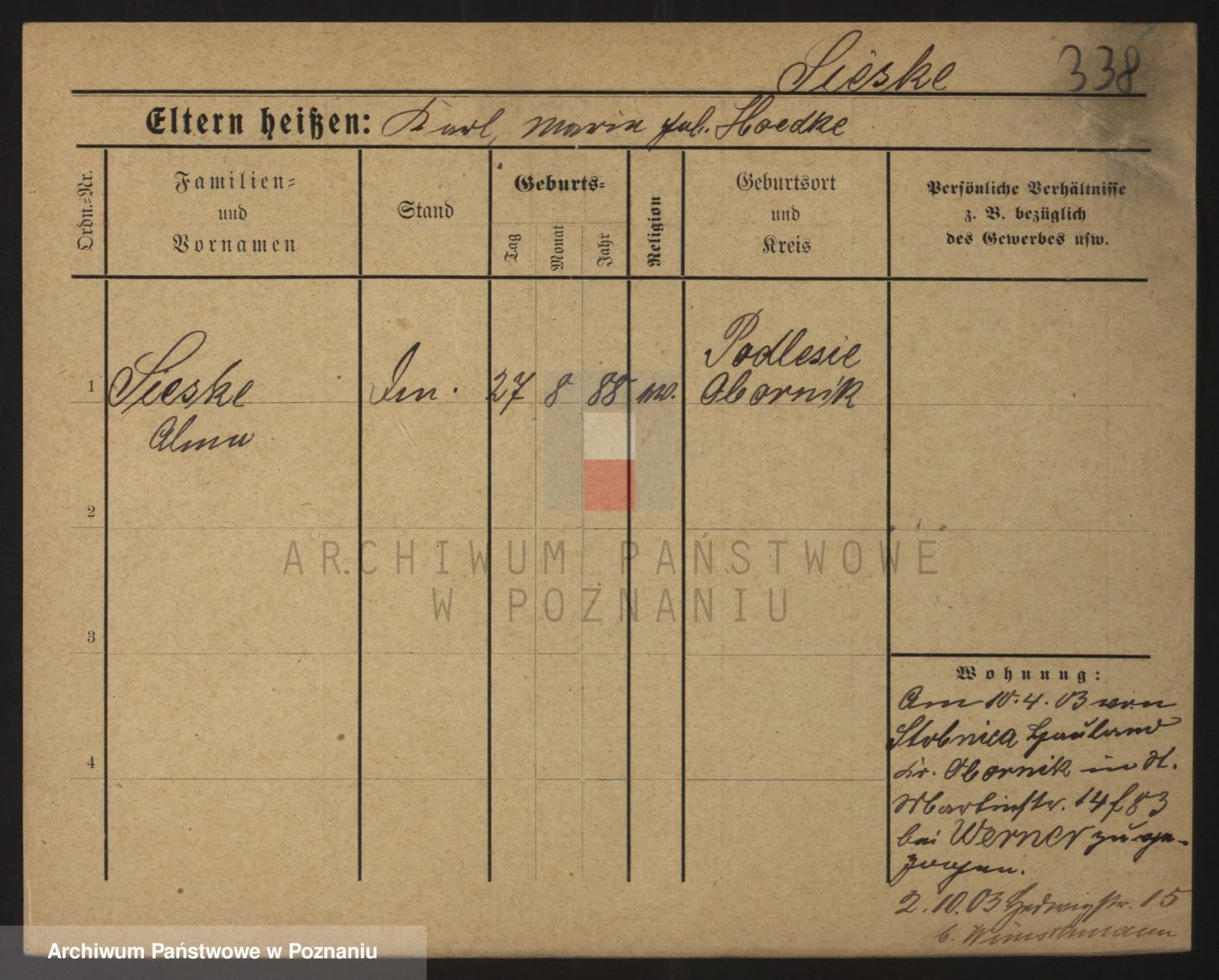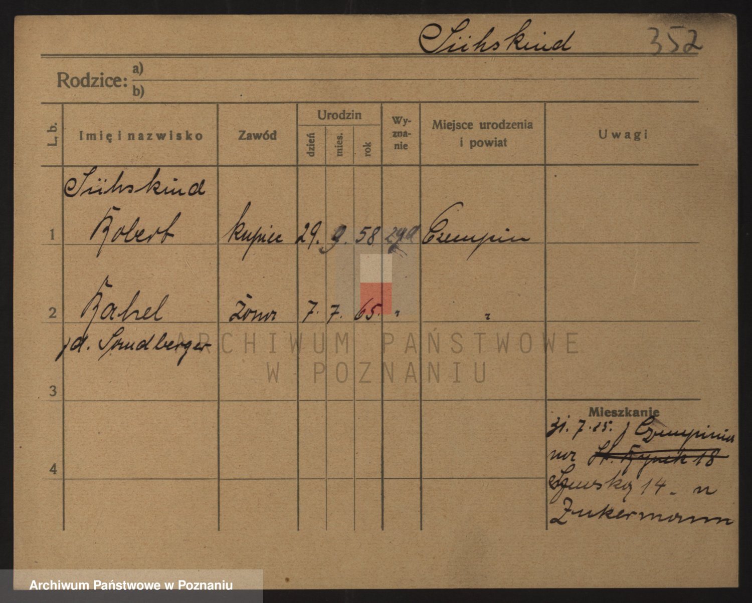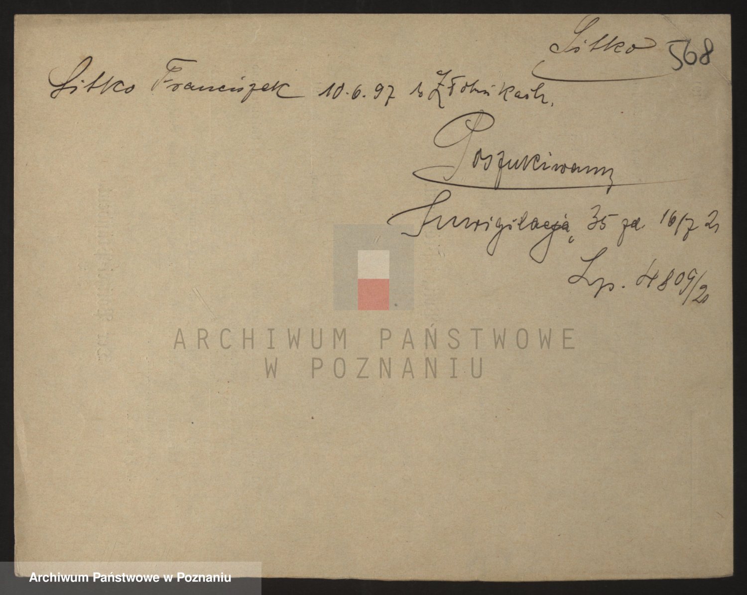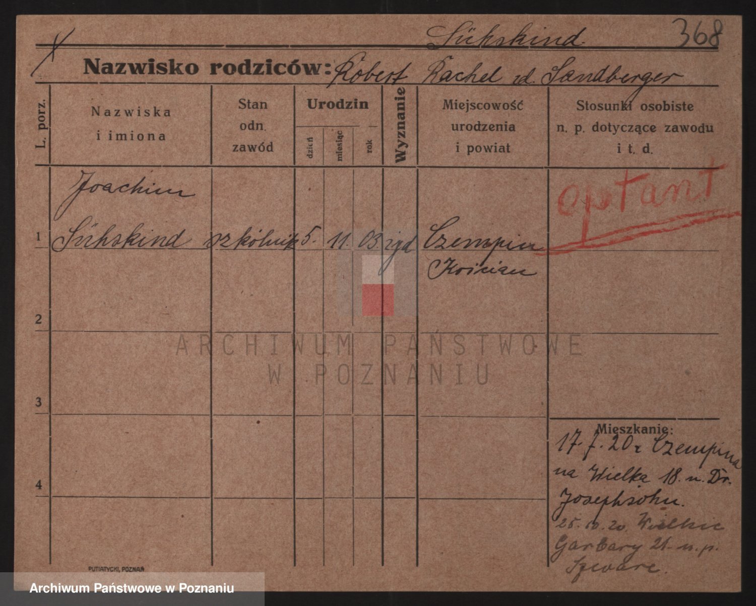 Podgląd karty osobowej dostępny jest po kliknięciu na nazwisko lub ikonkę karty. Można dokonywać powiększenia (ikony na górze) lub przechodzić między kolejnymi skanami (strzałki po bokach).
