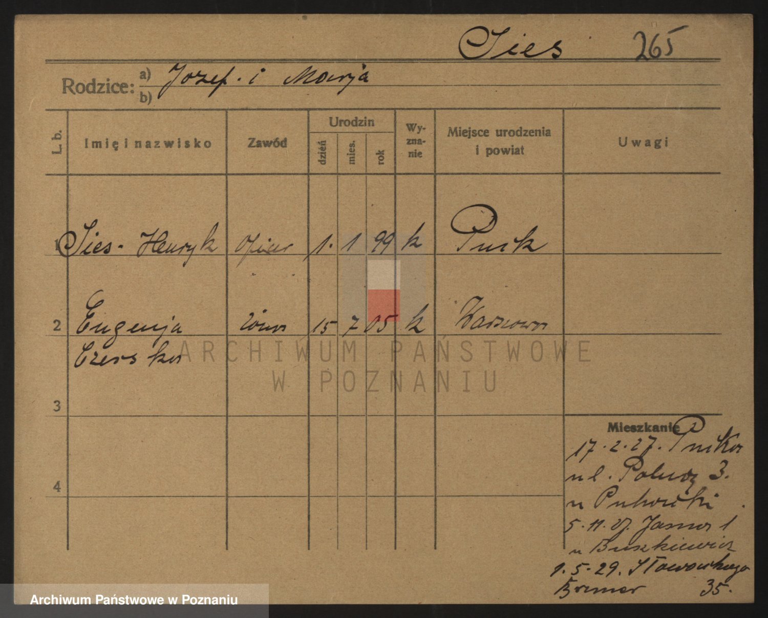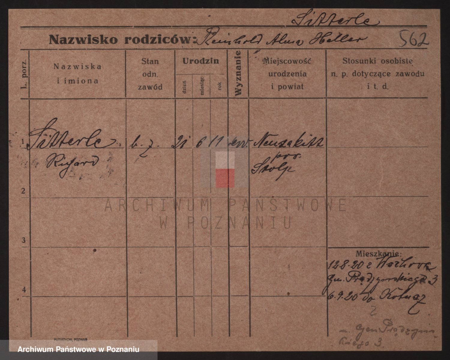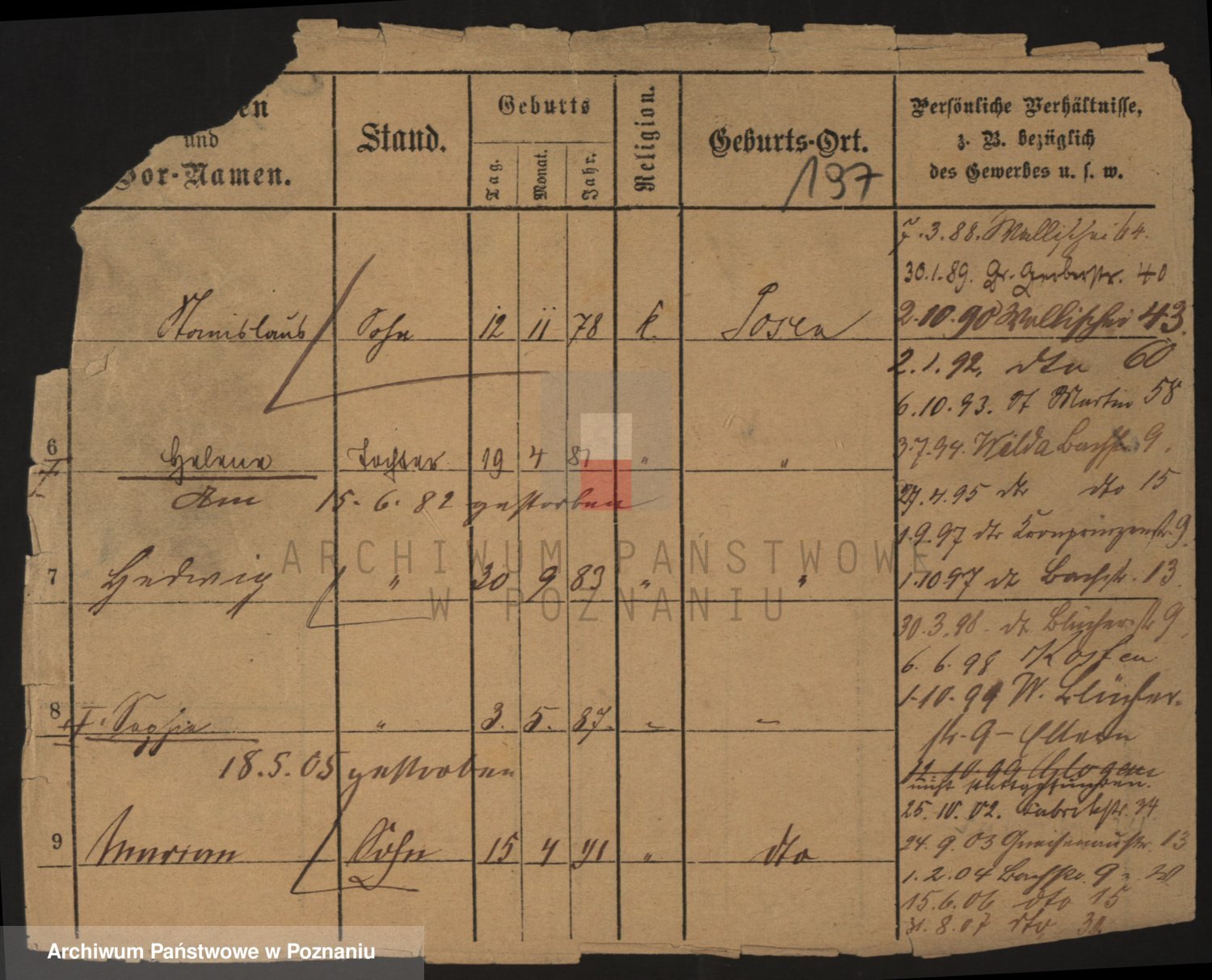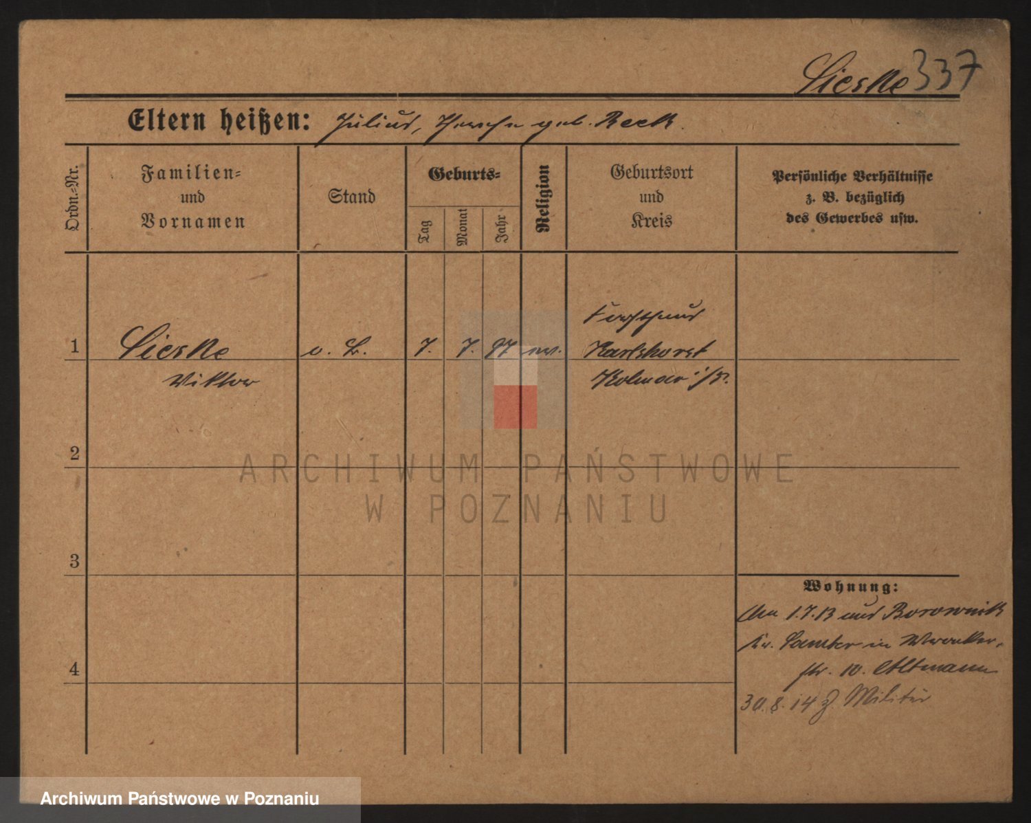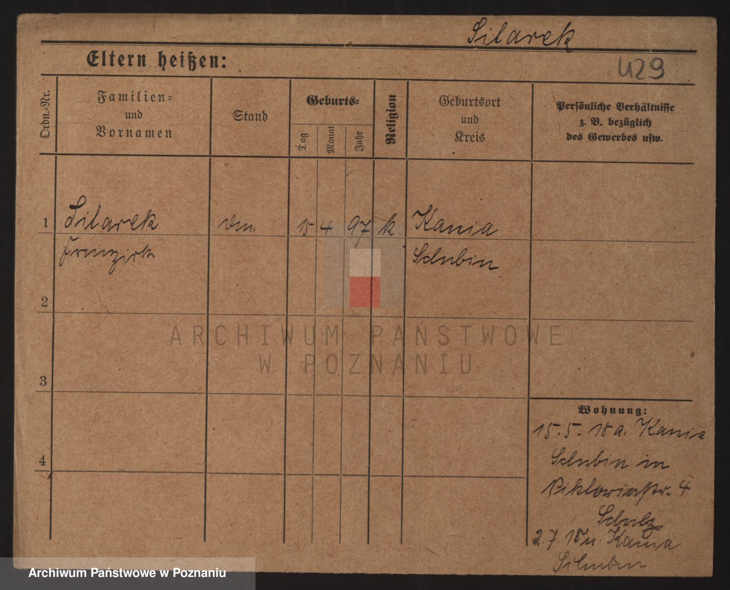 Podgląd karty osobowej dostępny jest po kliknięciu na nazwisko lub ikonkę karty. Można dokonywać powiększenia (ikony na górze) lub przechodzić między kolejnymi skanami (strzałki po bokach).
