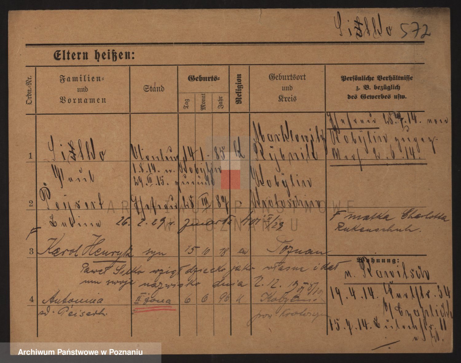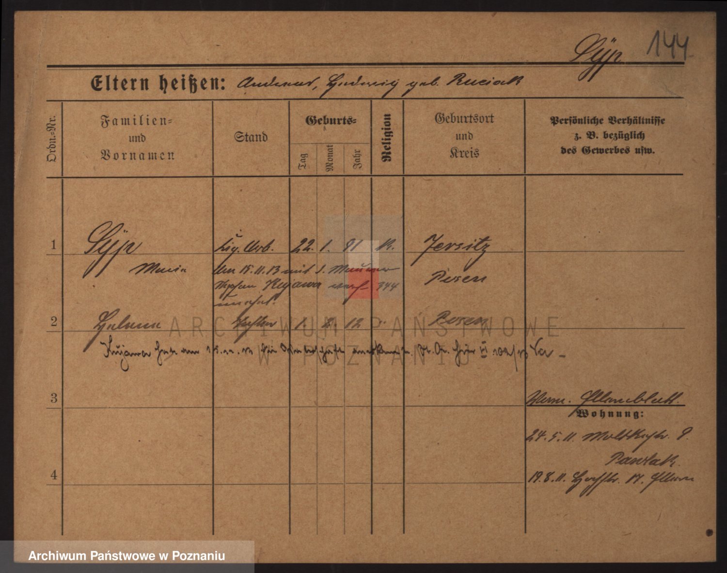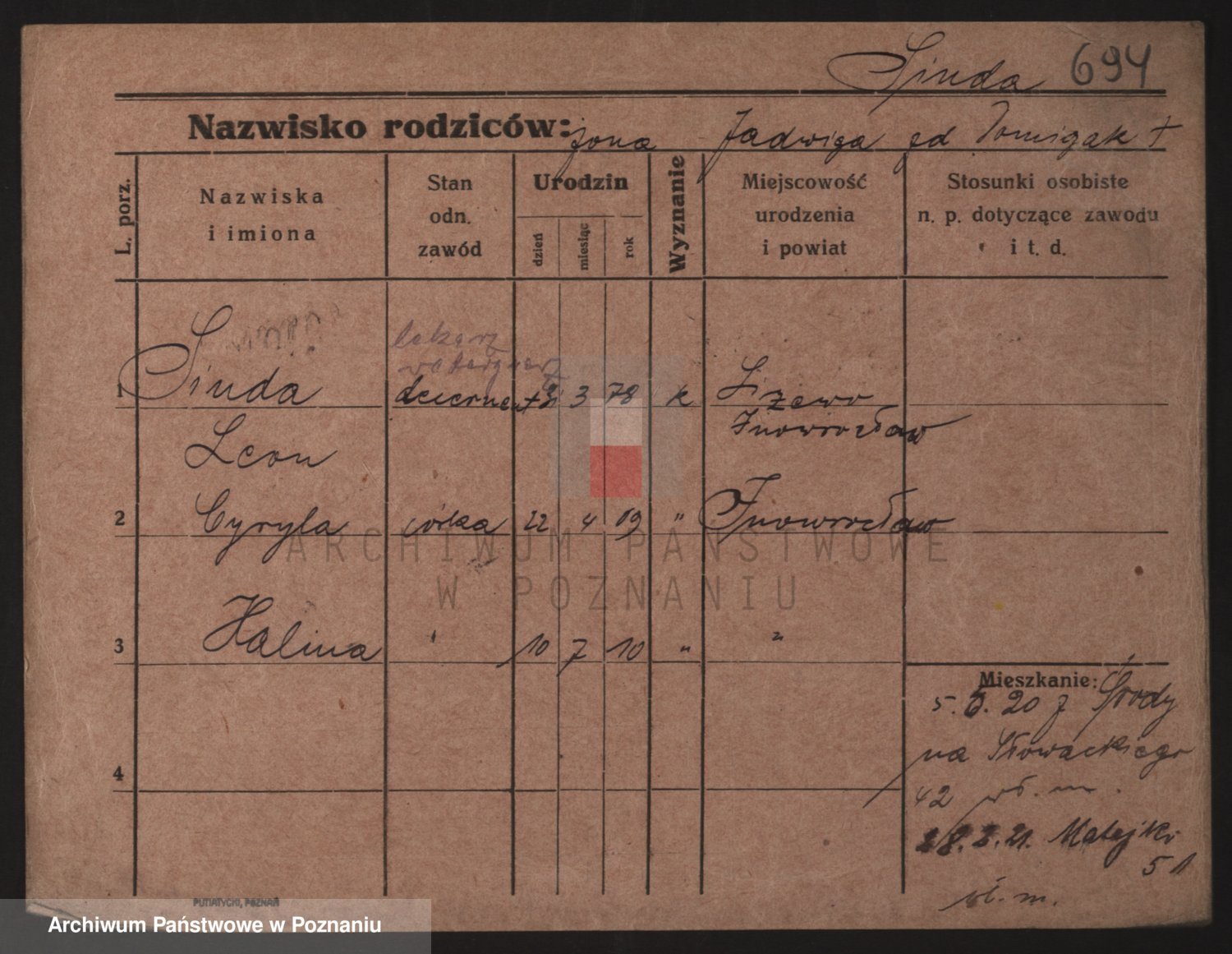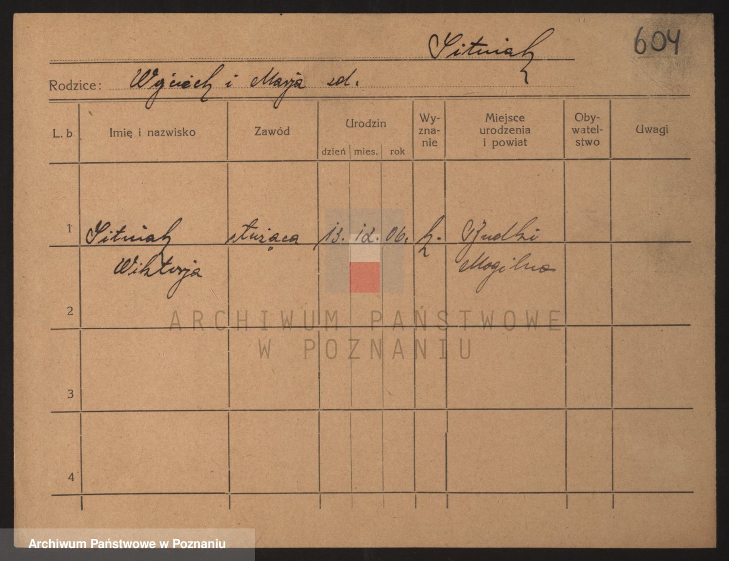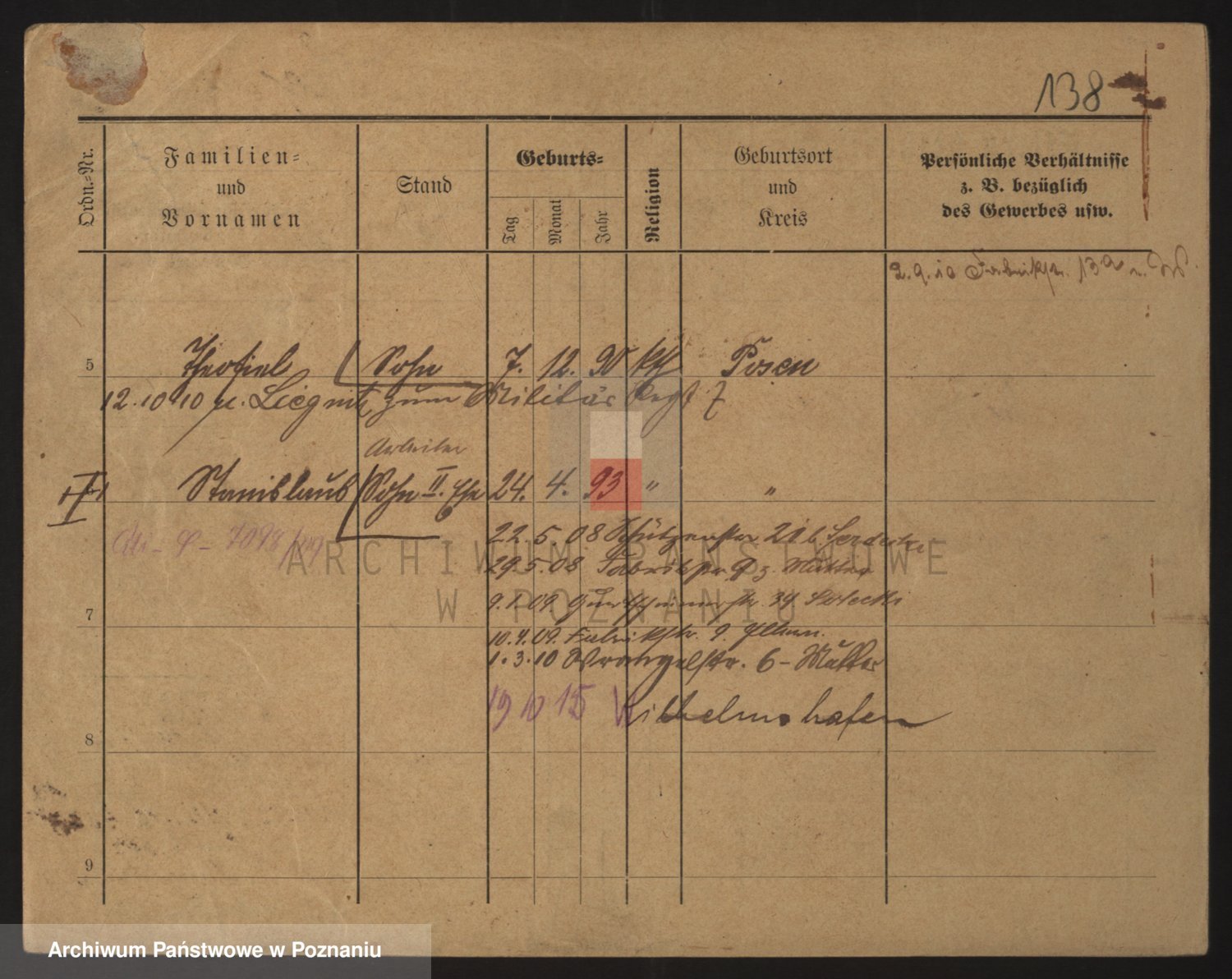 Podgląd karty osobowej dostępny jest po kliknięciu na nazwisko lub ikonkę karty. Można dokonywać powiększenia (ikony na górze) lub przechodzić między kolejnymi skanami (strzałki po bokach).