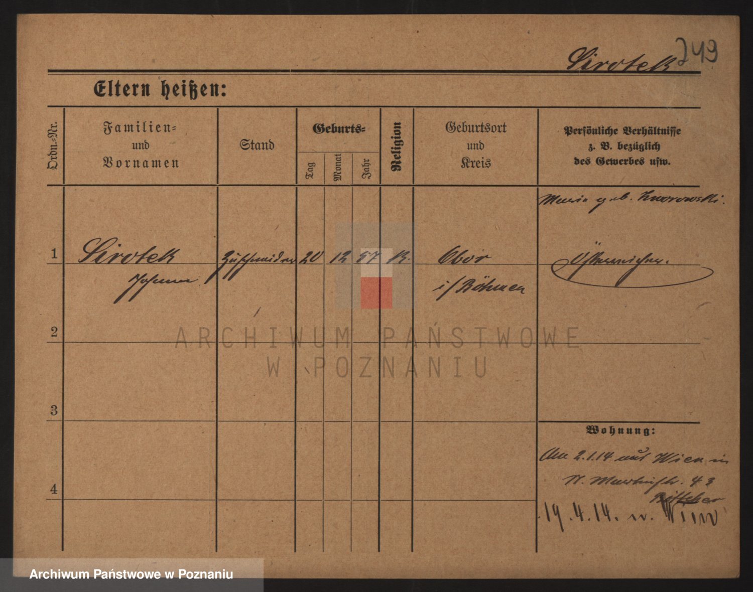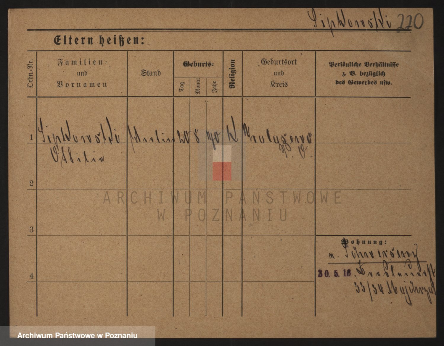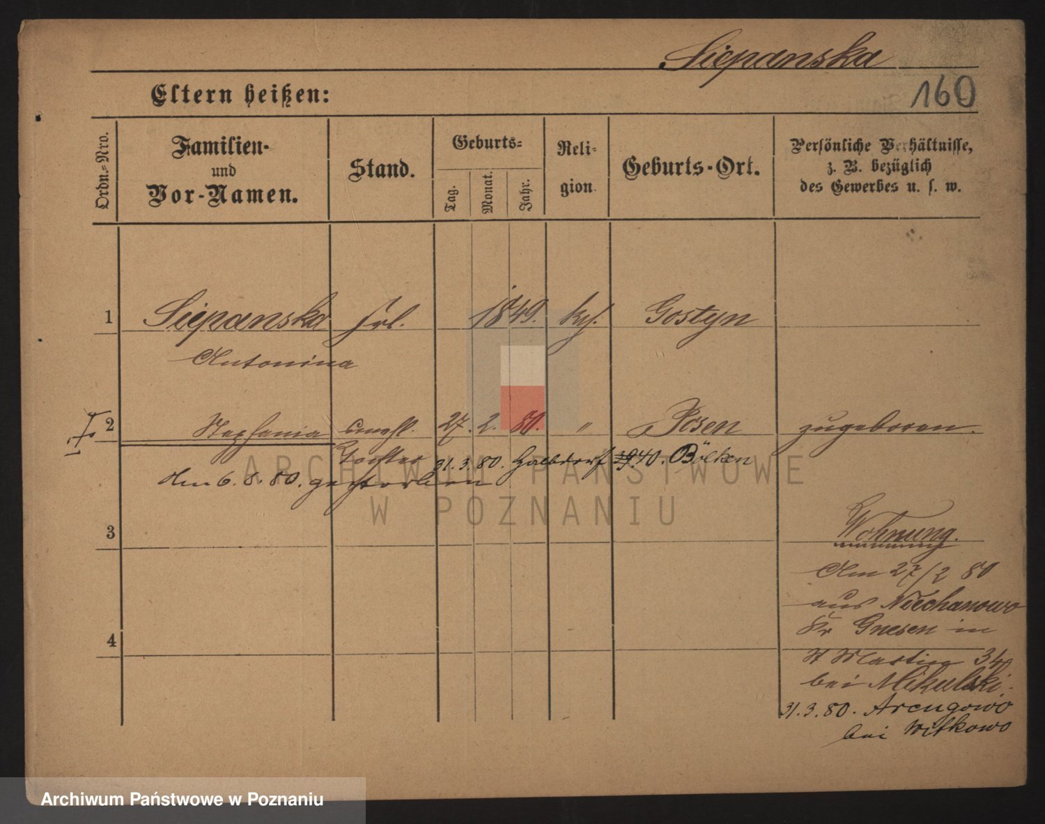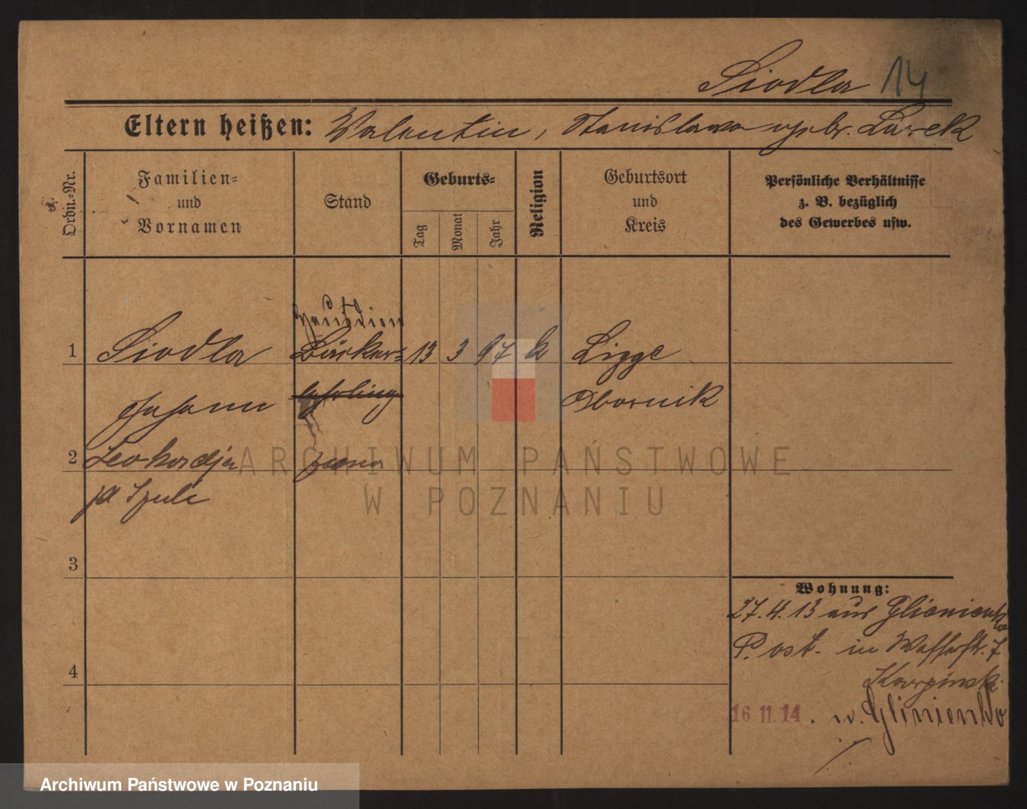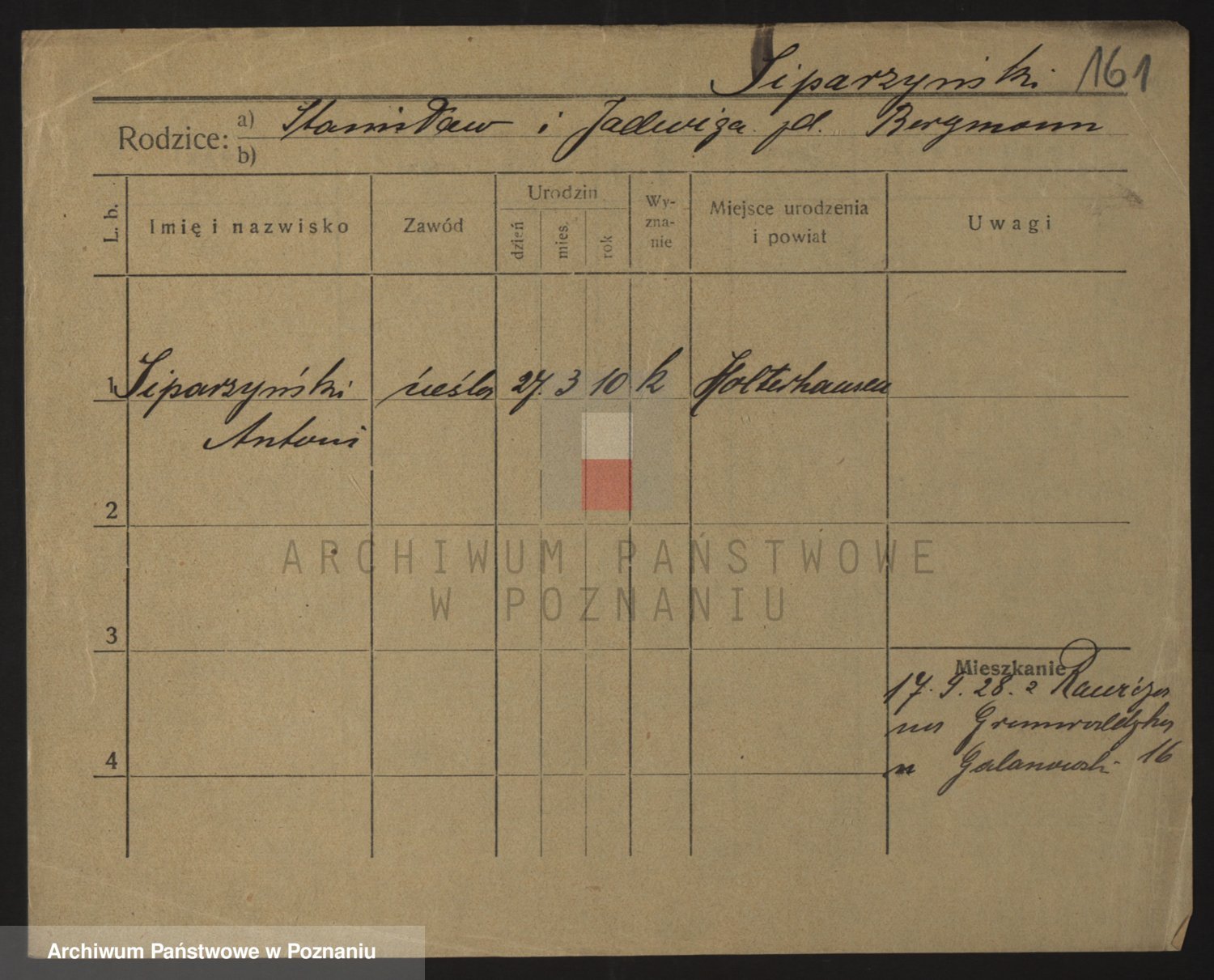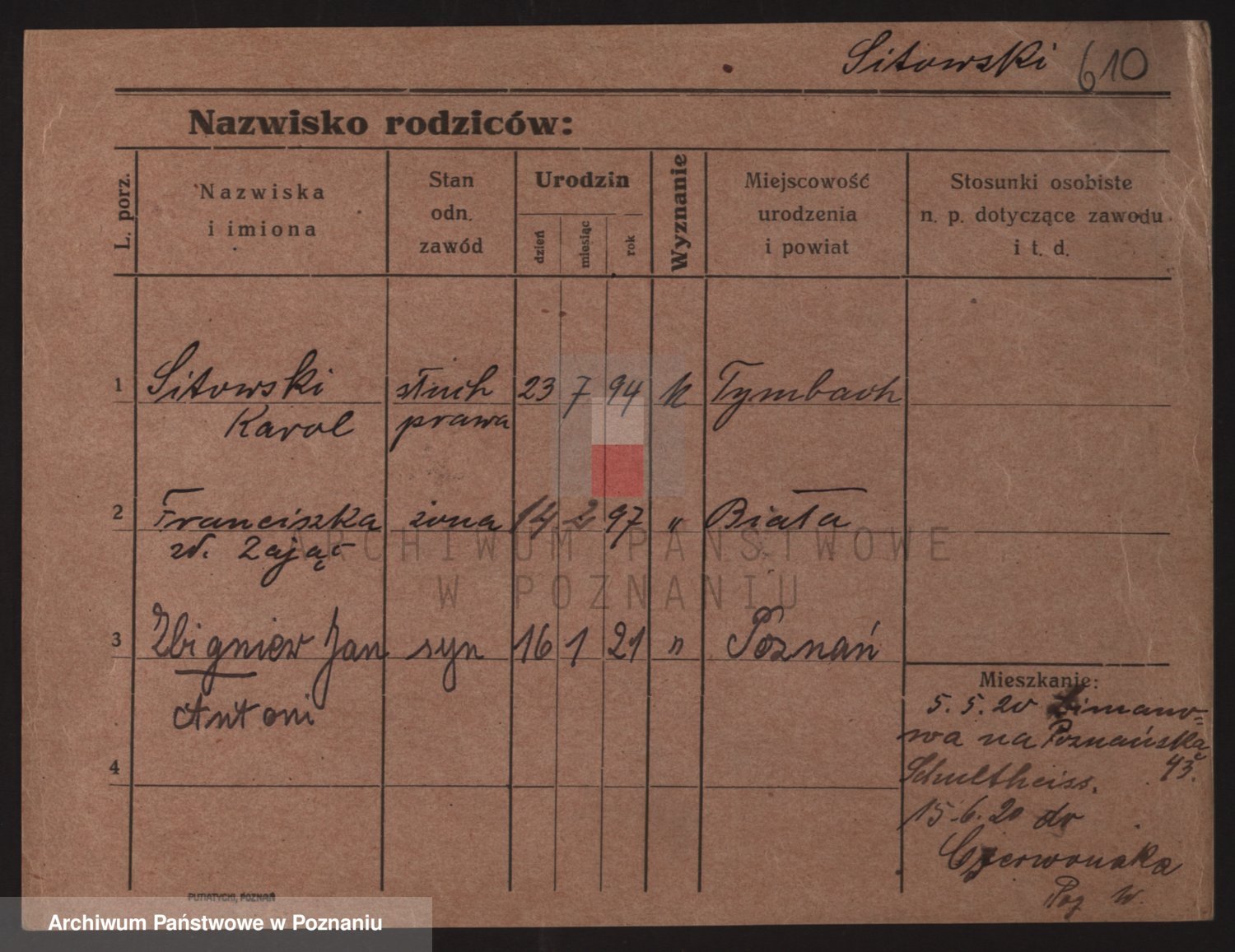 Podgląd karty osobowej dostępny jest po kliknięciu na nazwisko lub ikonkę karty. Można dokonywać powiększenia (ikony na górze) lub przechodzić między kolejnymi skanami (strzałki po bokach).