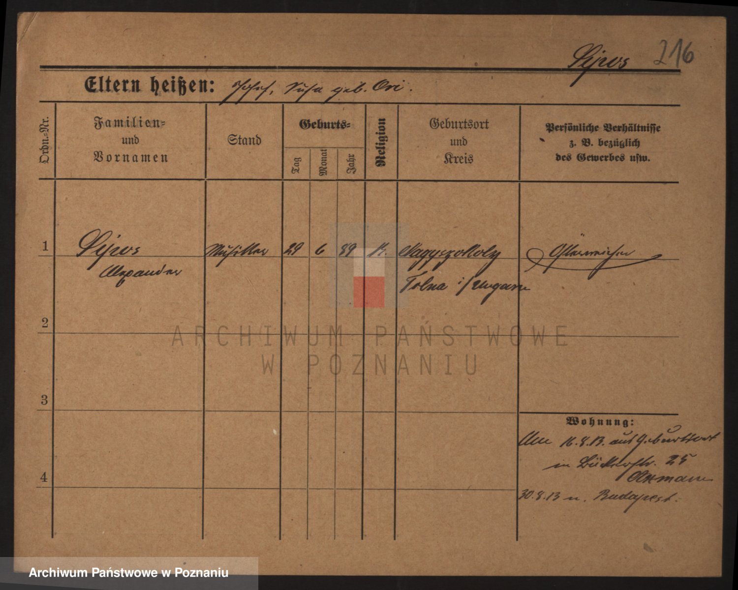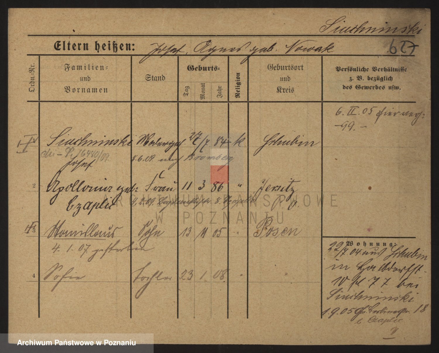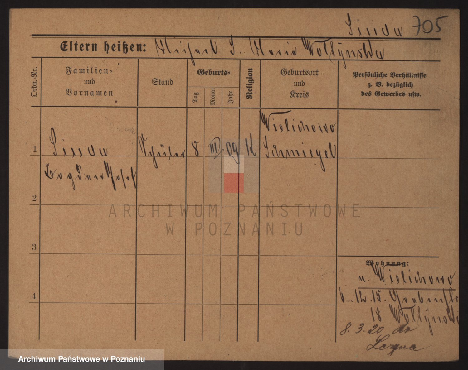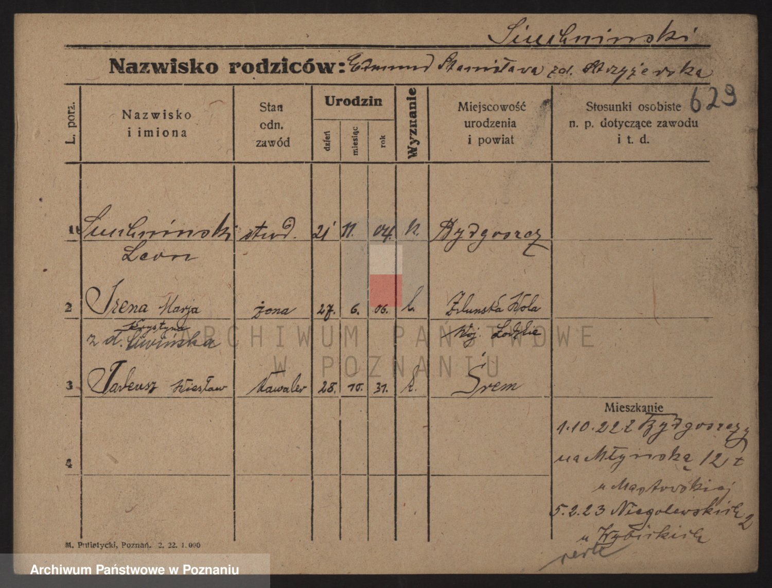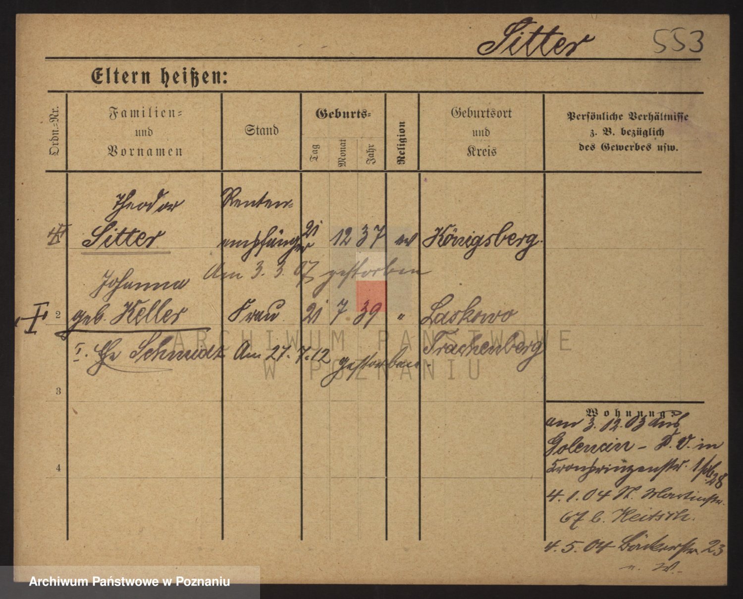 Podgląd karty osobowej dostępny jest po kliknięciu na nazwisko lub ikonkę karty. Można dokonywać powiększenia (ikony na górze) lub przechodzić między kolejnymi skanami (strzałki po bokach).