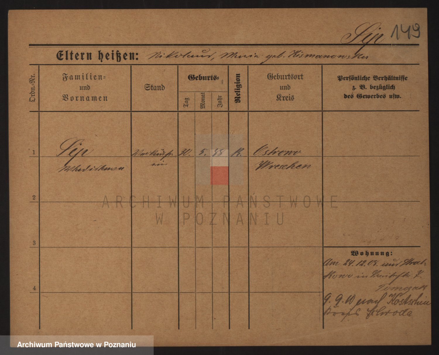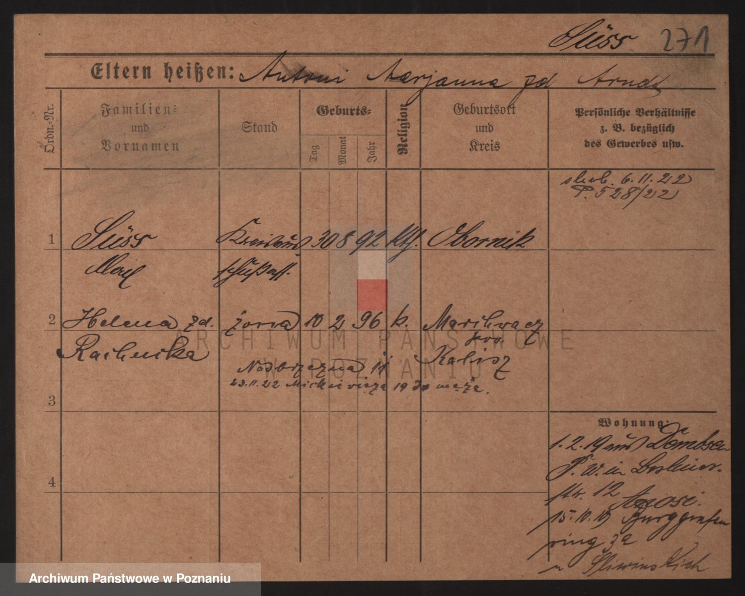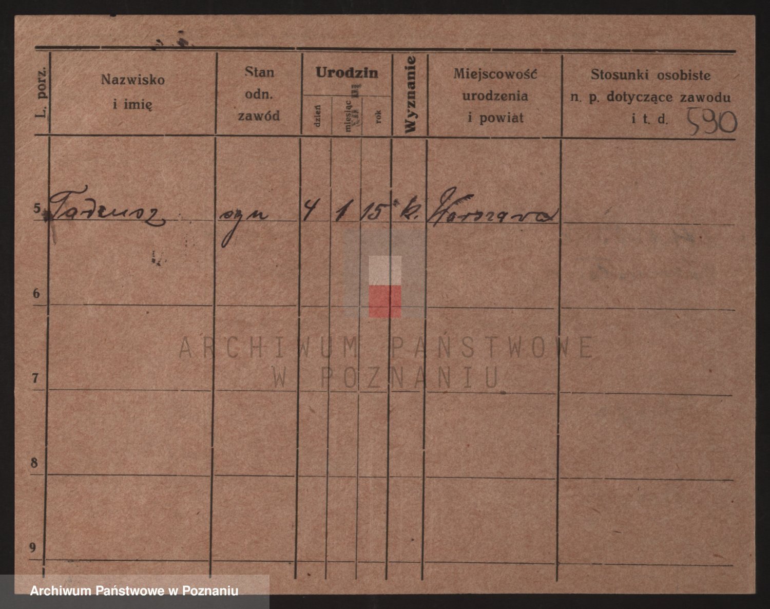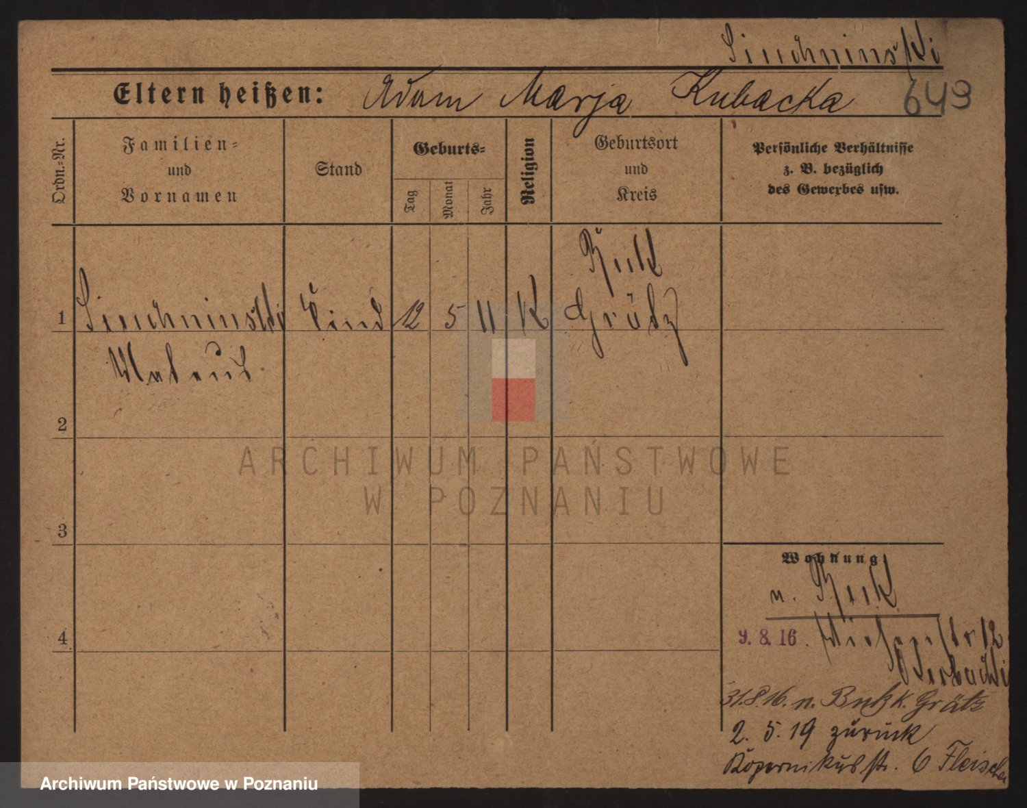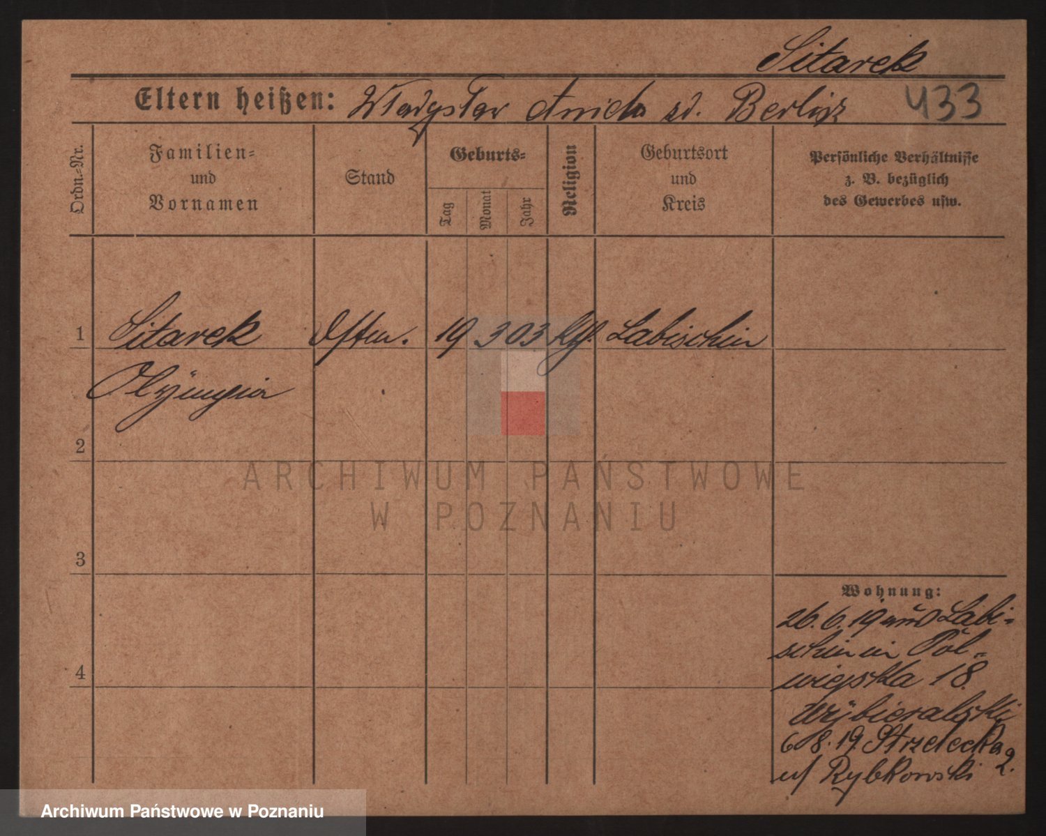 Podgląd karty osobowej dostępny jest po kliknięciu na nazwisko lub ikonkę karty. Można dokonywać powiększenia (ikony na górze) lub przechodzić między kolejnymi skanami (strzałki po bokach).
