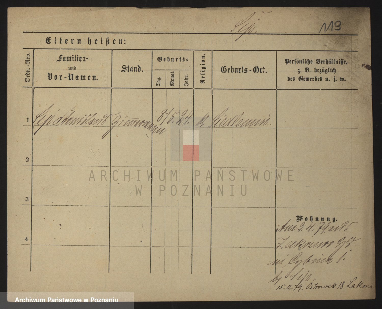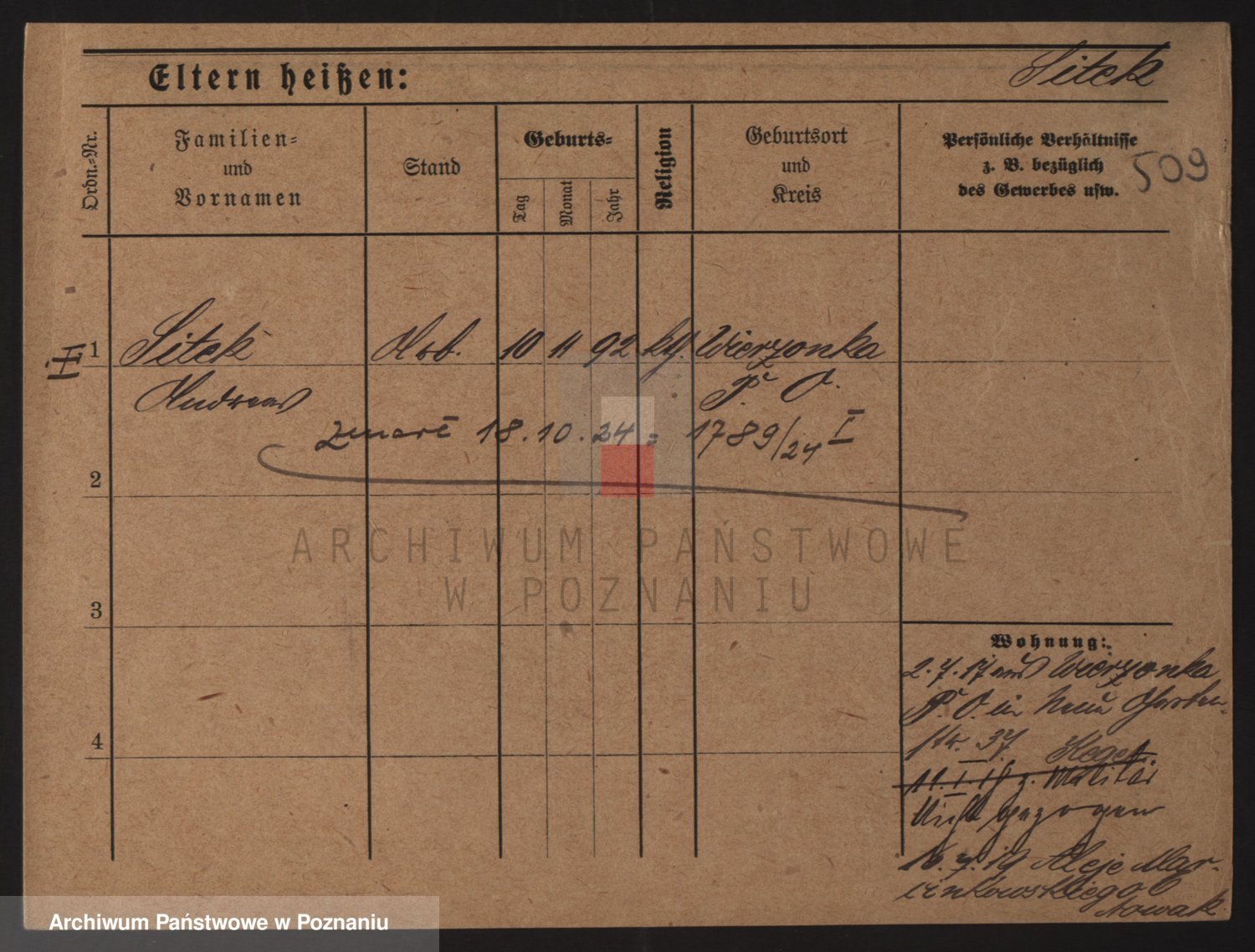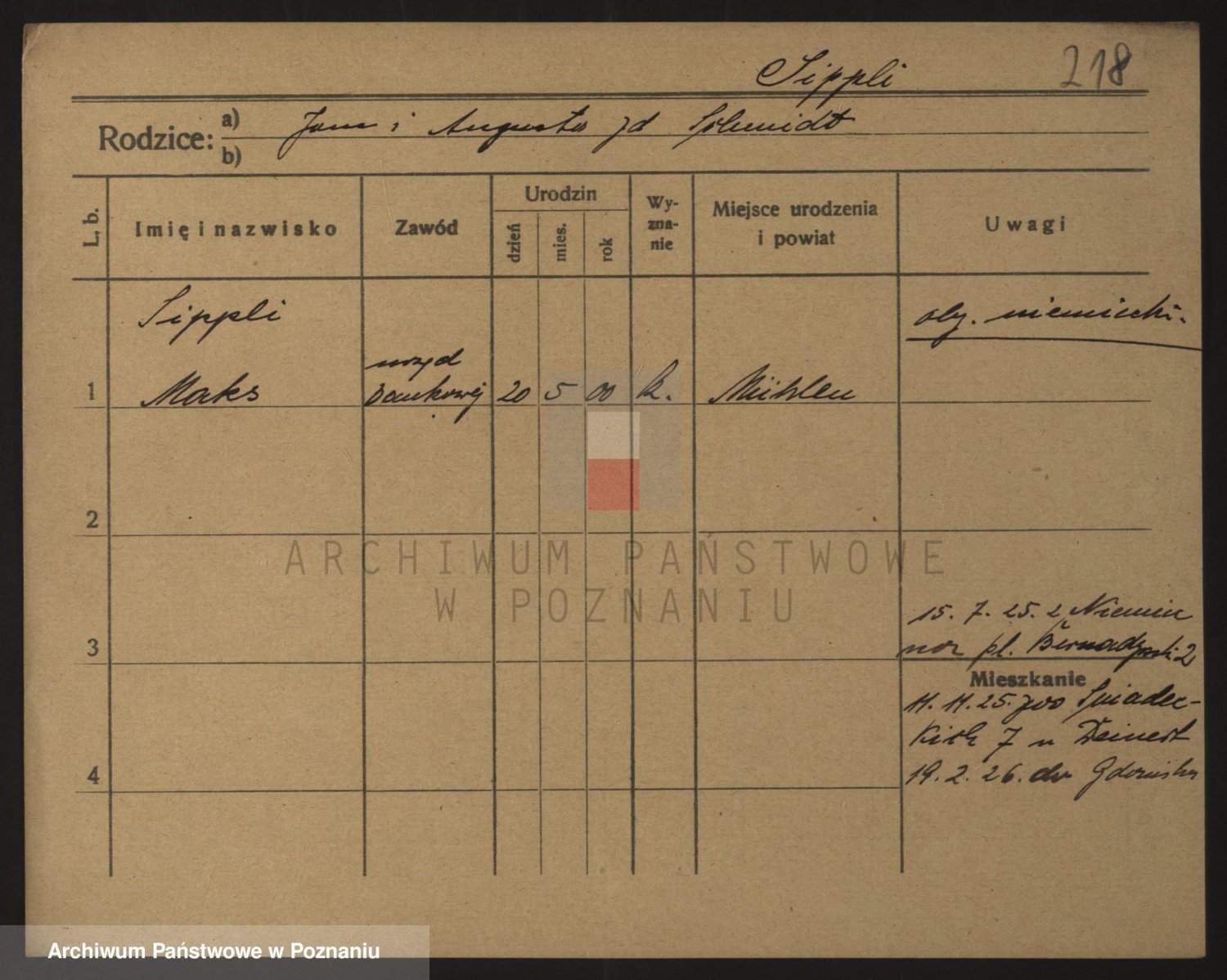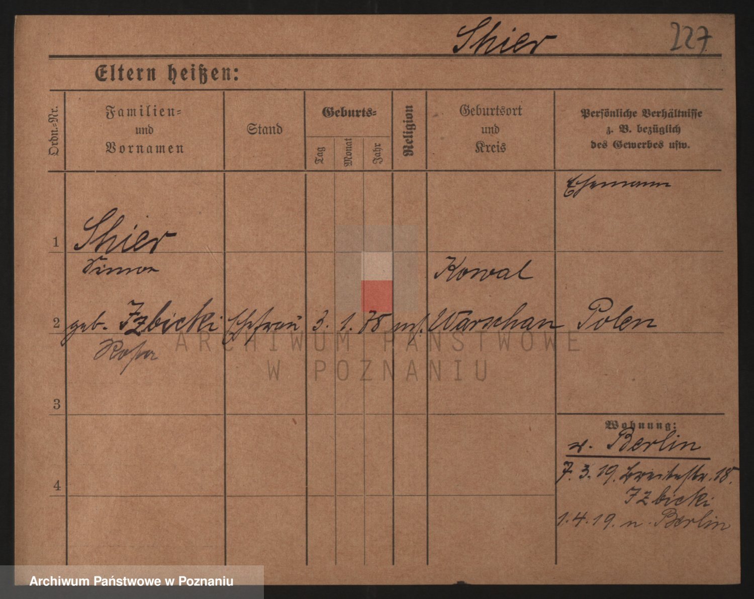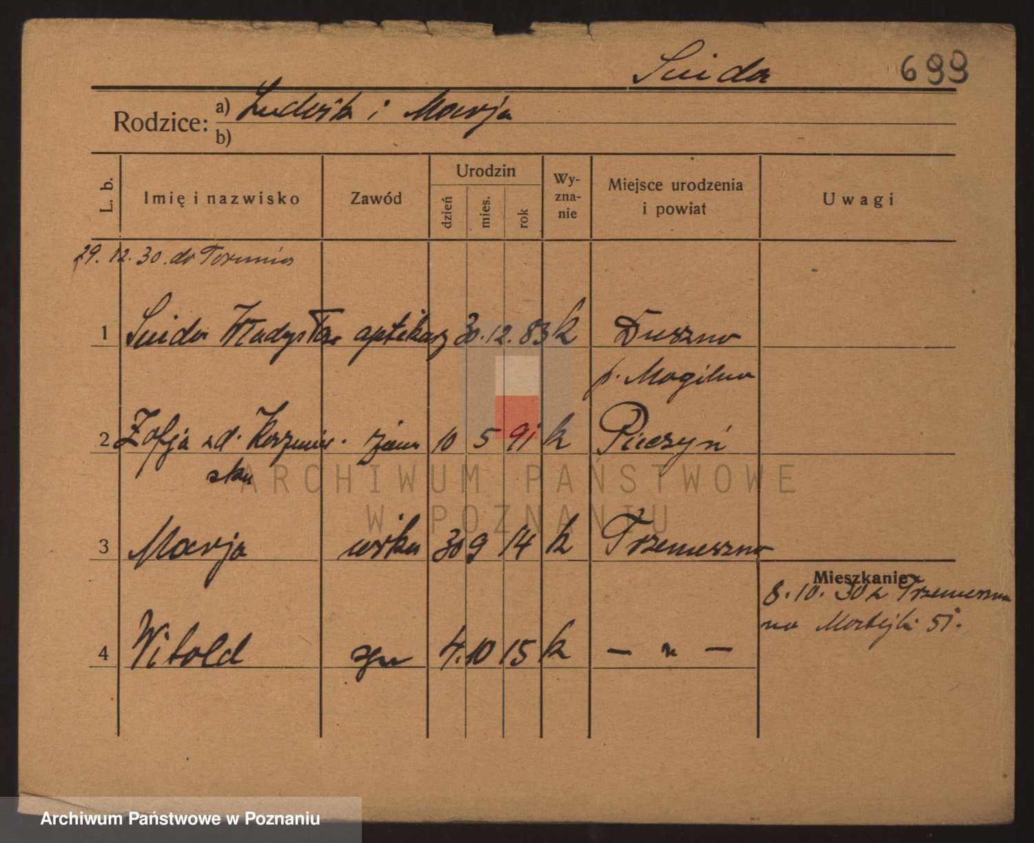 Podgląd karty osobowej dostępny jest po kliknięciu na nazwisko lub ikonkę karty. Można dokonywać powiększenia (ikony na górze) lub przechodzić między kolejnymi skanami (strzałki po bokach).
