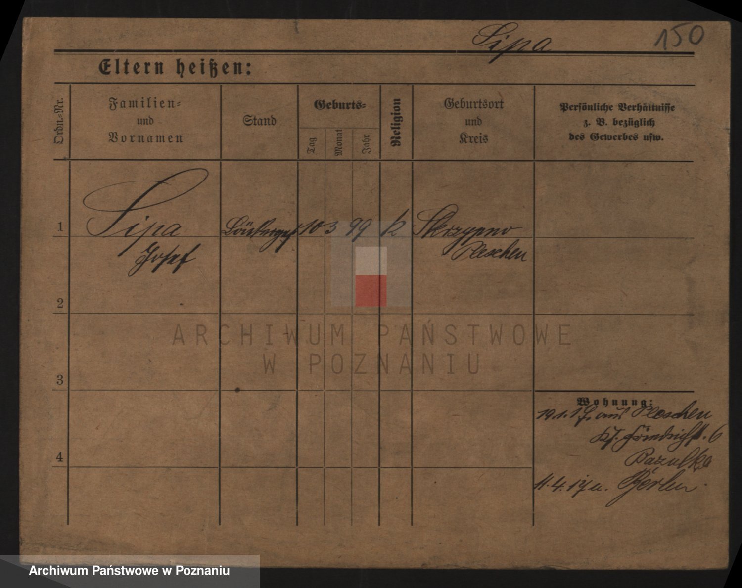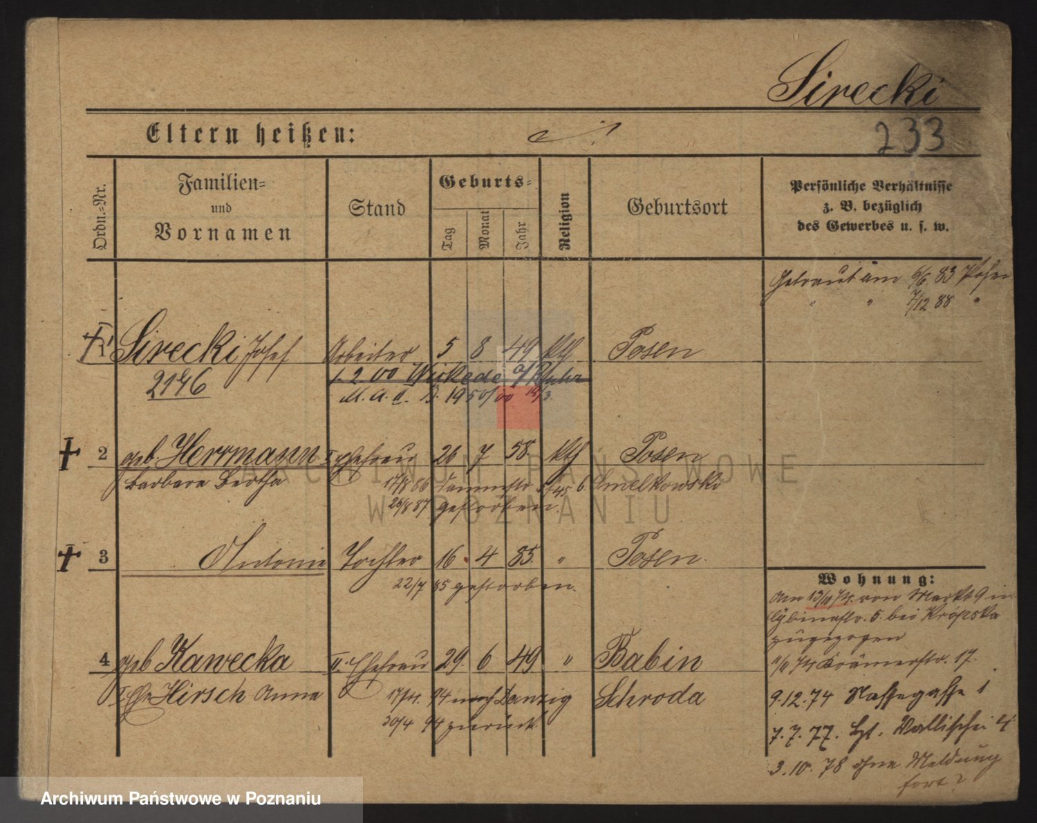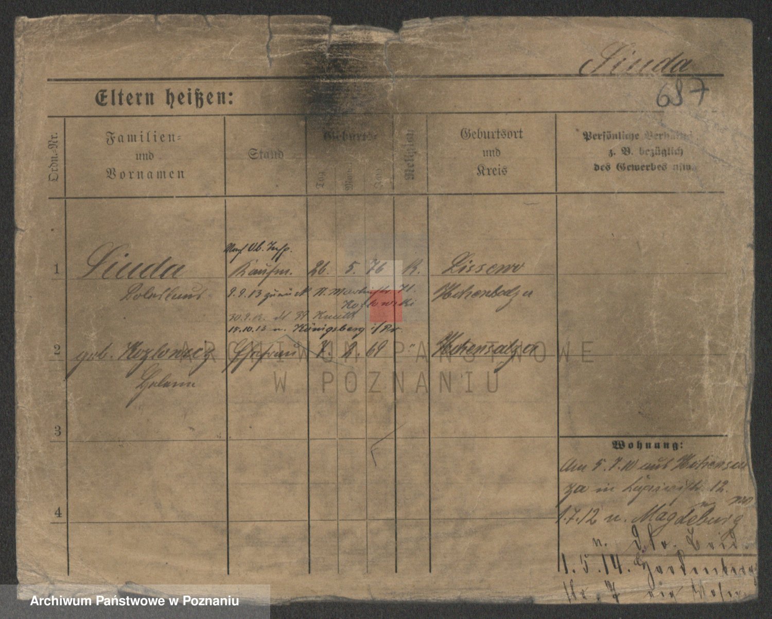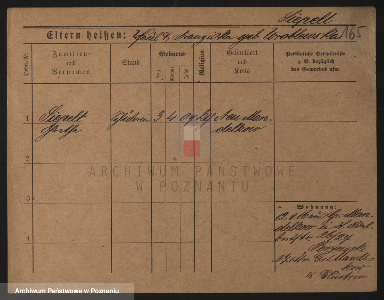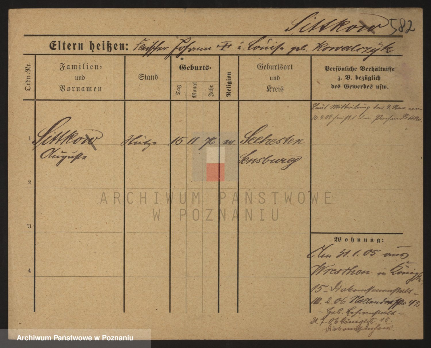 Podgląd karty osobowej dostępny jest po kliknięciu na nazwisko lub ikonkę karty. Można dokonywać powiększenia (ikony na górze) lub przechodzić między kolejnymi skanami (strzałki po bokach).
