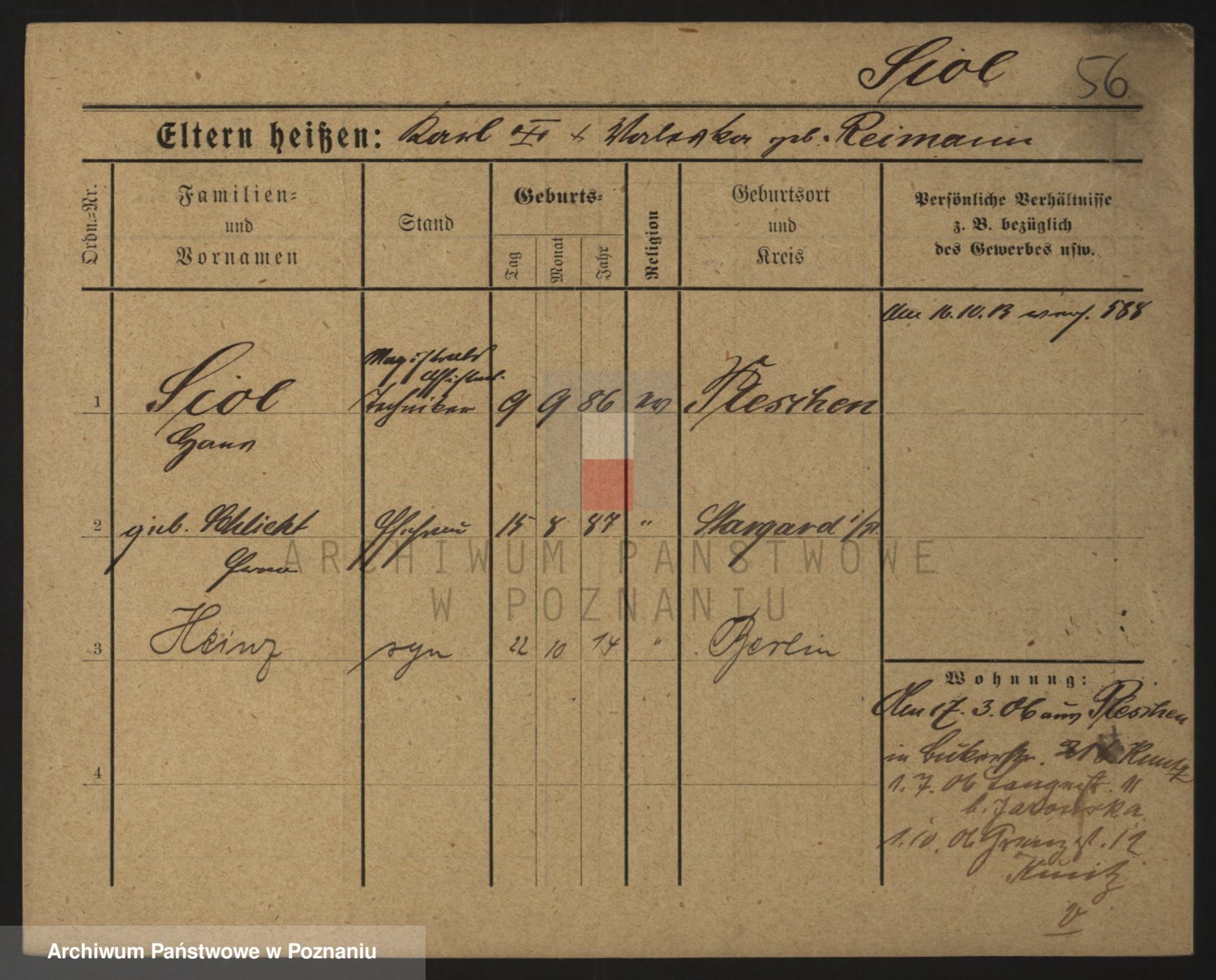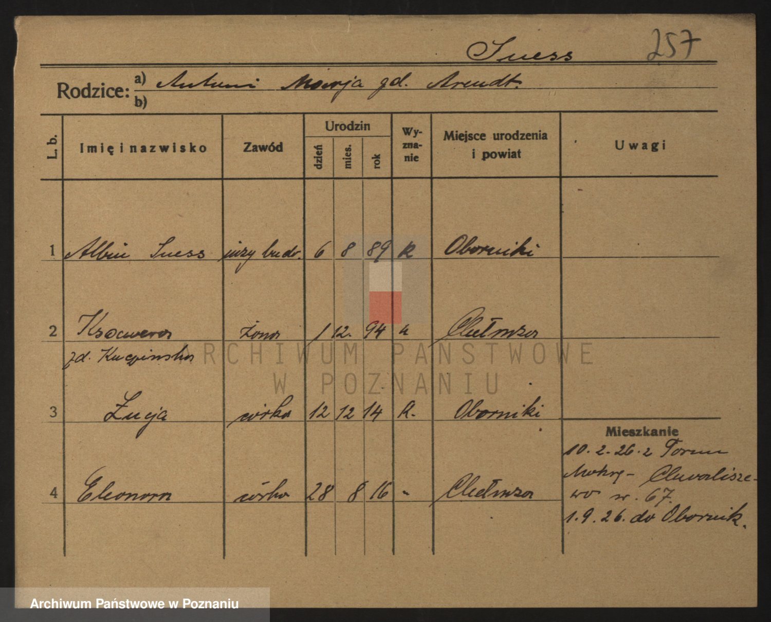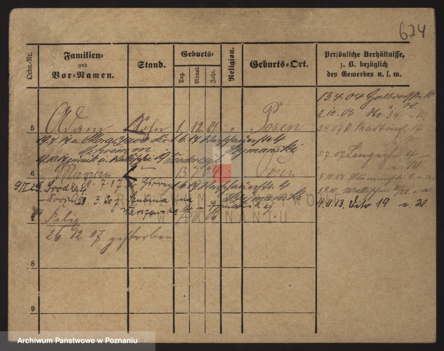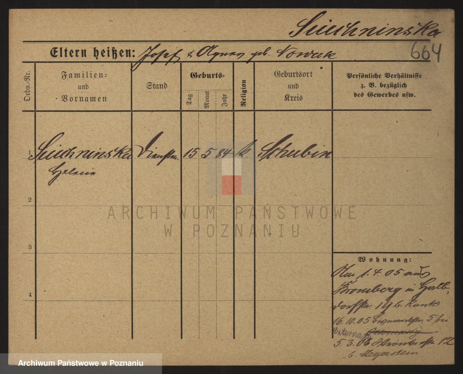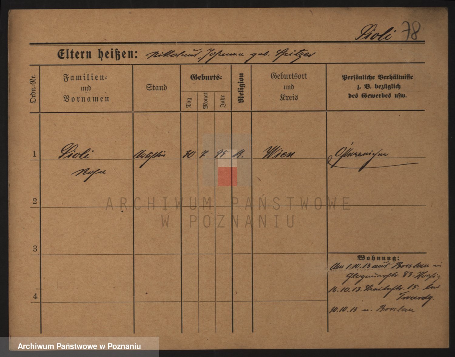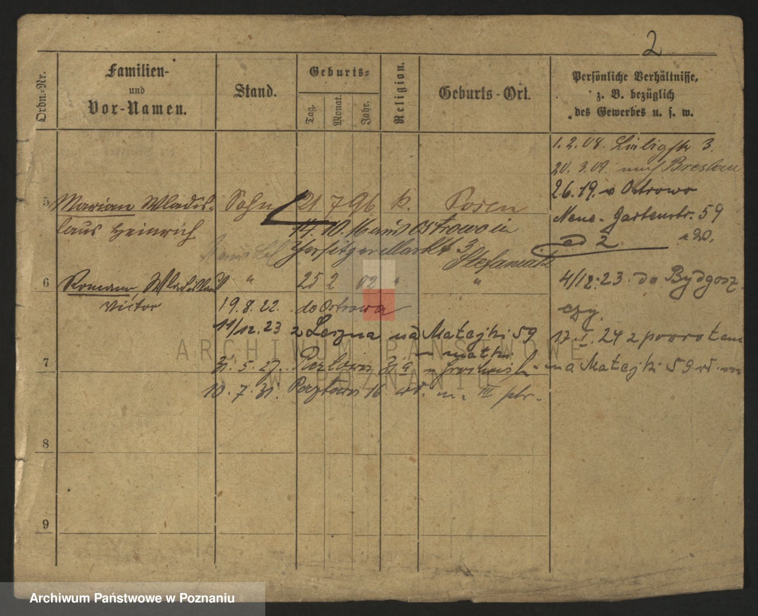 Podgląd karty osobowej dostępny jest po kliknięciu na nazwisko lub ikonkę karty. Można dokonywać powiększenia (ikony na górze) lub przechodzić między kolejnymi skanami (strzałki po bokach).