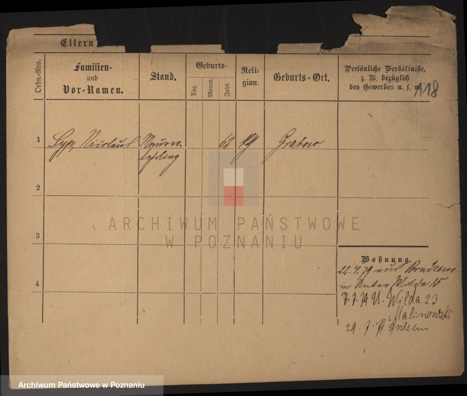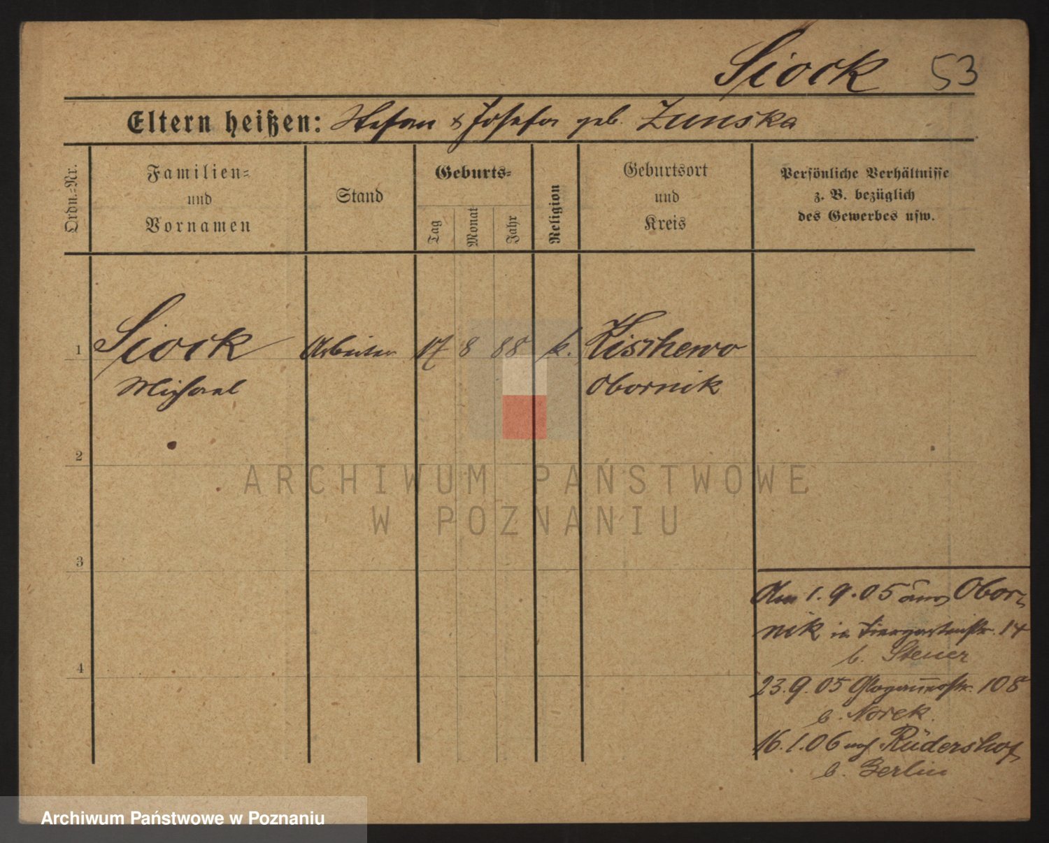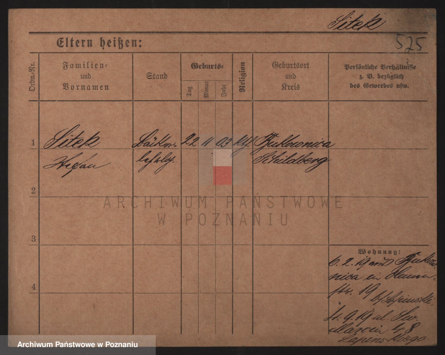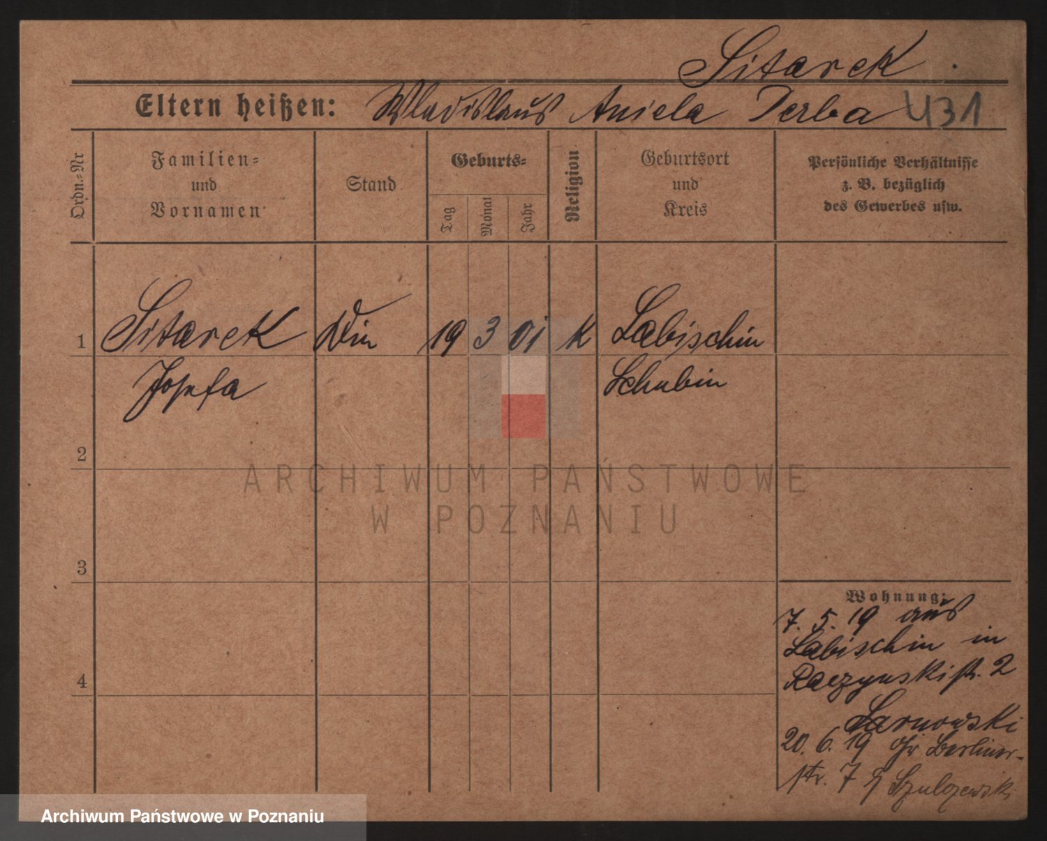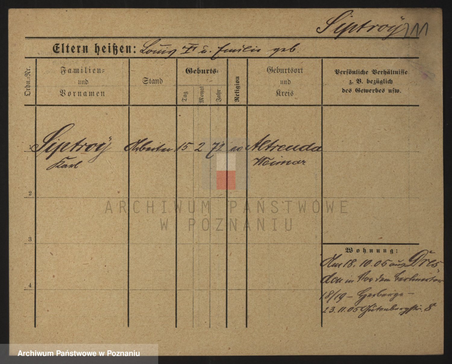 Podgląd karty osobowej dostępny jest po kliknięciu na nazwisko lub ikonkę karty. Można dokonywać powiększenia (ikony na górze) lub przechodzić między kolejnymi skanami (strzałki po bokach).
