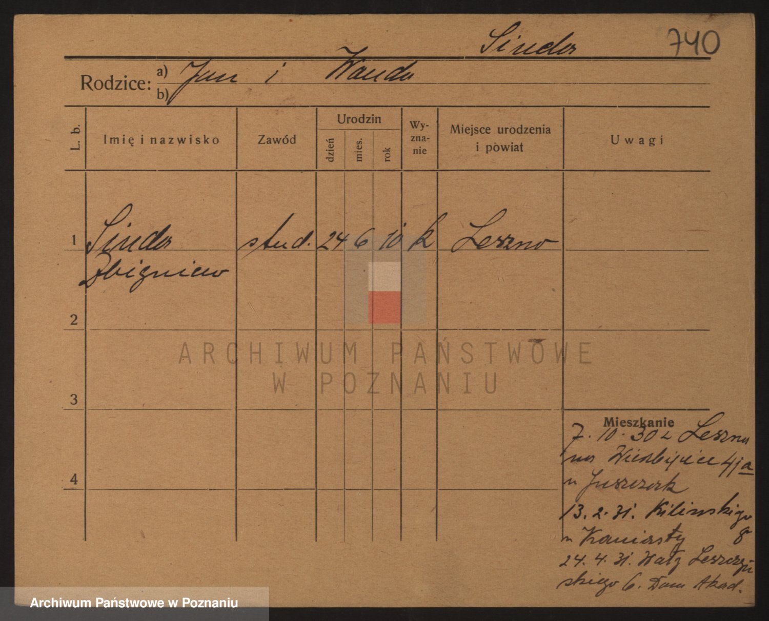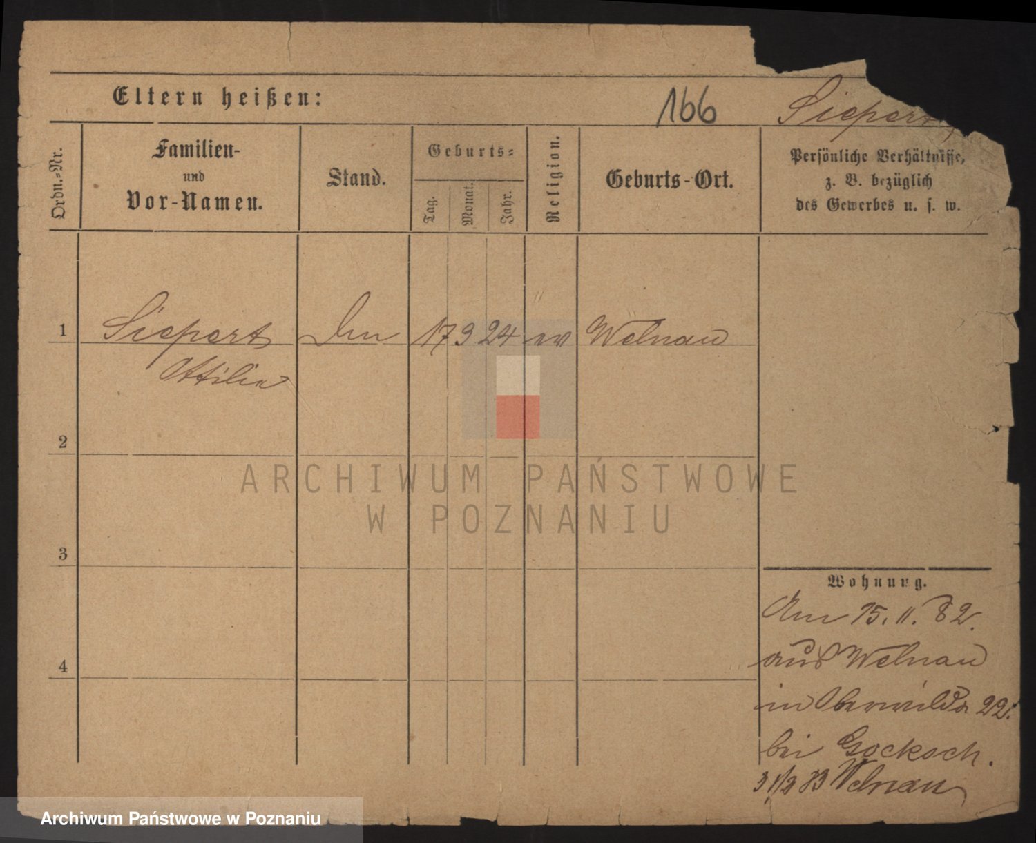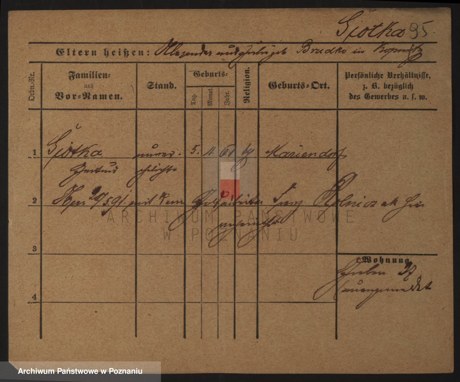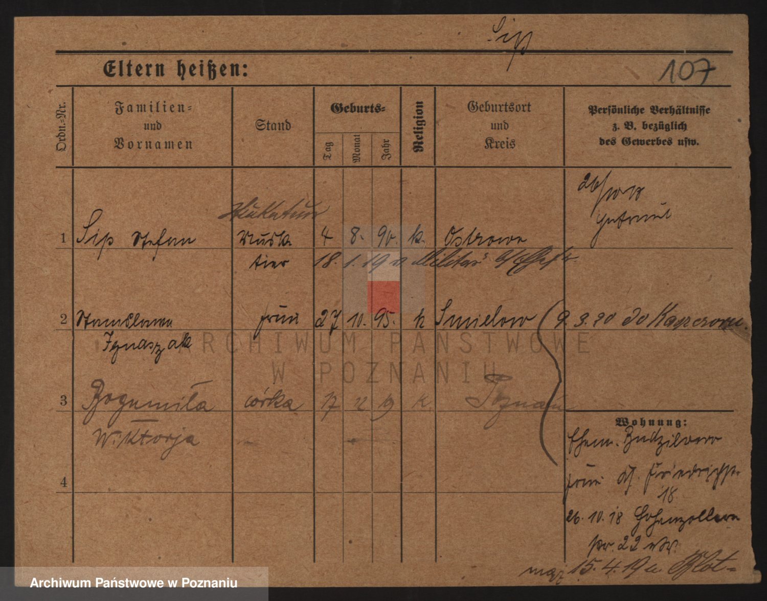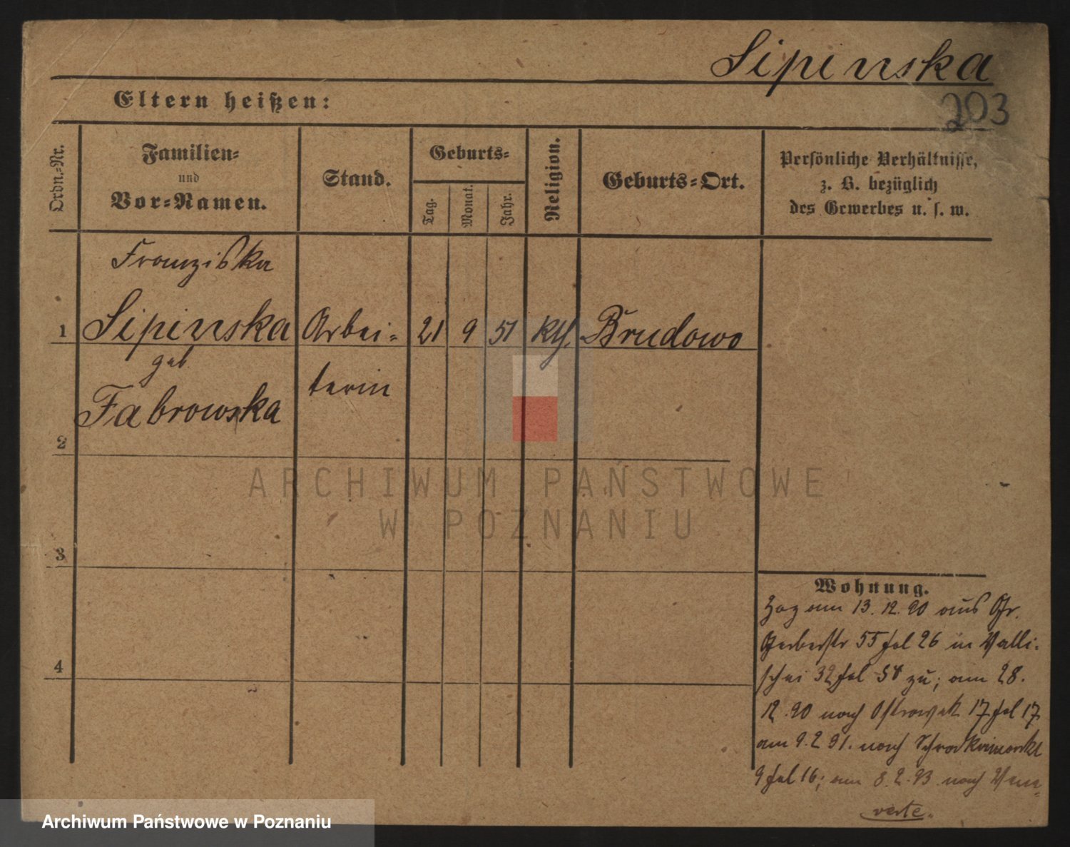 Podgląd karty osobowej dostępny jest po kliknięciu na nazwisko lub ikonkę karty. Można dokonywać powiększenia (ikony na górze) lub przechodzić między kolejnymi skanami (strzałki po bokach).