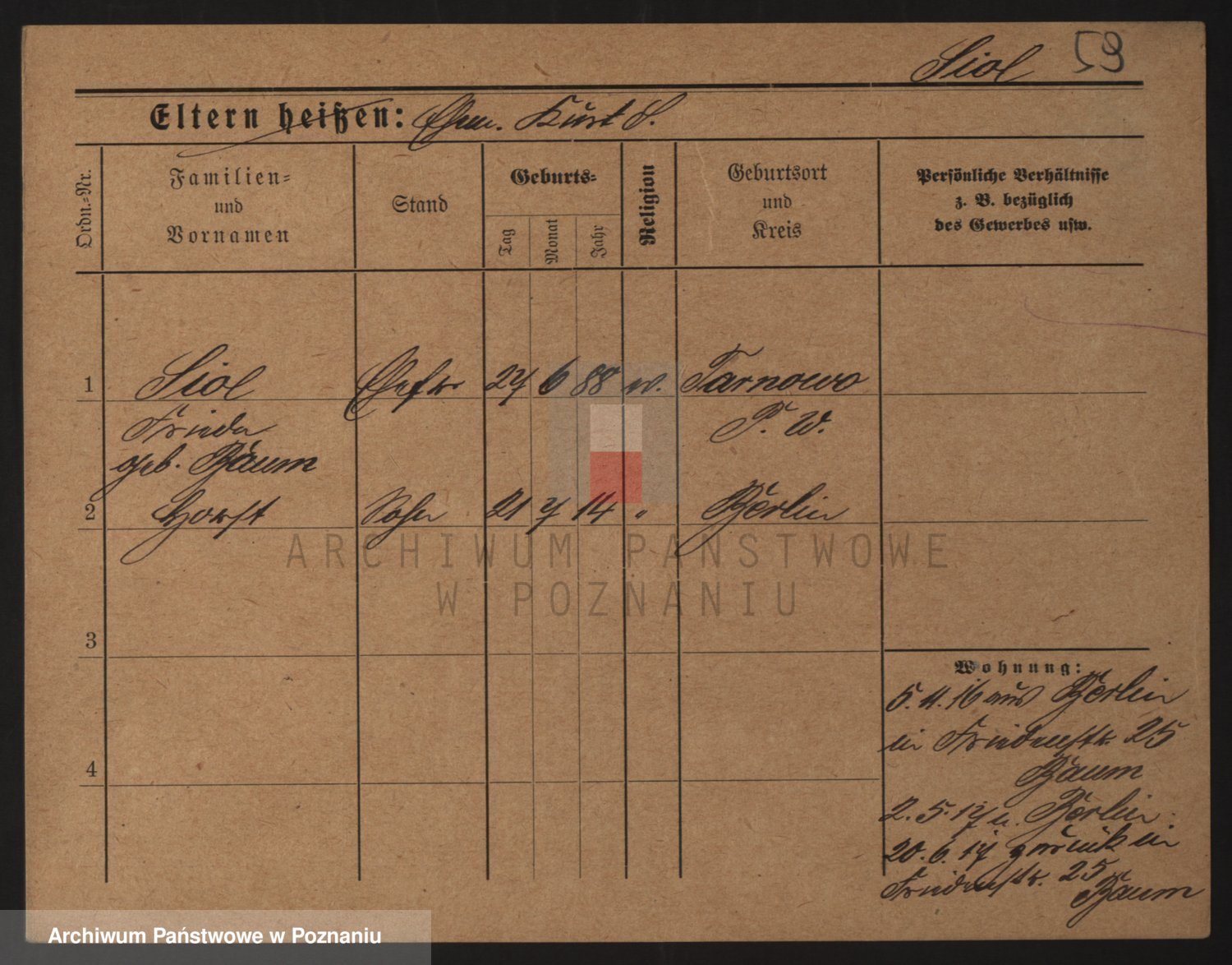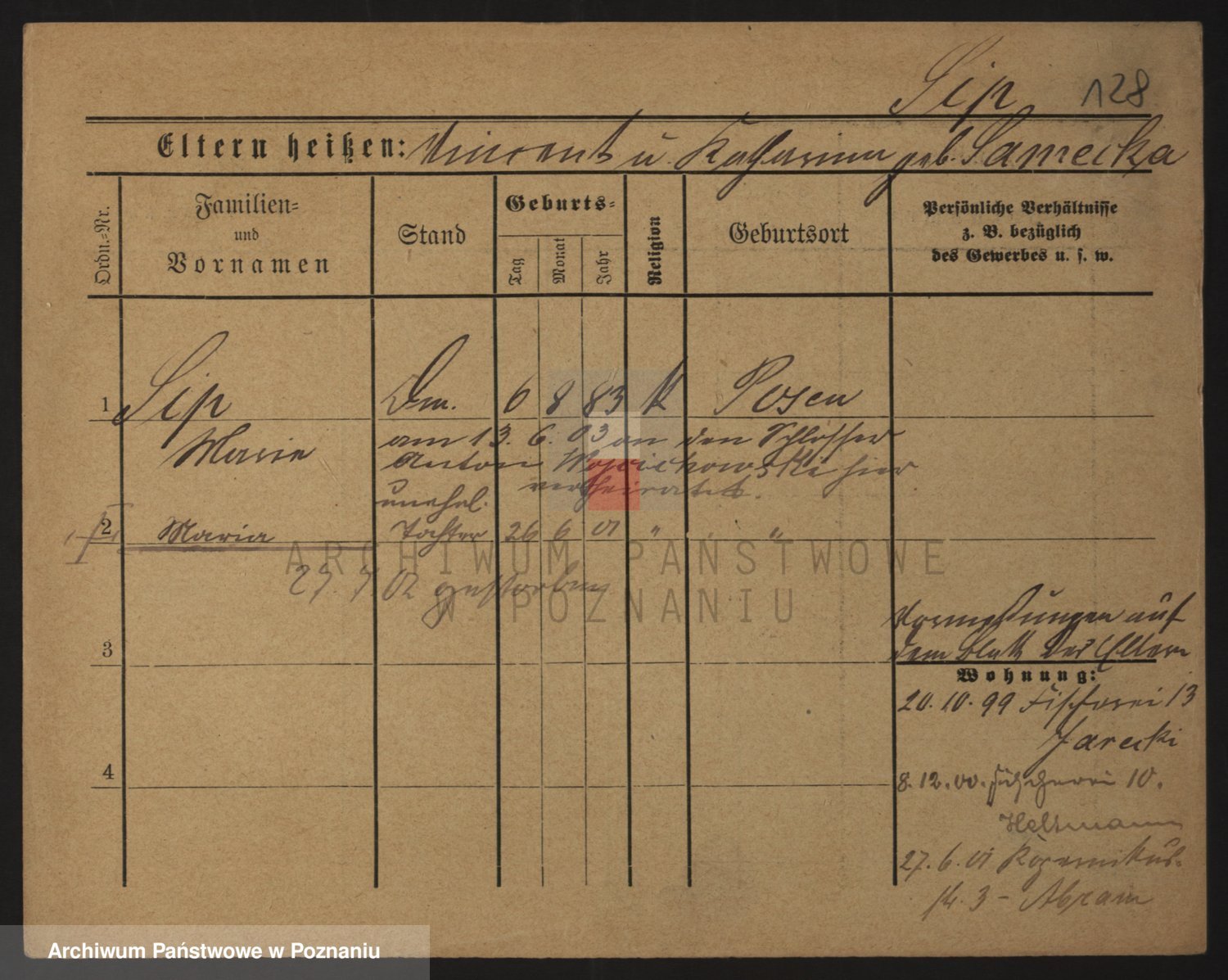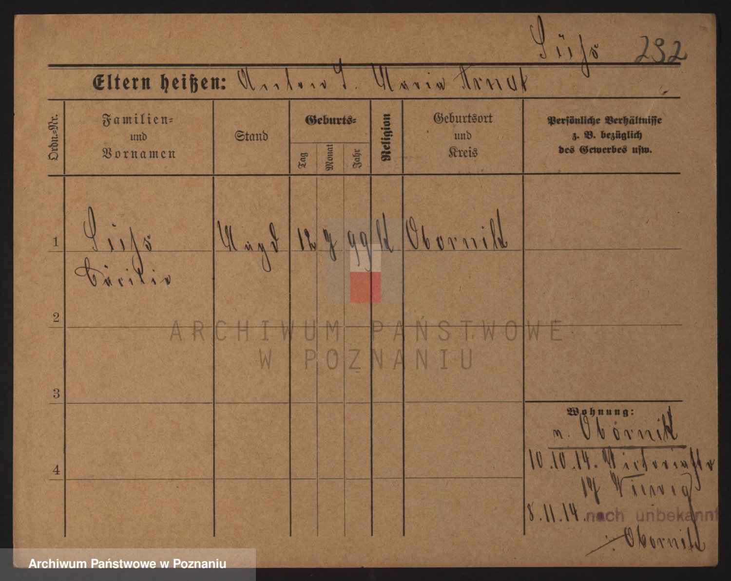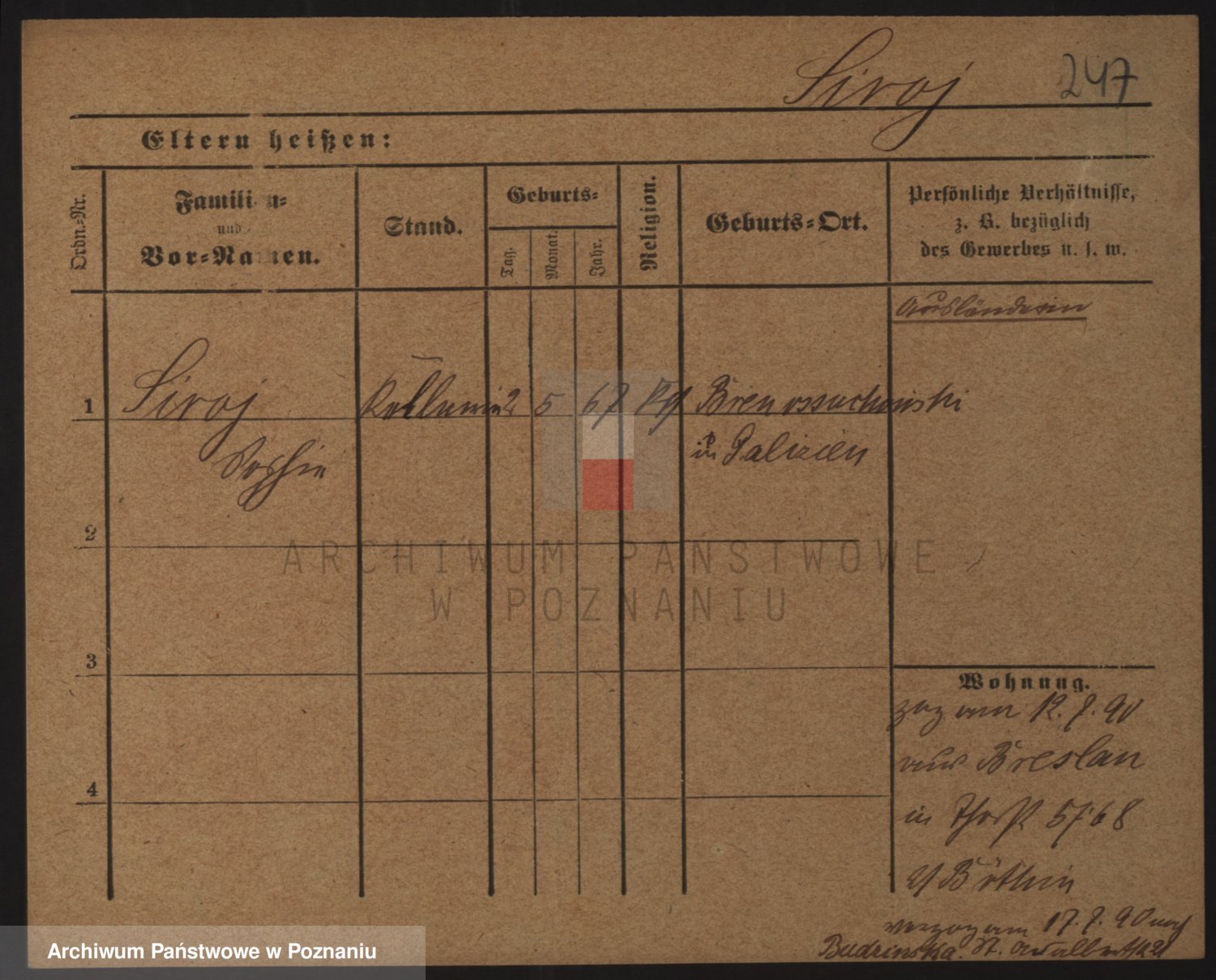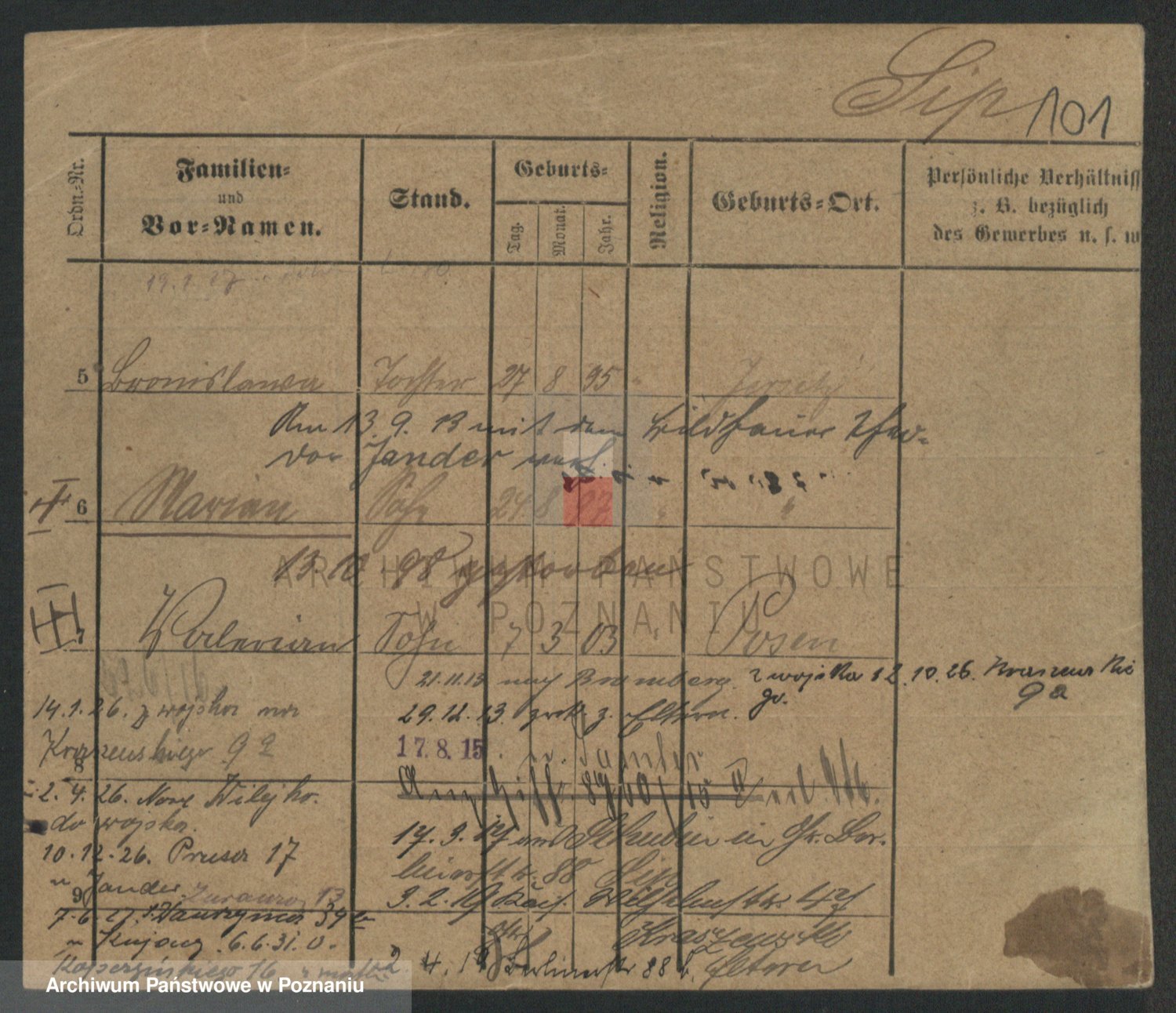Podgląd karty osobowej dostępny jest po kliknięciu na nazwisko lub ikonkę karty. Można dokonywać powiększenia (ikony na górze) lub przechodzić między kolejnymi skanami (strzałki po bokach).