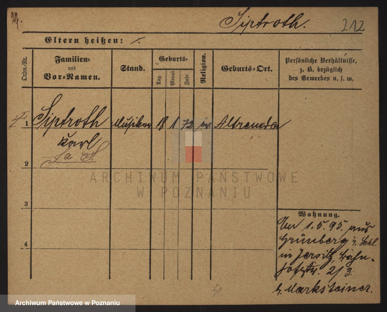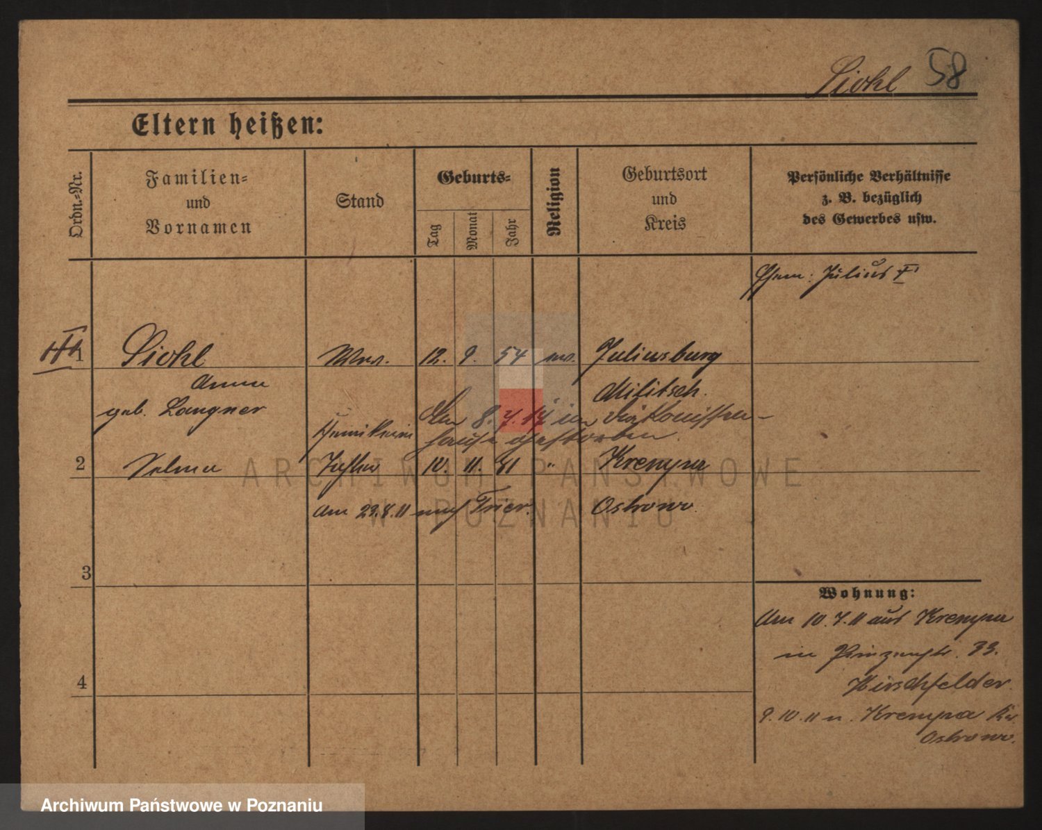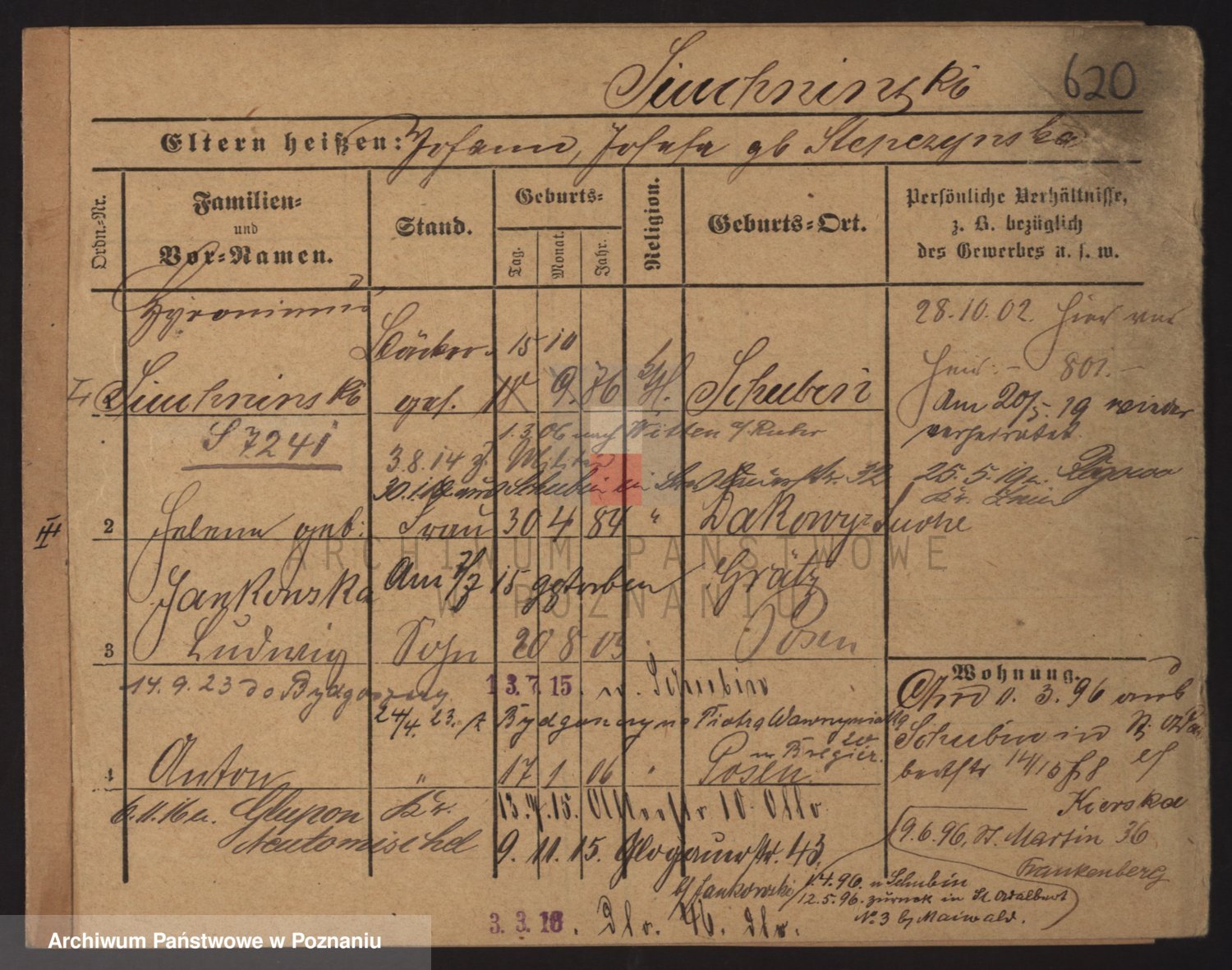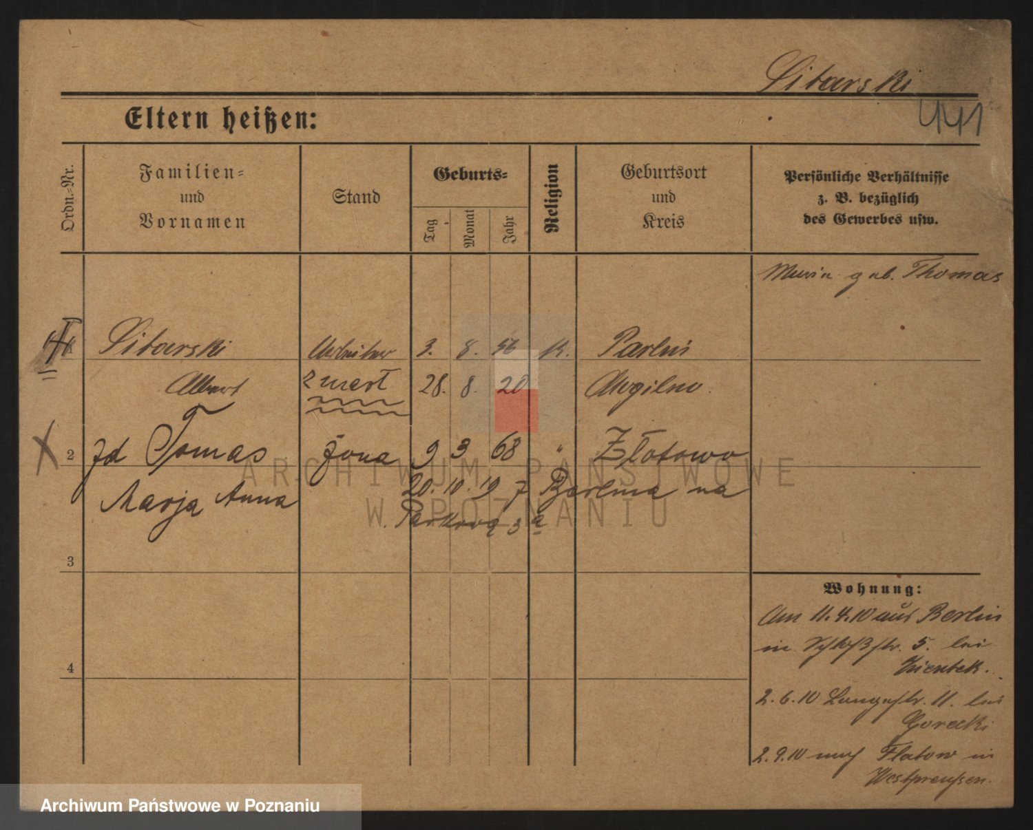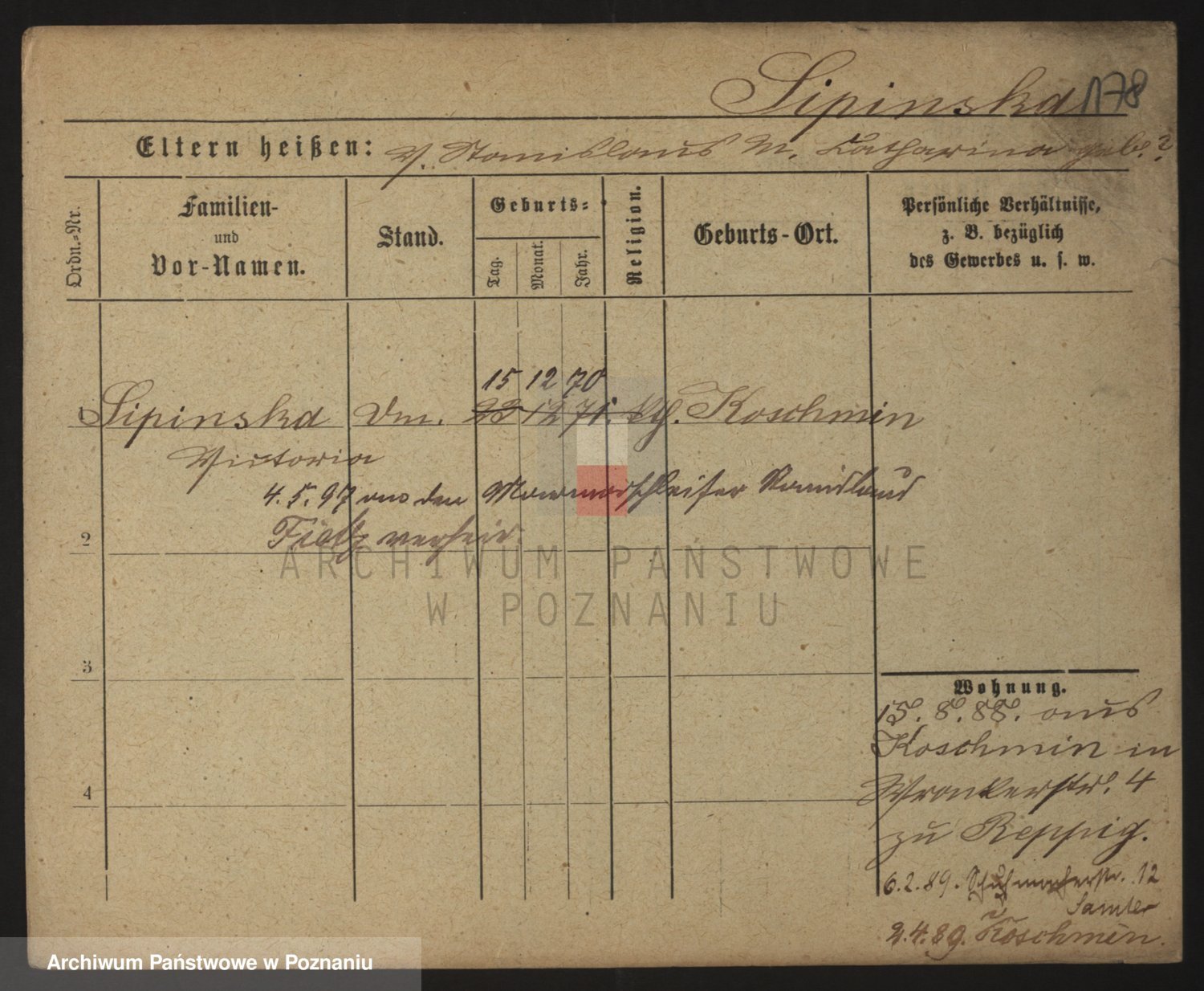 Podgląd karty osobowej dostępny jest po kliknięciu na nazwisko lub ikonkę karty. Można dokonywać powiększenia (ikony na górze) lub przechodzić między kolejnymi skanami (strzałki po bokach).