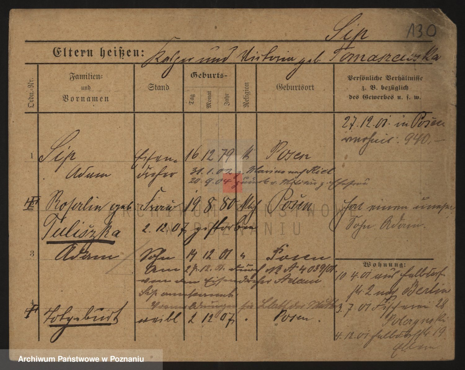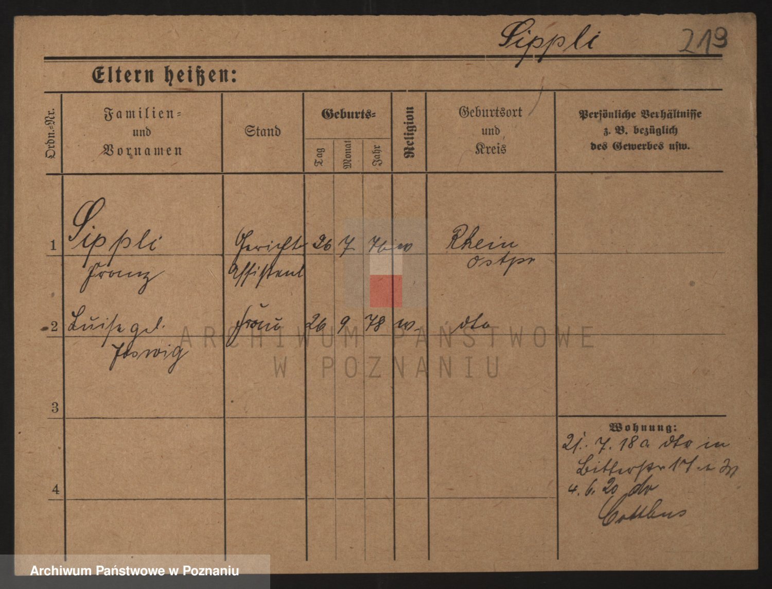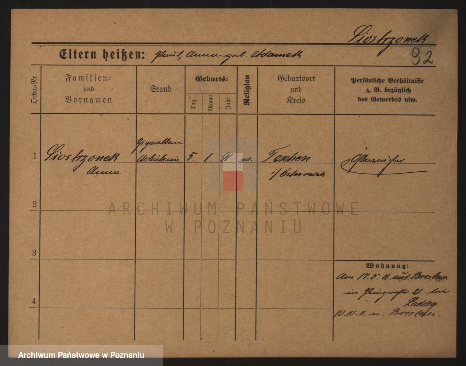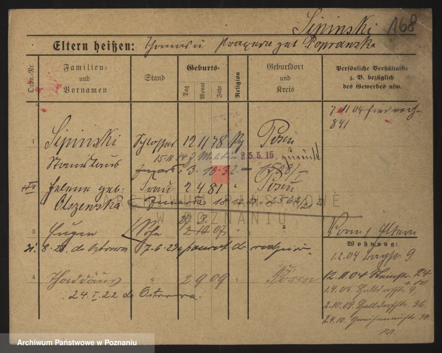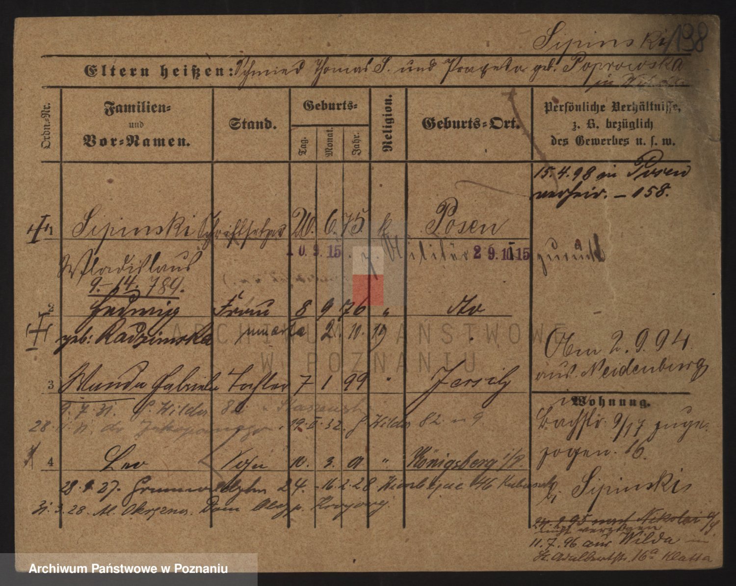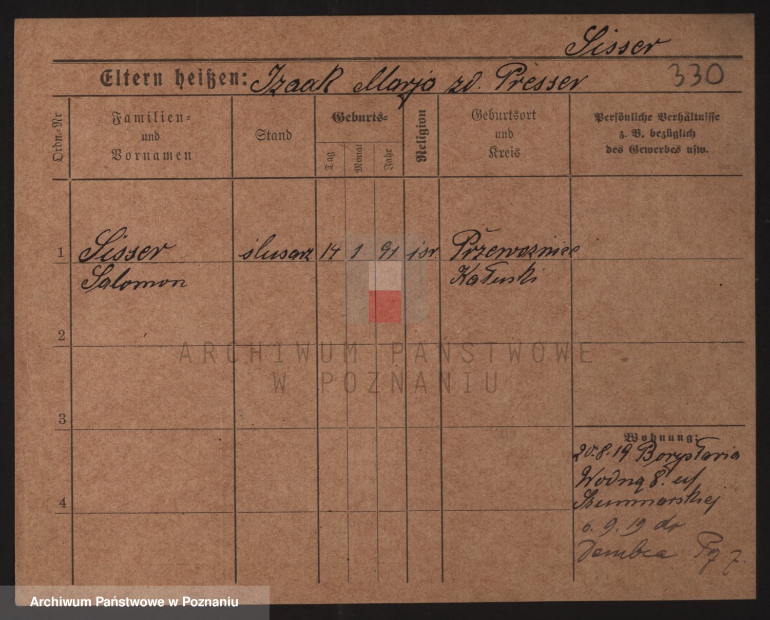 Podgląd karty osobowej dostępny jest po kliknięciu na nazwisko lub ikonkę karty. Można dokonywać powiększenia (ikony na górze) lub przechodzić między kolejnymi skanami (strzałki po bokach).