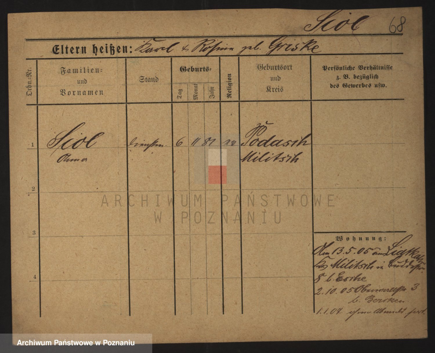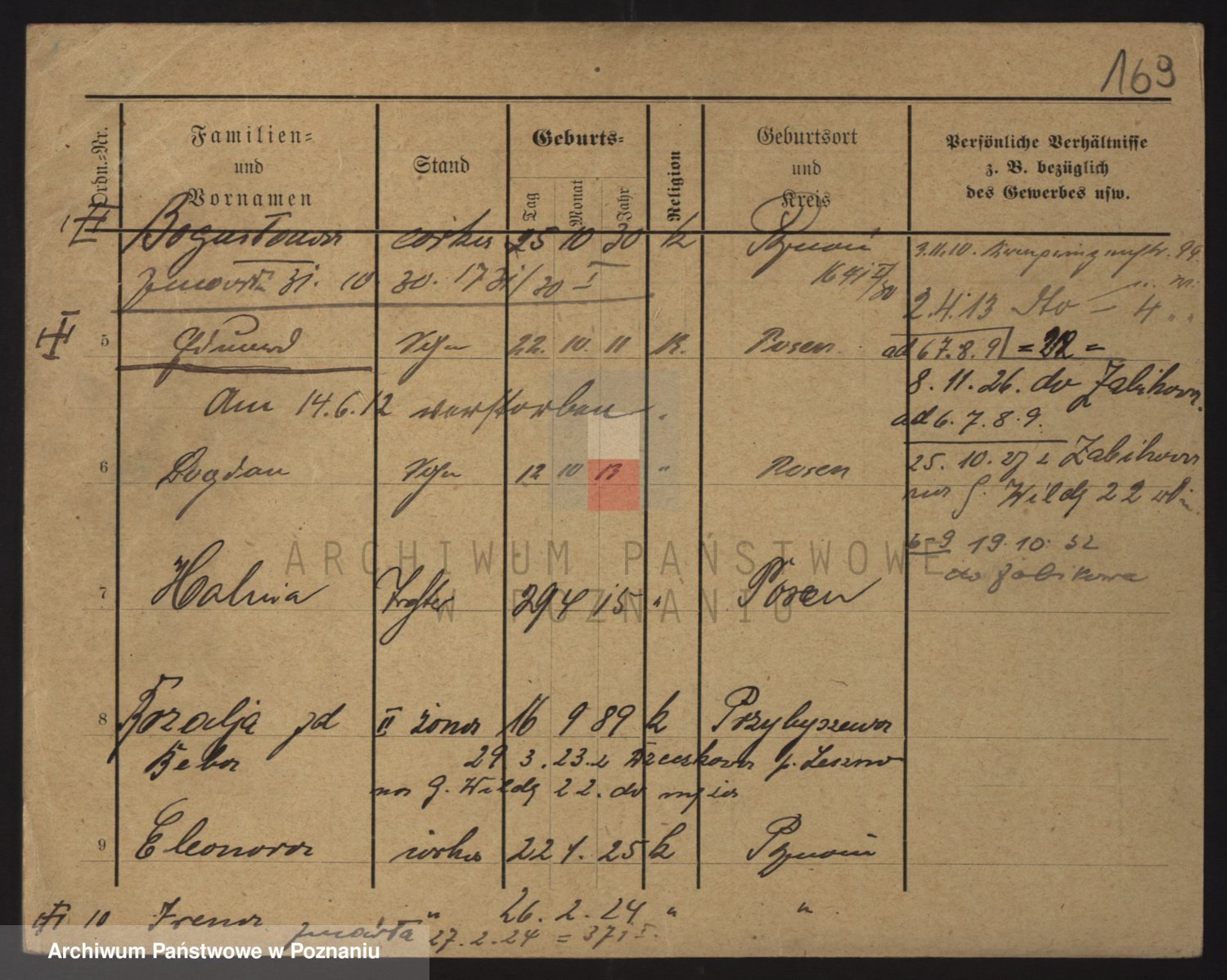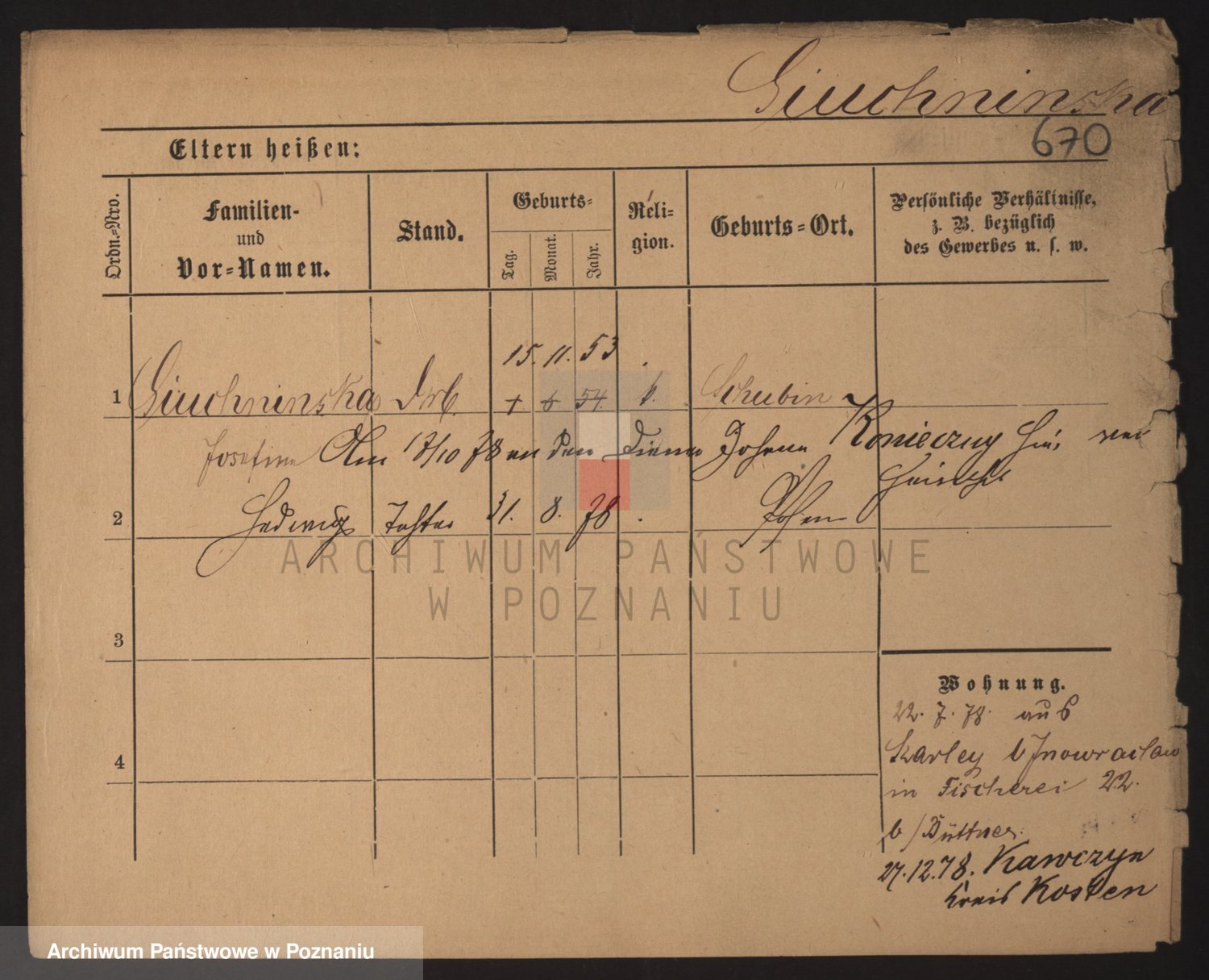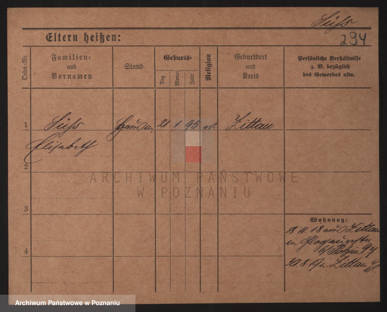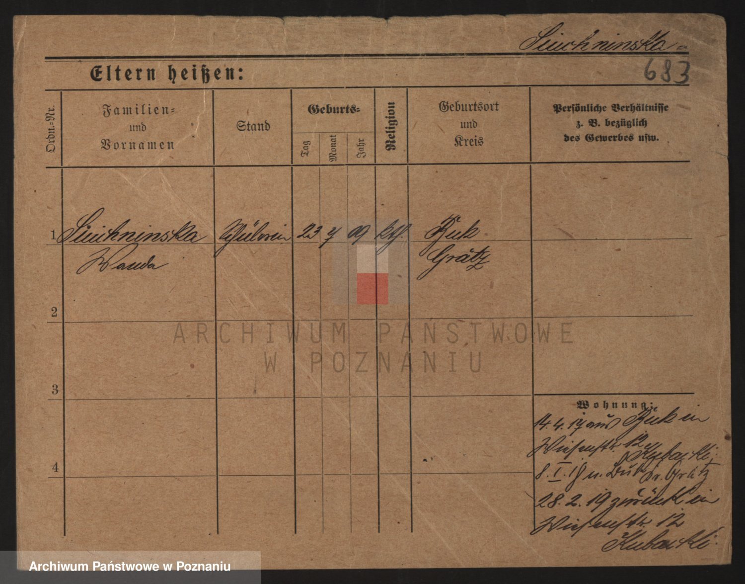 Podgląd karty osobowej dostępny jest po kliknięciu na nazwisko lub ikonkę karty. Można dokonywać powiększenia (ikony na górze) lub przechodzić między kolejnymi skanami (strzałki po bokach).