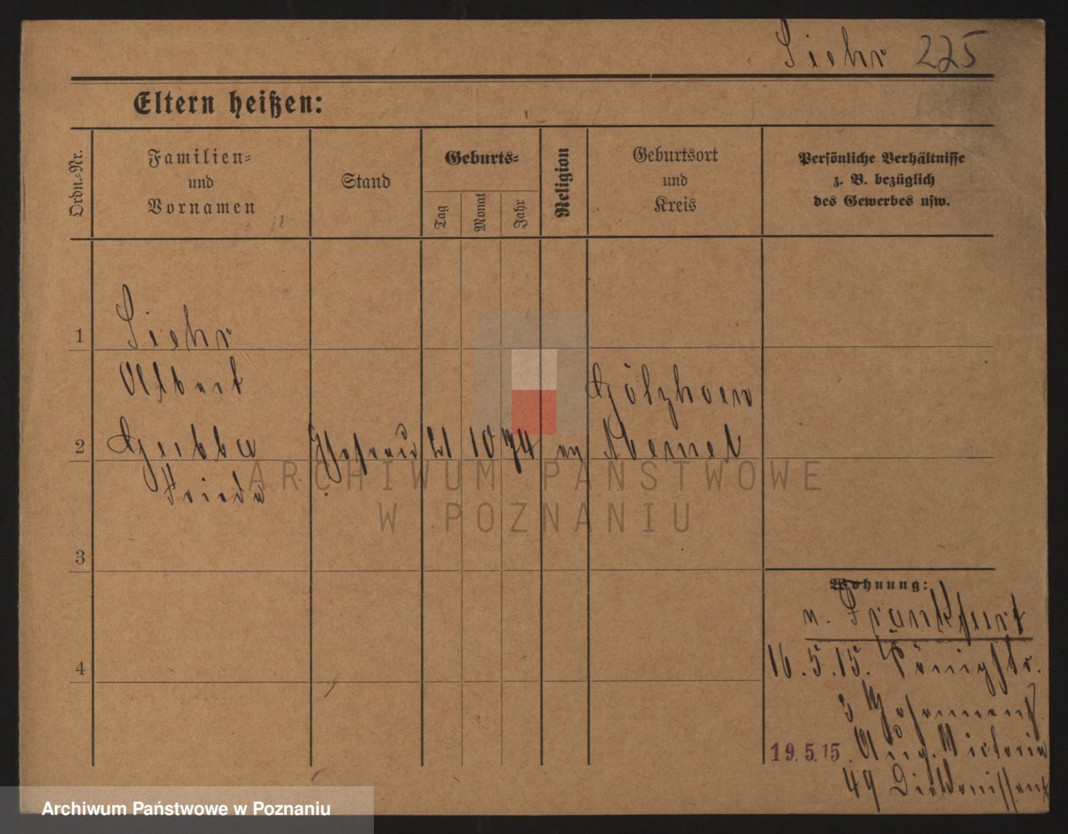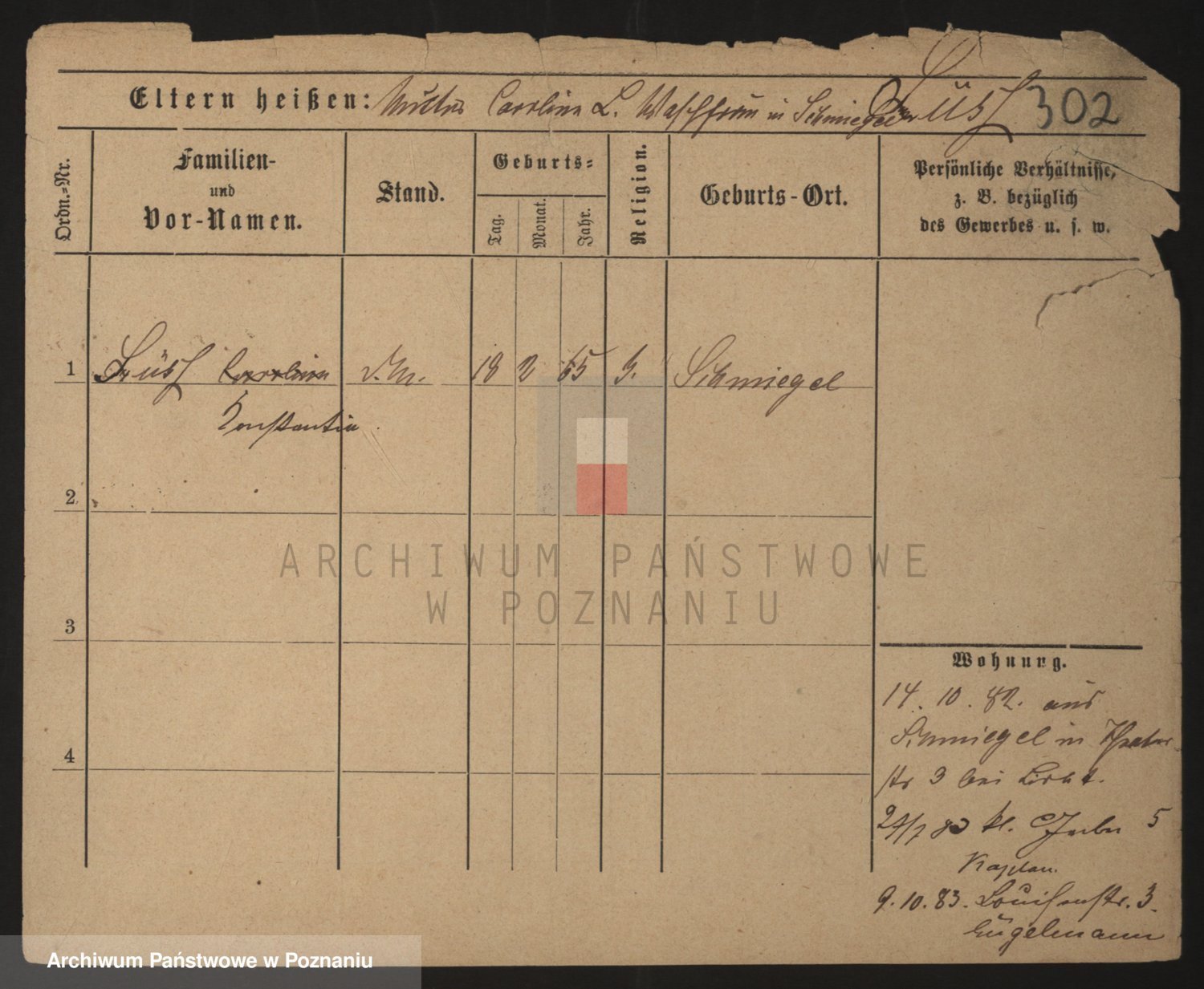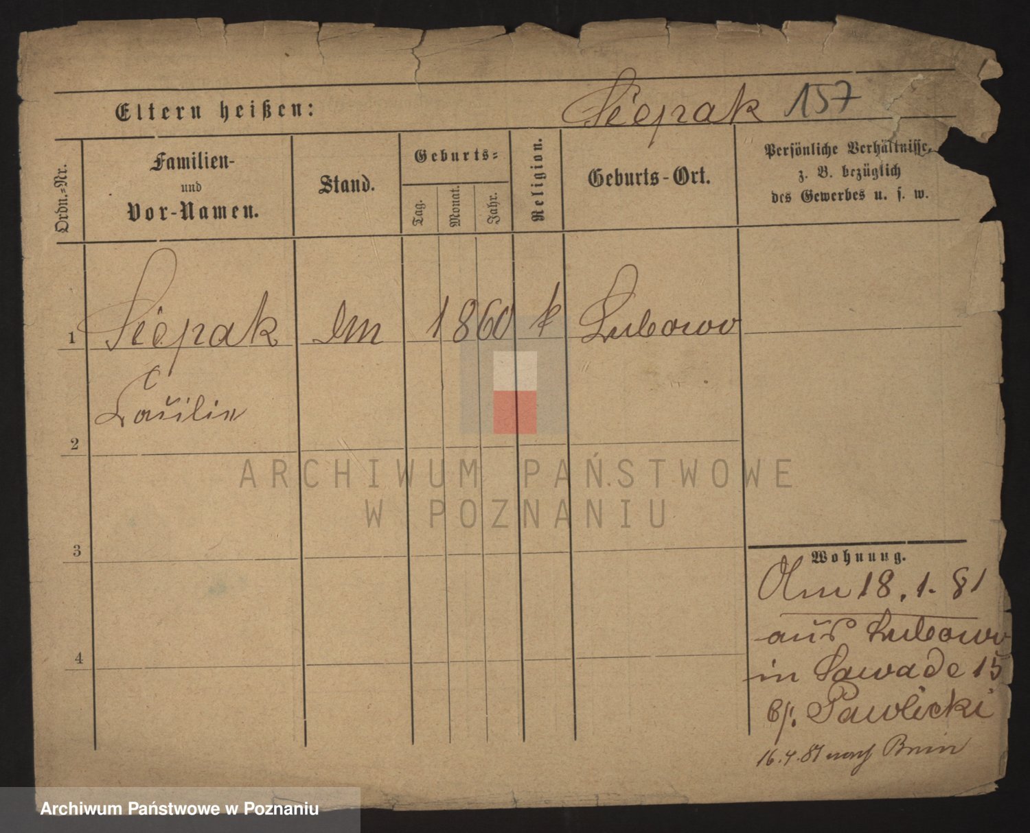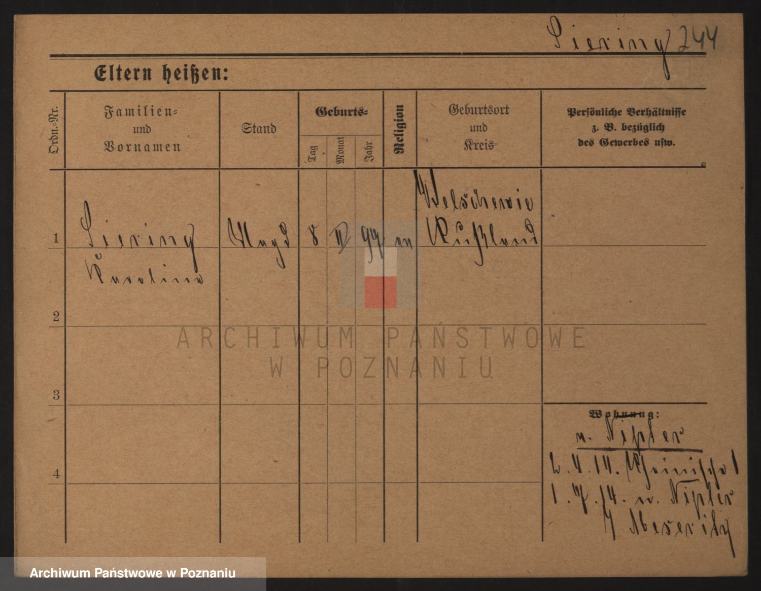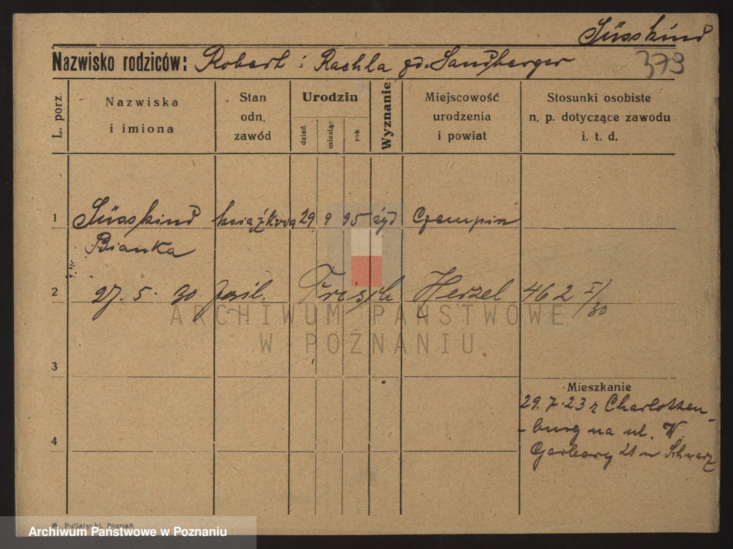 Podgląd karty osobowej dostępny jest po kliknięciu na nazwisko lub ikonkę karty. Można dokonywać powiększenia (ikony na górze) lub przechodzić między kolejnymi skanami (strzałki po bokach).