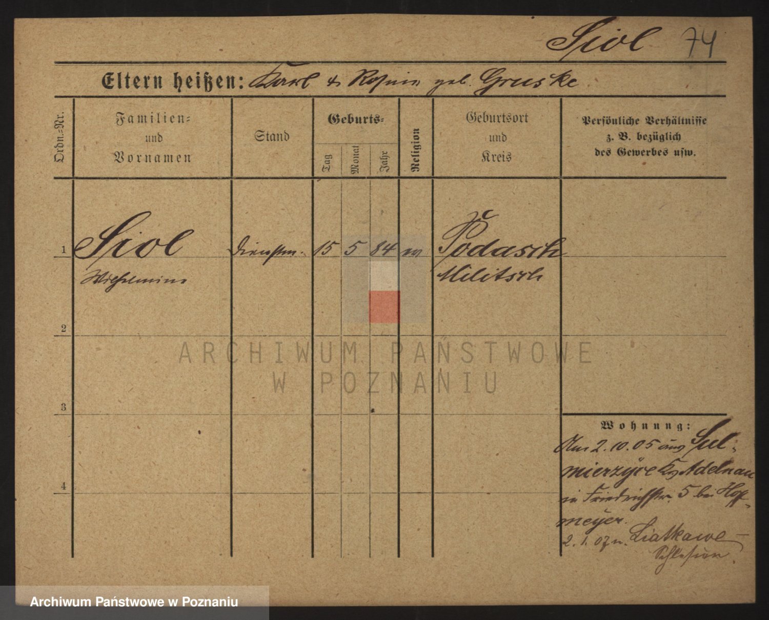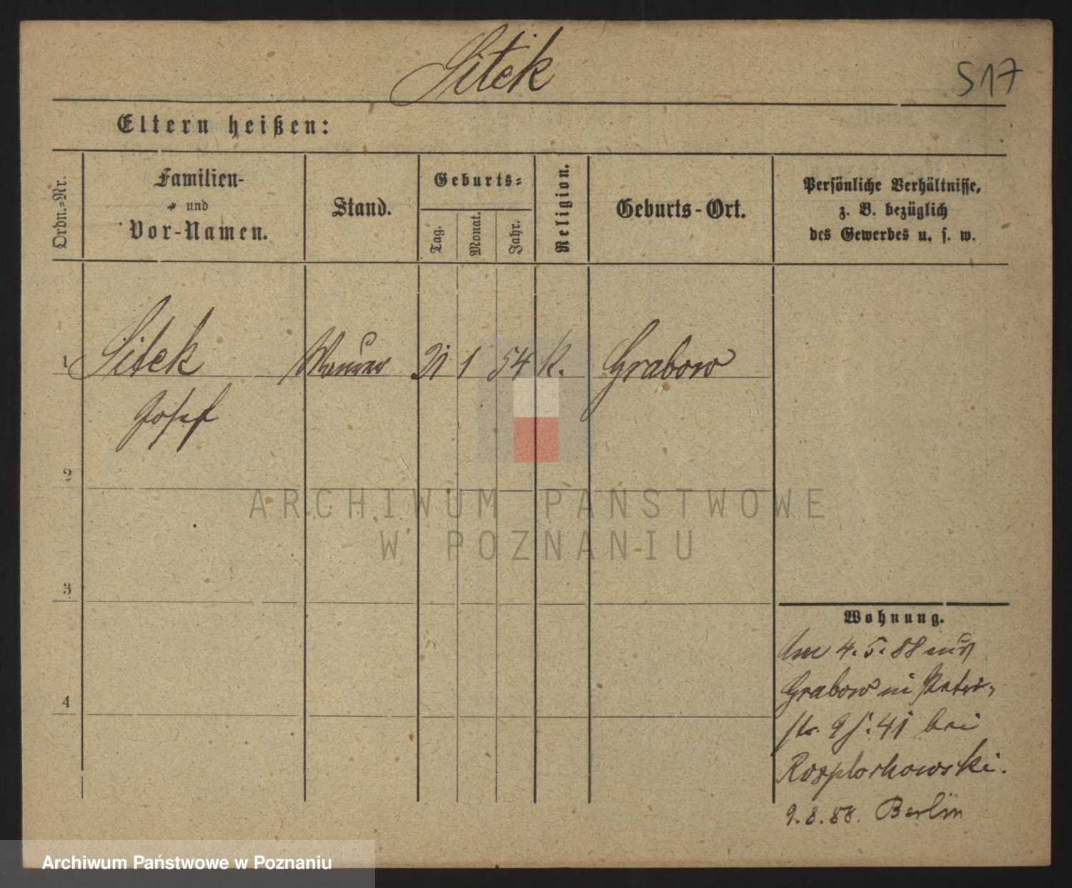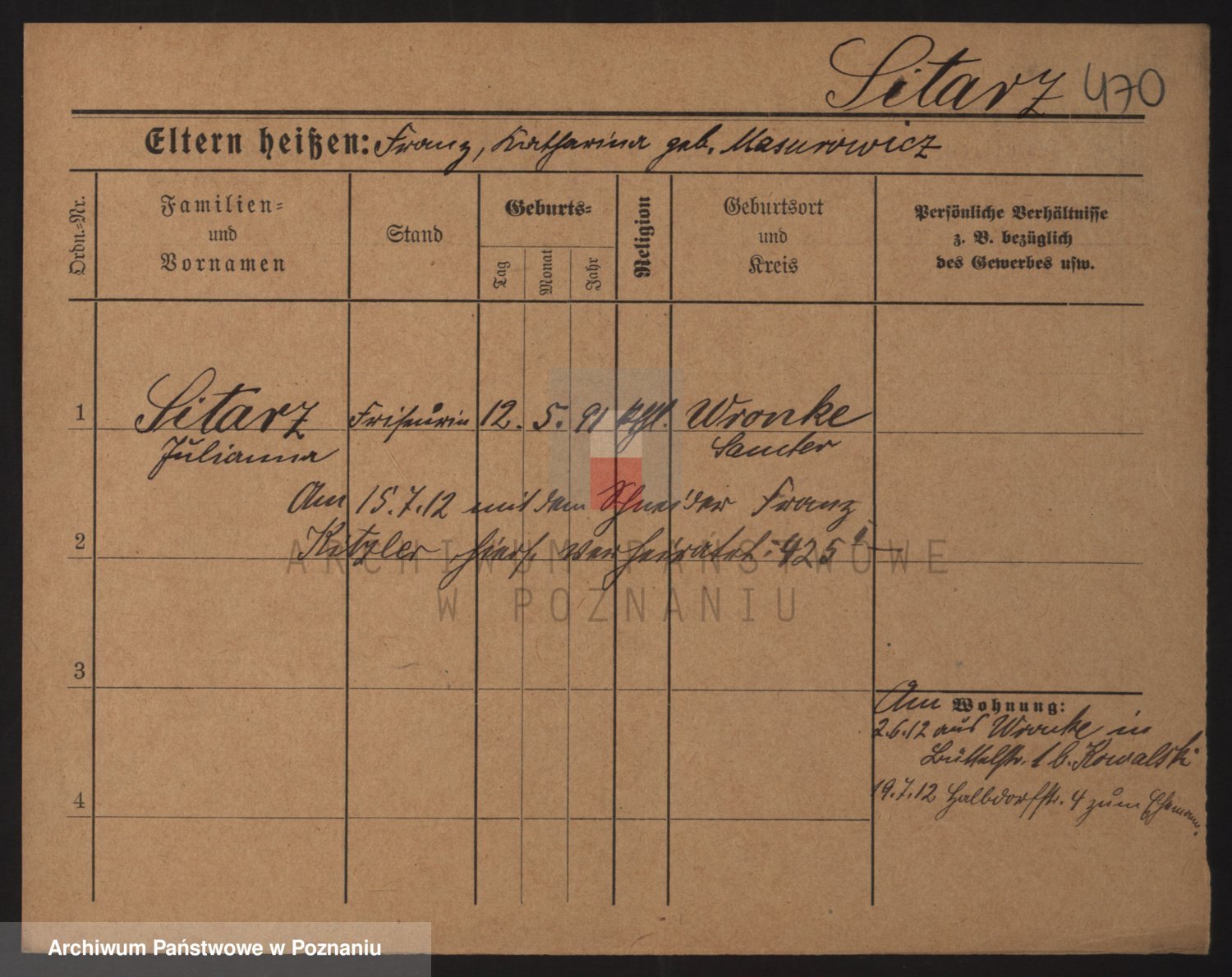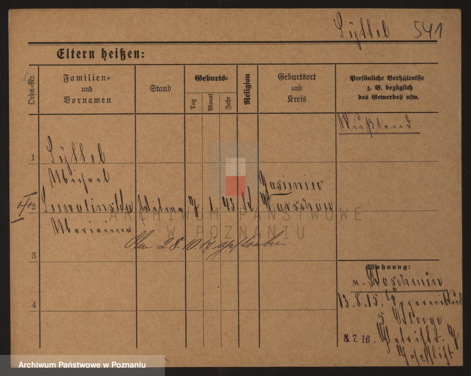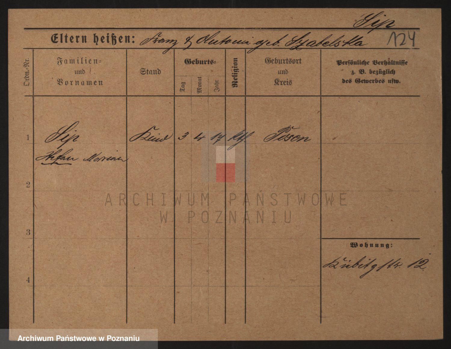 Podgląd karty osobowej dostępny jest po kliknięciu na nazwisko lub ikonkę karty. Można dokonywać powiększenia (ikony na górze) lub przechodzić między kolejnymi skanami (strzałki po bokach).