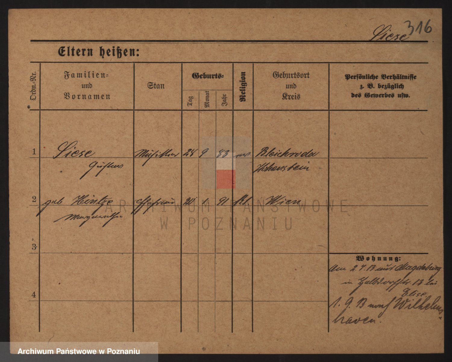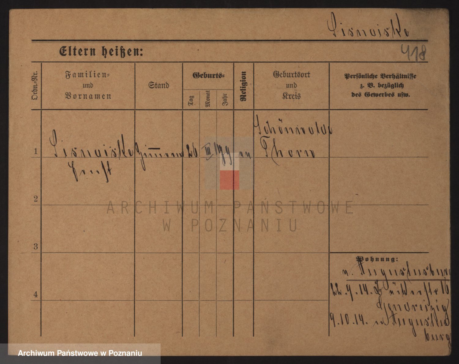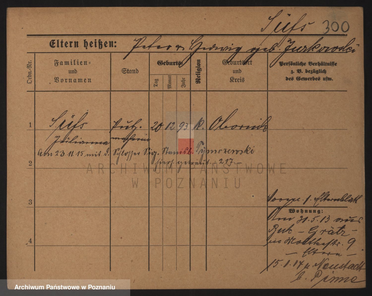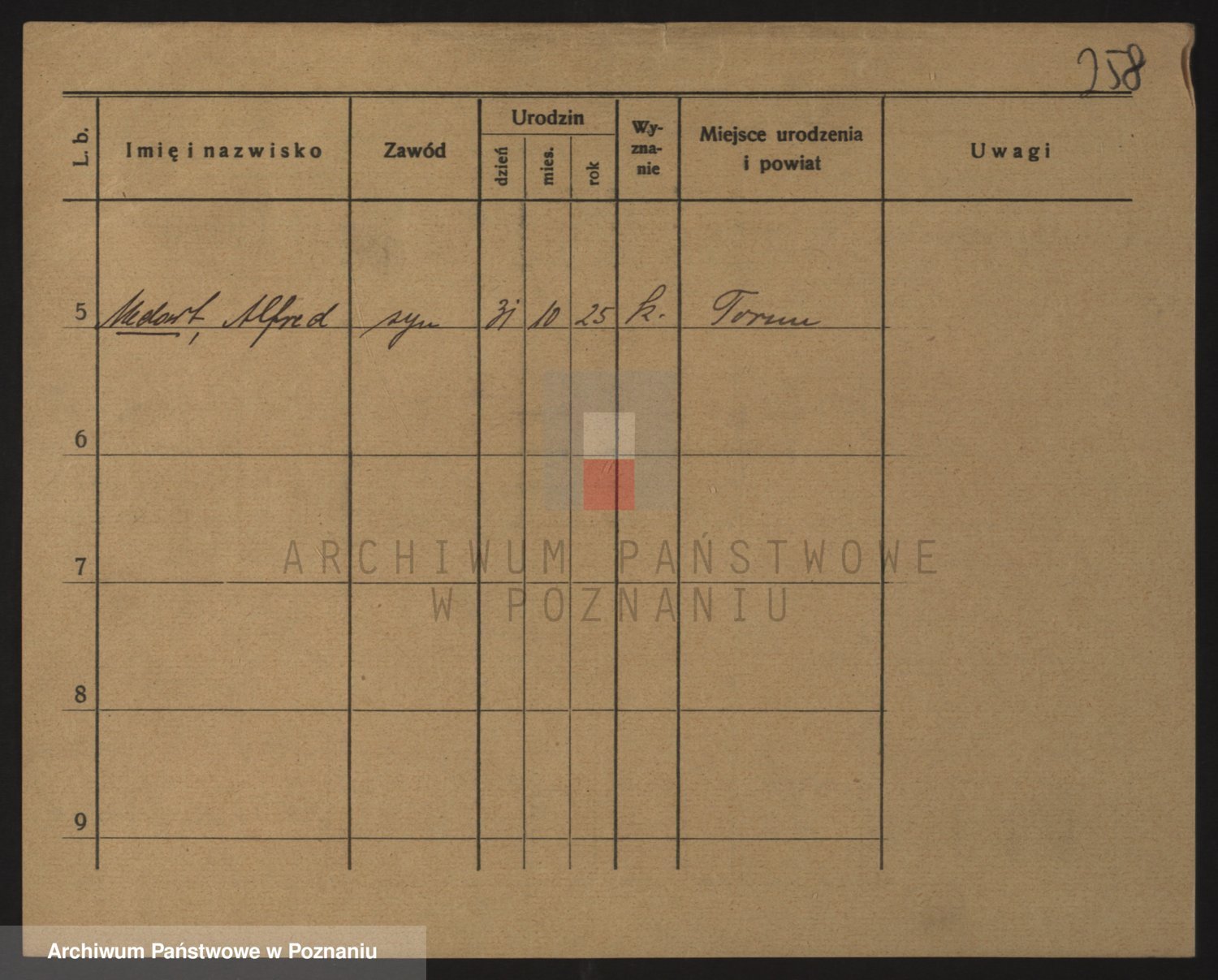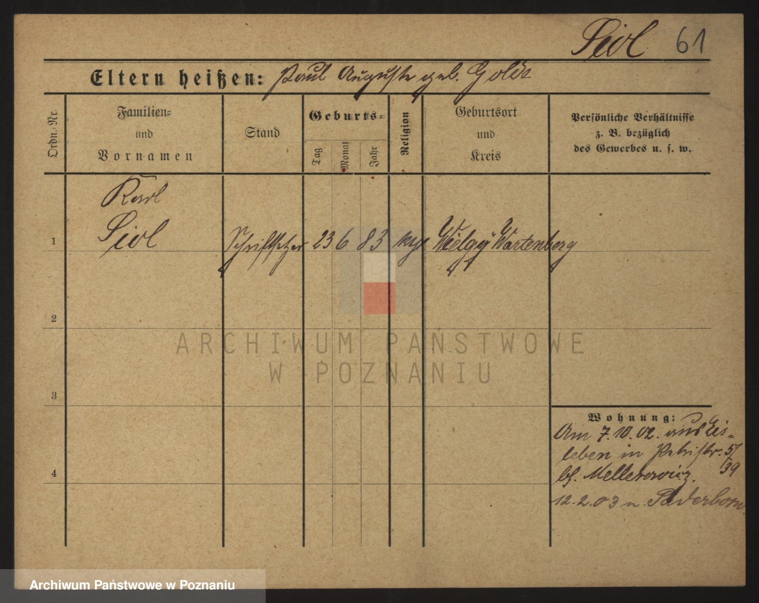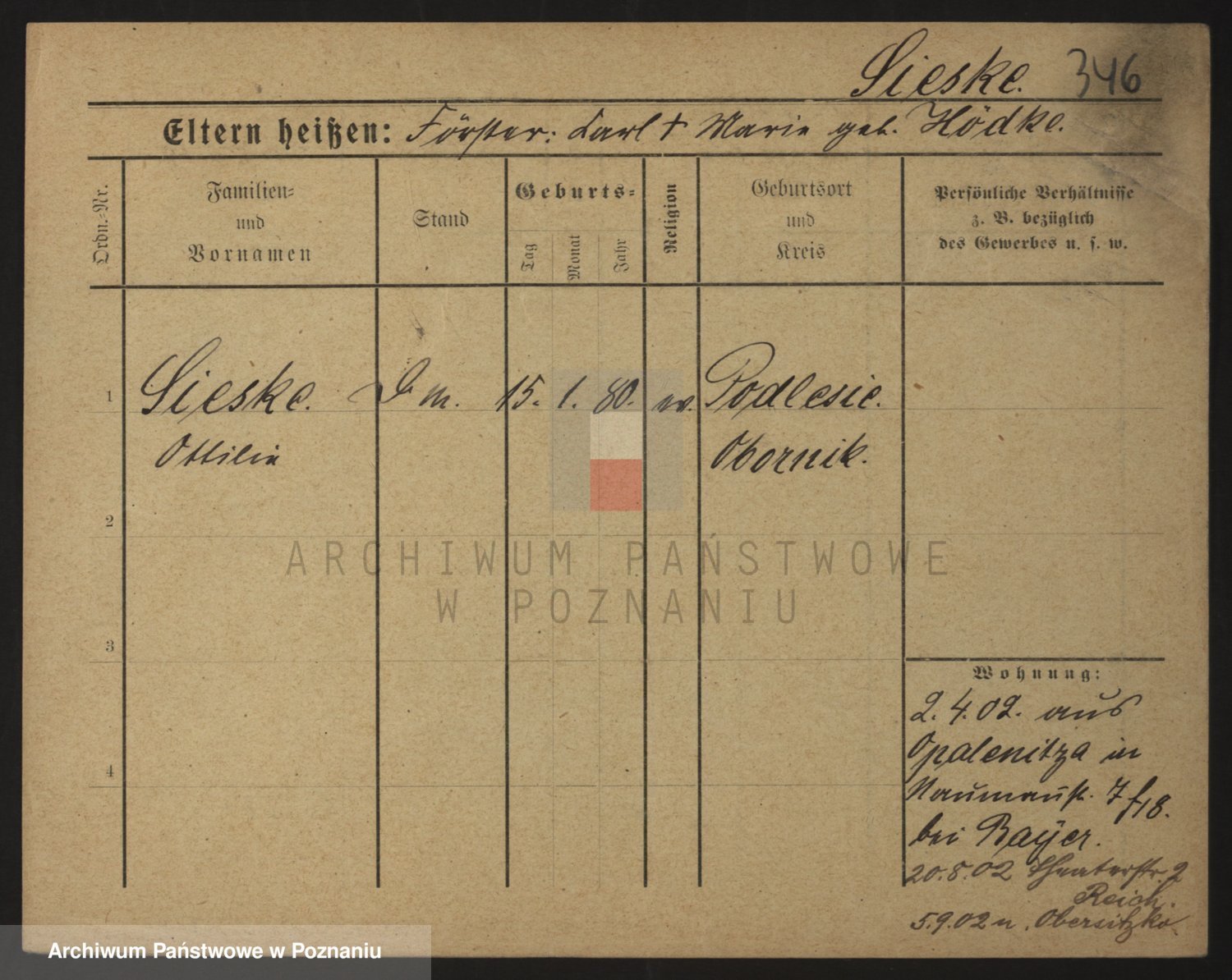 Podgląd karty osobowej dostępny jest po kliknięciu na nazwisko lub ikonkę karty. Można dokonywać powiększenia (ikony na górze) lub przechodzić między kolejnymi skanami (strzałki po bokach).