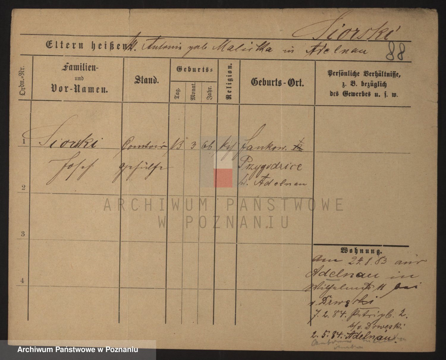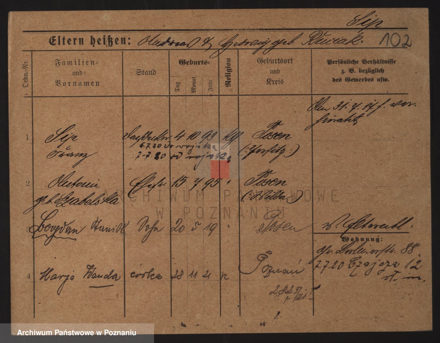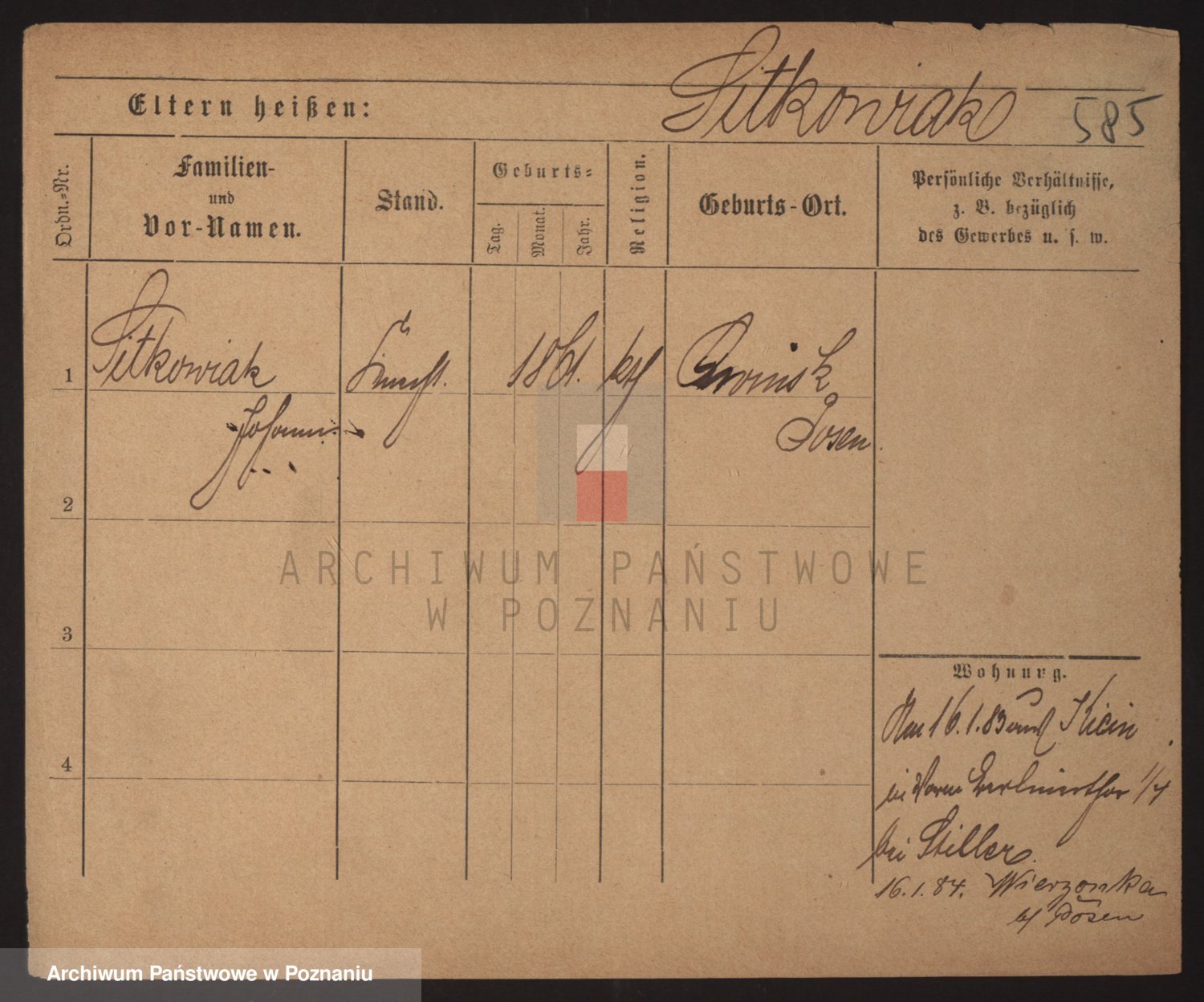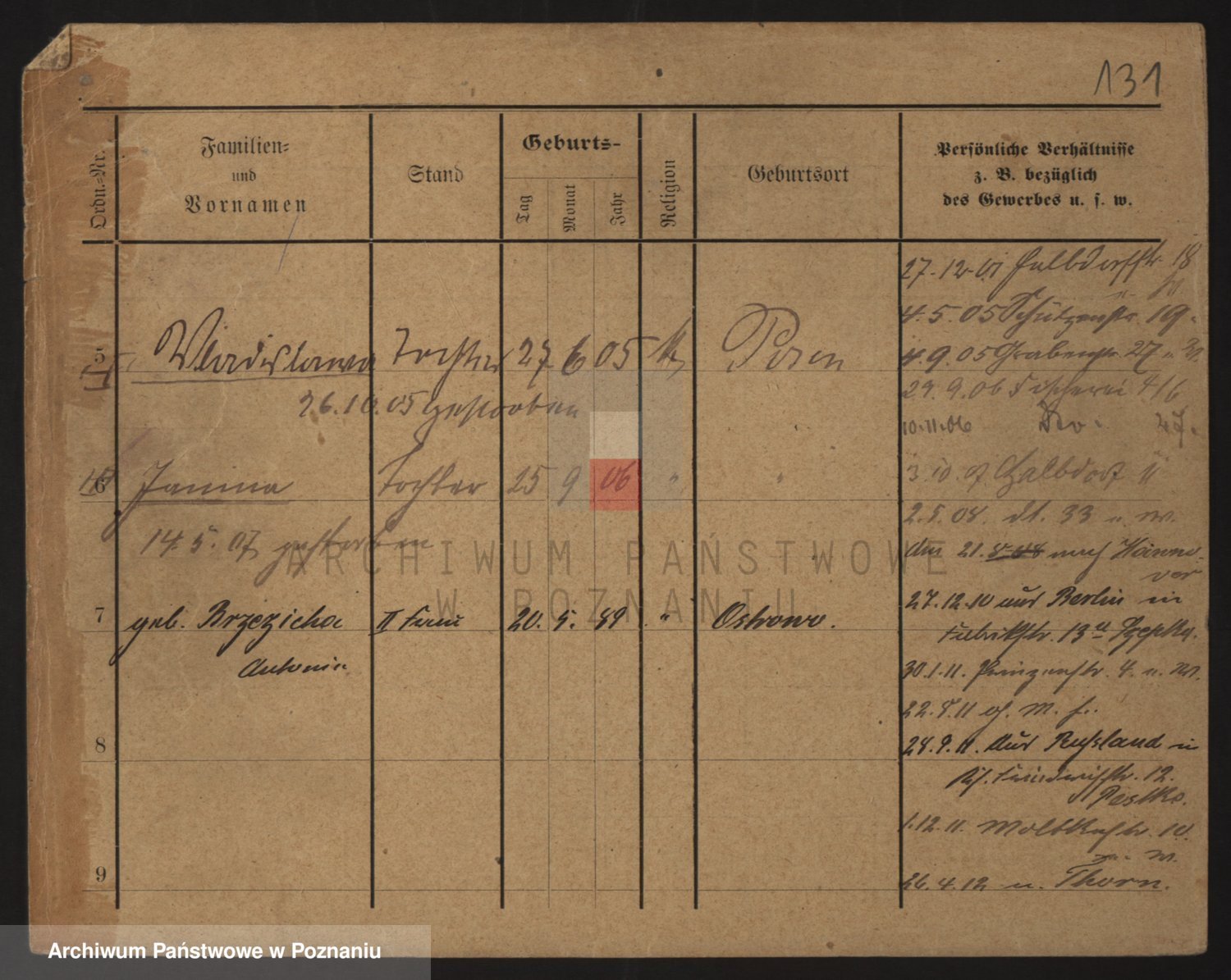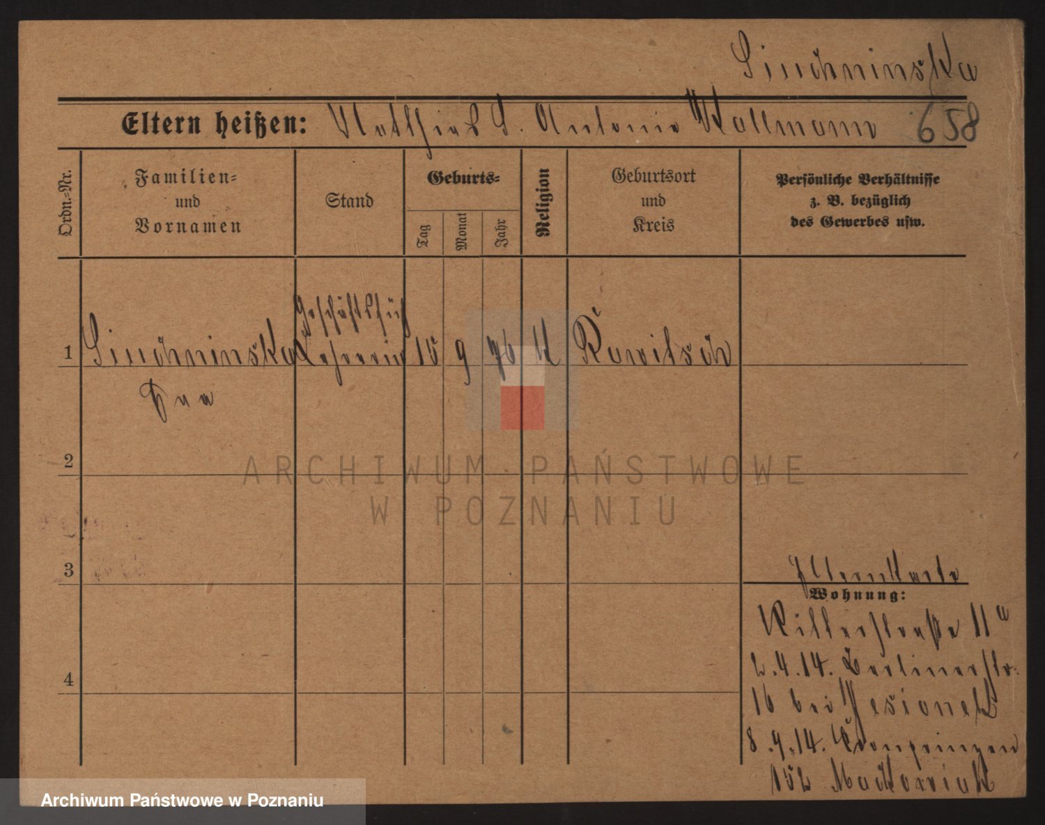Podgląd karty osobowej dostępny jest po kliknięciu na nazwisko lub ikonkę karty. Można dokonywać powiększenia (ikony na górze) lub przechodzić między kolejnymi skanami (strzałki po bokach).