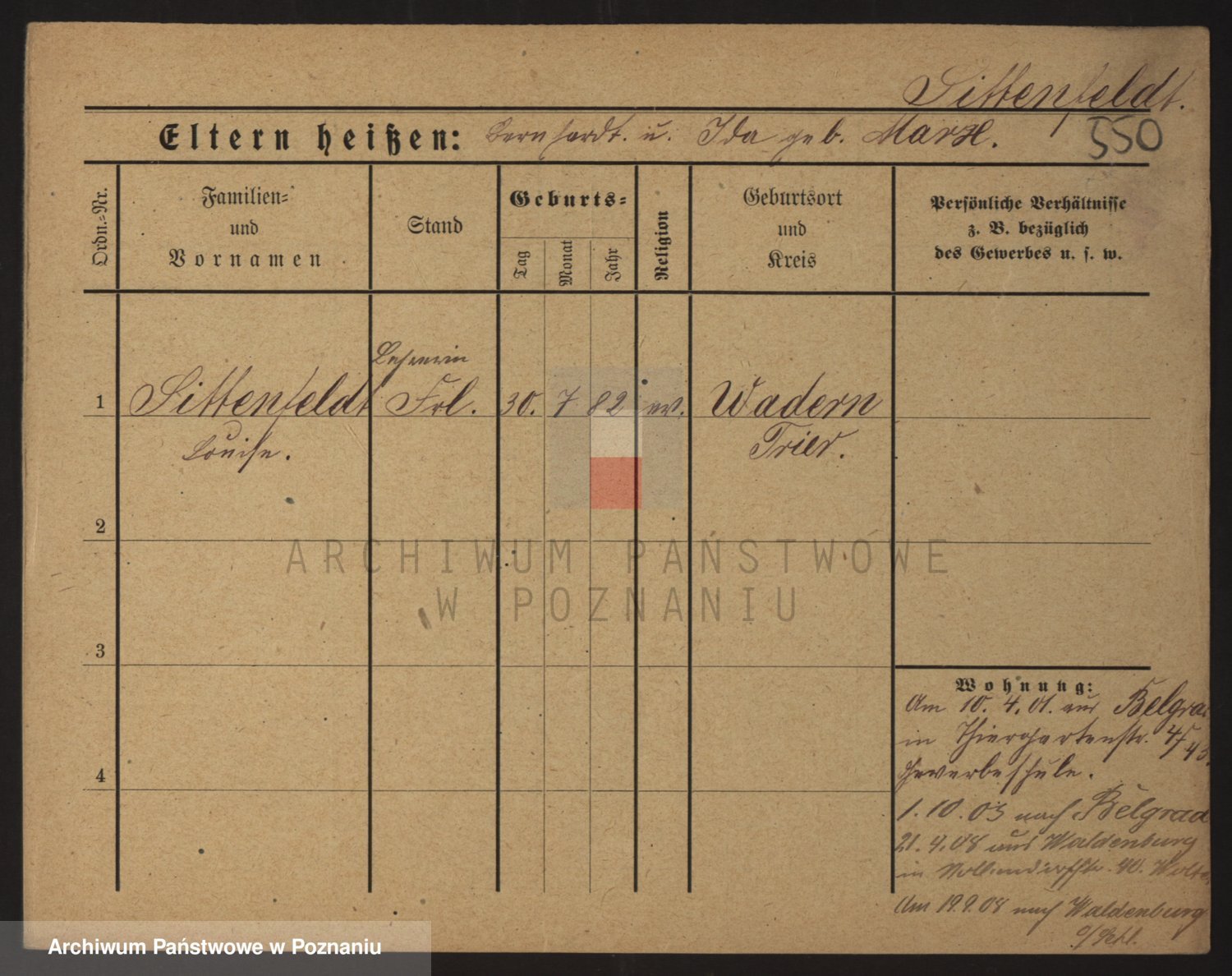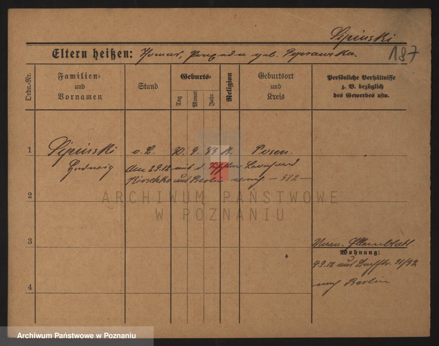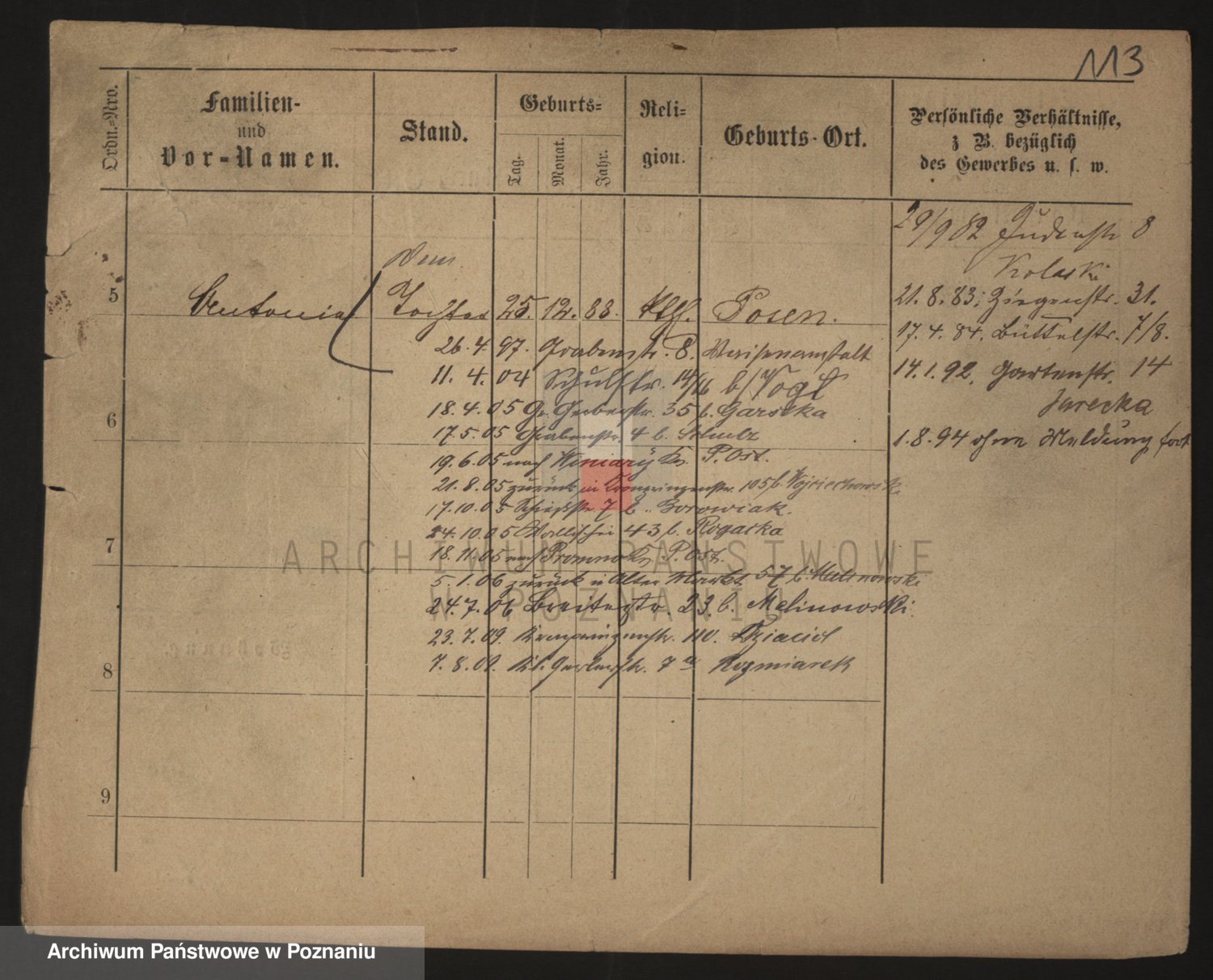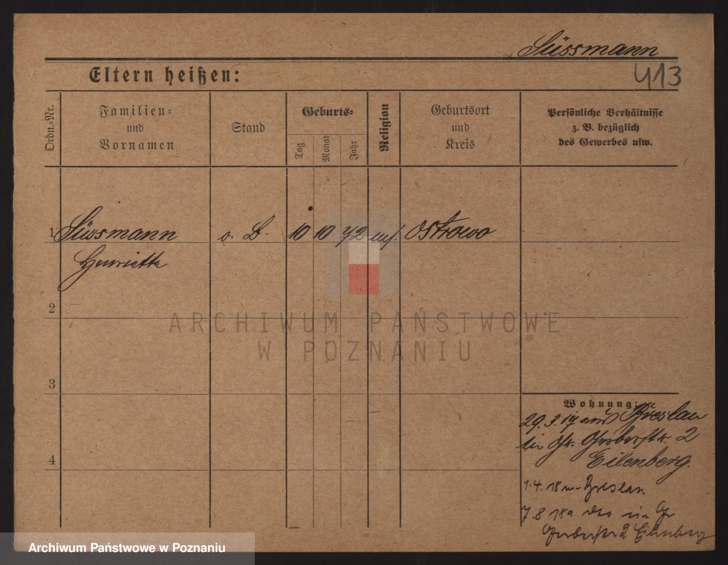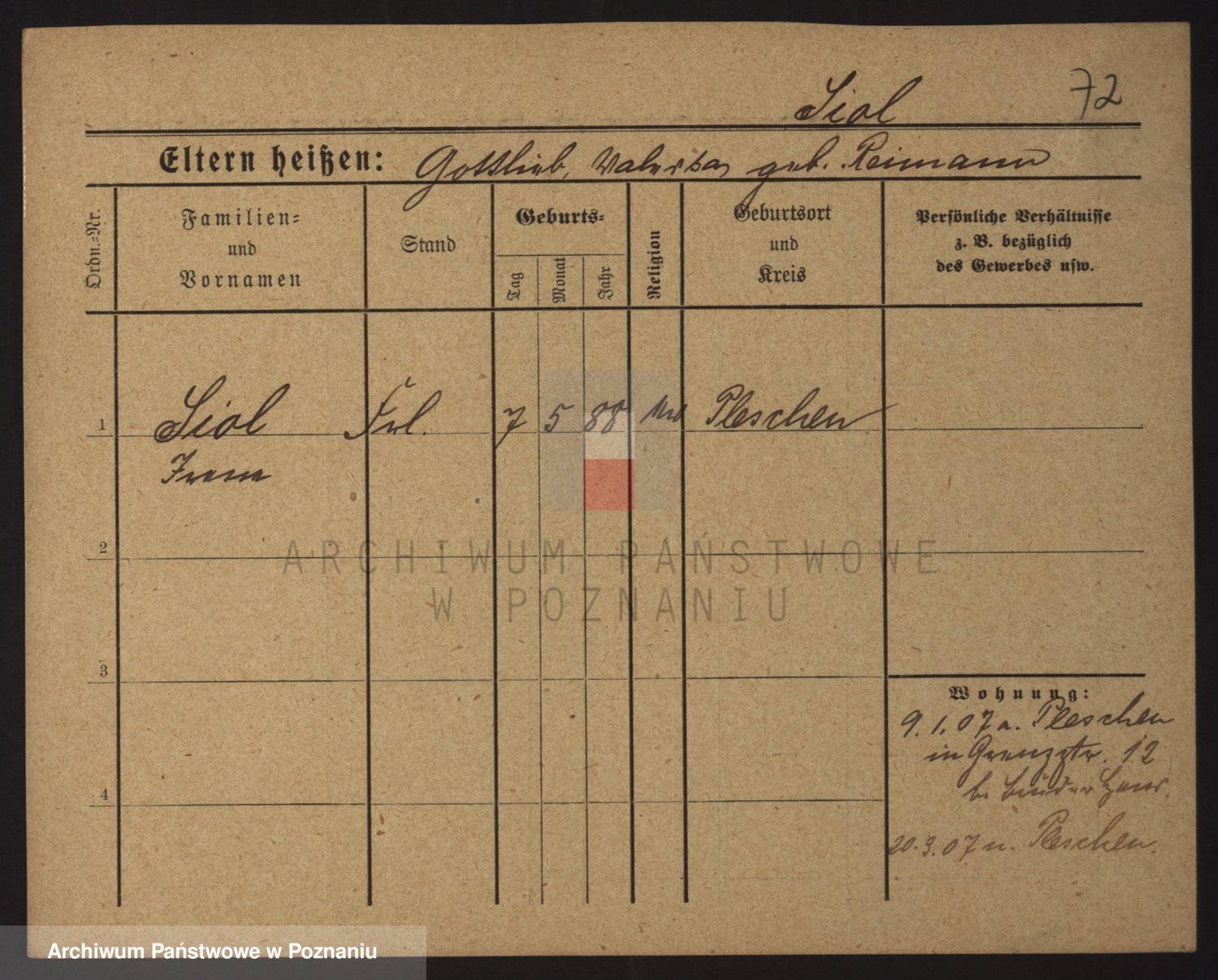 Podgląd karty osobowej dostępny jest po kliknięciu na nazwisko lub ikonkę karty. Można dokonywać powiększenia (ikony na górze) lub przechodzić między kolejnymi skanami (strzałki po bokach).