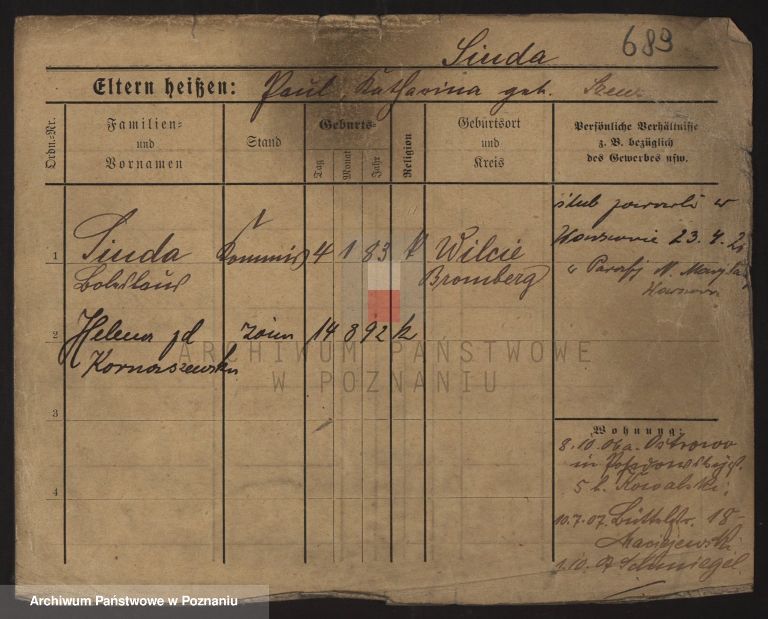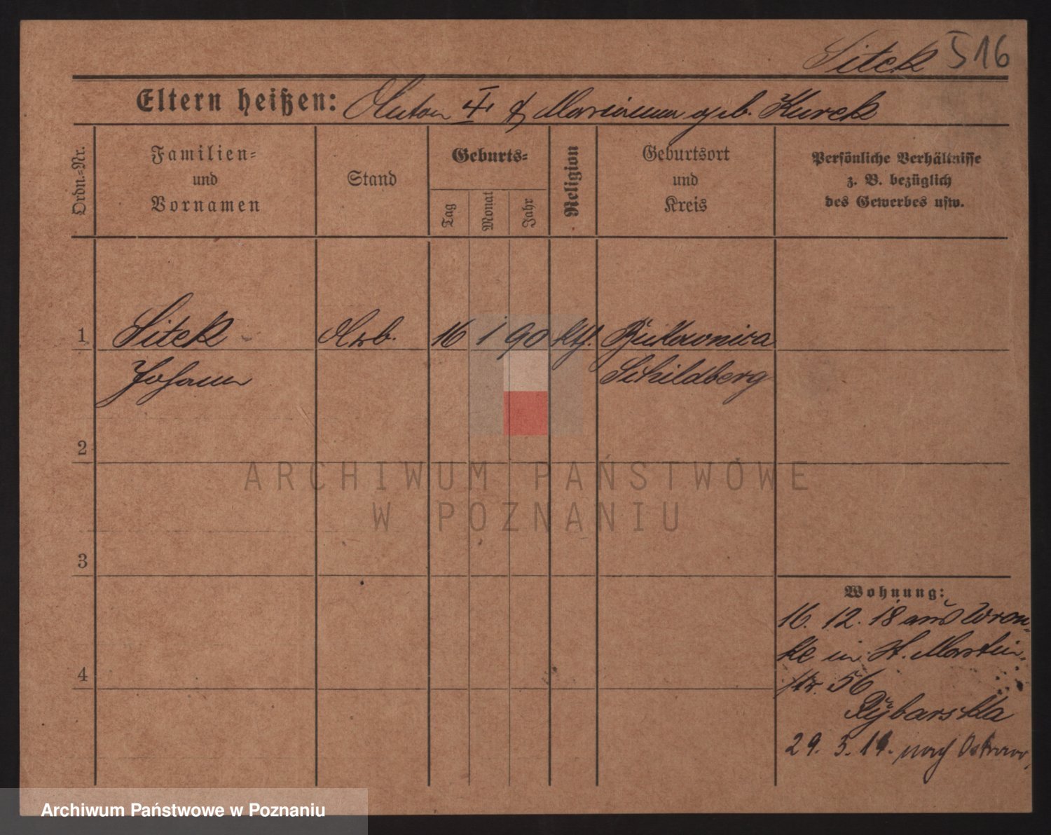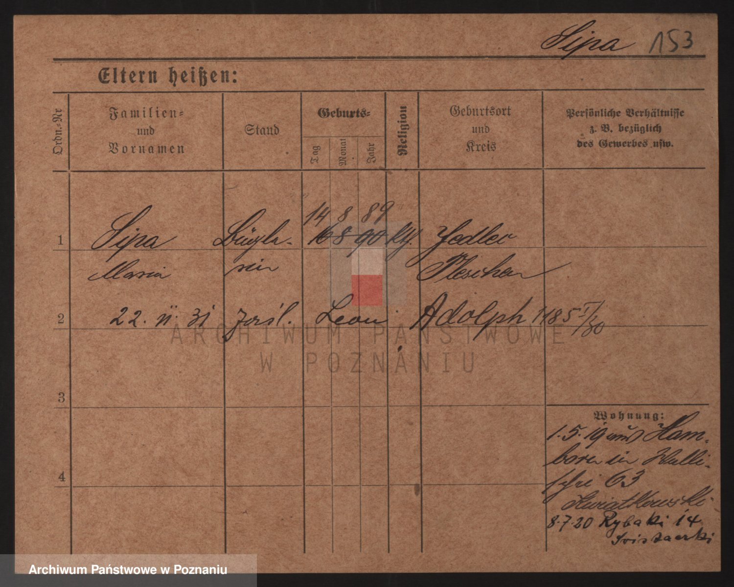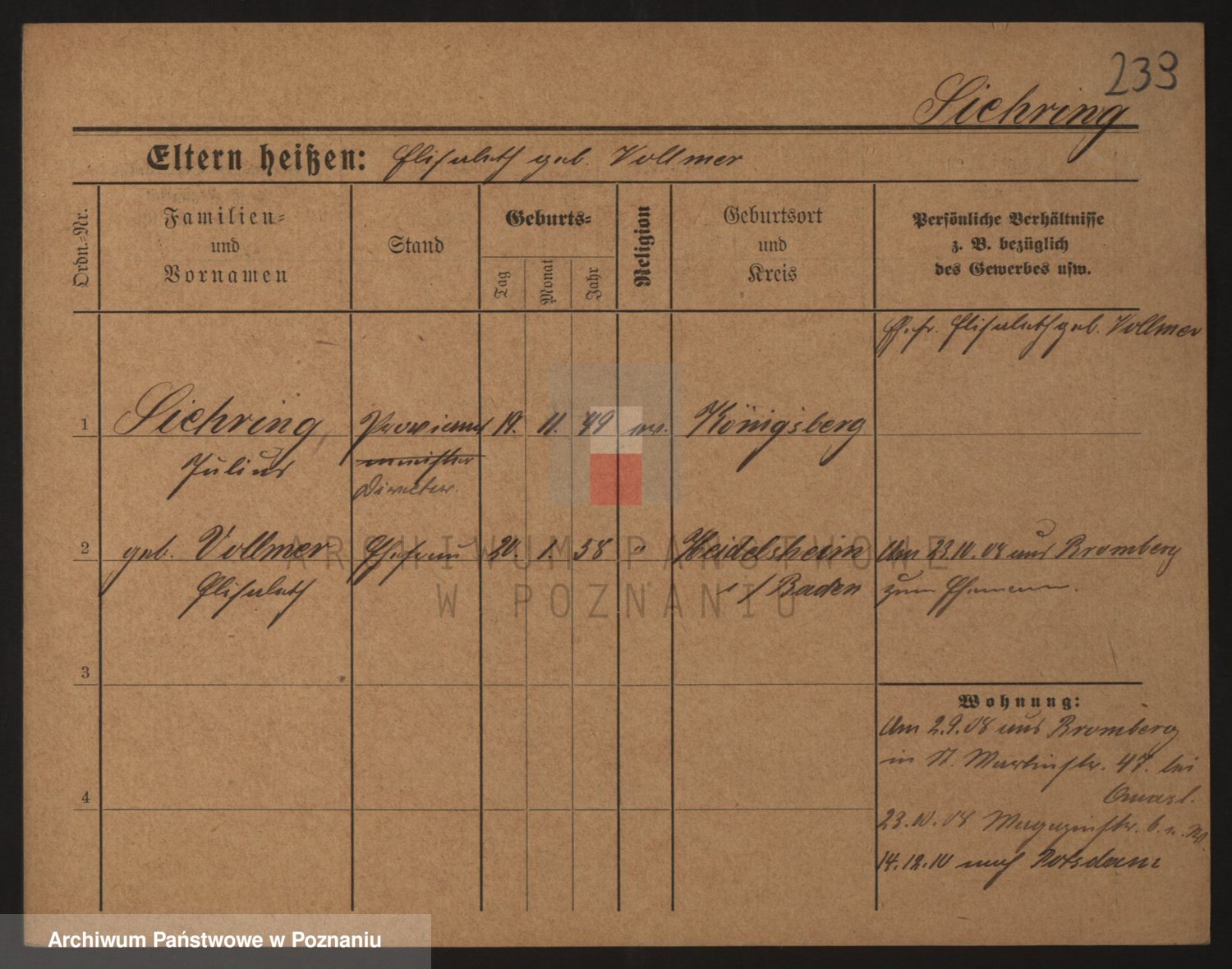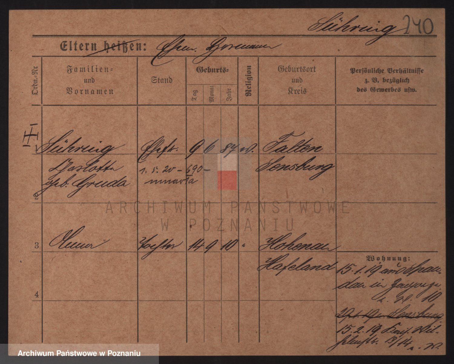 Podgląd karty osobowej dostępny jest po kliknięciu na nazwisko lub ikonkę karty. Można dokonywać powiększenia (ikony na górze) lub przechodzić między kolejnymi skanami (strzałki po bokach).