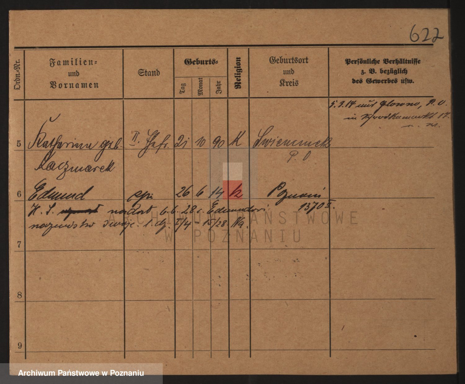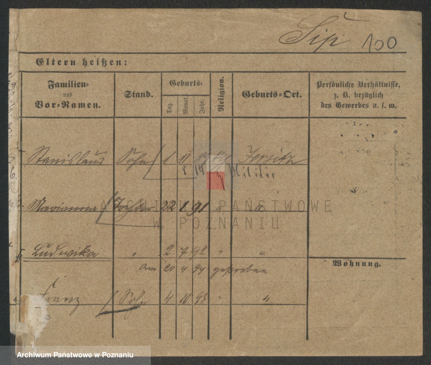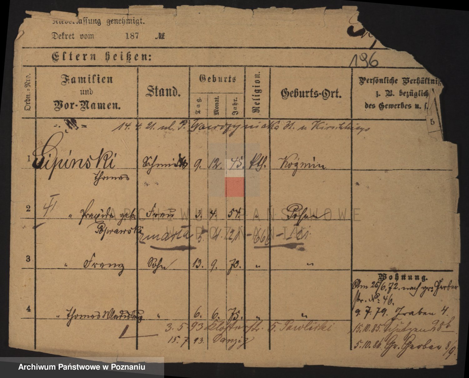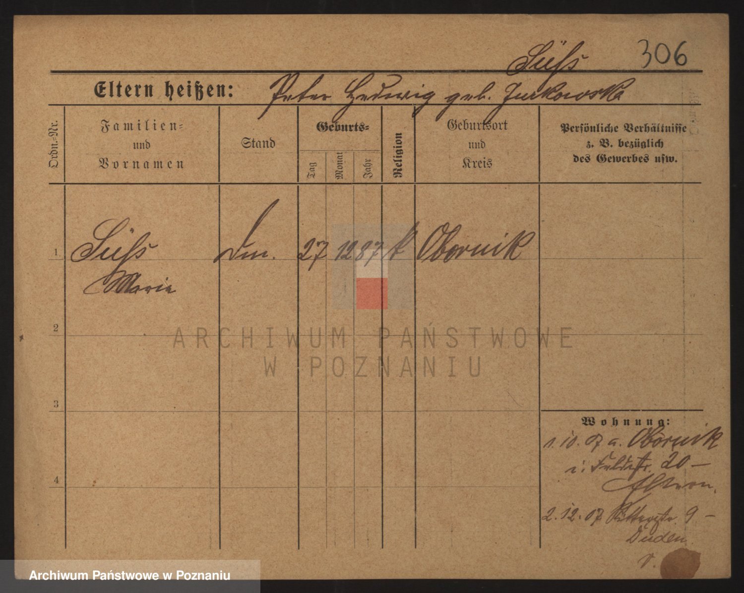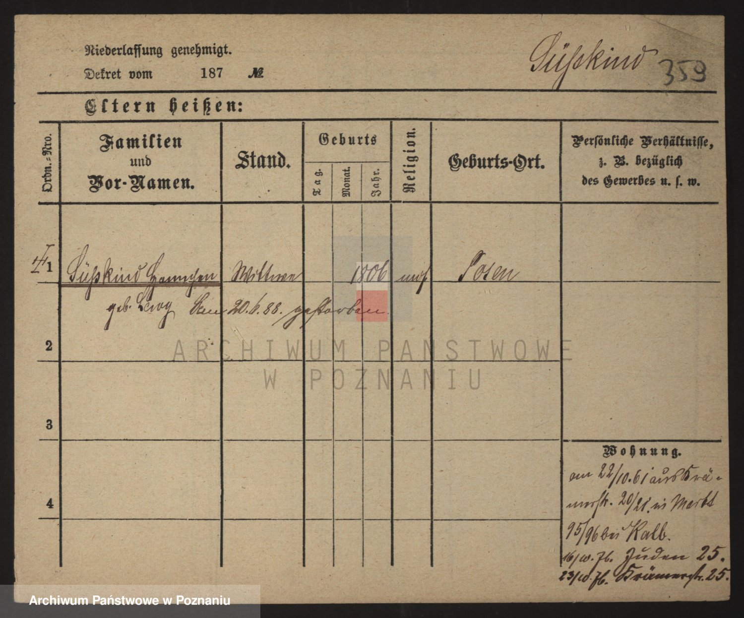 Podgląd karty osobowej dostępny jest po kliknięciu na nazwisko lub ikonkę karty. Można dokonywać powiększenia (ikony na górze) lub przechodzić między kolejnymi skanami (strzałki po bokach).