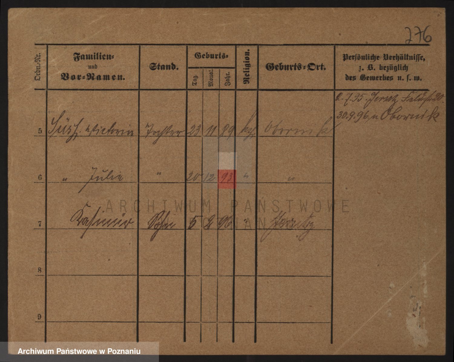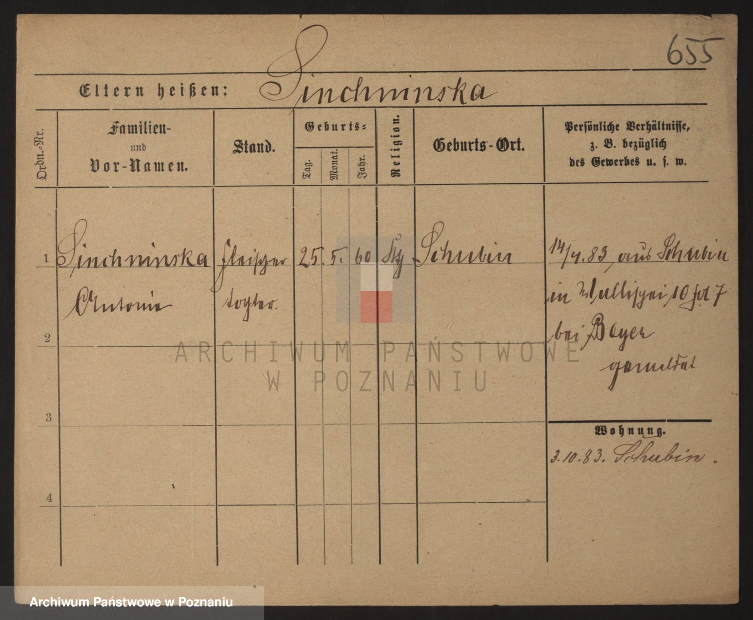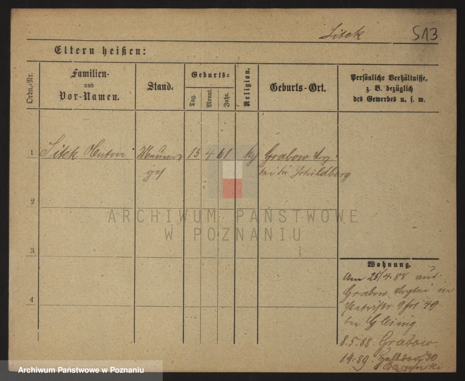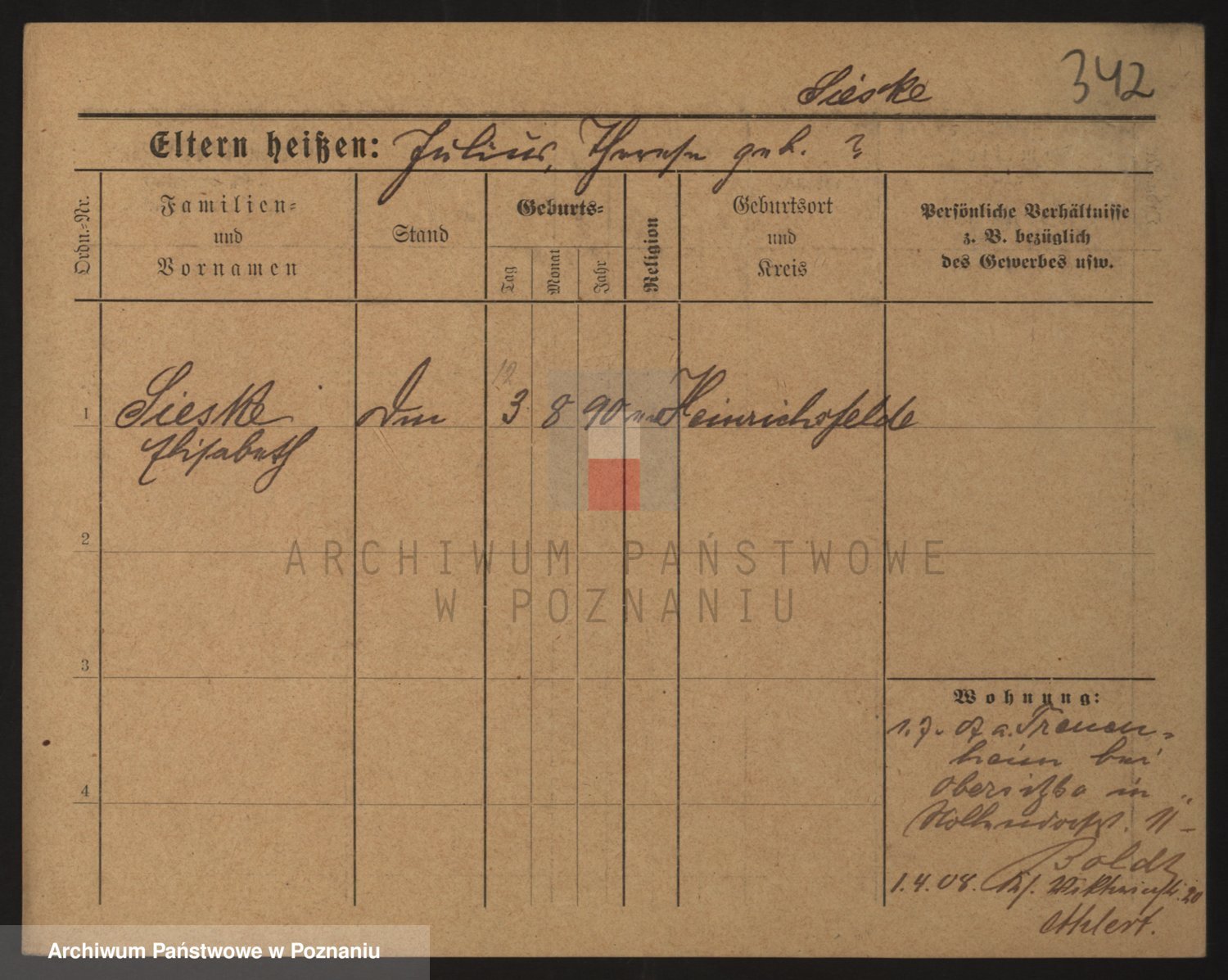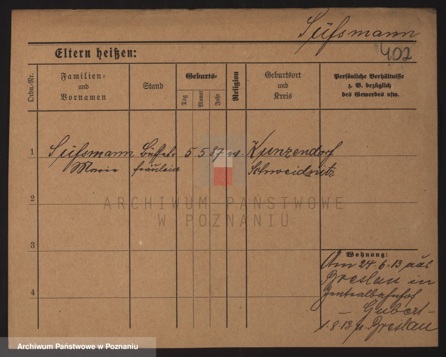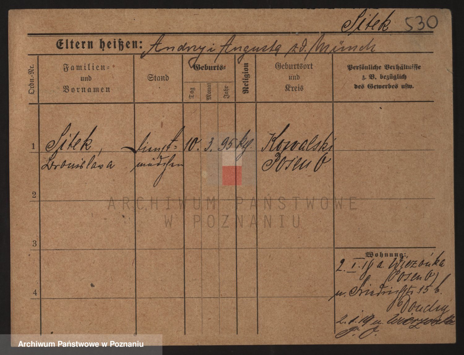 Podgląd karty osobowej dostępny jest po kliknięciu na nazwisko lub ikonkę karty. Można dokonywać powiększenia (ikony na górze) lub przechodzić między kolejnymi skanami (strzałki po bokach).