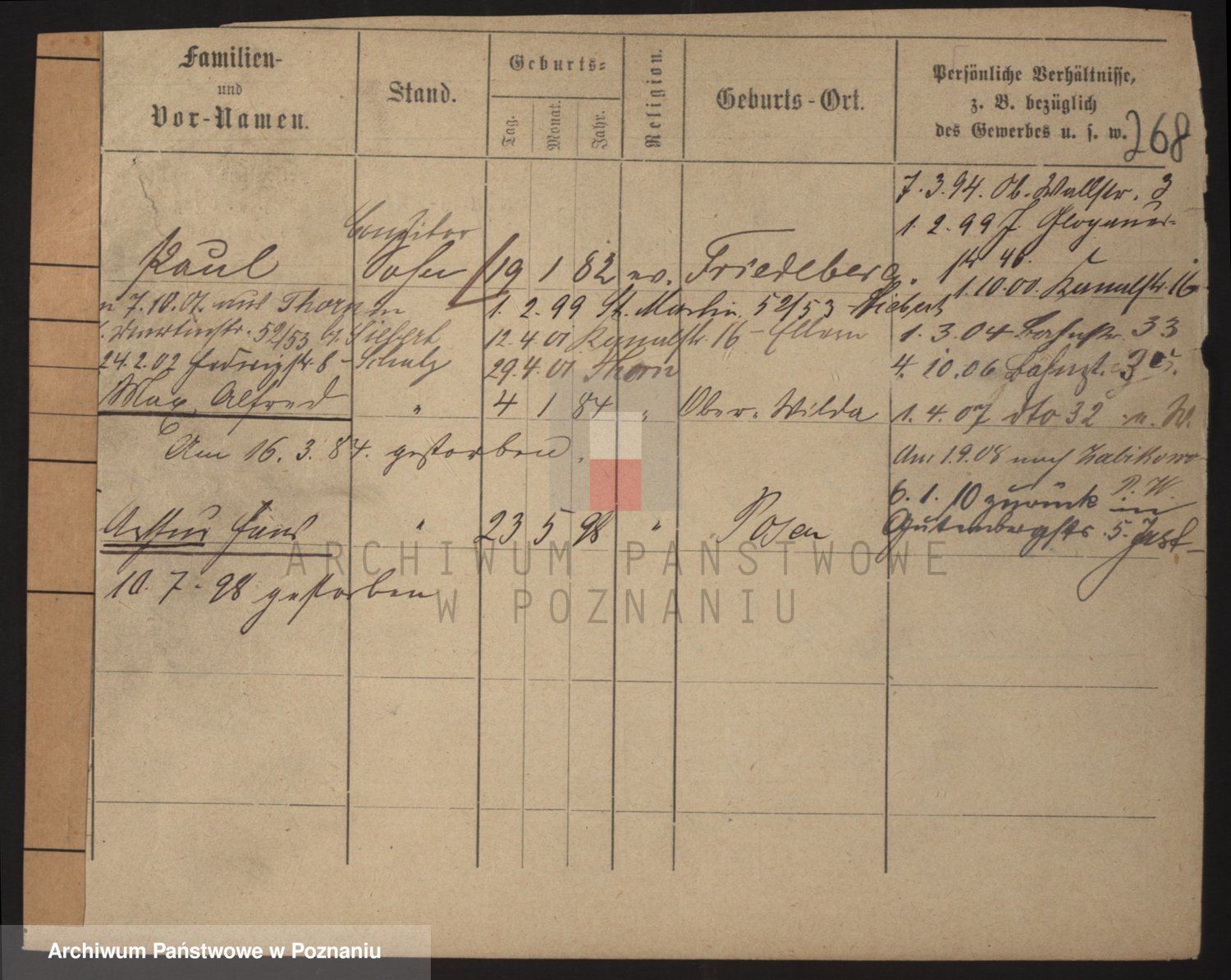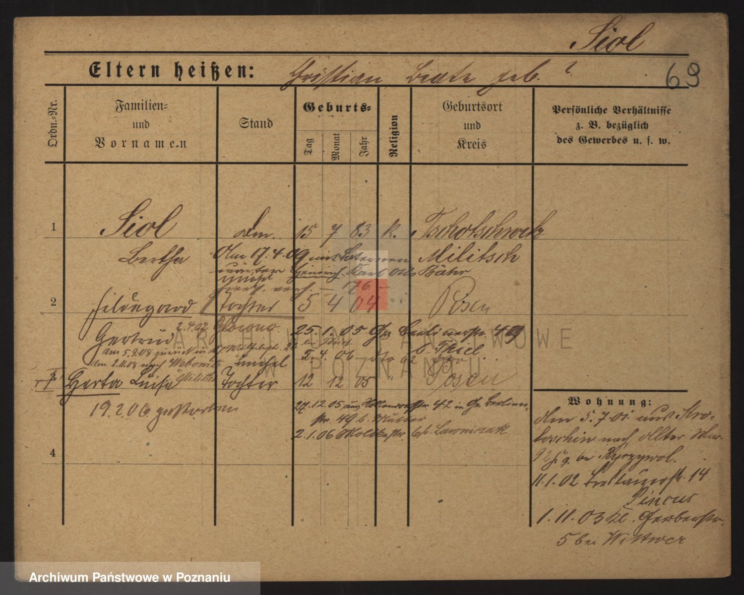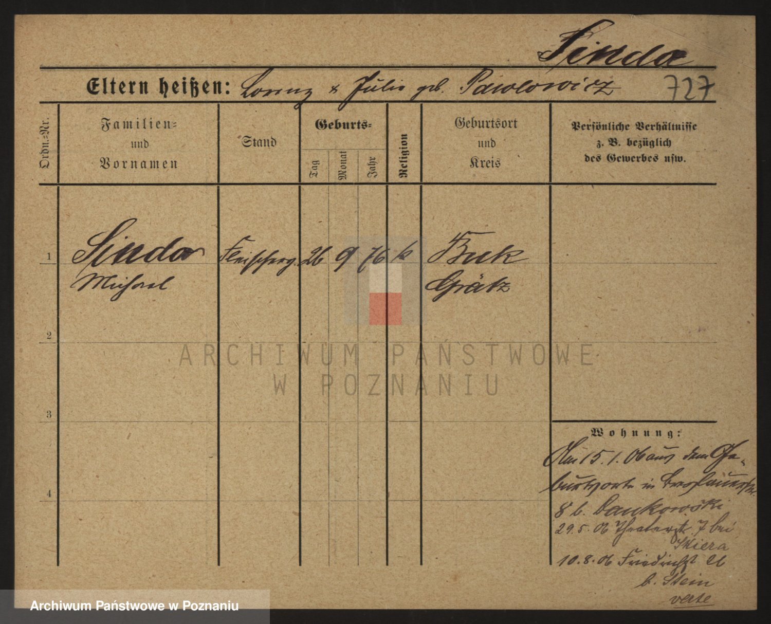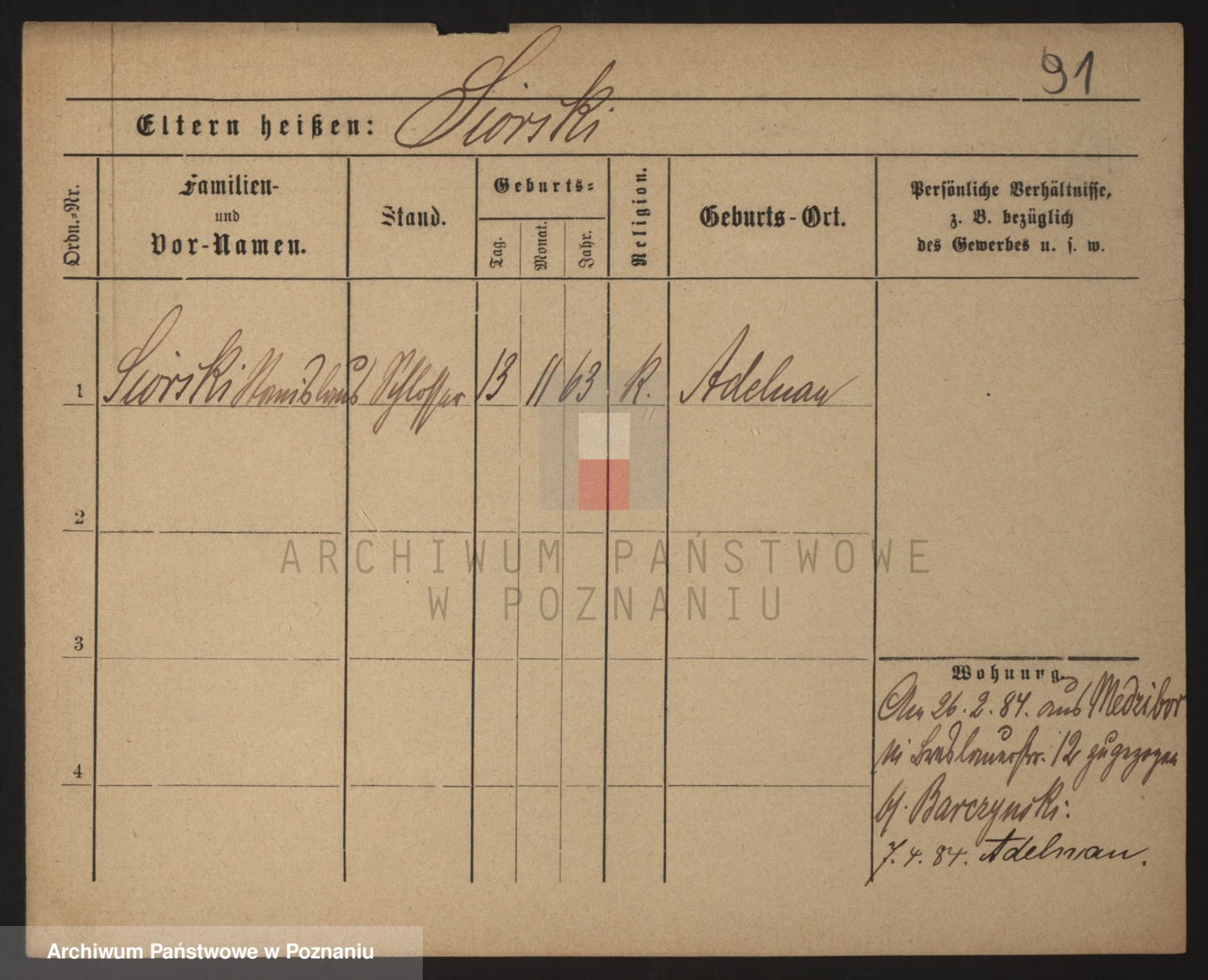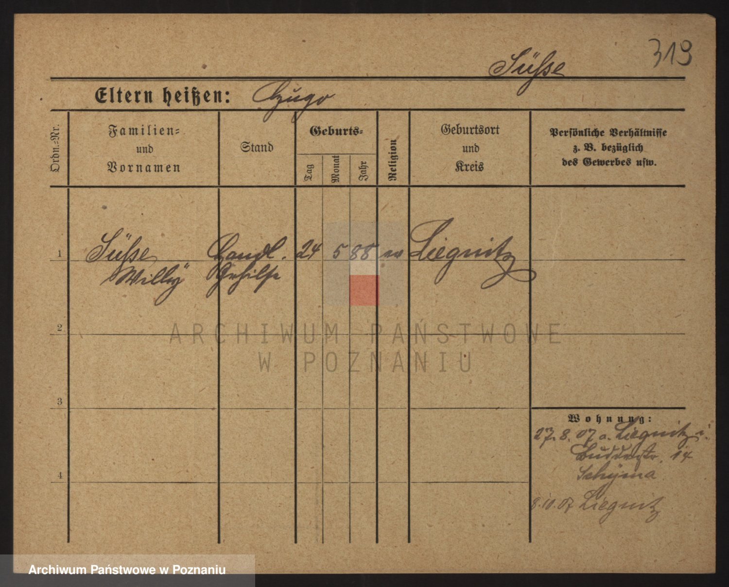 Podgląd karty osobowej dostępny jest po kliknięciu na nazwisko lub ikonkę karty. Można dokonywać powiększenia (ikony na górze) lub przechodzić między kolejnymi skanami (strzałki po bokach).