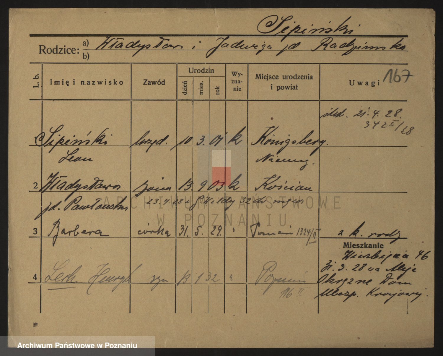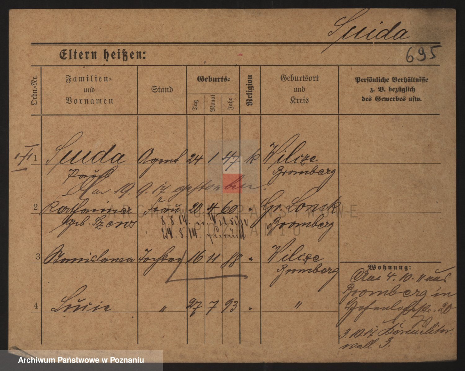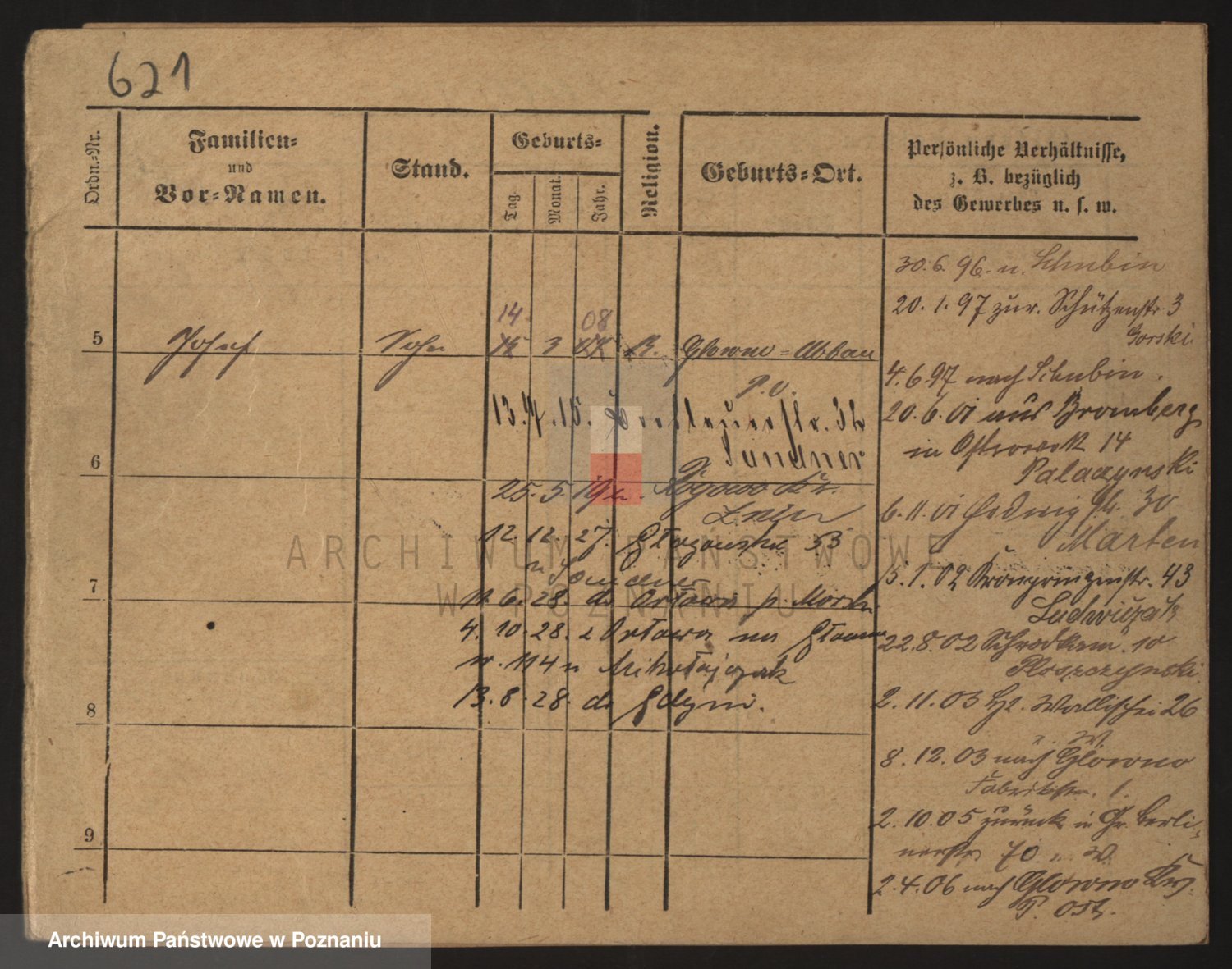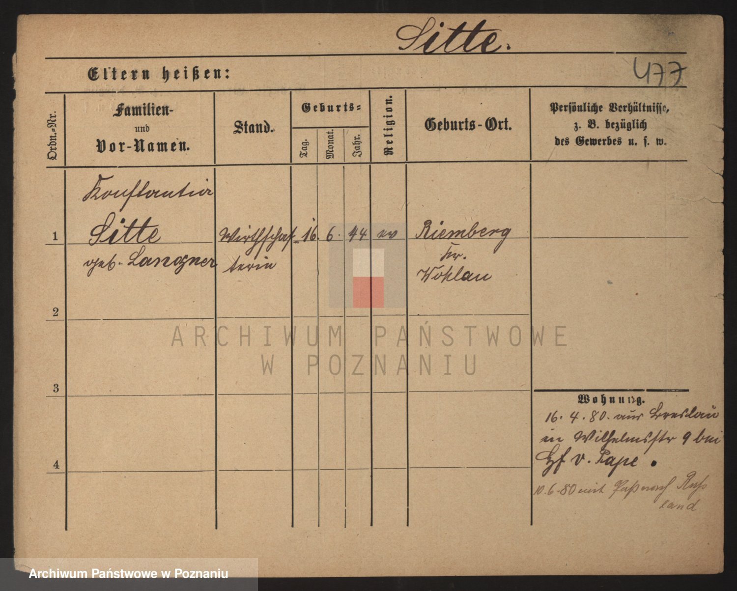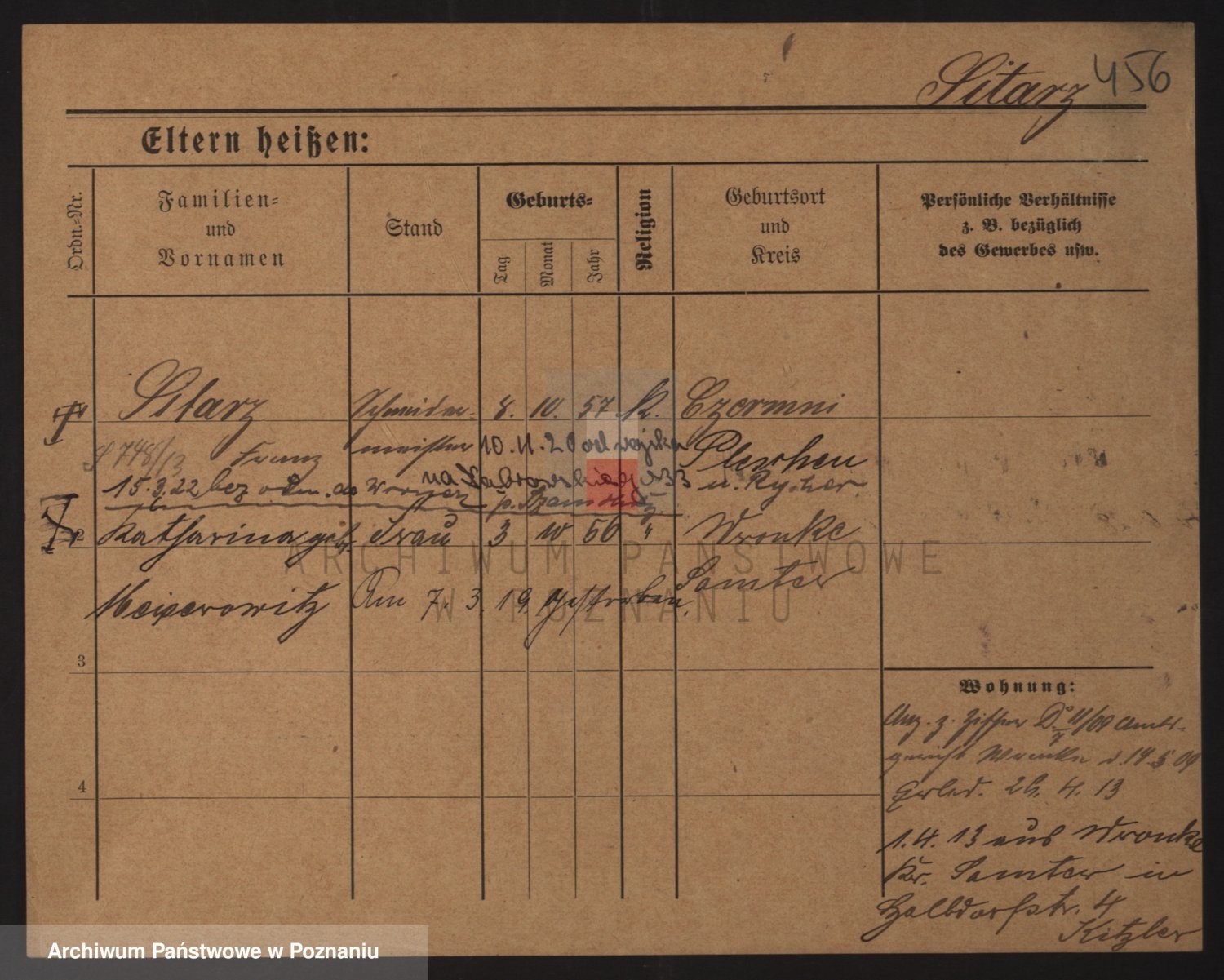 Podgląd karty osobowej dostępny jest po kliknięciu na nazwisko lub ikonkę karty. Można dokonywać powiększenia (ikony na górze) lub przechodzić między kolejnymi skanami (strzałki po bokach).