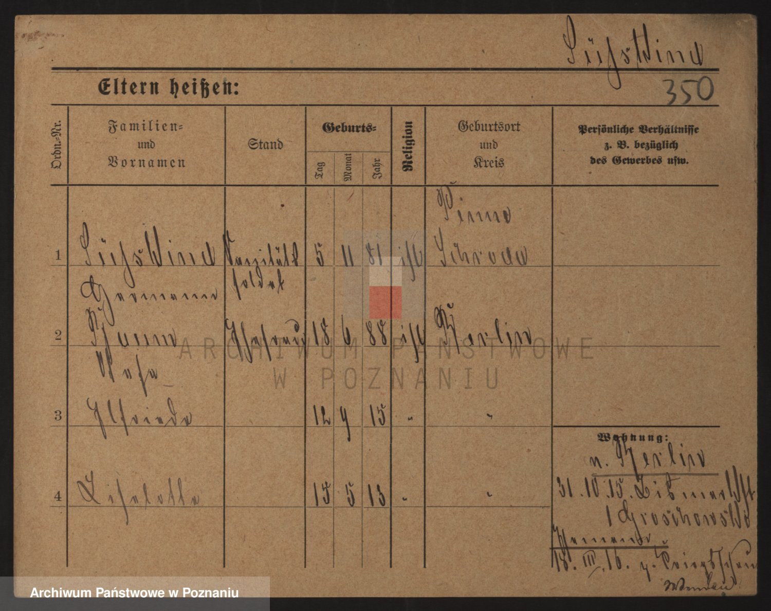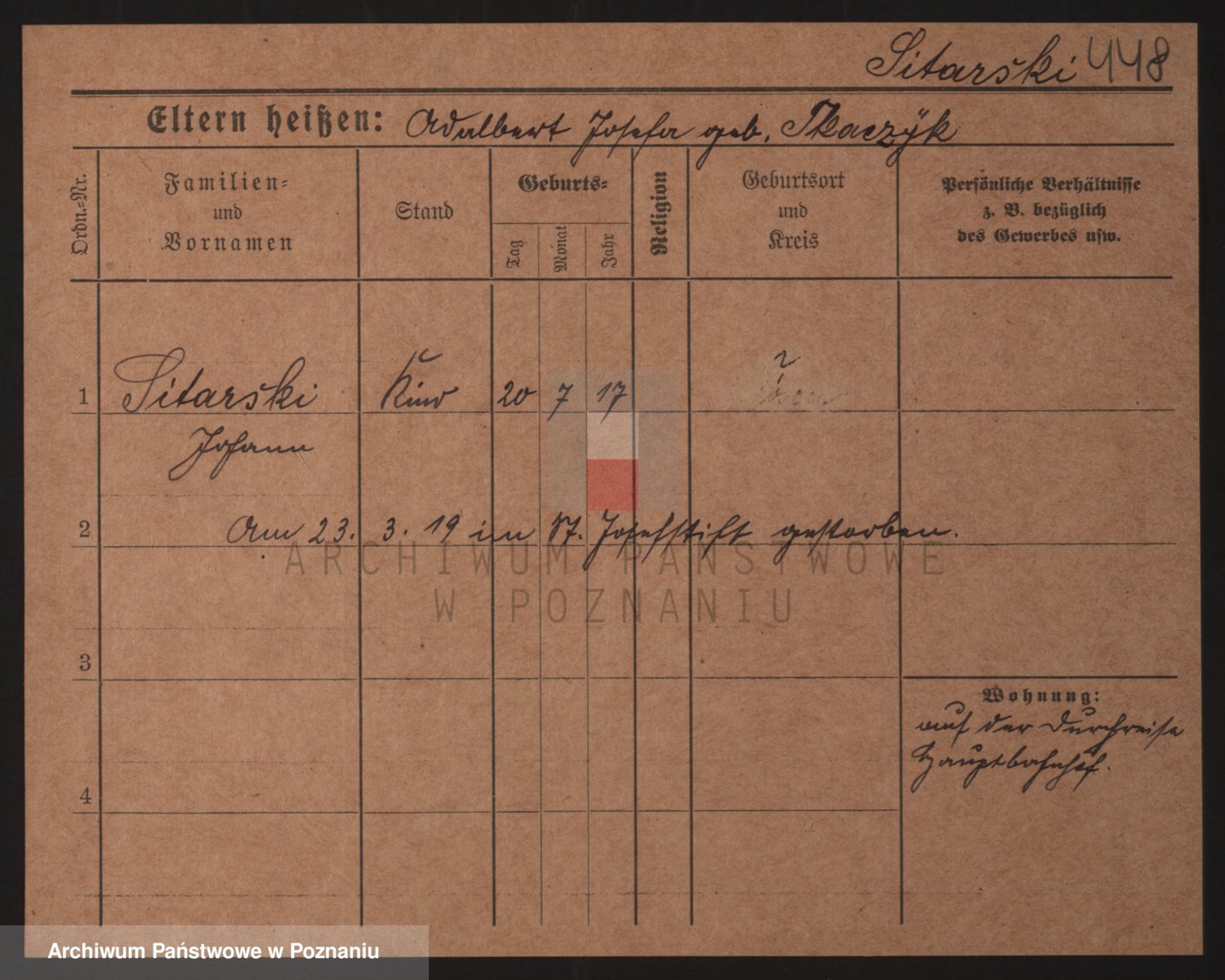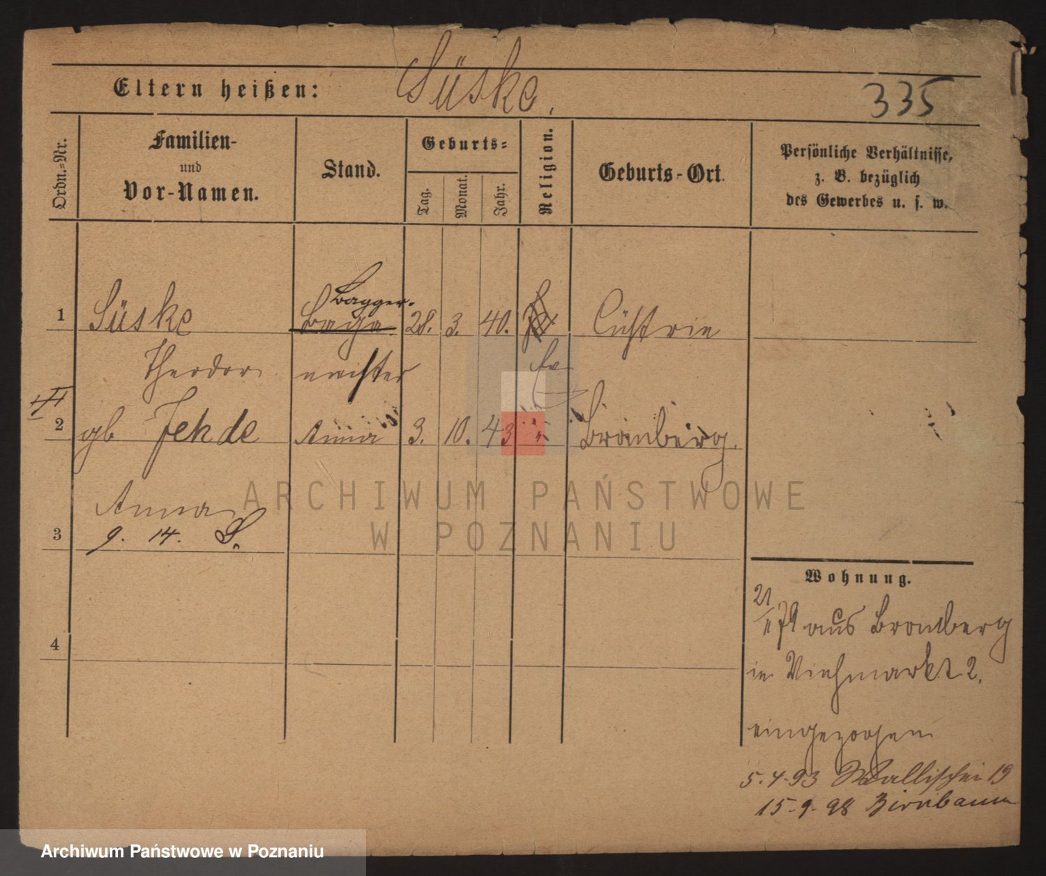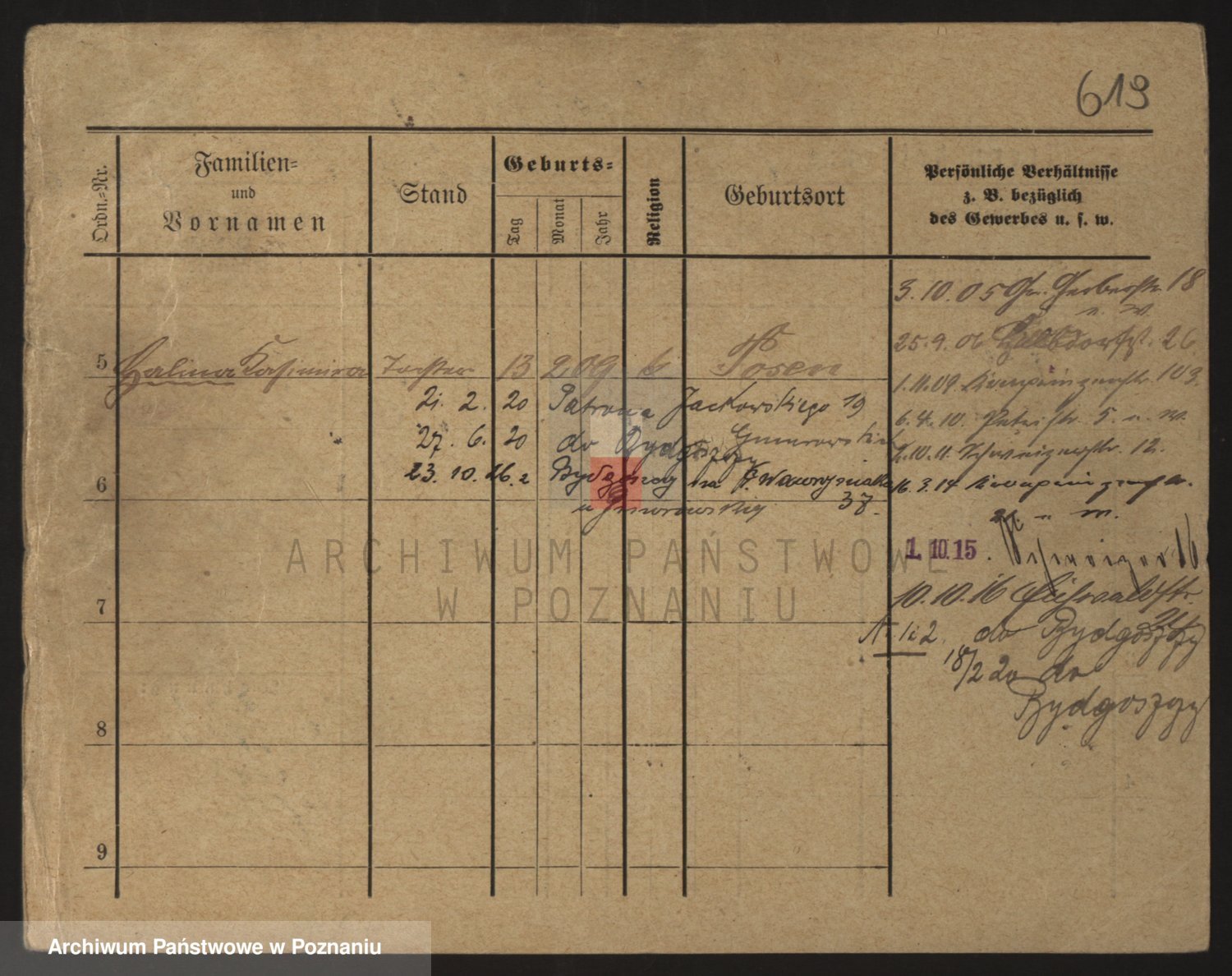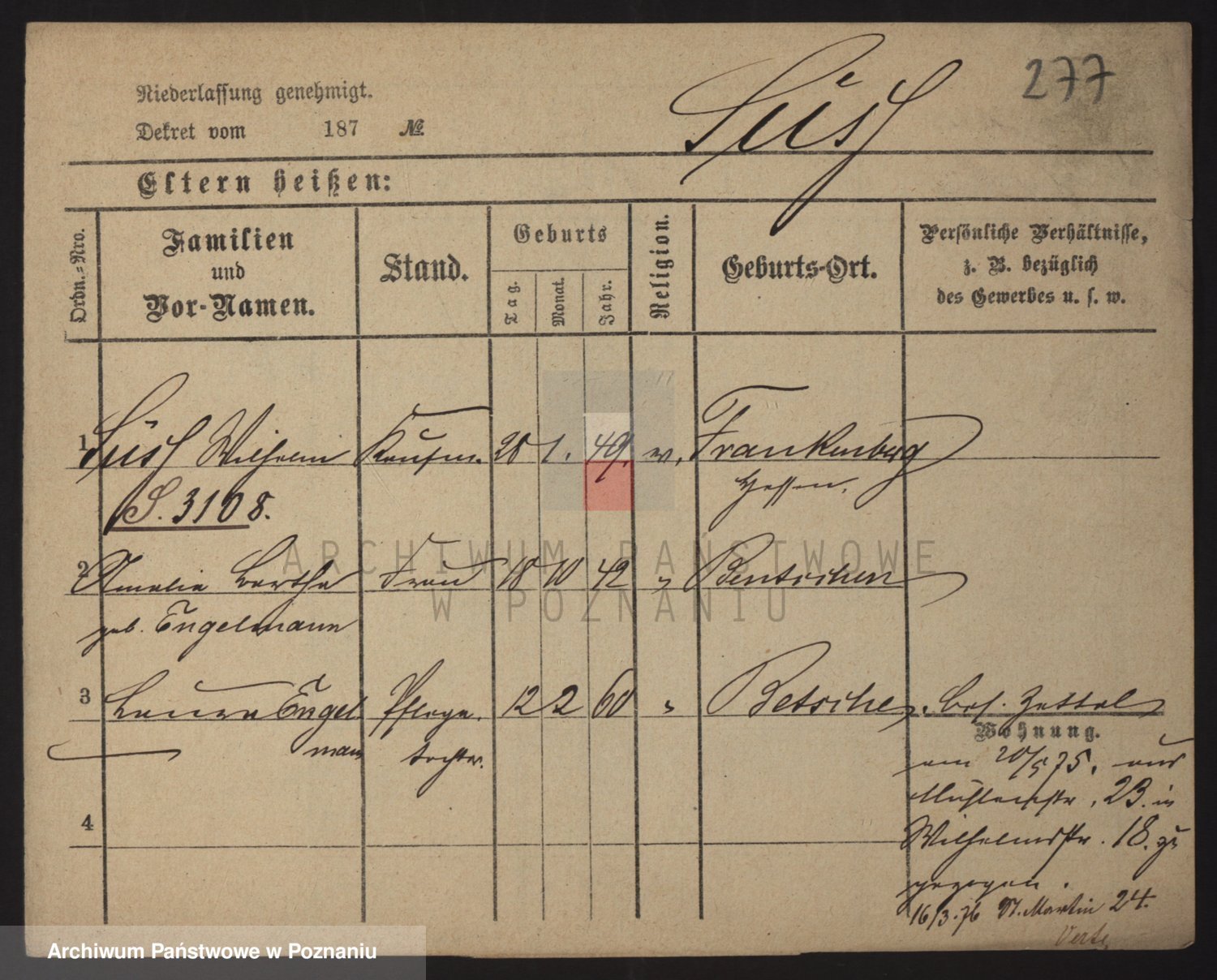 Podgląd karty osobowej dostępny jest po kliknięciu na nazwisko lub ikonkę karty. Można dokonywać powiększenia (ikony na górze) lub przechodzić między kolejnymi skanami (strzałki po bokach).