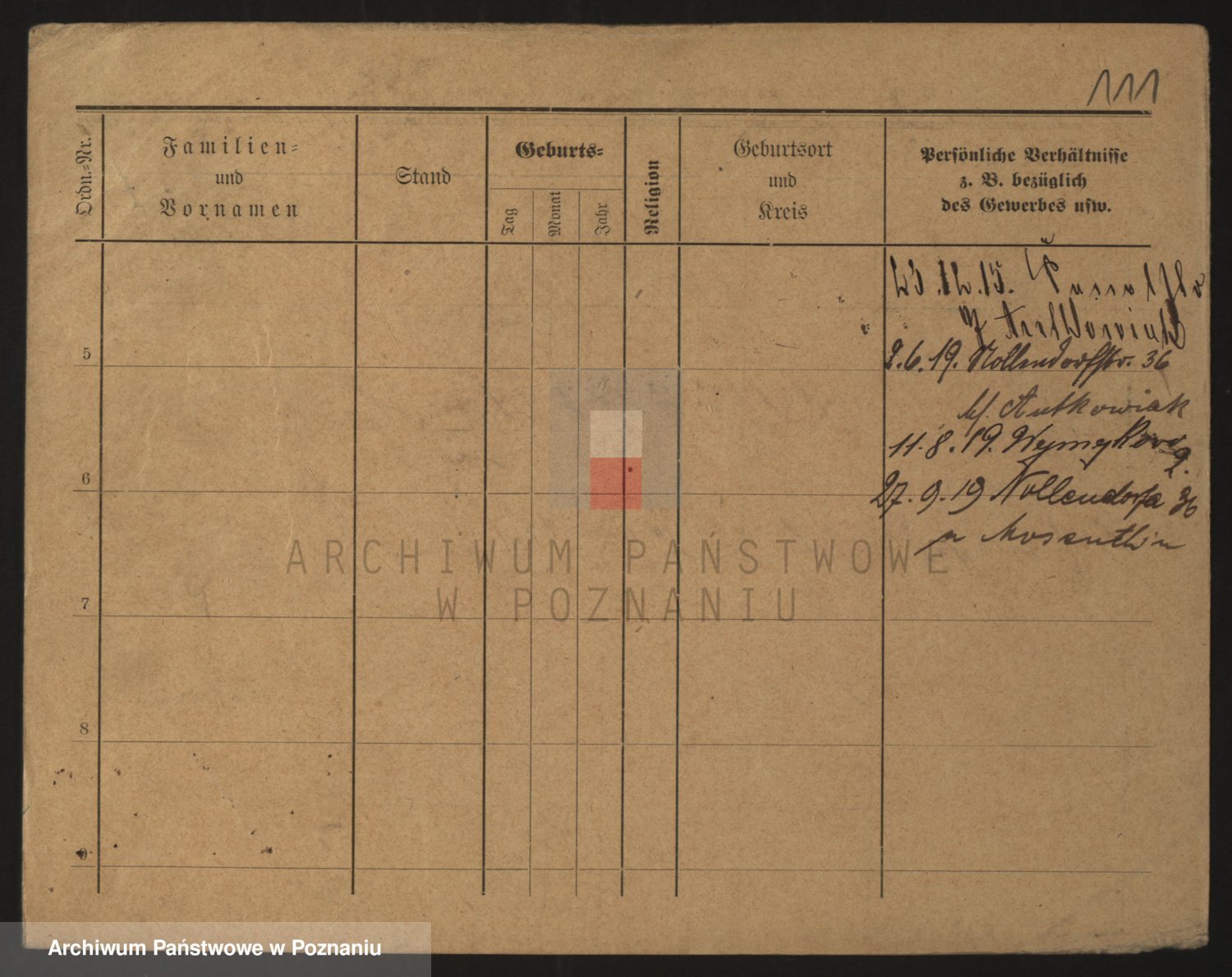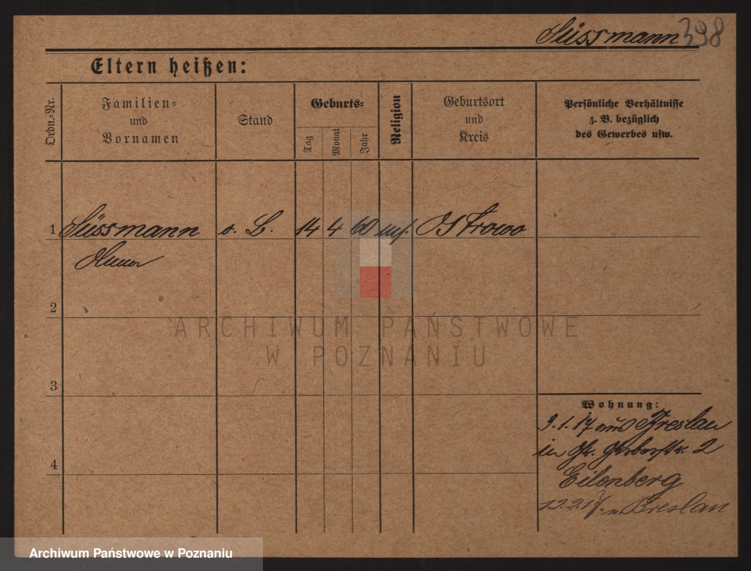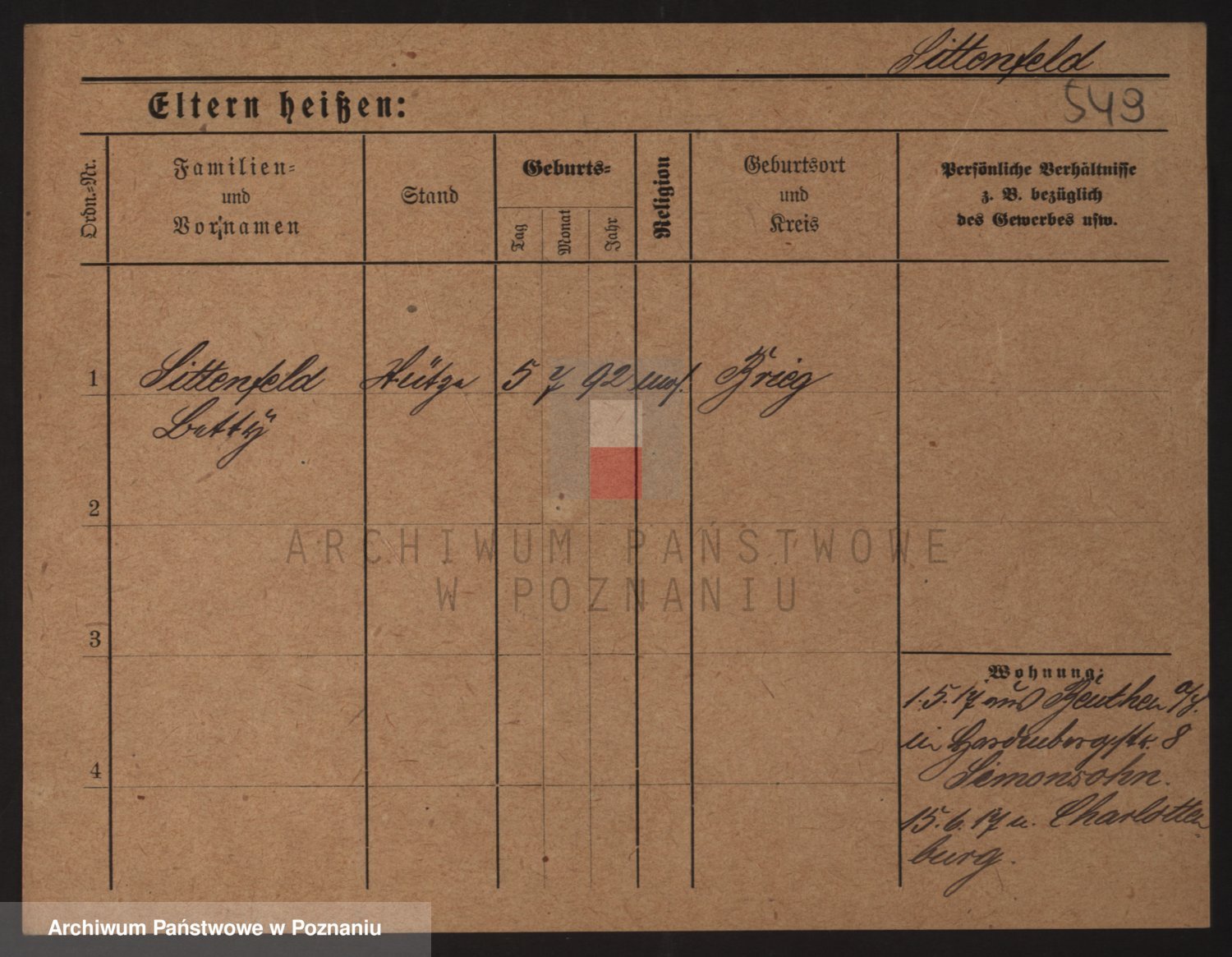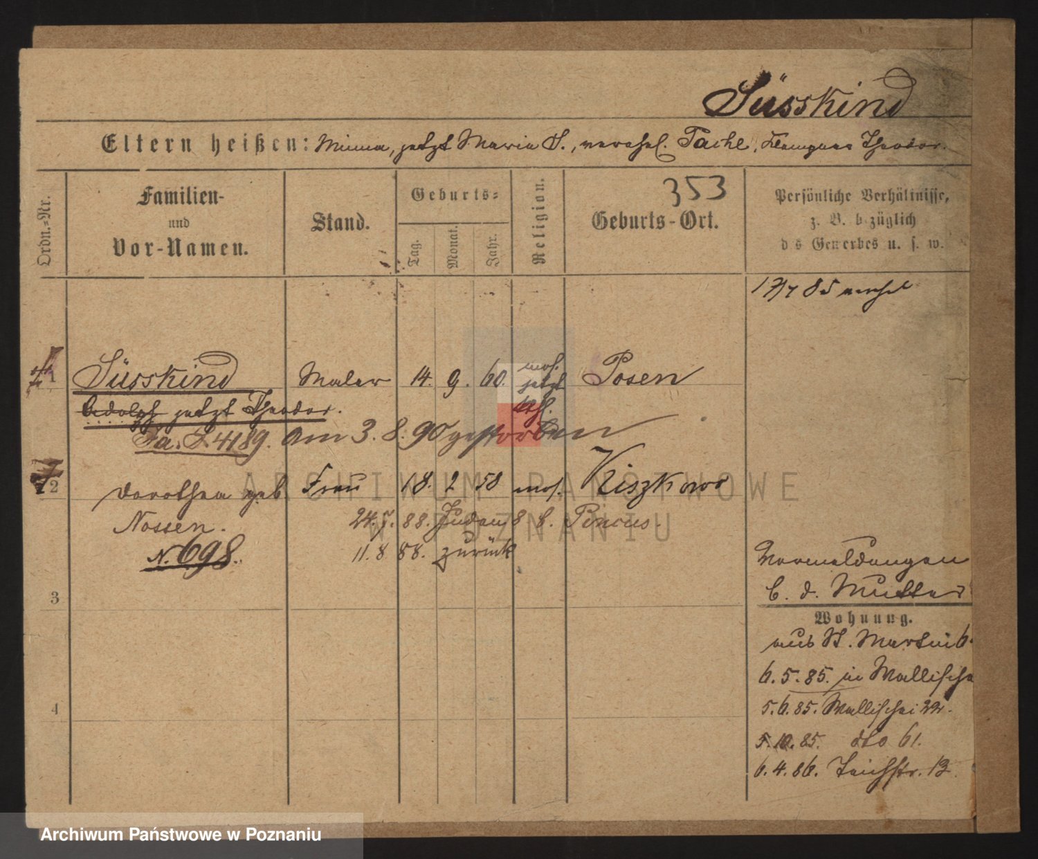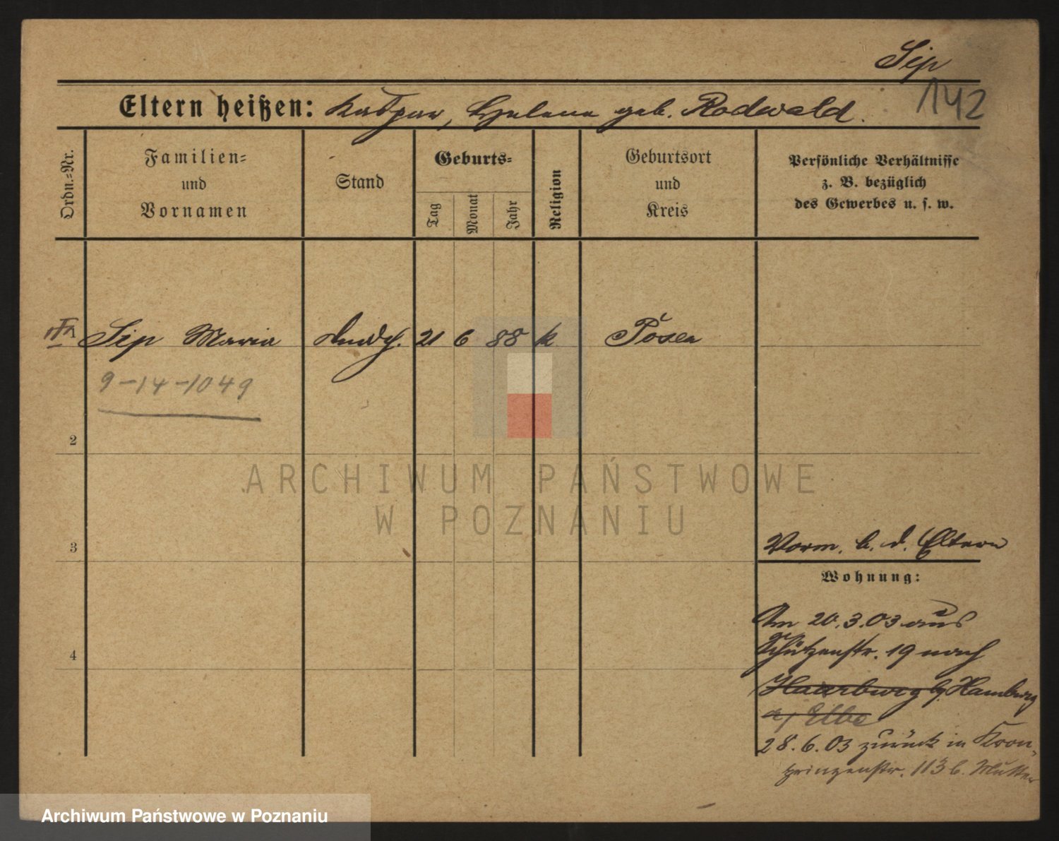 Podgląd karty osobowej dostępny jest po kliknięciu na nazwisko lub ikonkę karty. Można dokonywać powiększenia (ikony na górze) lub przechodzić między kolejnymi skanami (strzałki po bokach).