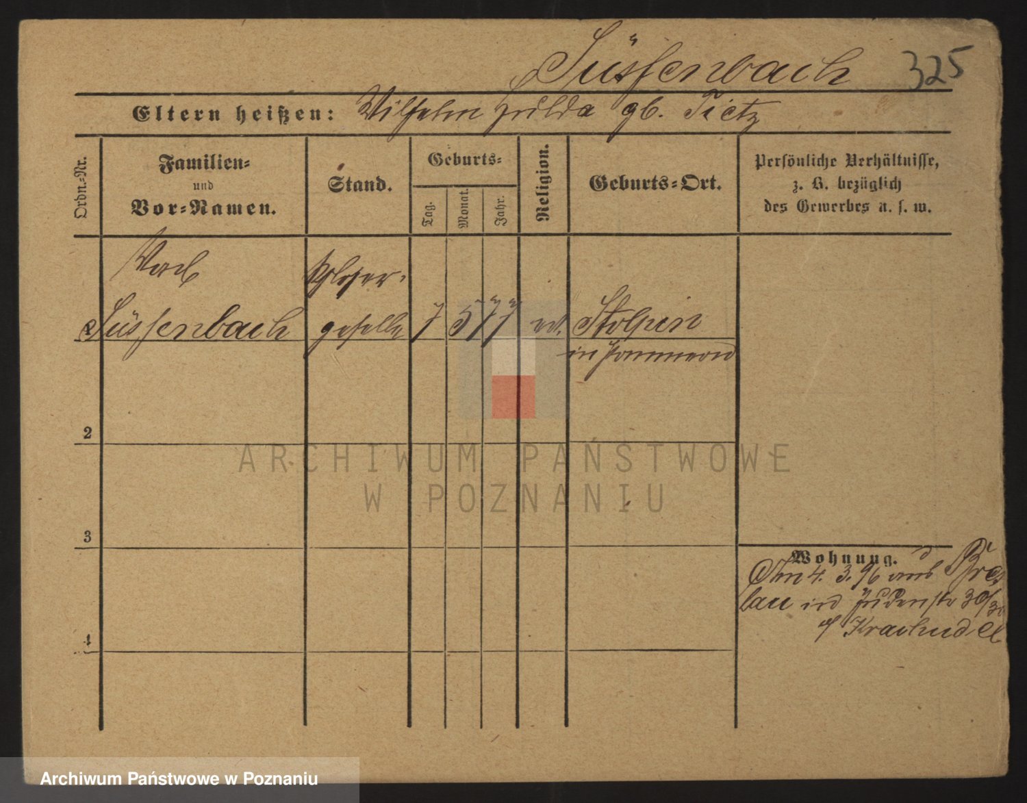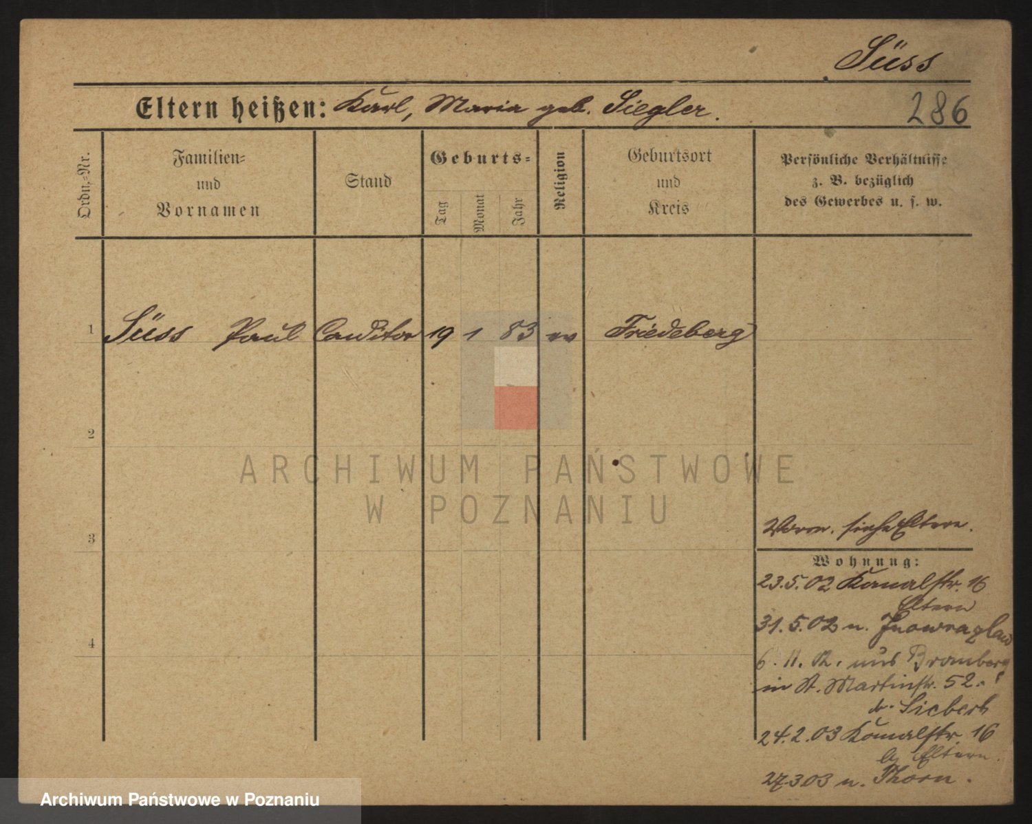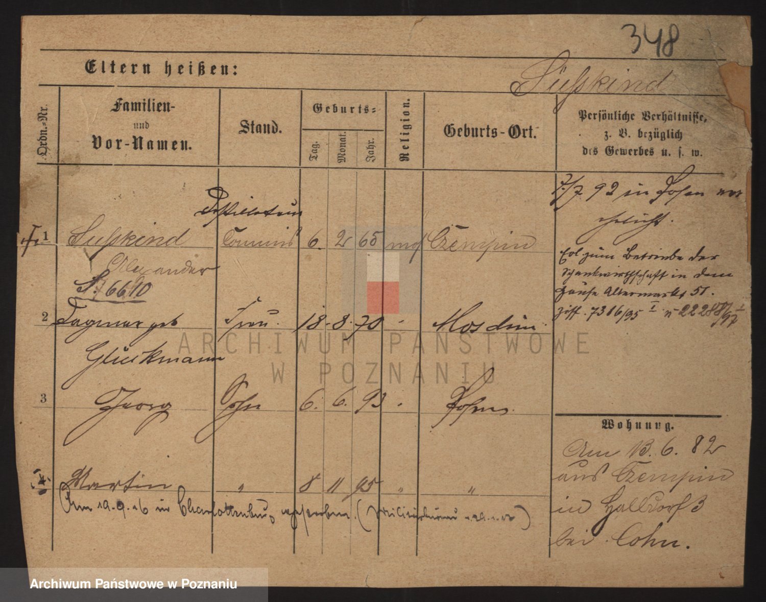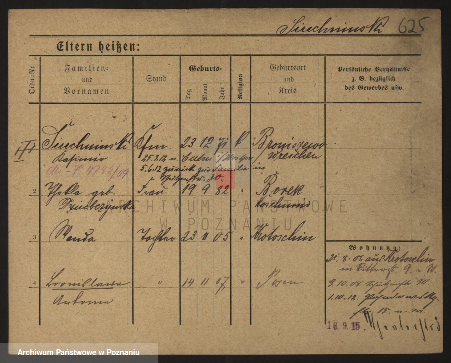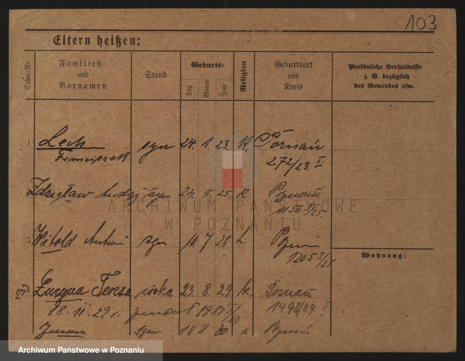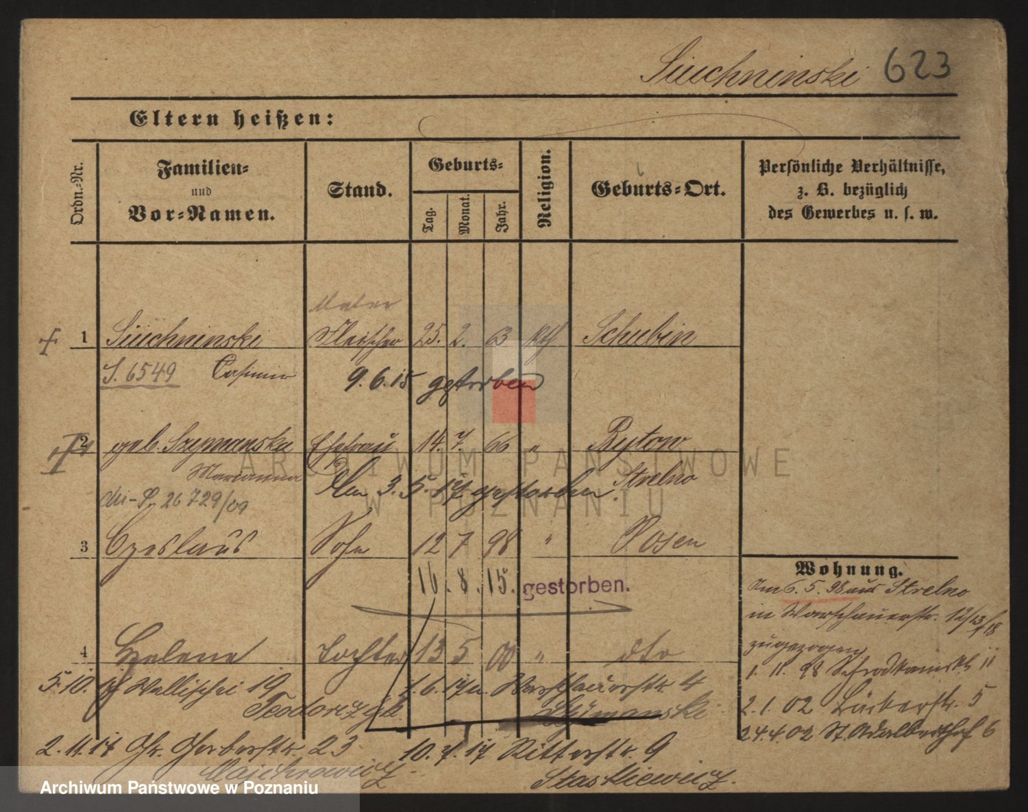 Podgląd karty osobowej dostępny jest po kliknięciu na nazwisko lub ikonkę karty. Można dokonywać powiększenia (ikony na górze) lub przechodzić między kolejnymi skanami (strzałki po bokach).
