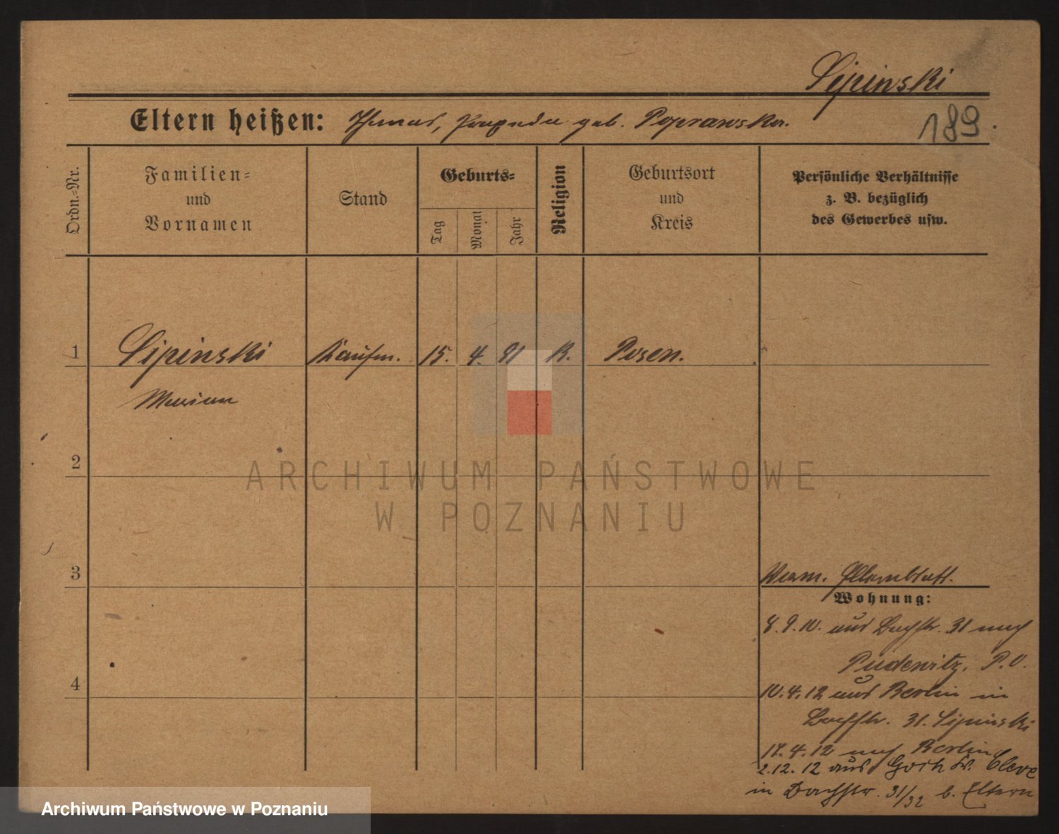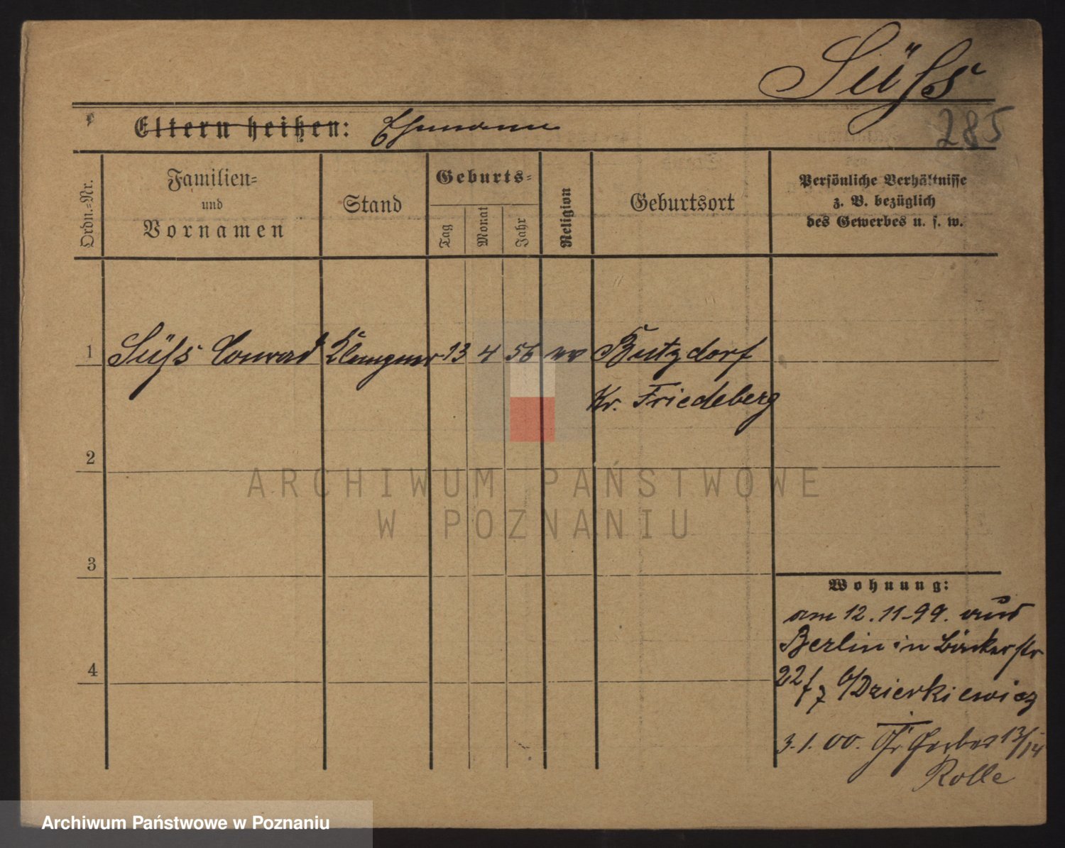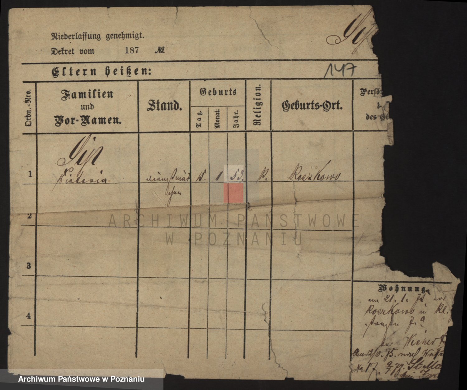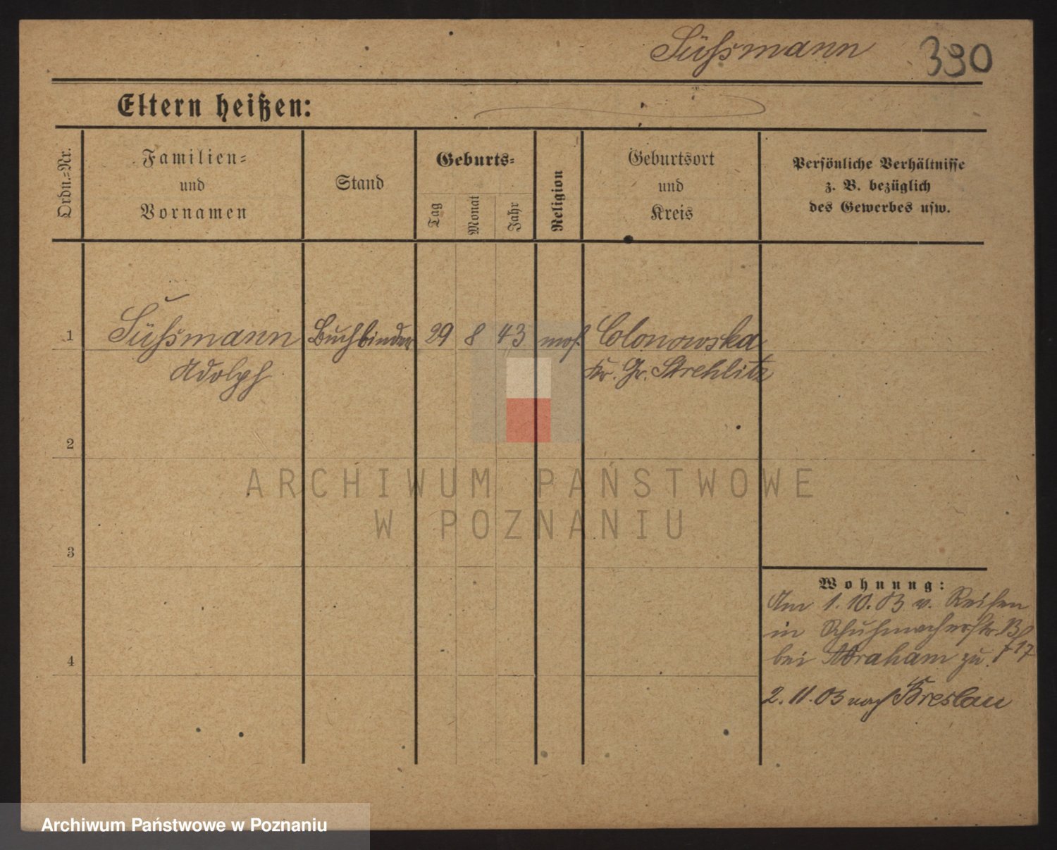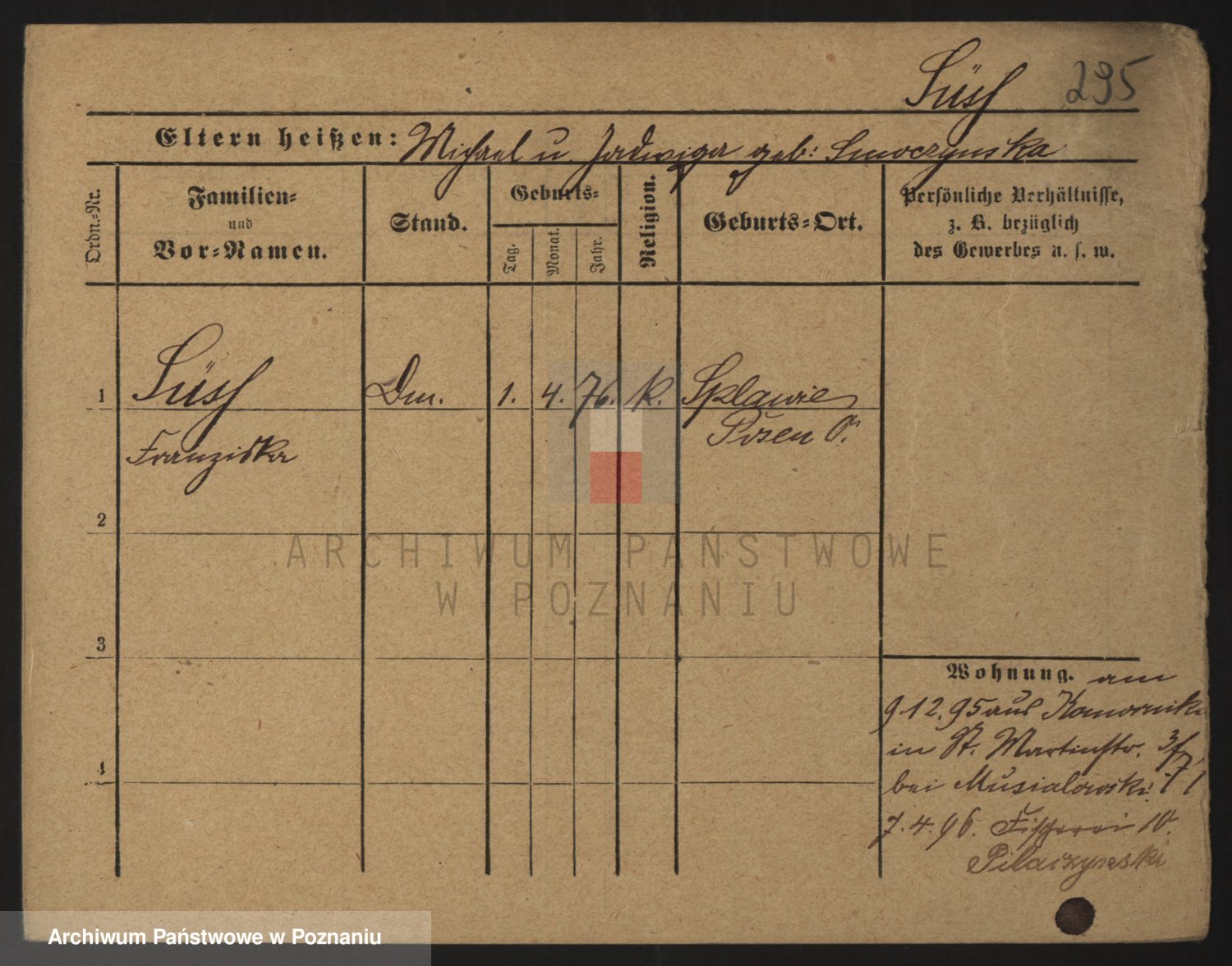 Podgląd karty osobowej dostępny jest po kliknięciu na nazwisko lub ikonkę karty. Można dokonywać powiększenia (ikony na górze) lub przechodzić między kolejnymi skanami (strzałki po bokach).