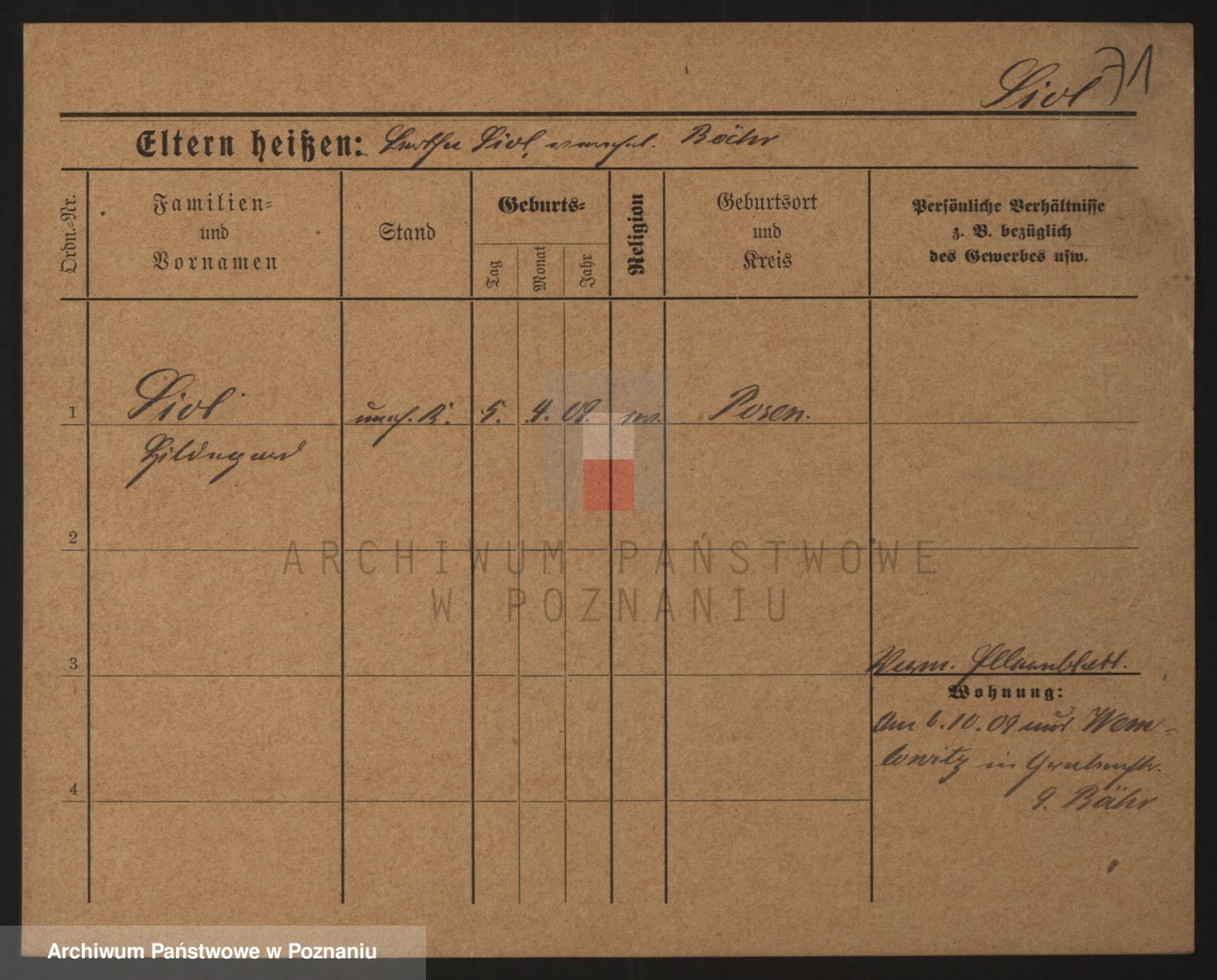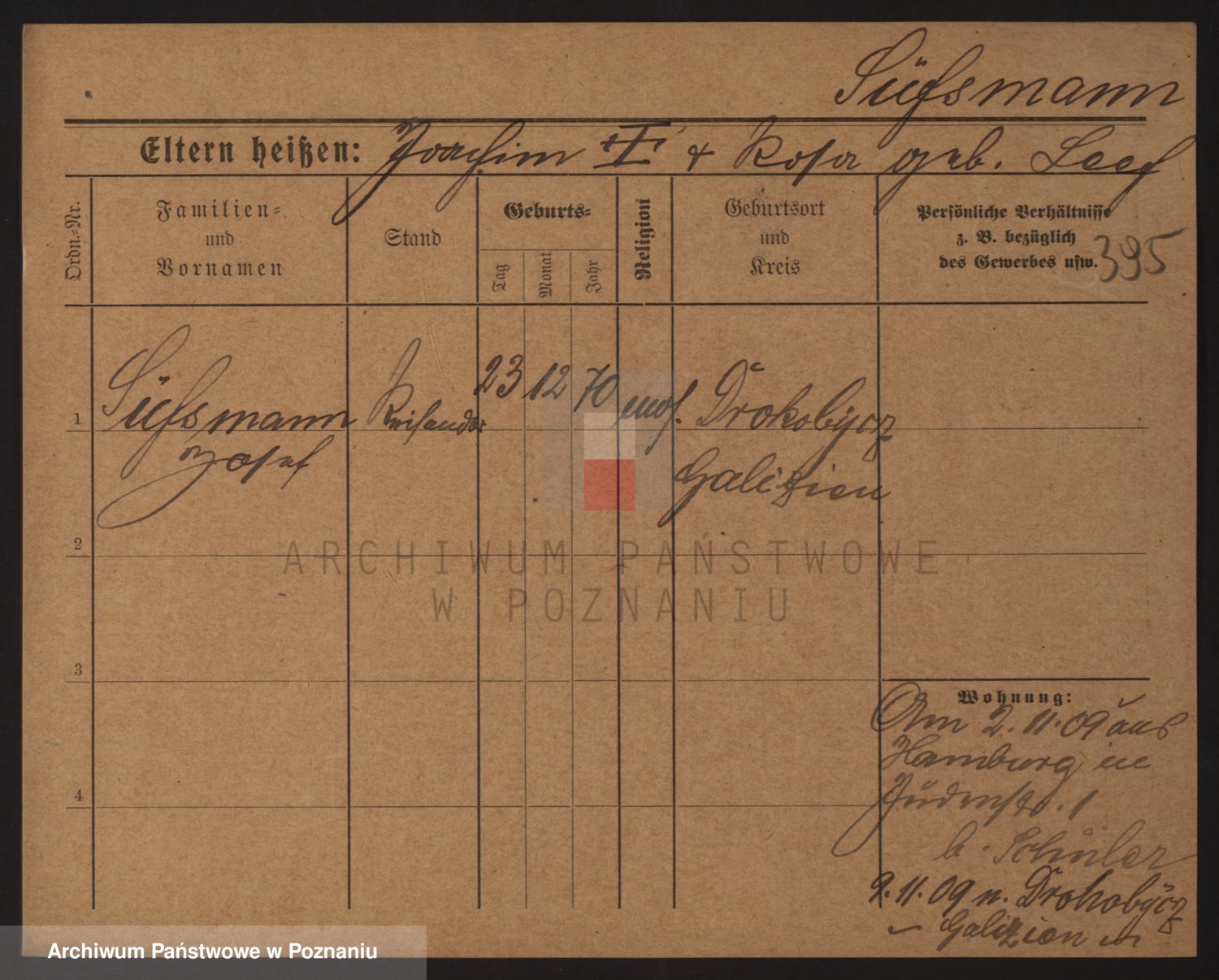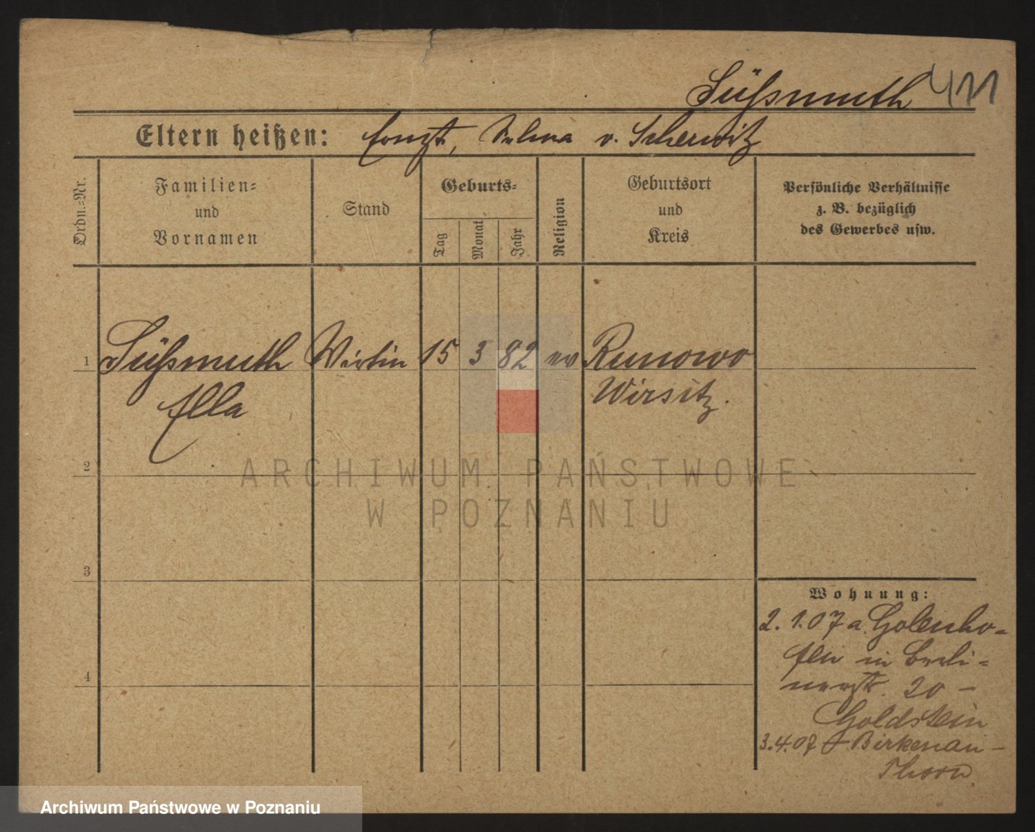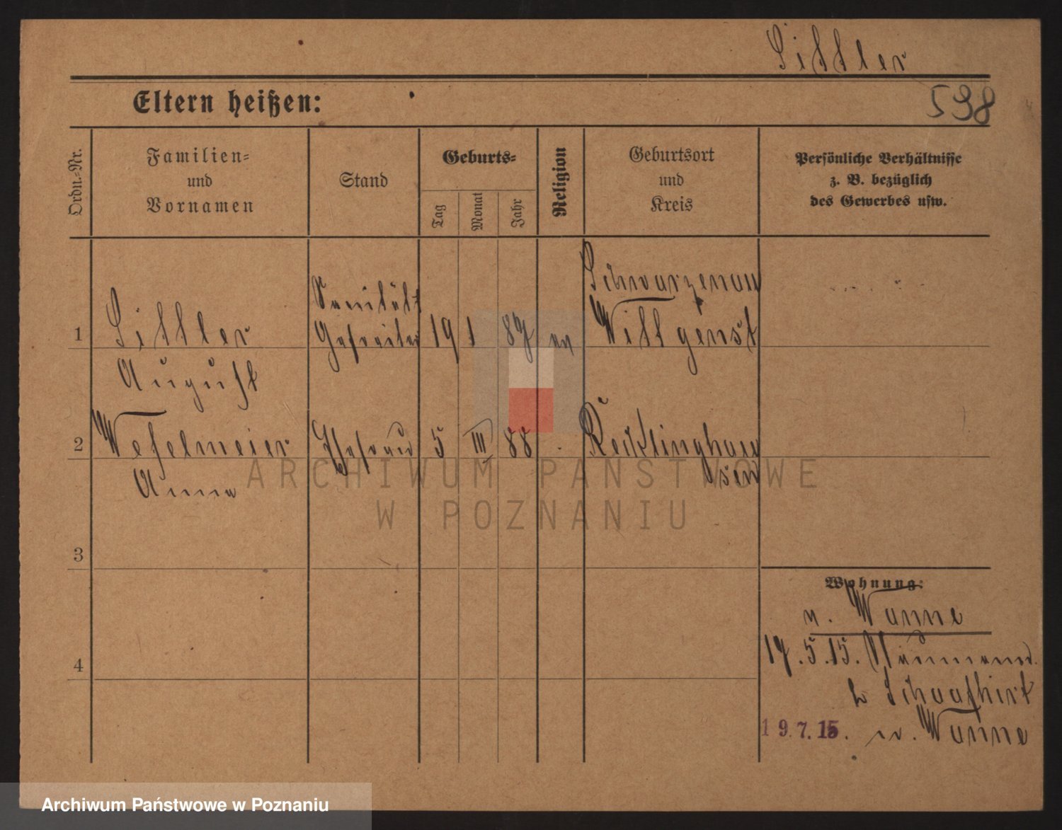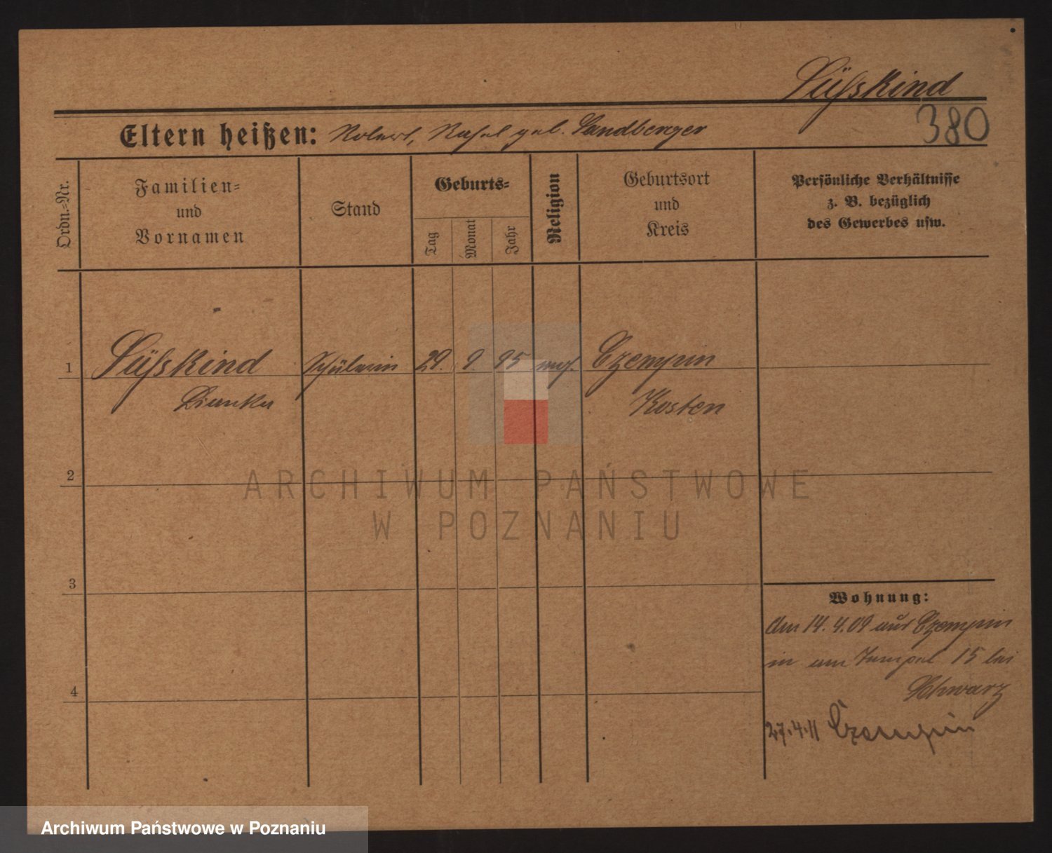 Podgląd karty osobowej dostępny jest po kliknięciu na nazwisko lub ikonkę karty. Można dokonywać powiększenia (ikony na górze) lub przechodzić między kolejnymi skanami (strzałki po bokach).