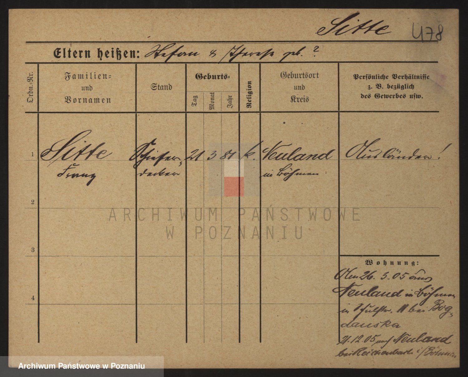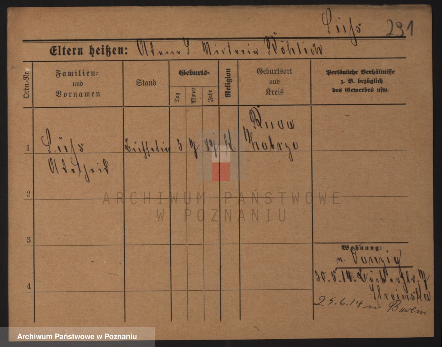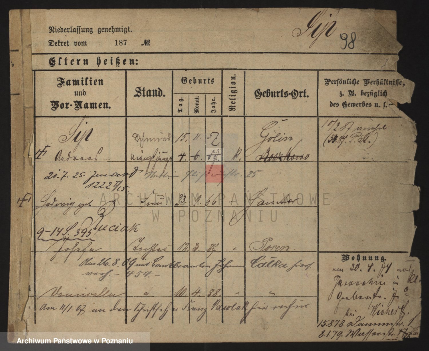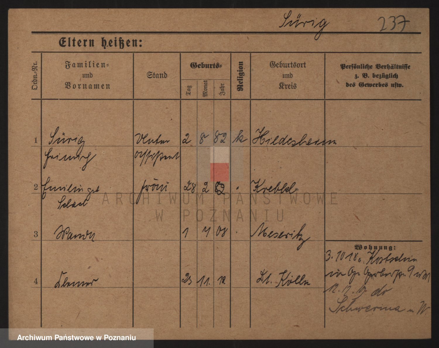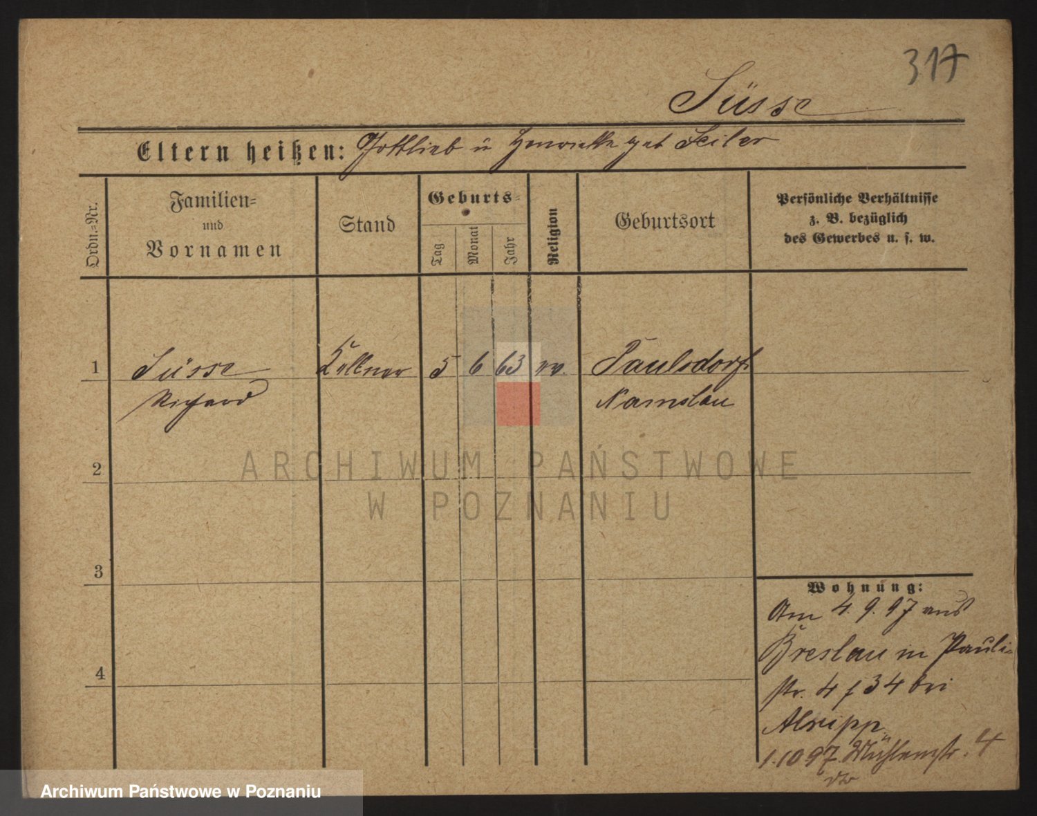 Podgląd karty osobowej dostępny jest po kliknięciu na nazwisko lub ikonkę karty. Można dokonywać powiększenia (ikony na górze) lub przechodzić między kolejnymi skanami (strzałki po bokach).
