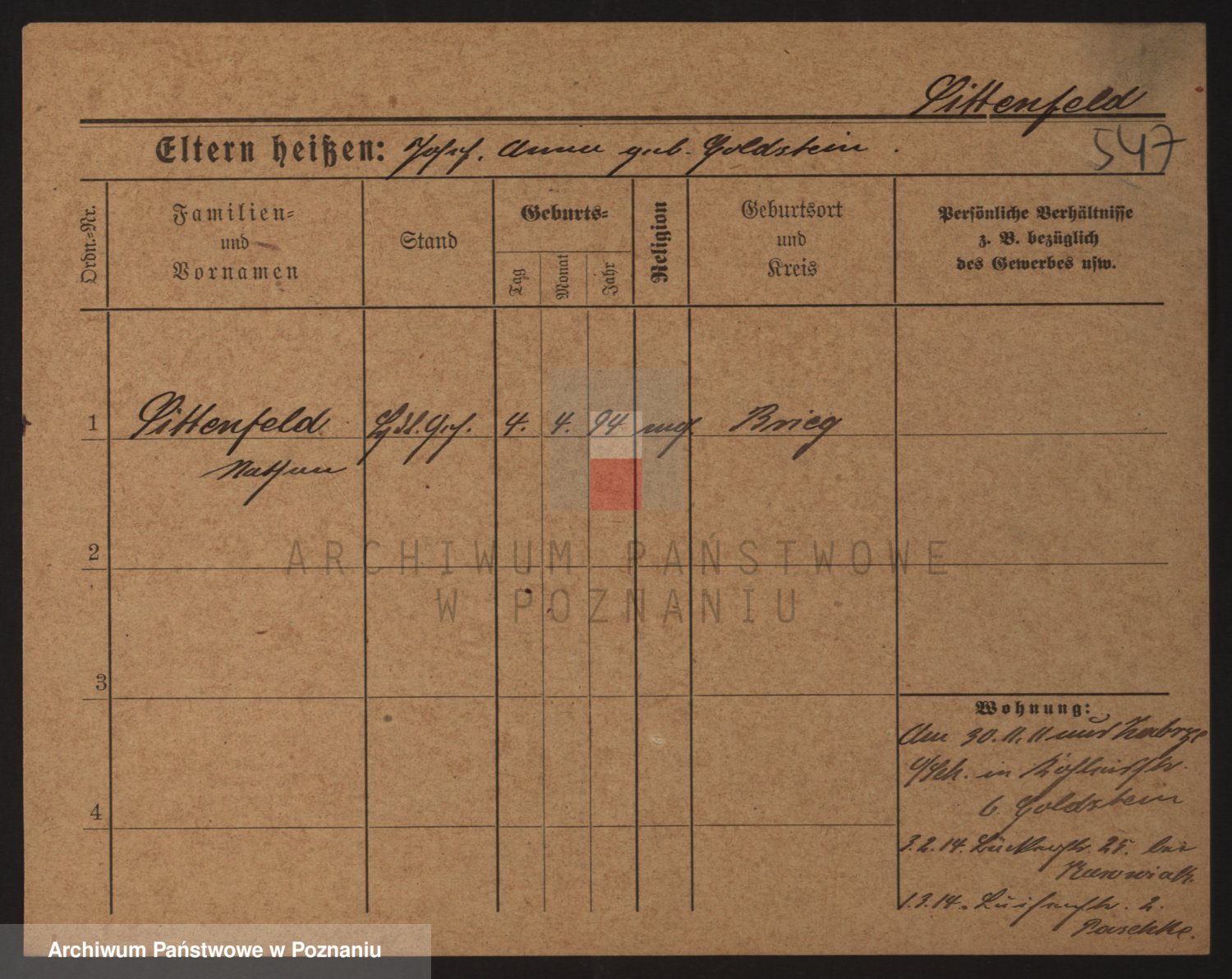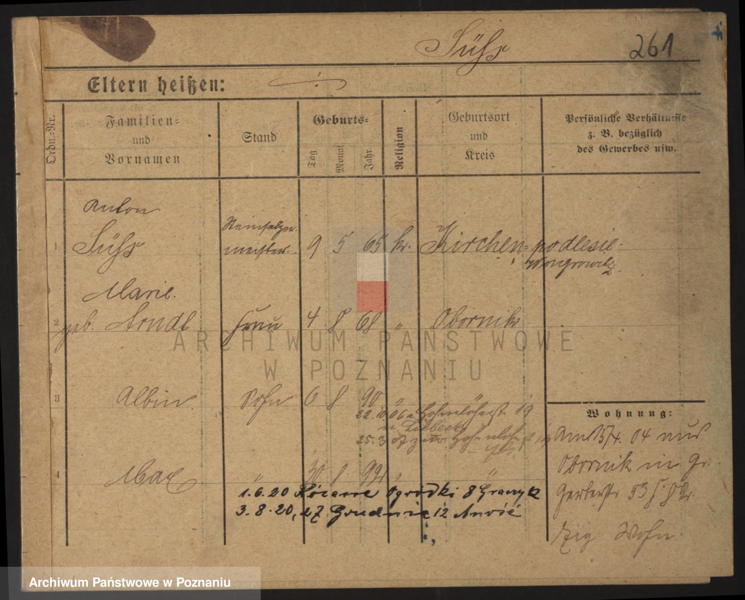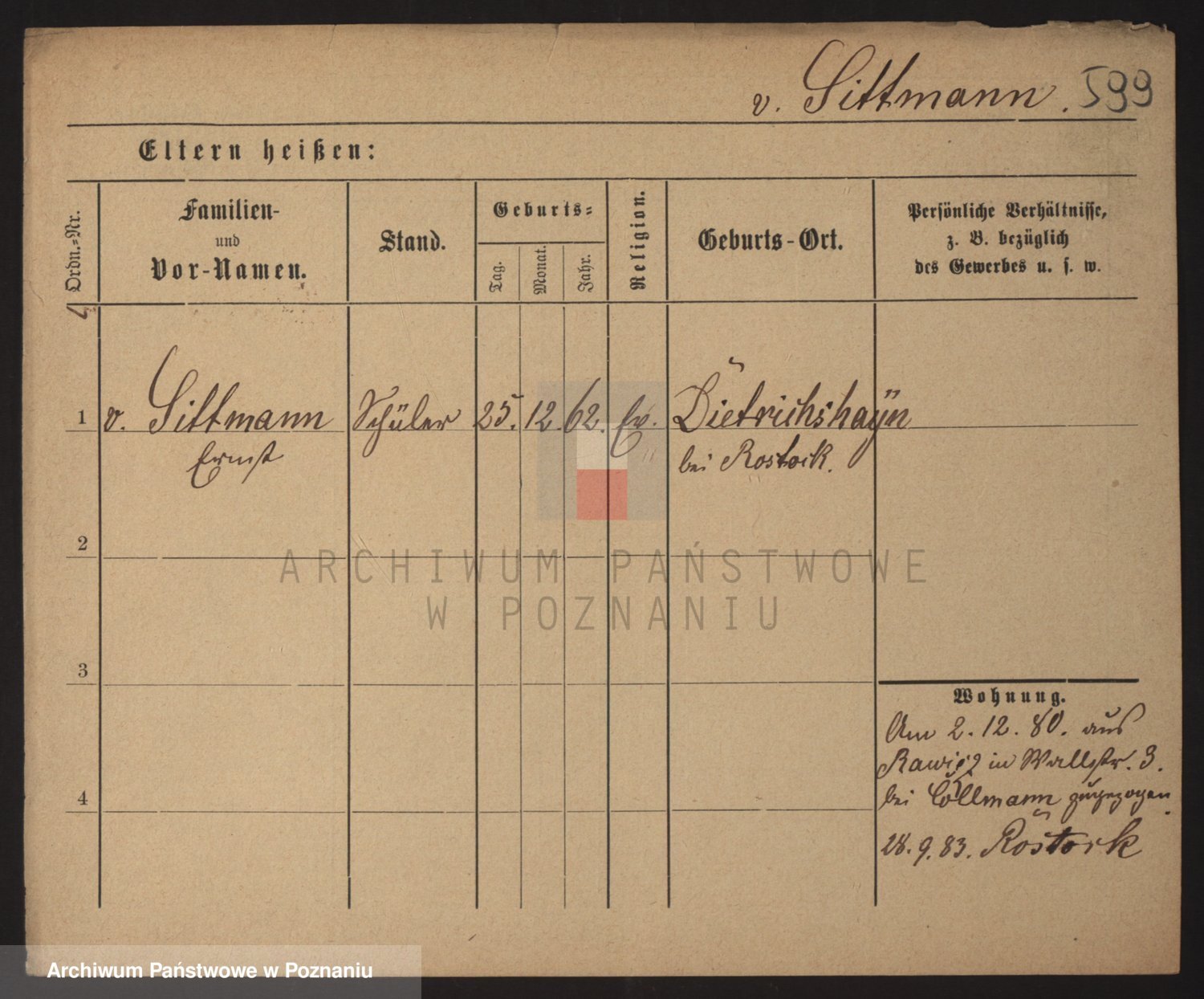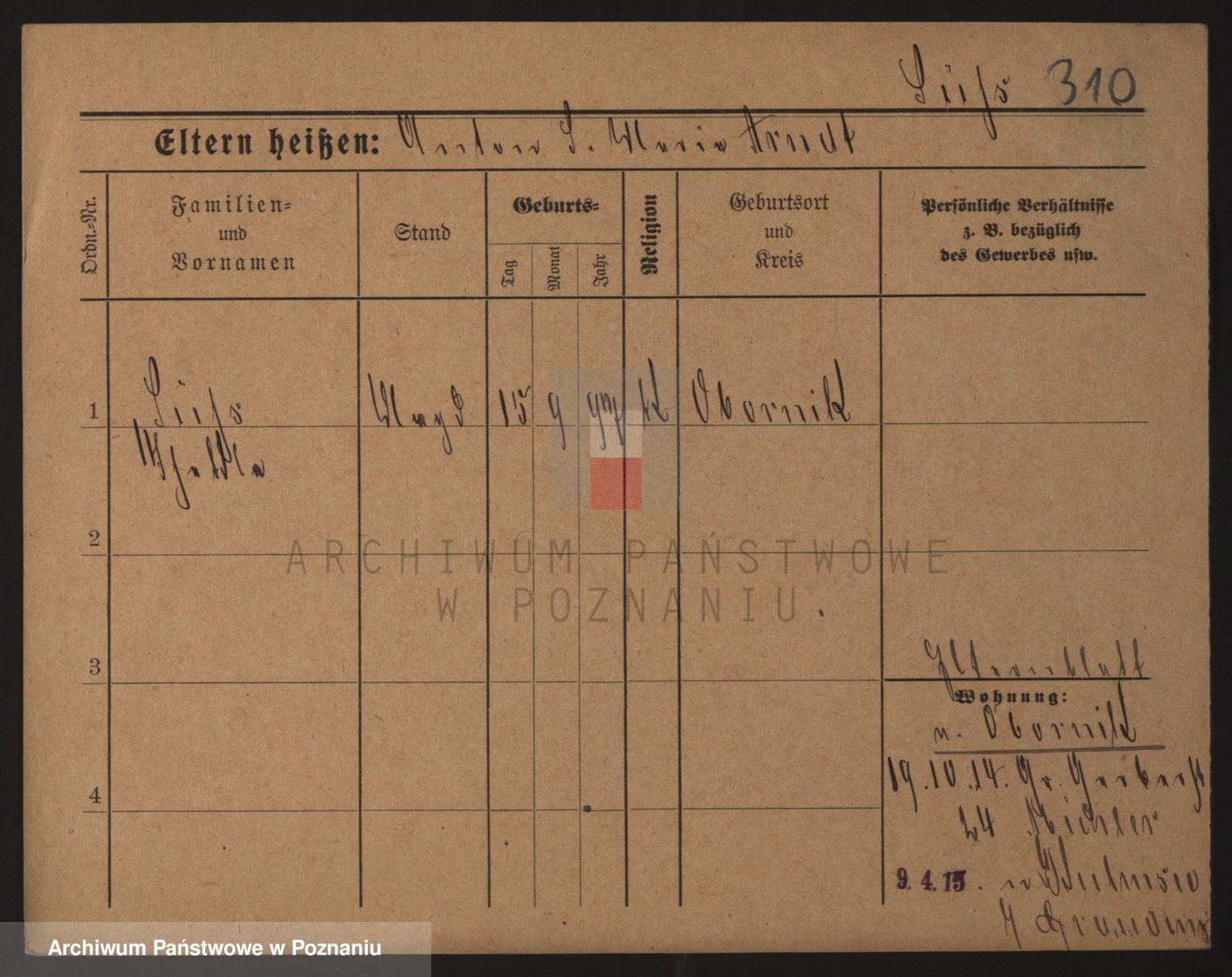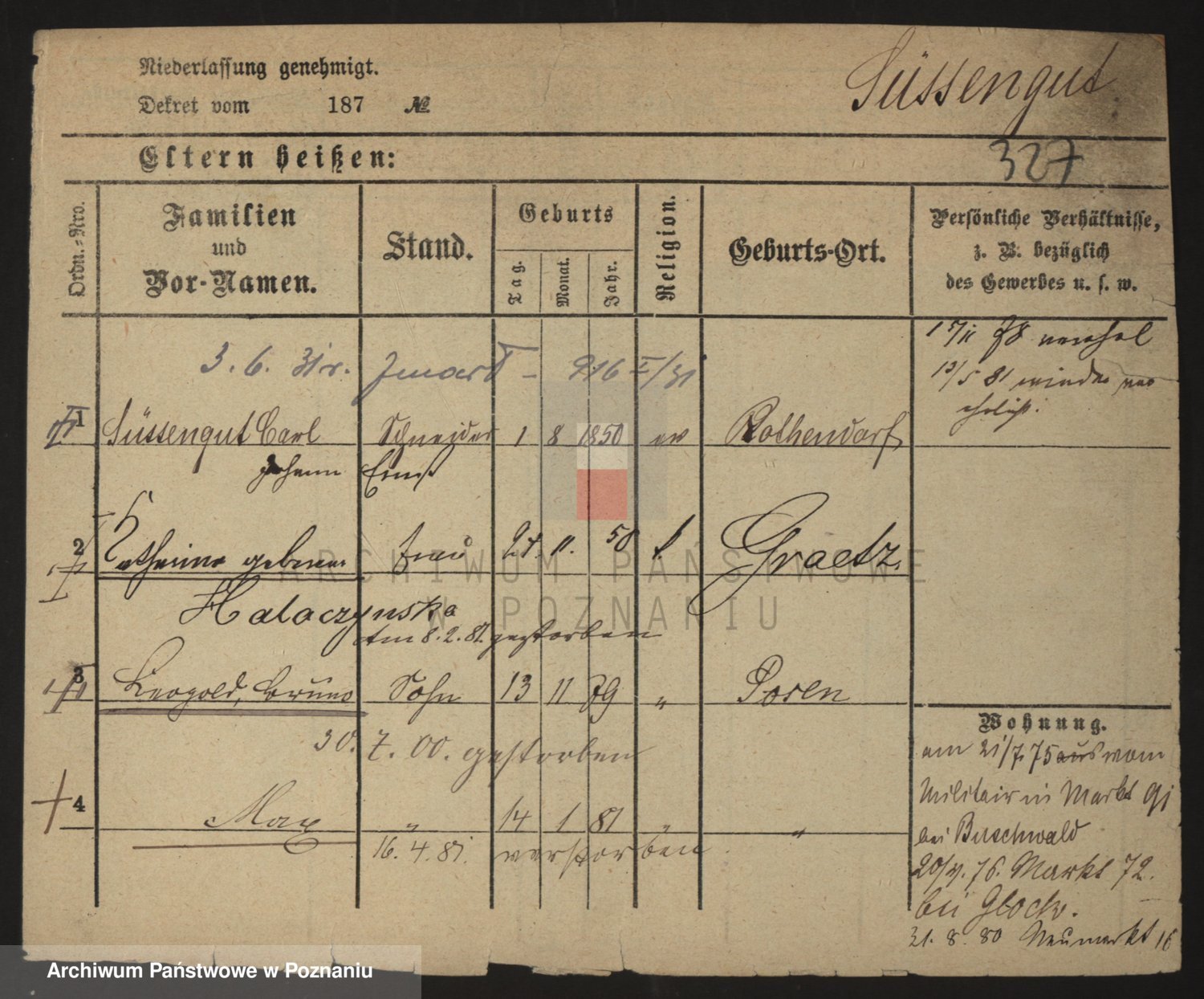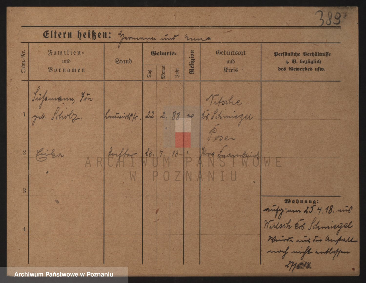 Podgląd karty osobowej dostępny jest po kliknięciu na nazwisko lub ikonkę karty. Można dokonywać powiększenia (ikony na górze) lub przechodzić między kolejnymi skanami (strzałki po bokach).