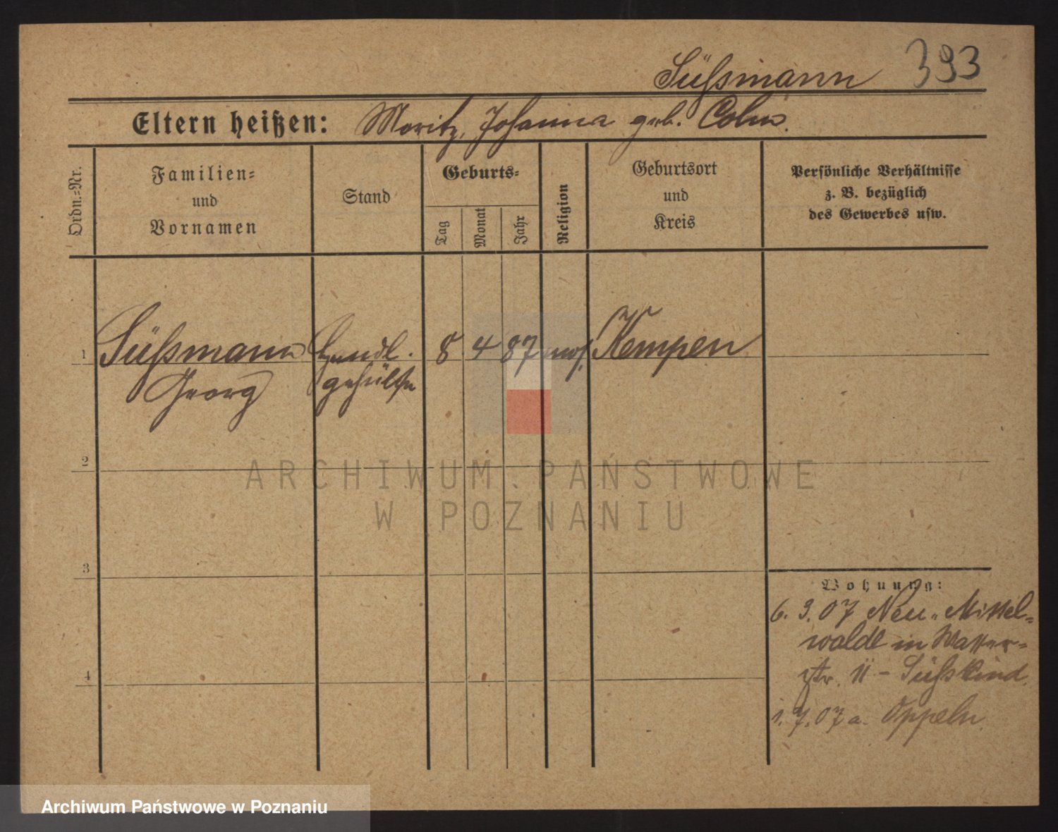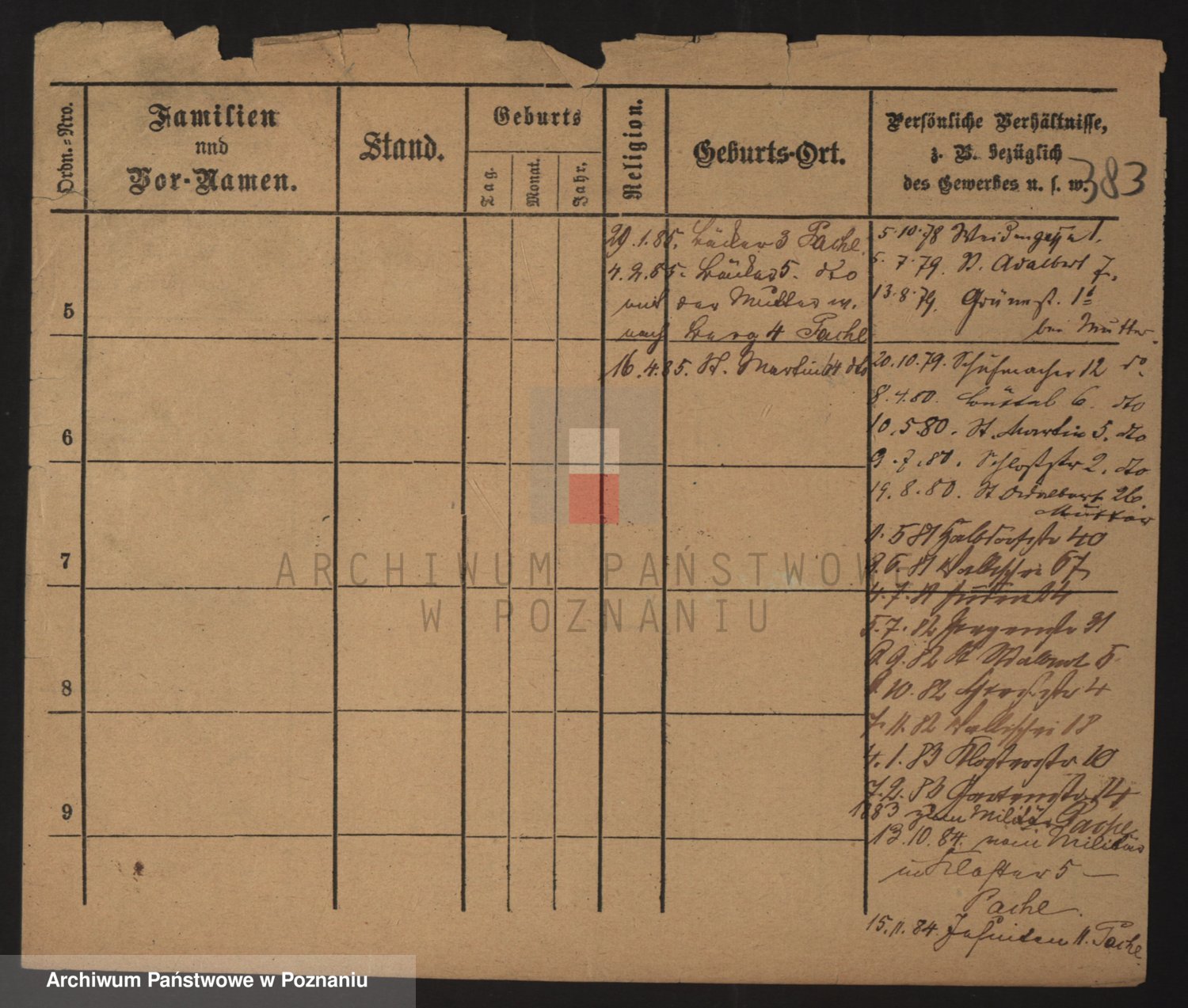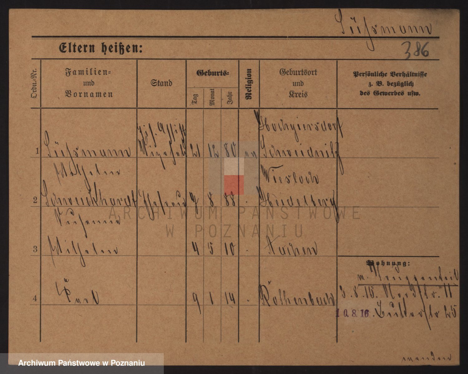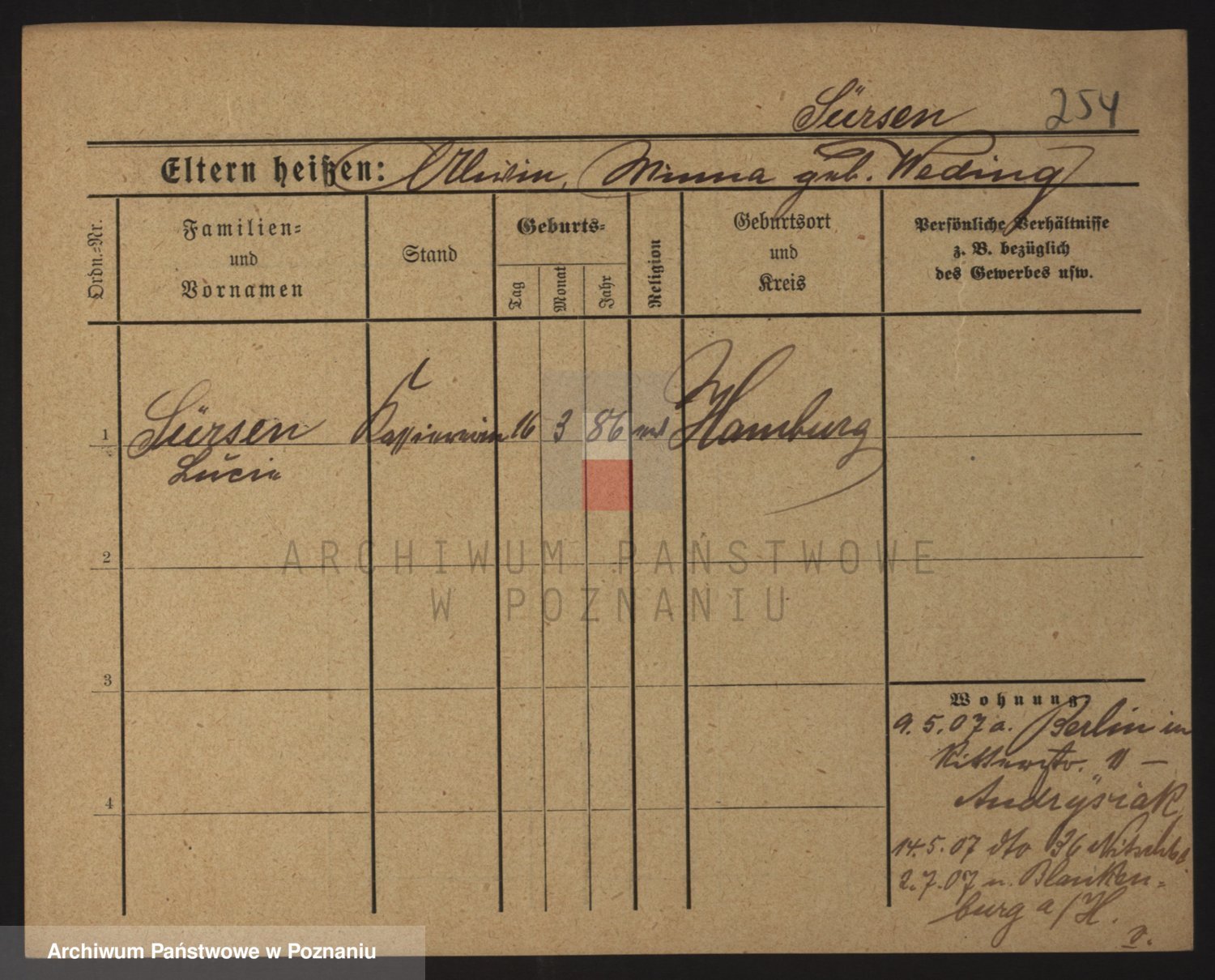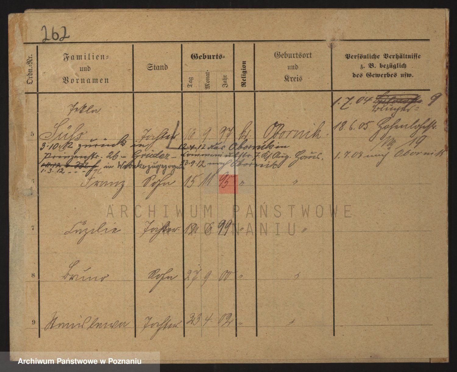 Podgląd karty osobowej dostępny jest po kliknięciu na nazwisko lub ikonkę karty. Można dokonywać powiększenia (ikony na górze) lub przechodzić między kolejnymi skanami (strzałki po bokach).