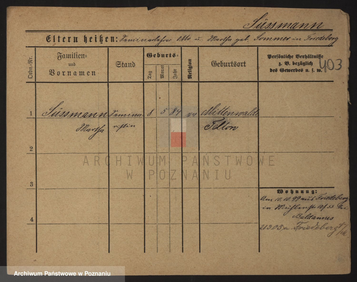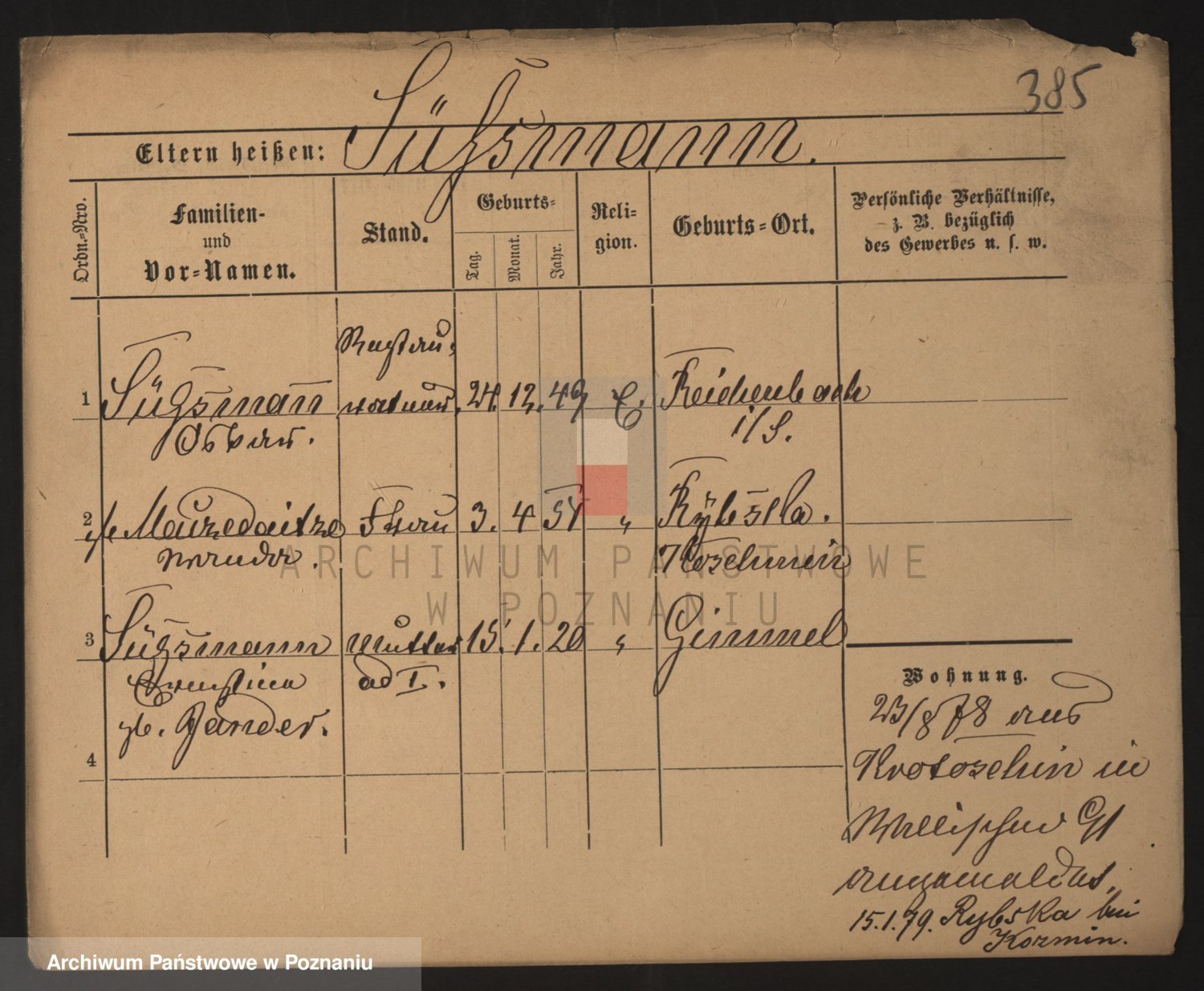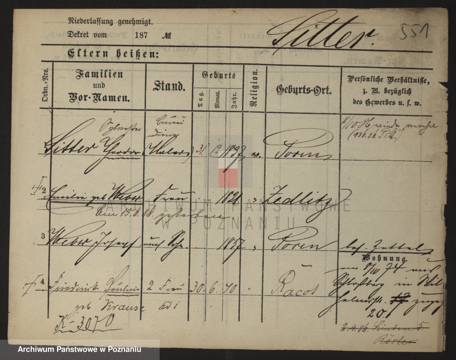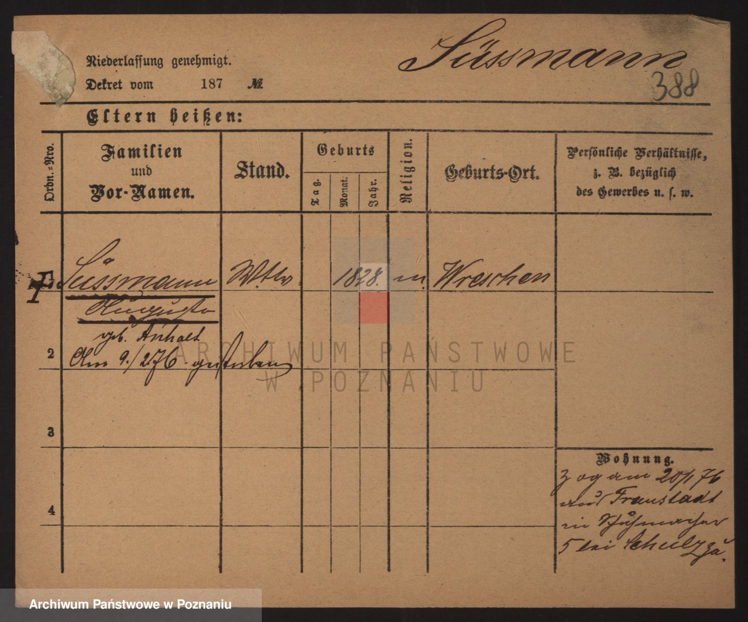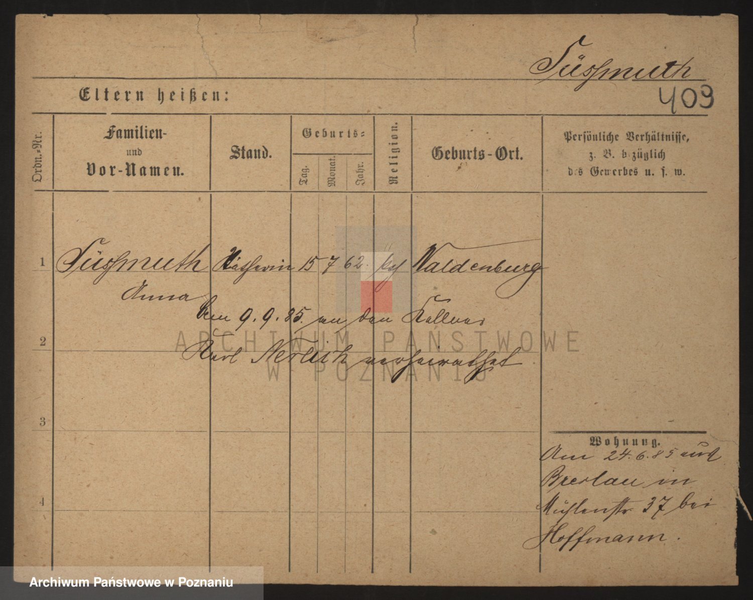 Podgląd karty osobowej dostępny jest po kliknięciu na nazwisko lub ikonkę karty. Można dokonywać powiększenia (ikony na górze) lub przechodzić między kolejnymi skanami (strzałki po bokach).