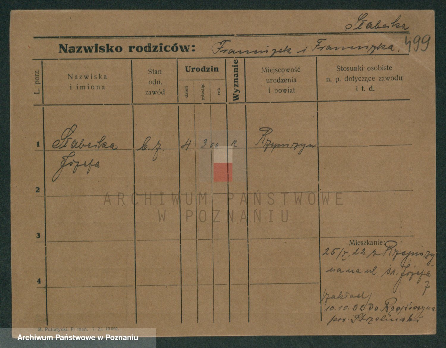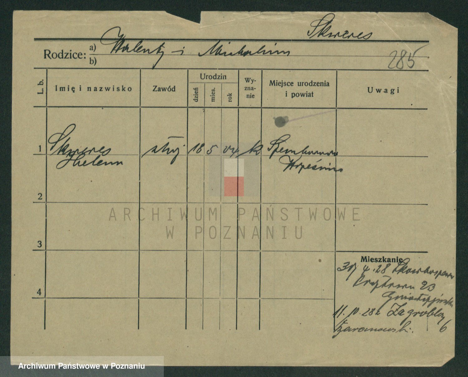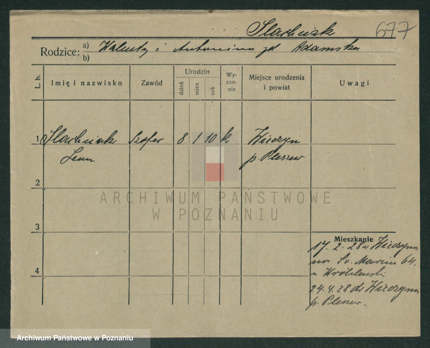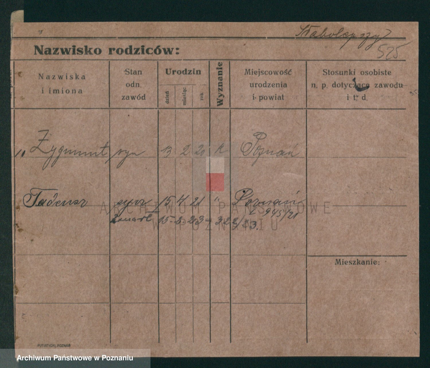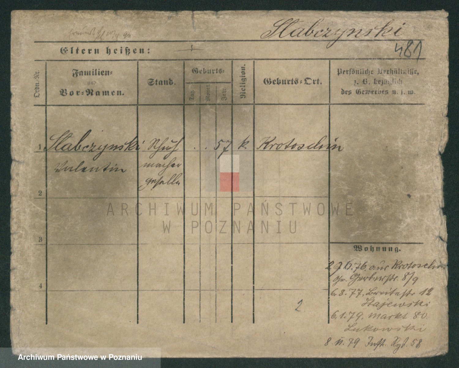 Podgląd karty osobowej dostępny jest po kliknięciu na nazwisko lub ikonkę karty. Można dokonywać powiększenia (ikony na górze) lub przechodzić między kolejnymi skanami (strzałki po bokach).